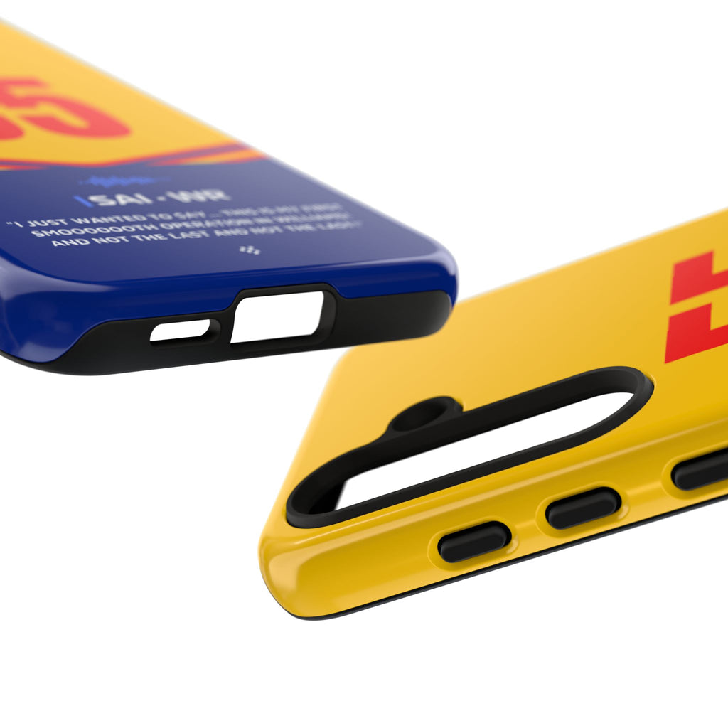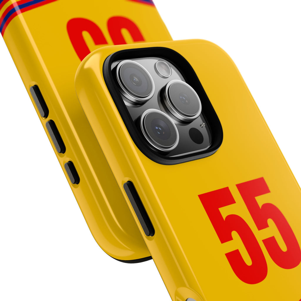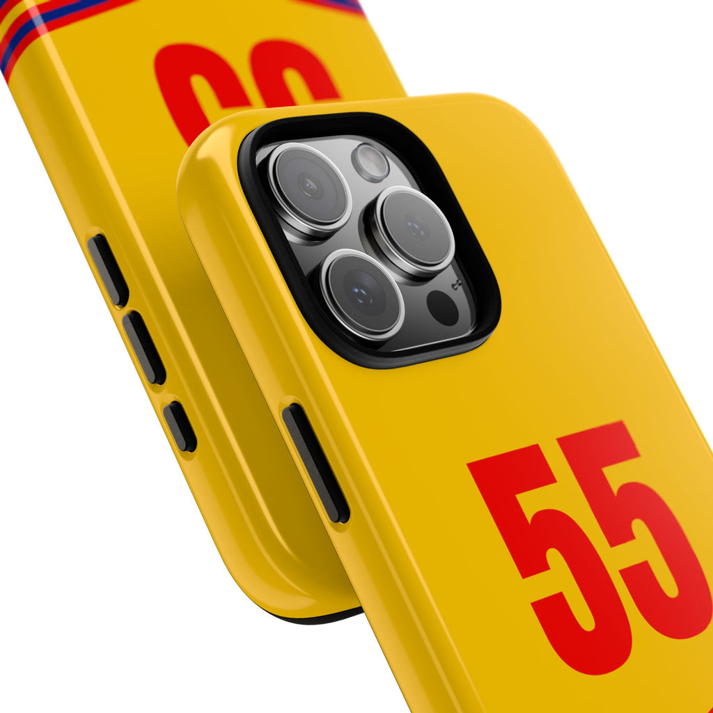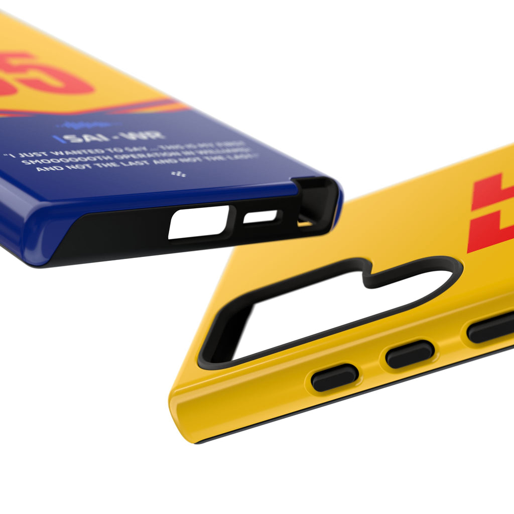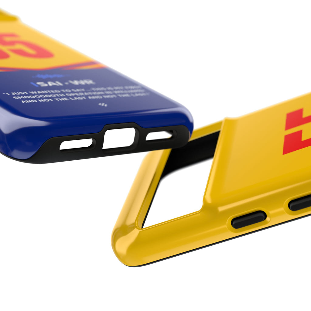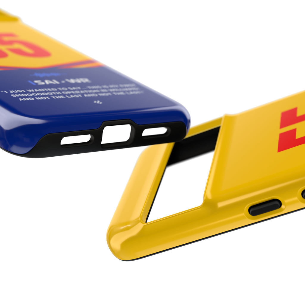 Support your favorite F1 driver with the exclusive Carlos Sainz F1 2025 Helmet Phone Case. It's the perfect accessory for every passionate Formula 1 and Sainz fan. Featuring Carlos's iconic #55 race number and his bold 2025 helmet colors, this stylish phone case brings racing energy straight to your hand.