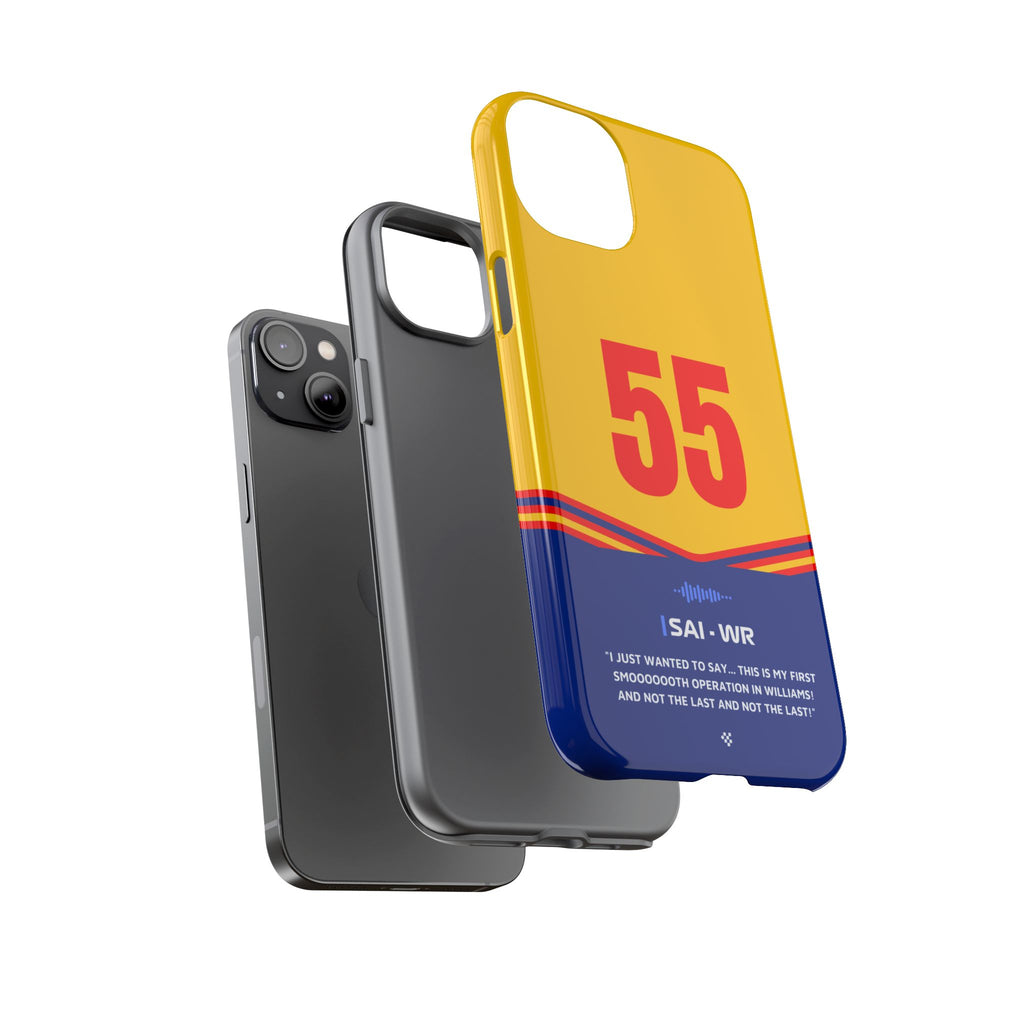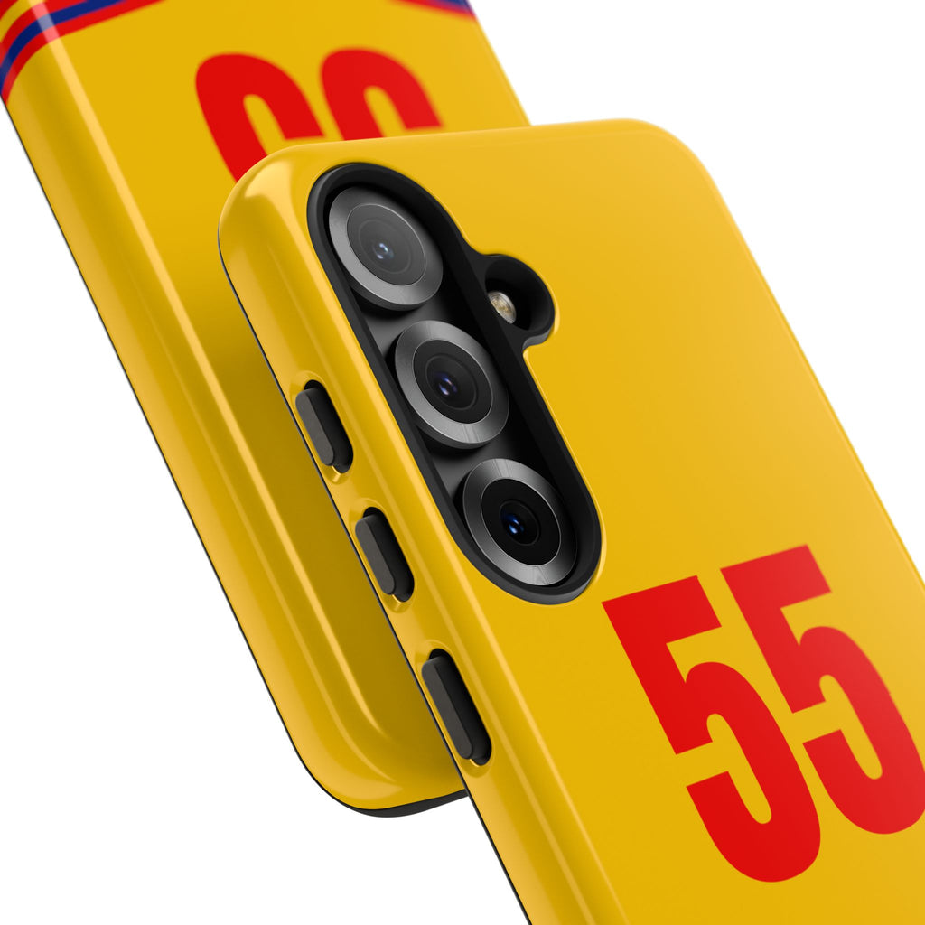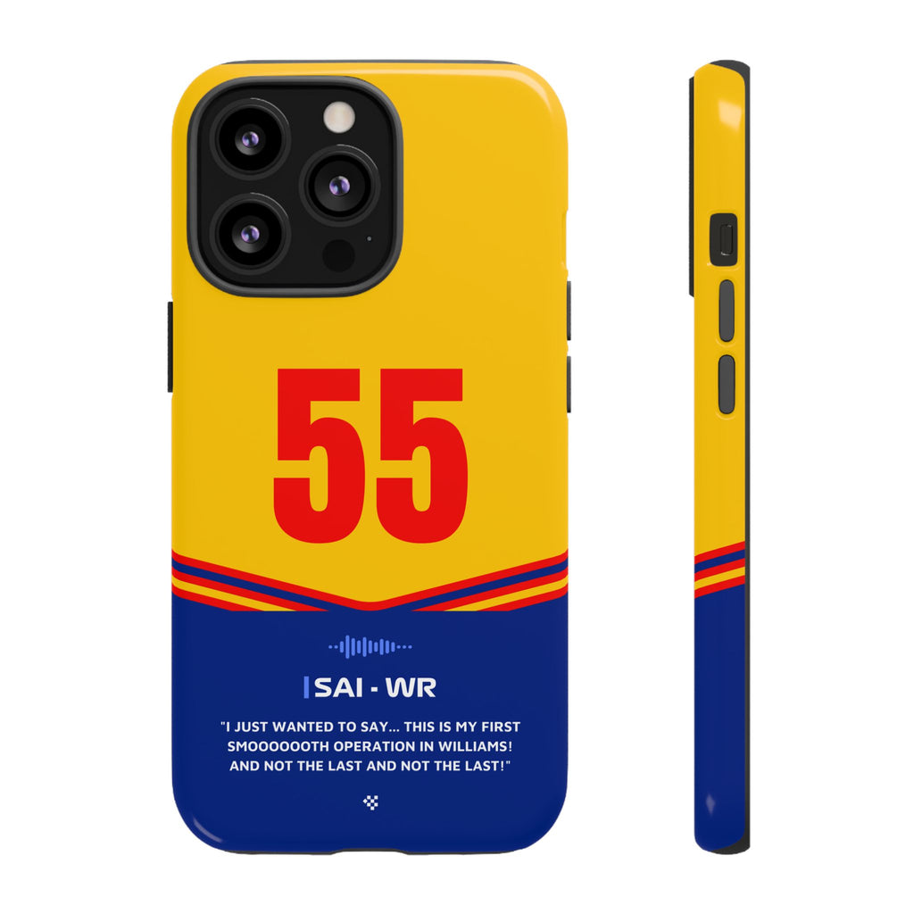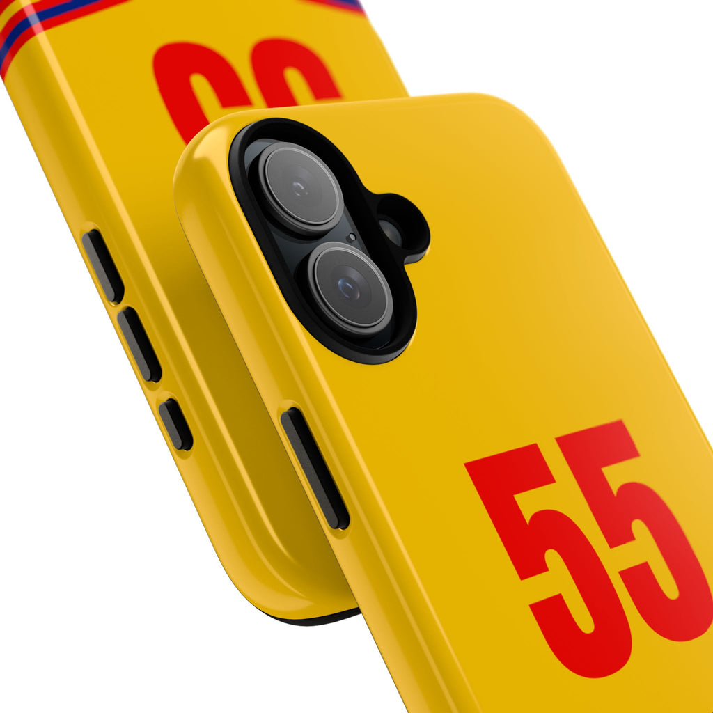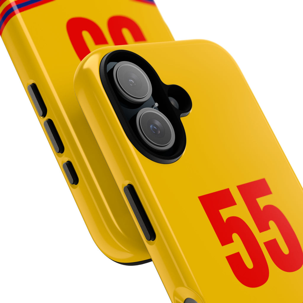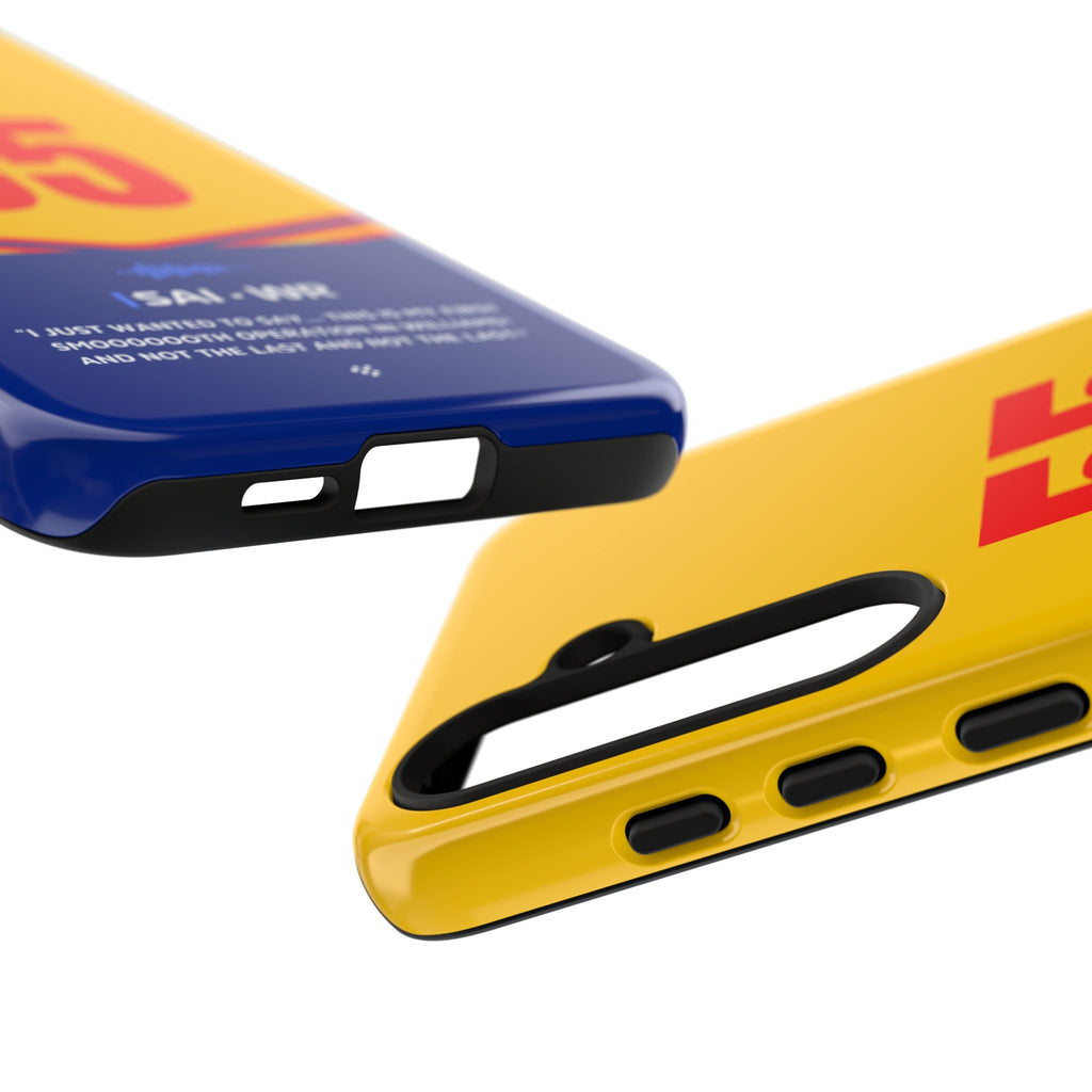 Support your favorite F1 driver with the exclusive Carlos Sainz F1 2025 Helmet Phone Case. It's the perfect accessory for every passionate Formula 1 and Sainz fan. Featuring Carlos's iconic #55 race number and his bold 2025 helmet colors, this stylish phone case brings racing energy straight to your hand.