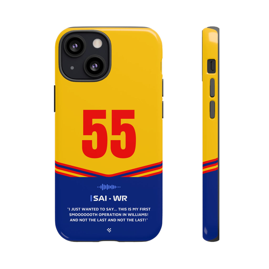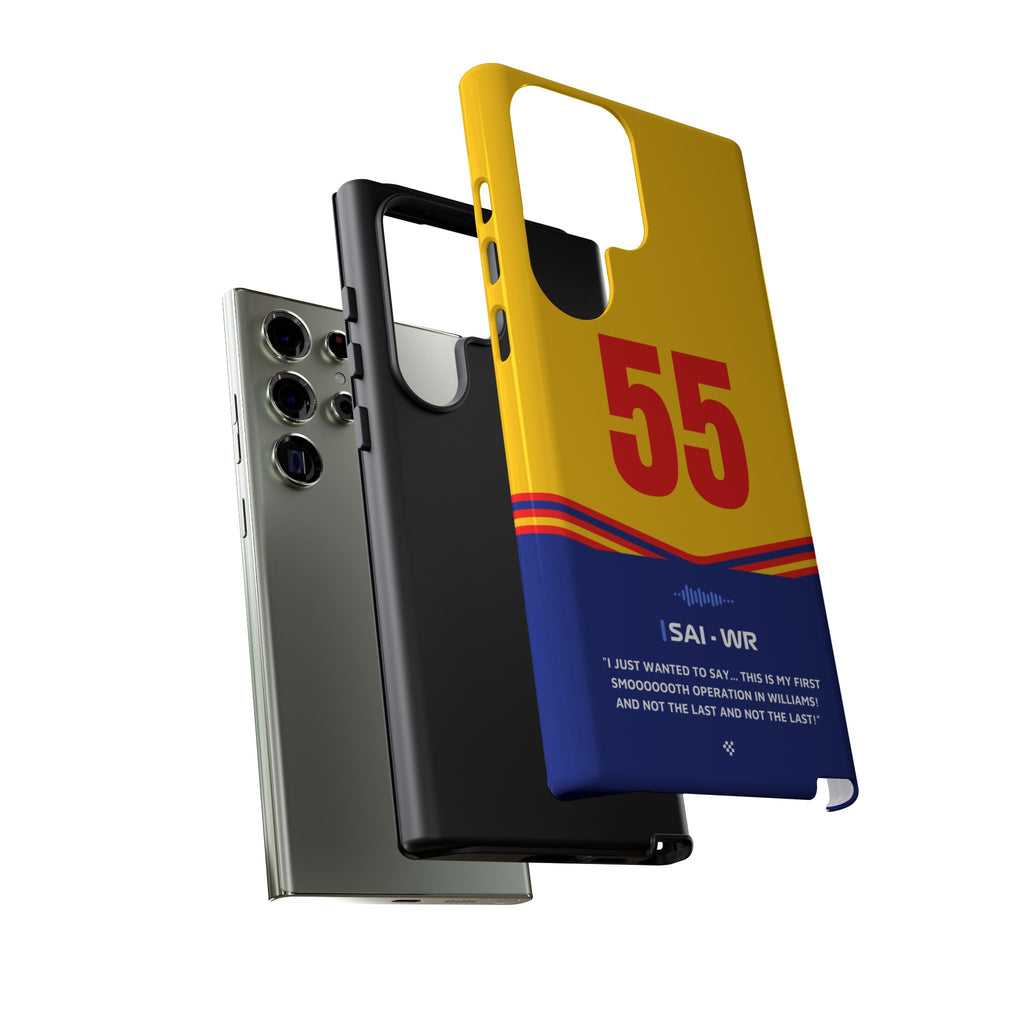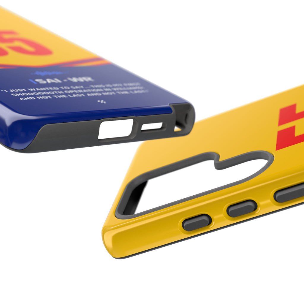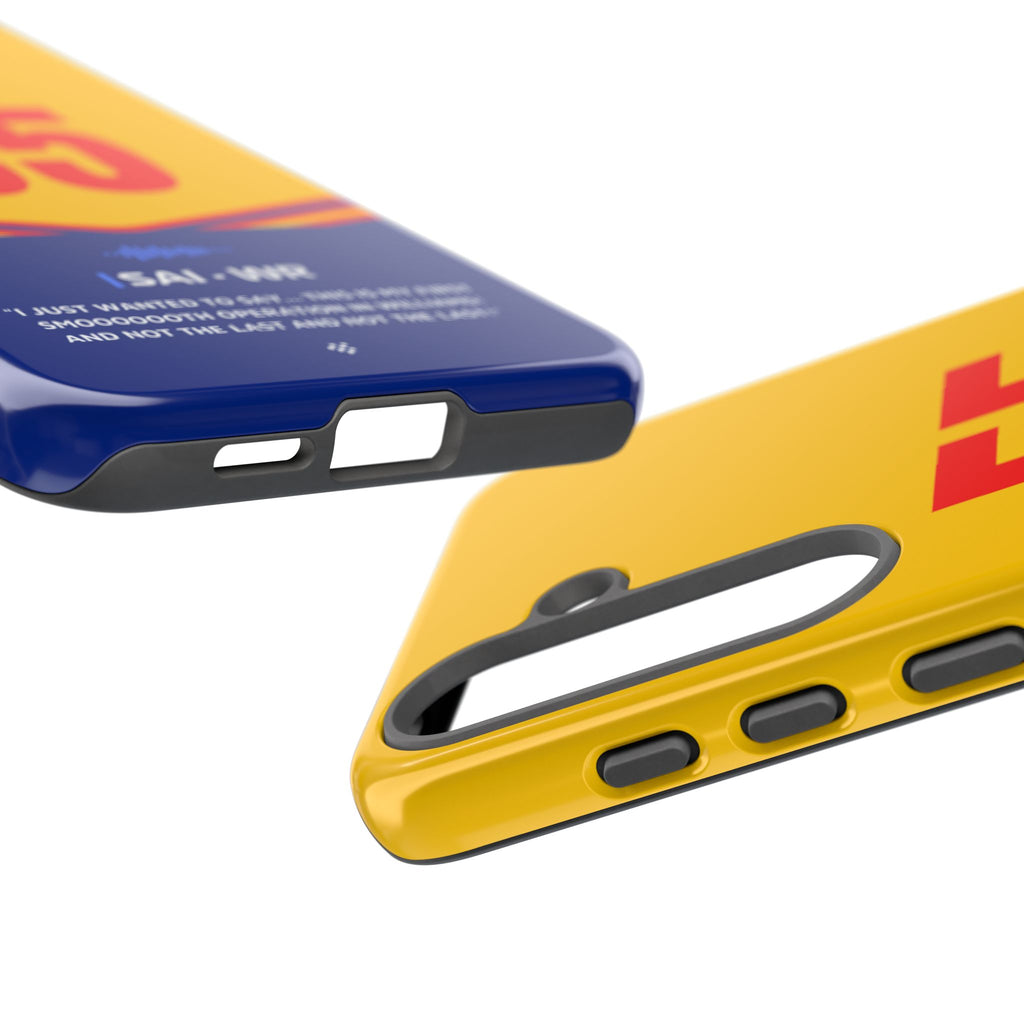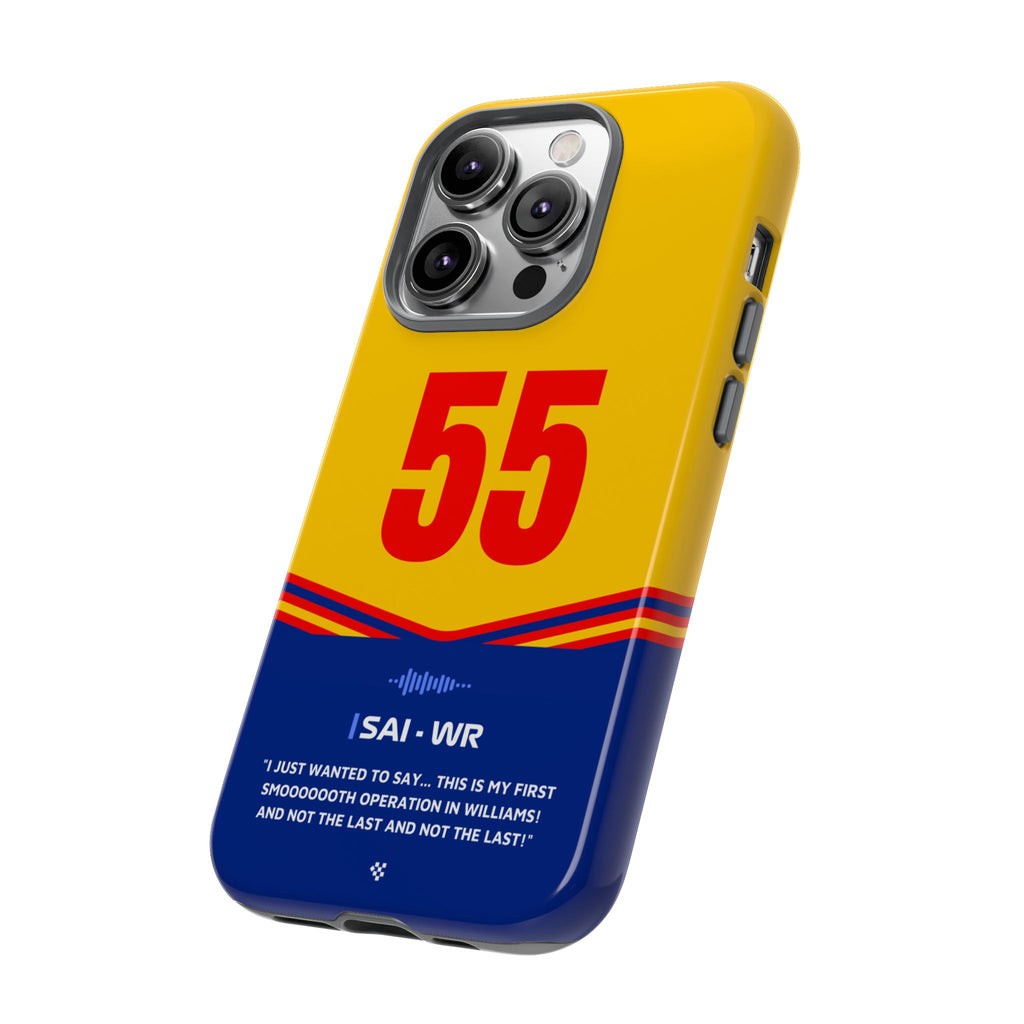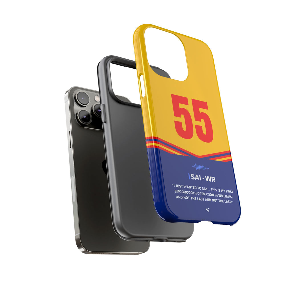 Support your favorite F1 driver with the exclusive Carlos Sainz F1 2025 Helmet Phone Case. It's the perfect accessory for every passionate Formula 1 and Sainz fan. Featuring Carlos's iconic #55 race number and his bold 2025 helmet colors, this stylish phone case brings racing energy straight to your hand.