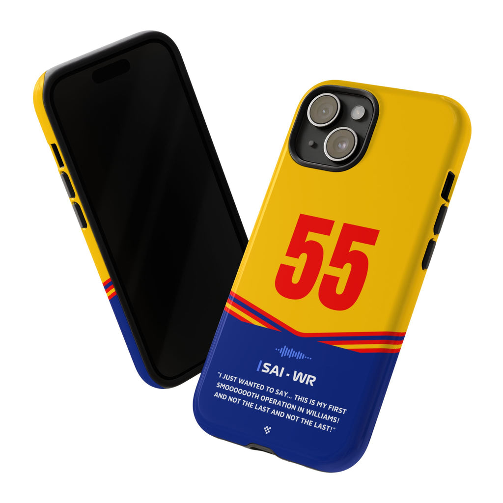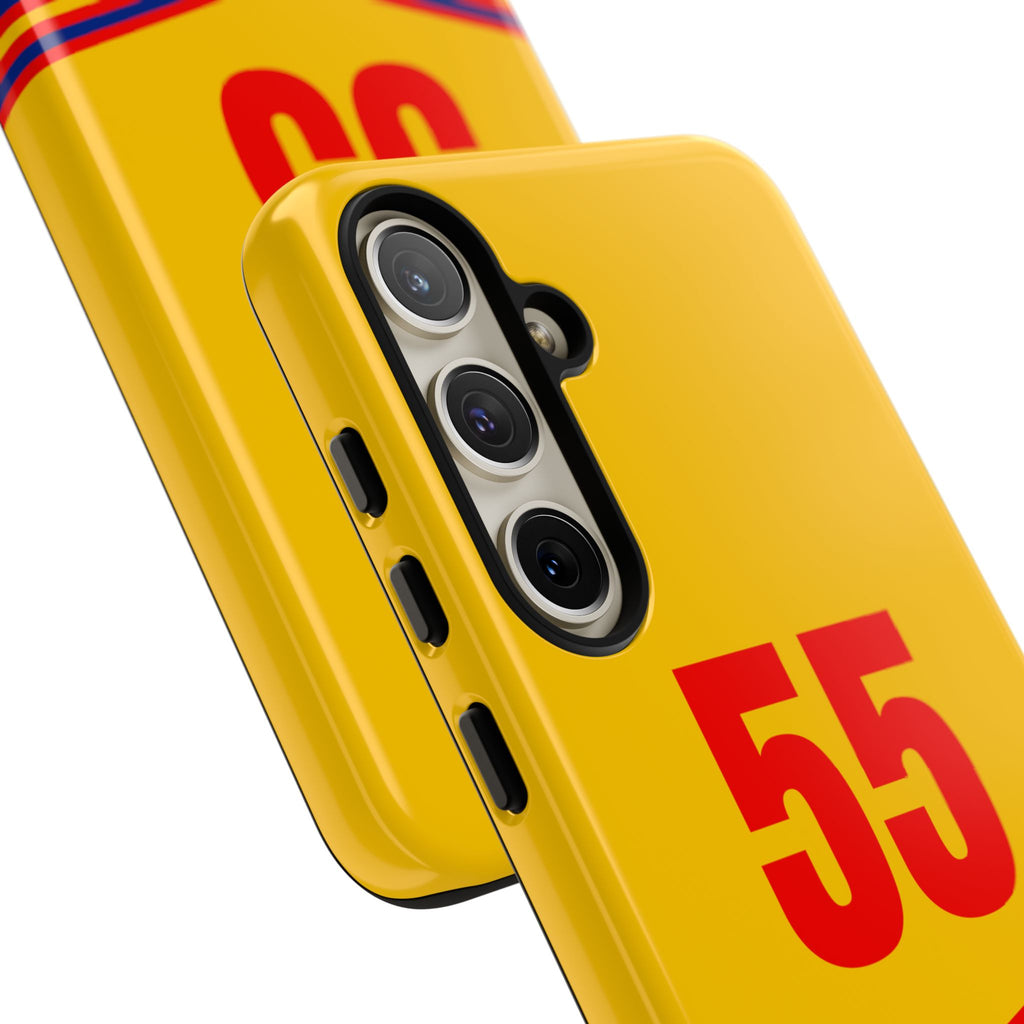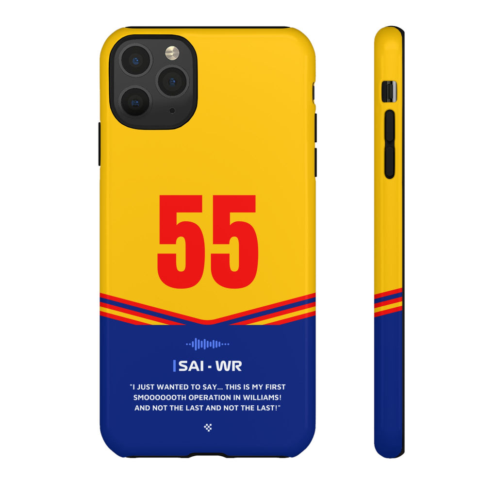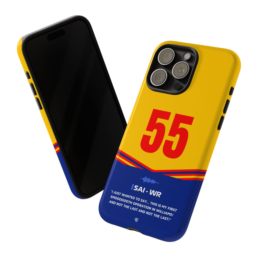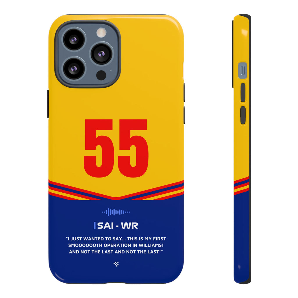 Support your favorite F1 driver with the exclusive Carlos Sainz F1 2025 Helmet Phone Case. It's the perfect accessory for every passionate Formula 1 and Sainz fan. Featuring Carlos's iconic #55 race number and his bold 2025 helmet colors, this stylish phone case brings racing energy straight to your hand.