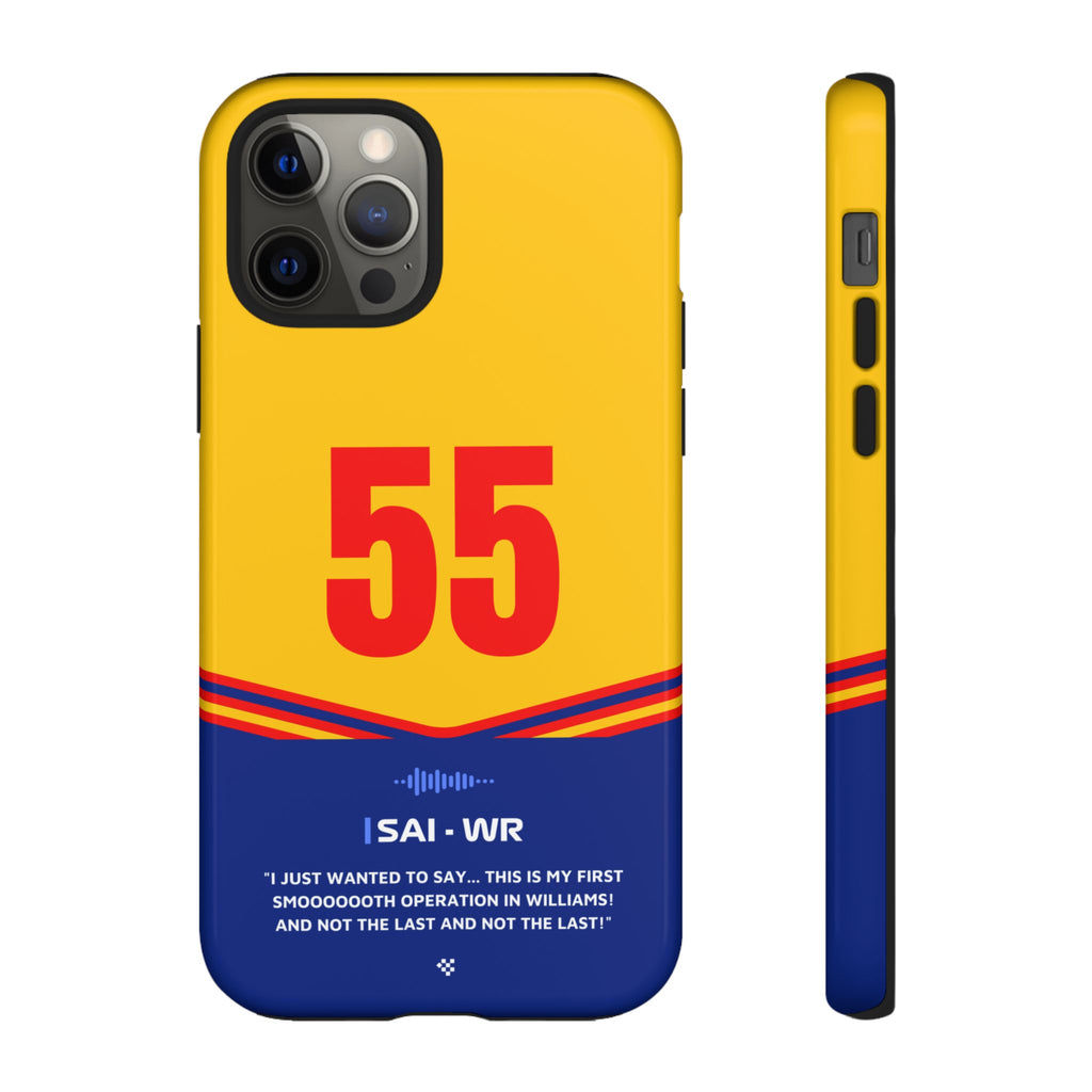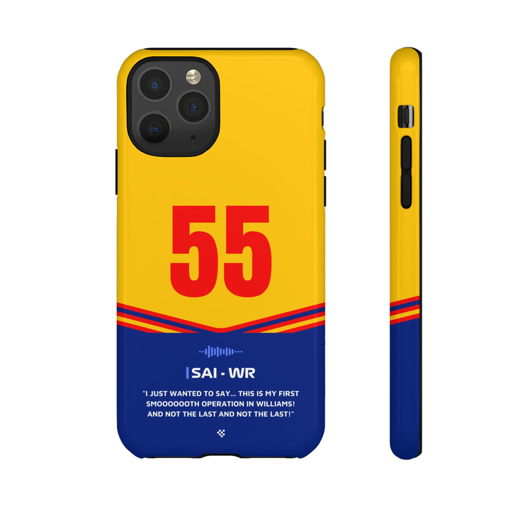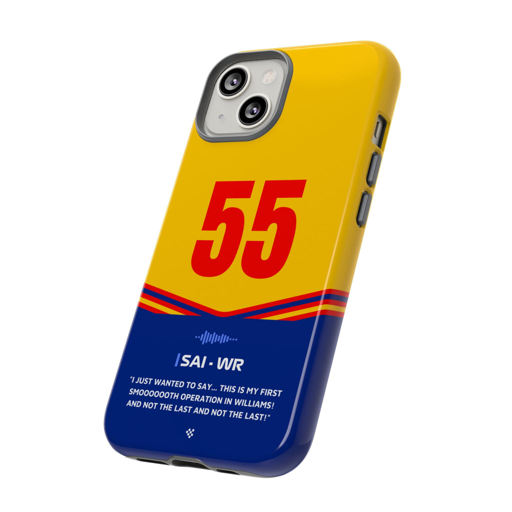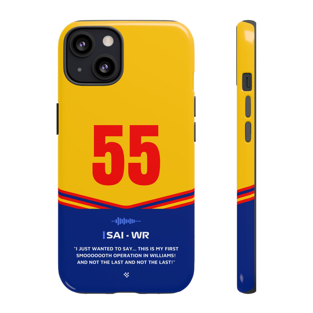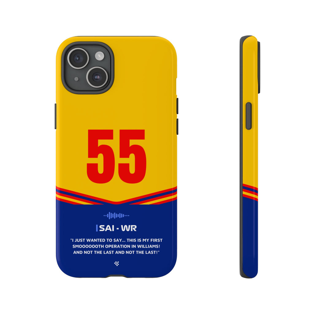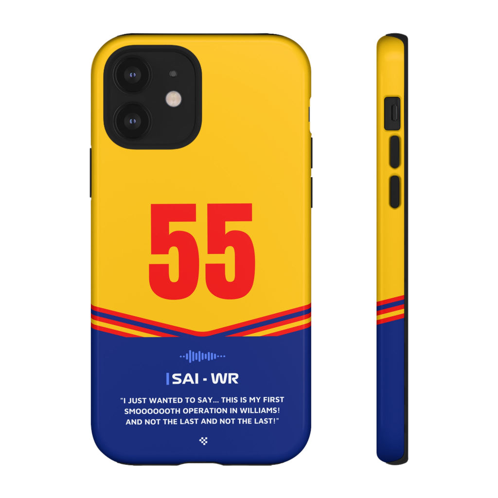 Support your favorite F1 driver with the exclusive Carlos Sainz F1 2025 Helmet Phone Case. It's the perfect accessory for every passionate Formula 1 and Sainz fan. Featuring Carlos's iconic #55 race number and his bold 2025 helmet colors, this stylish phone case brings racing energy straight to your hand.