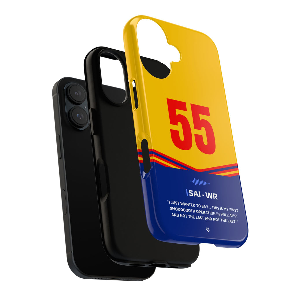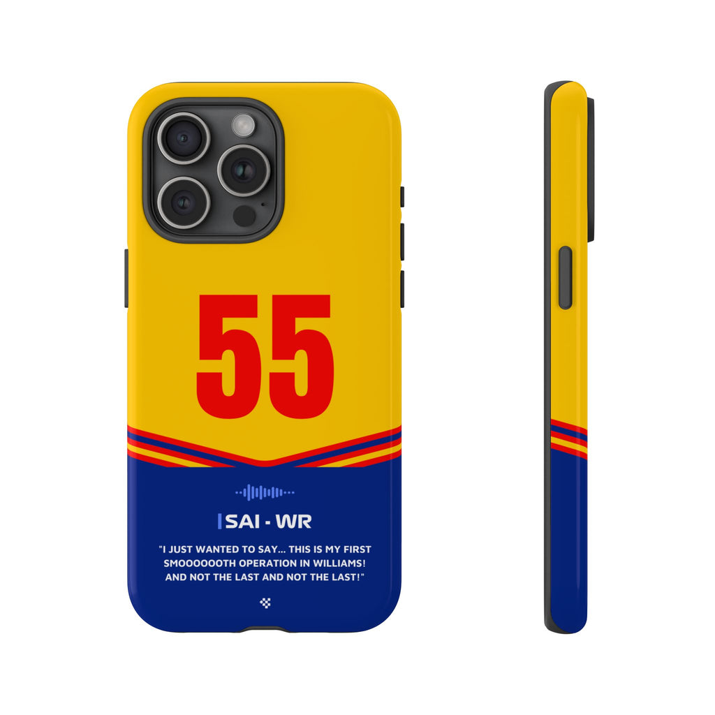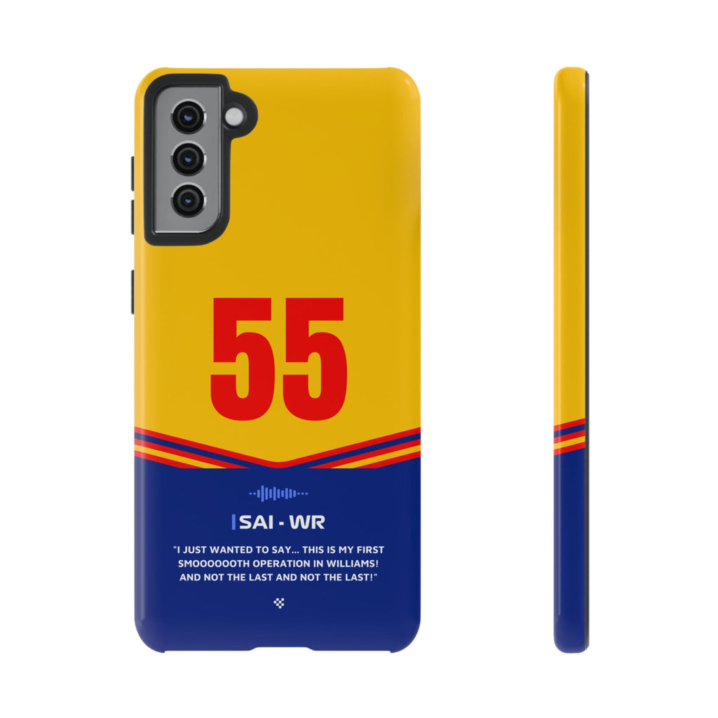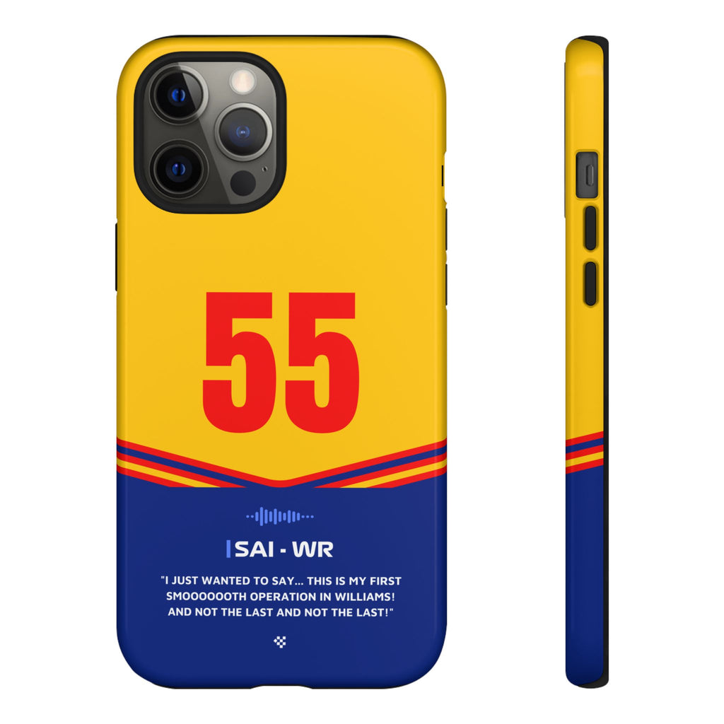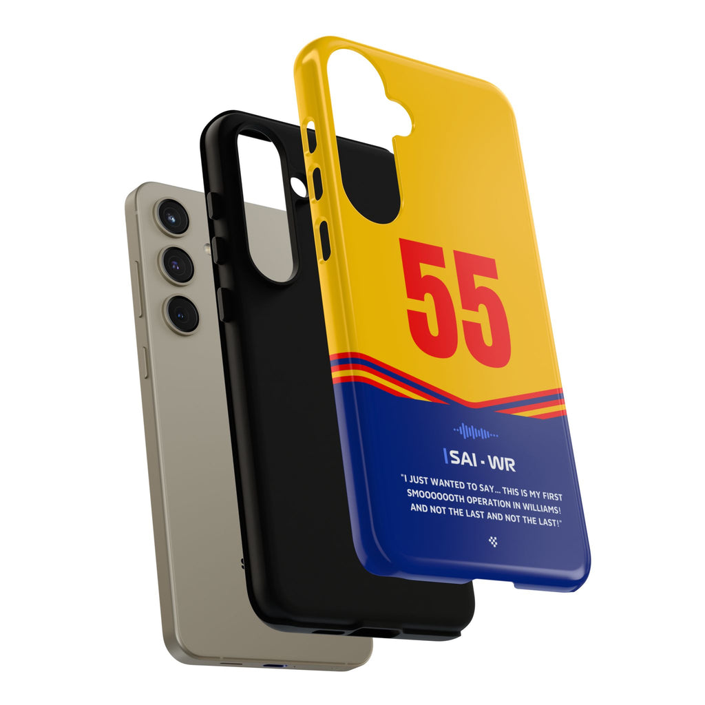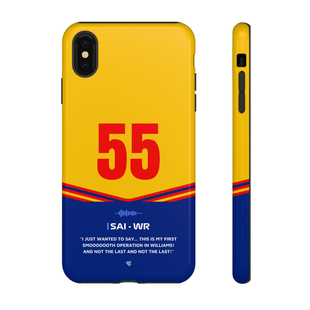 Support your favorite F1 driver with the exclusive Carlos Sainz F1 2025 Helmet Phone Case. It's the perfect accessory for every passionate Formula 1 and Sainz fan. Featuring Carlos's iconic #55 race number and his bold 2025 helmet colors, this stylish phone case brings racing energy straight to your hand.