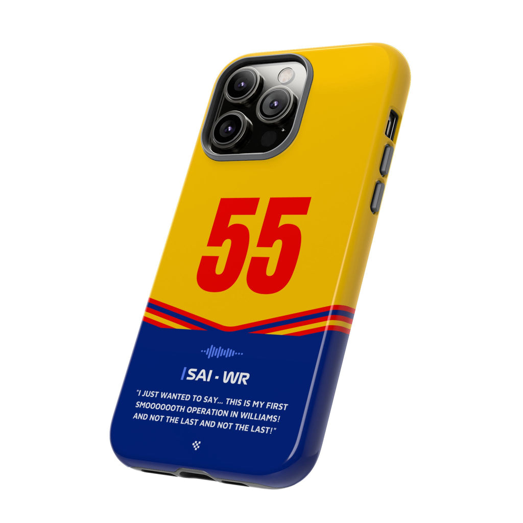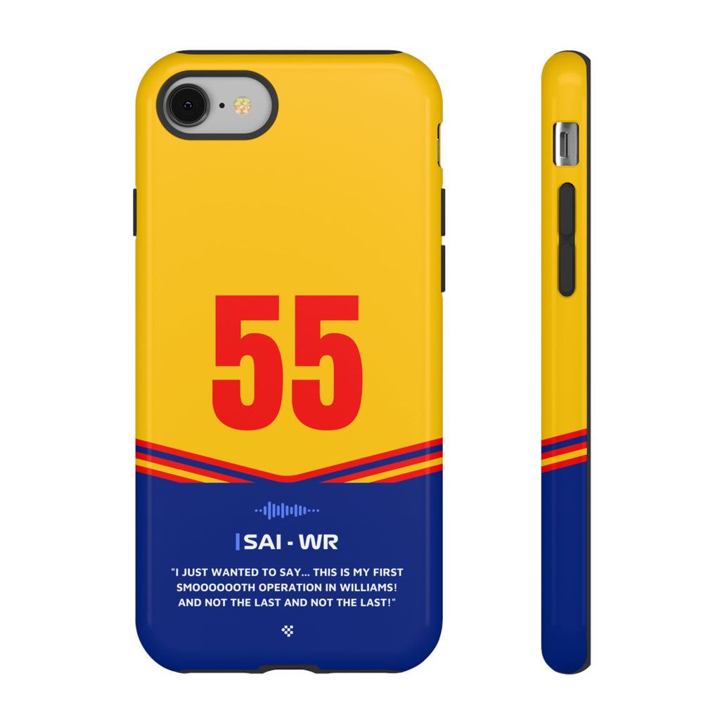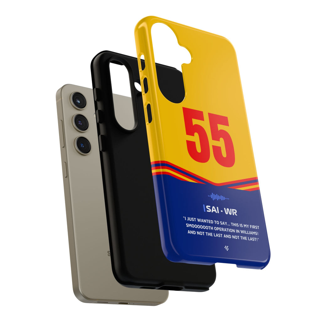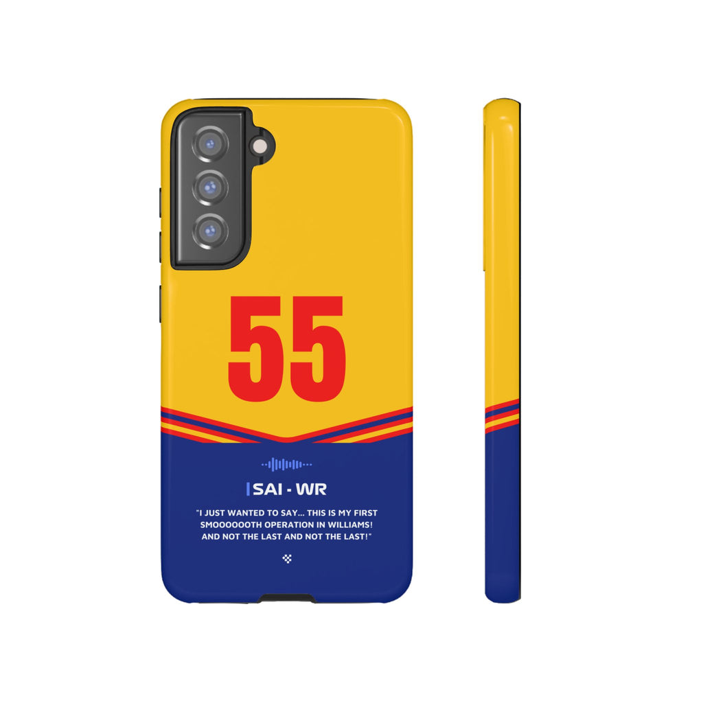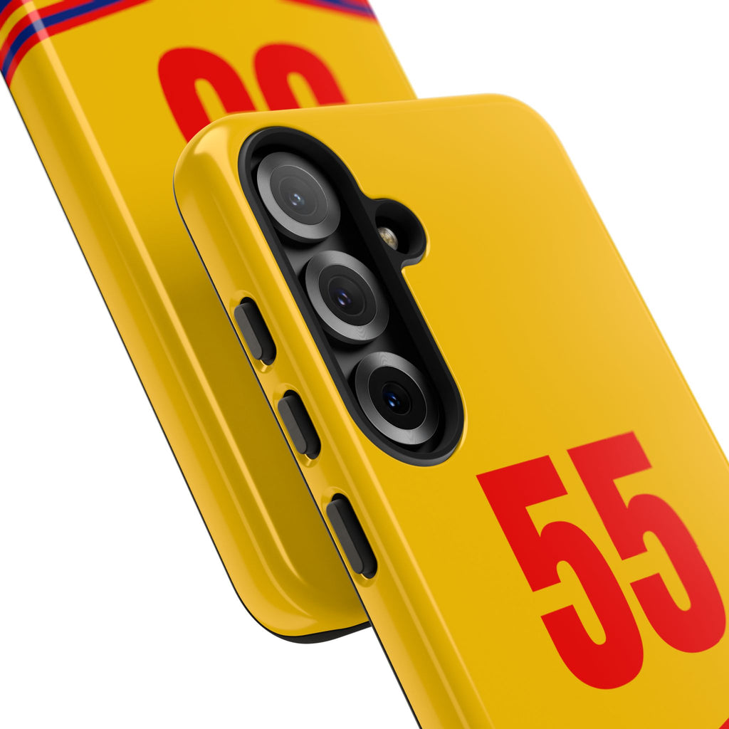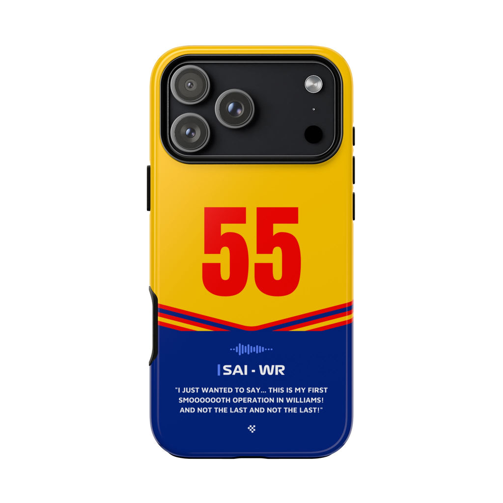 Support your favorite F1 driver with the exclusive Carlos Sainz F1 2025 Helmet Phone Case. It's the perfect accessory for every passionate Formula 1 and Sainz fan. Featuring Carlos's iconic #55 race number and his bold 2025 helmet colors, this stylish phone case brings racing energy straight to your hand.