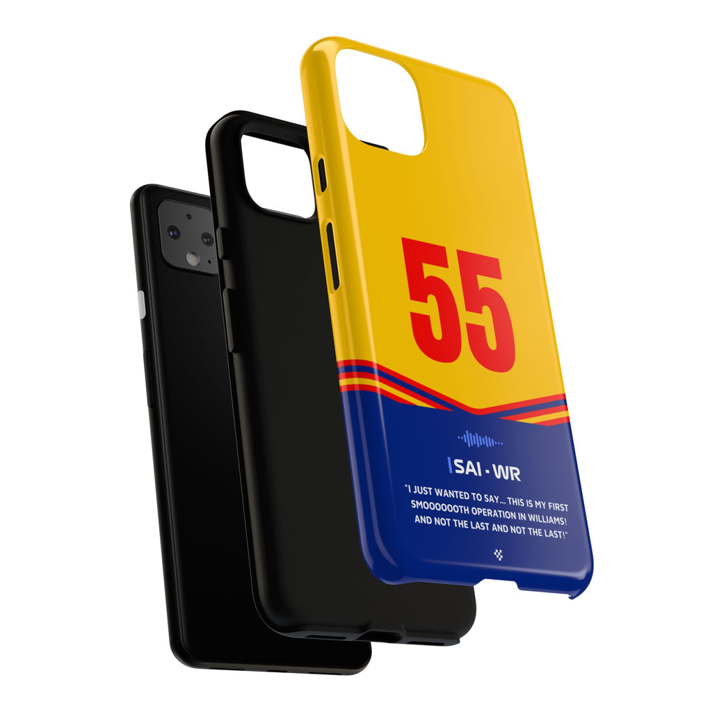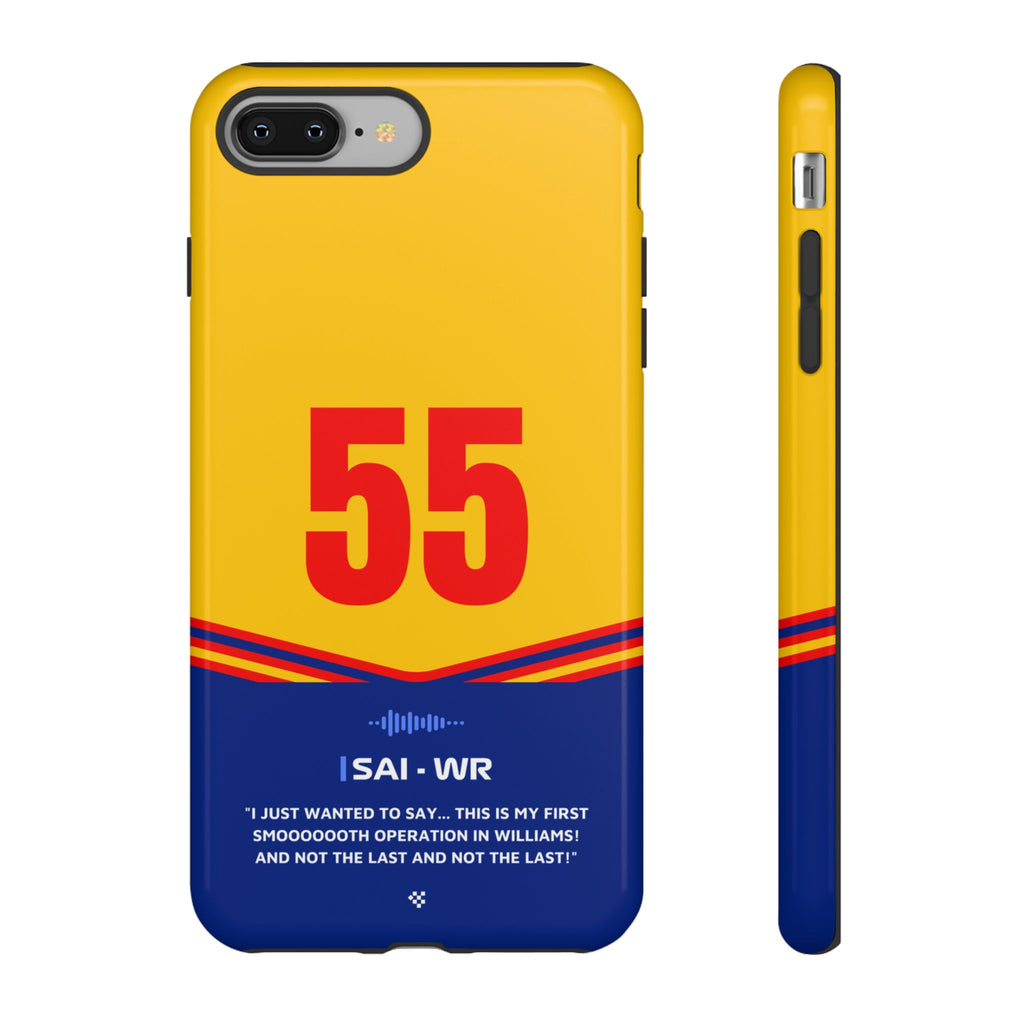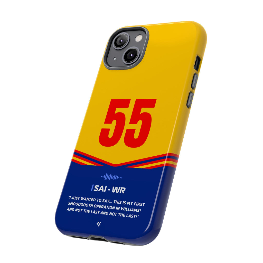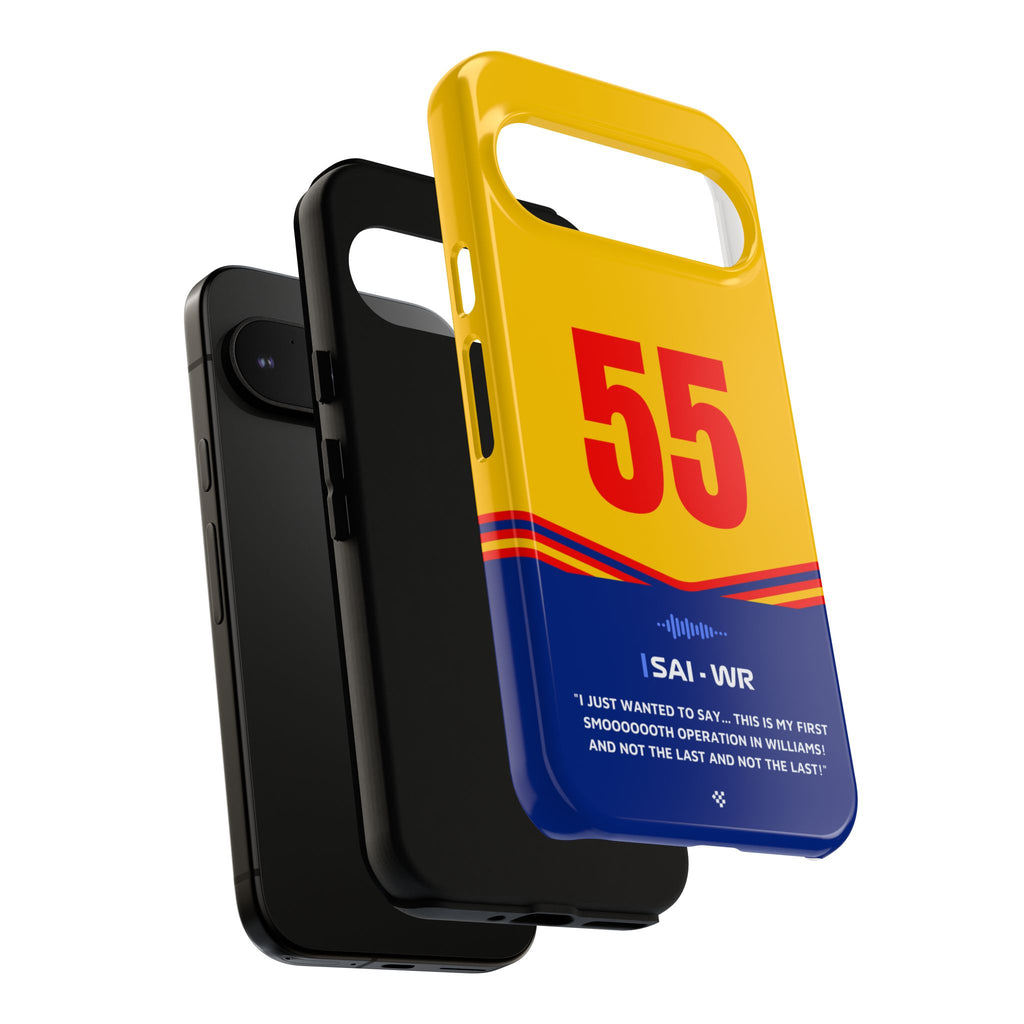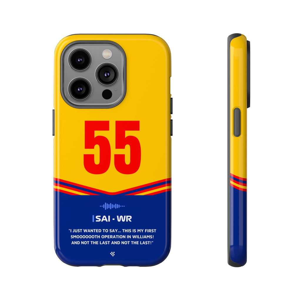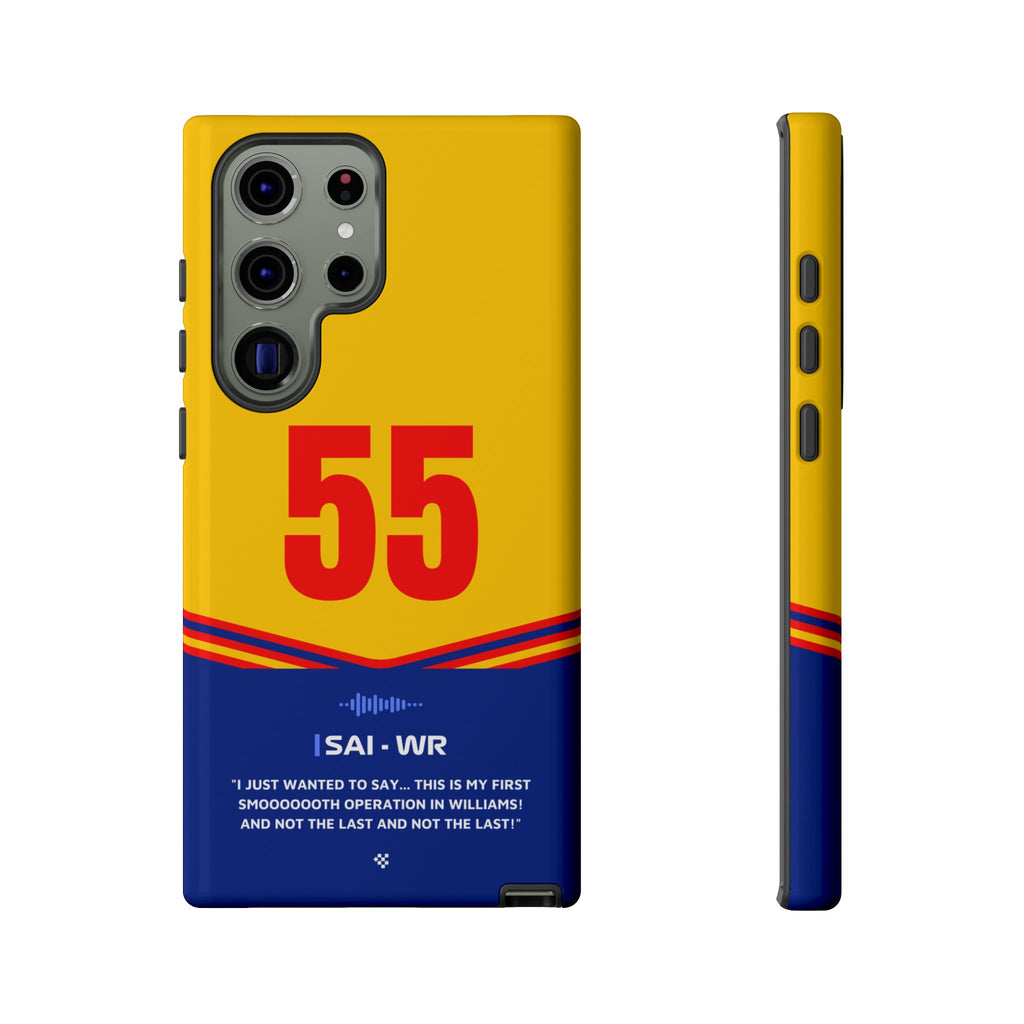 Support your favorite F1 driver with the exclusive Carlos Sainz F1 2025 Helmet Phone Case. It's the perfect accessory for every passionate Formula 1 and Sainz fan. Featuring Carlos's iconic #55 race number and his bold 2025 helmet colors, this stylish phone case brings racing energy straight to your hand.