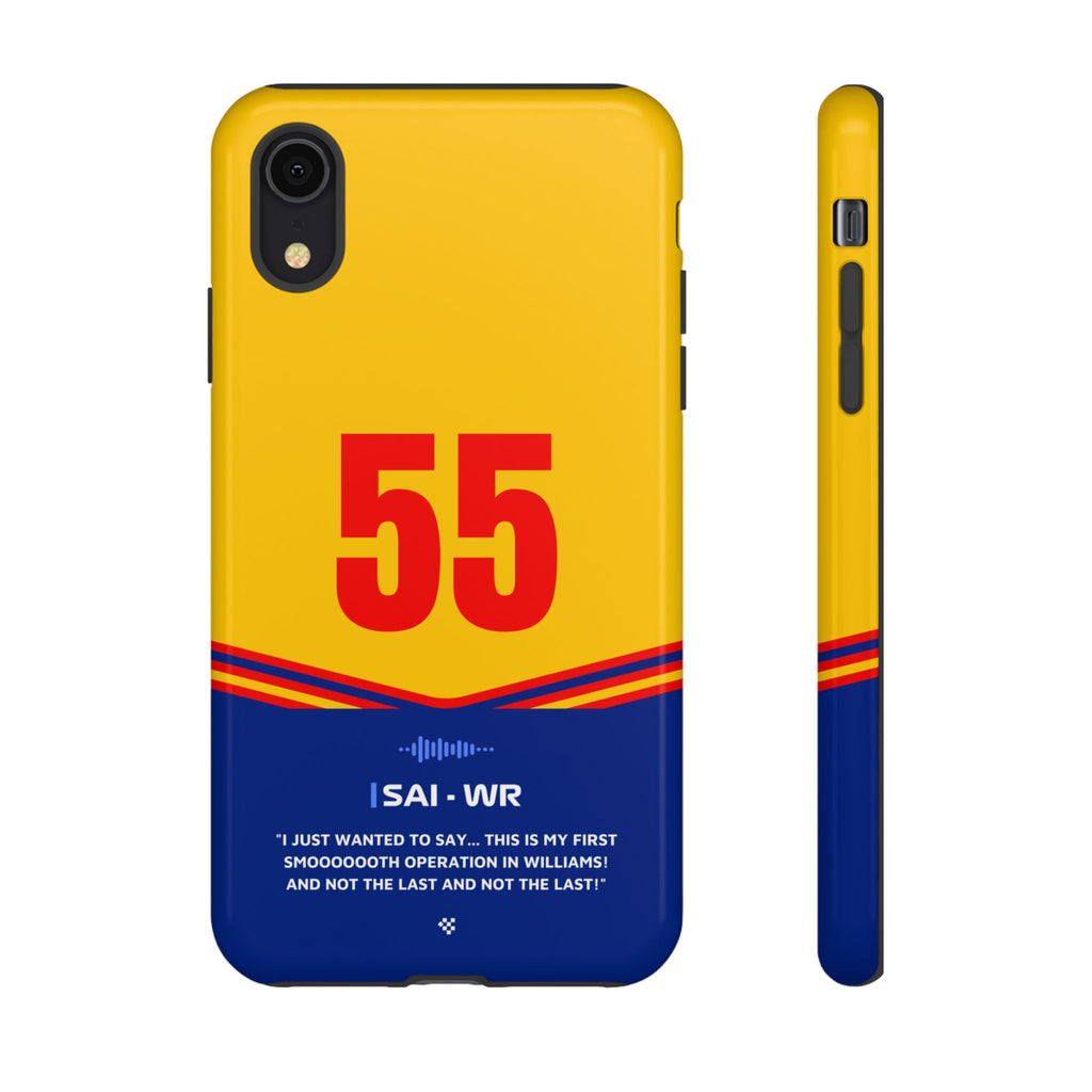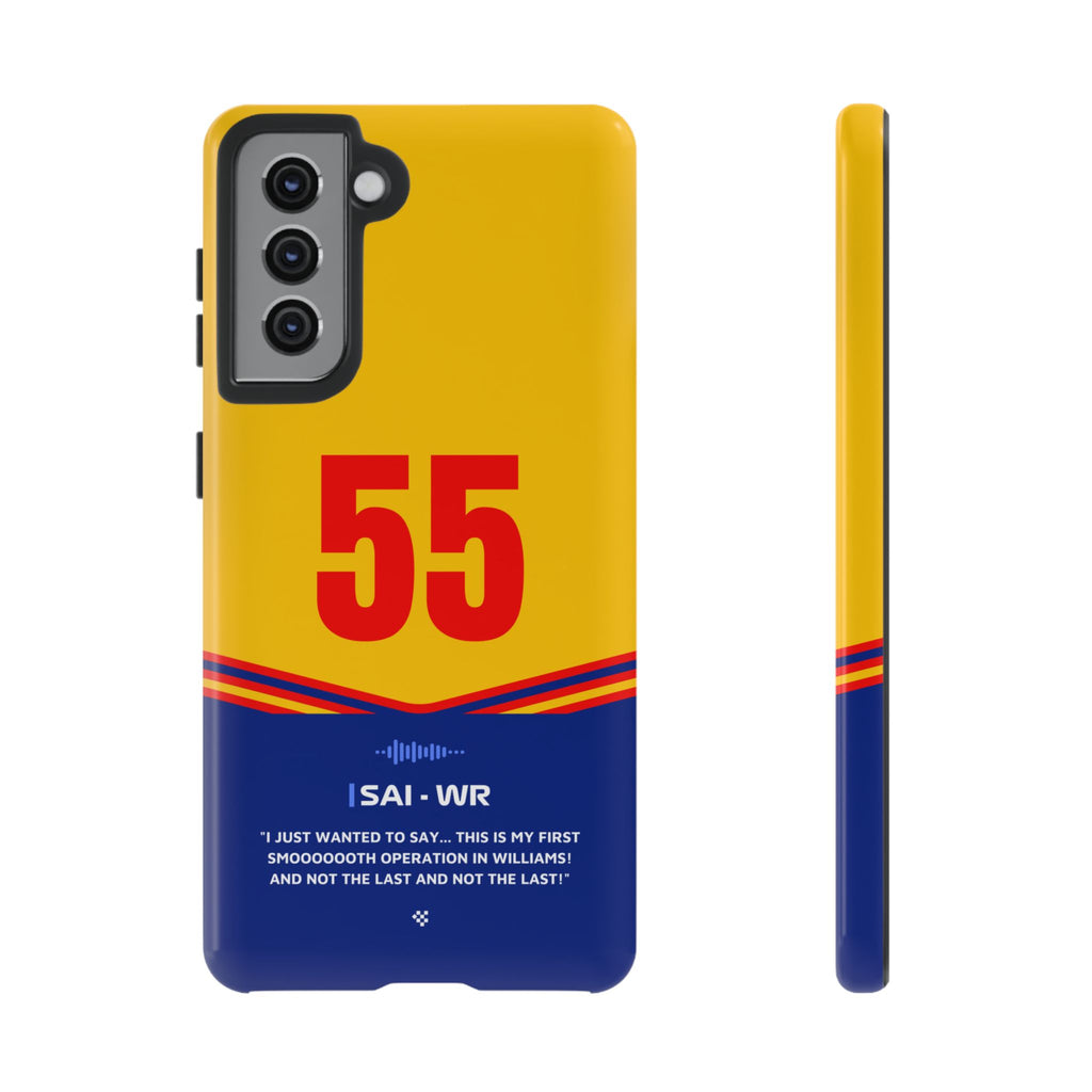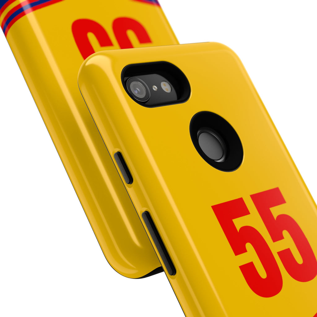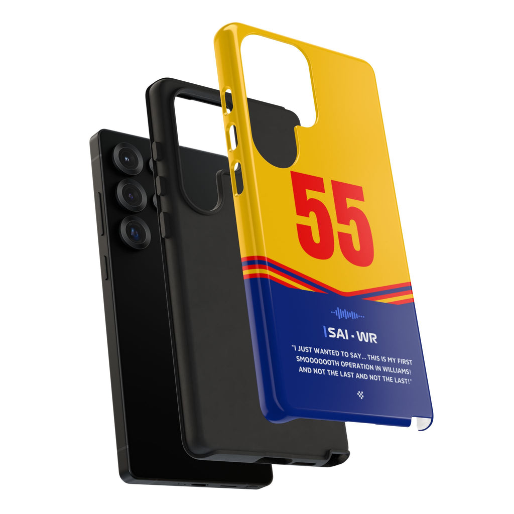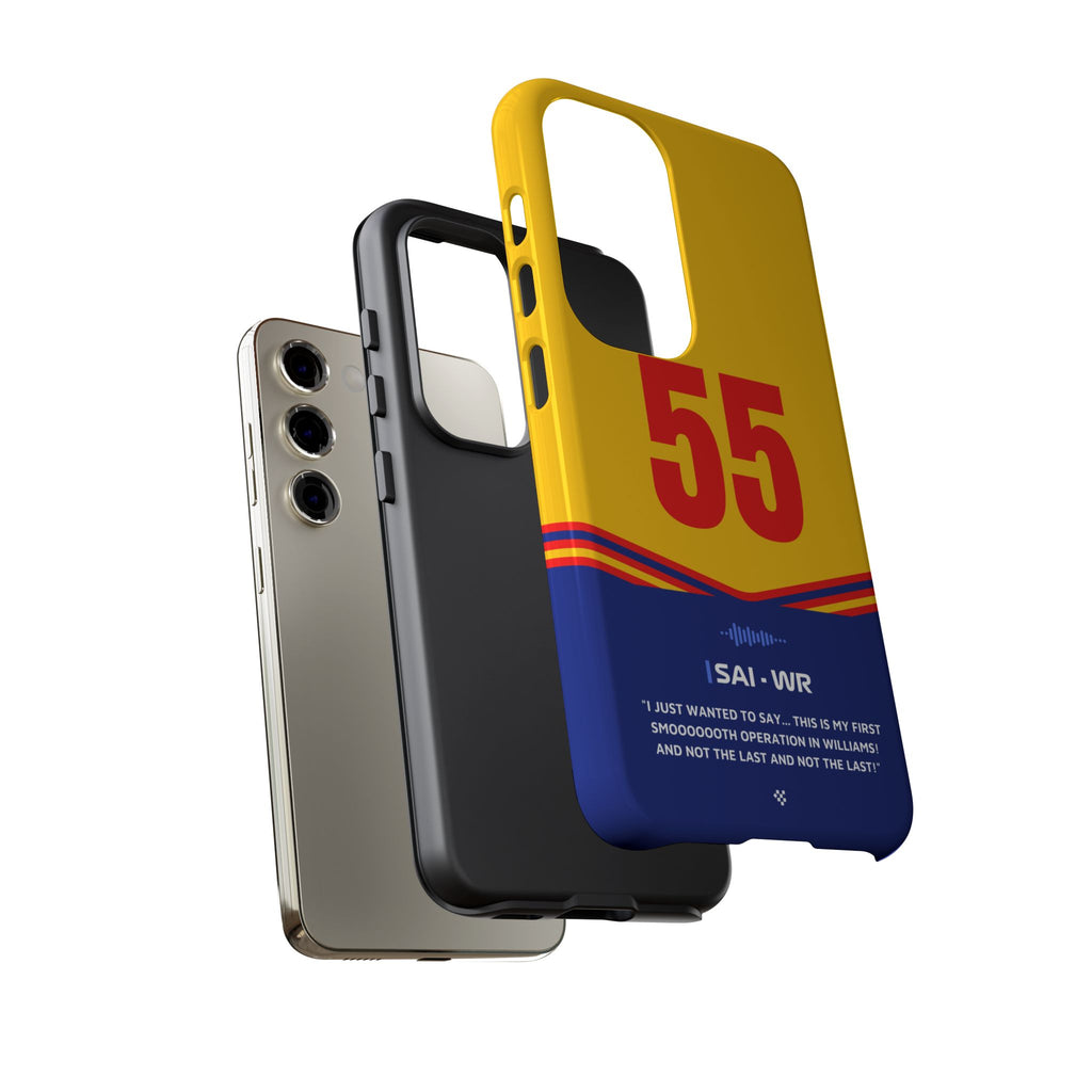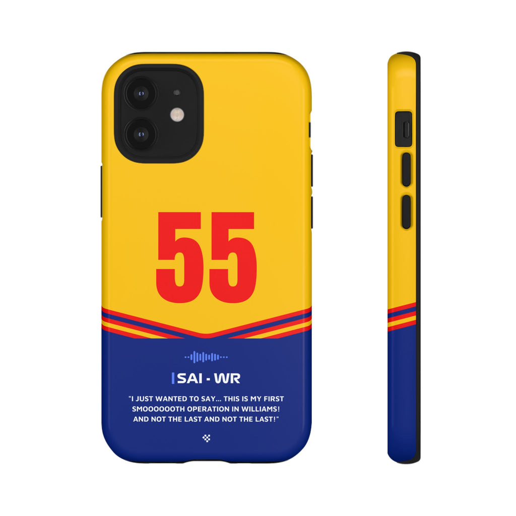 Support your favorite F1 driver with the exclusive Carlos Sainz F1 2025 Helmet Phone Case. It's the perfect accessory for every passionate Formula 1 and Sainz fan. Featuring Carlos's iconic #55 race number and his bold 2025 helmet colors, this stylish phone case brings racing energy straight to your hand.
