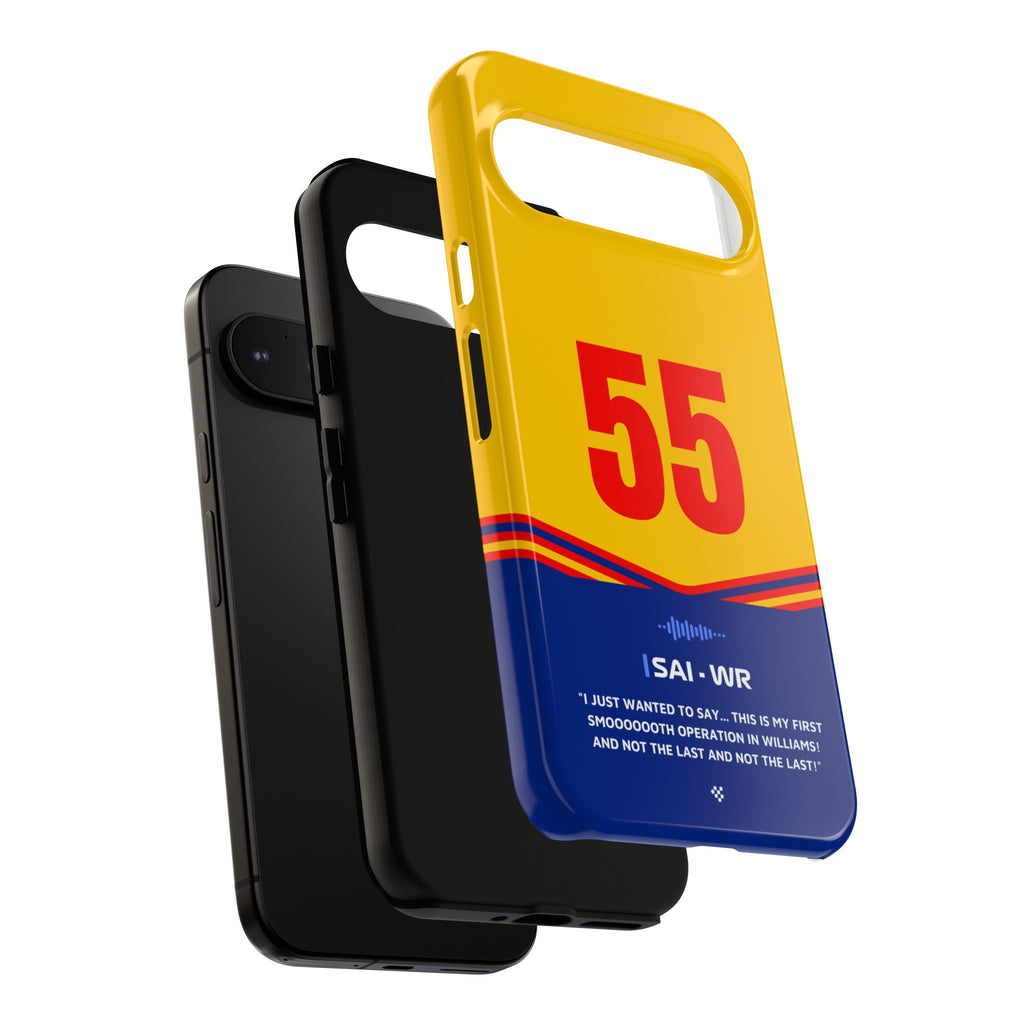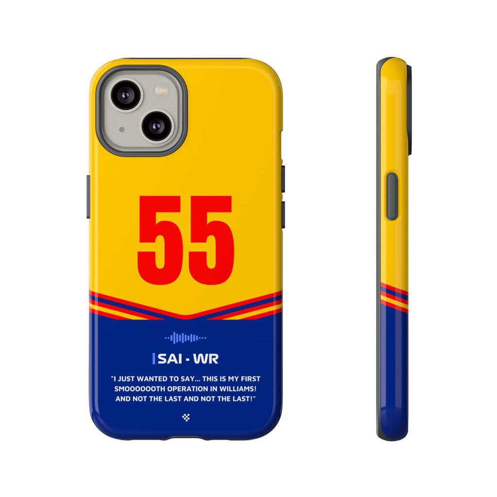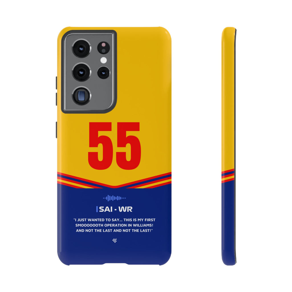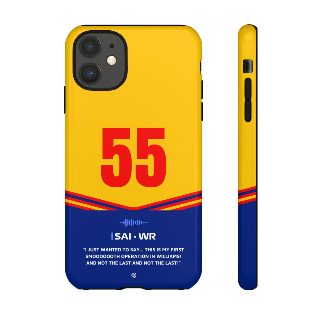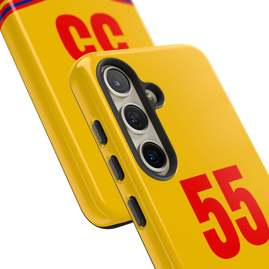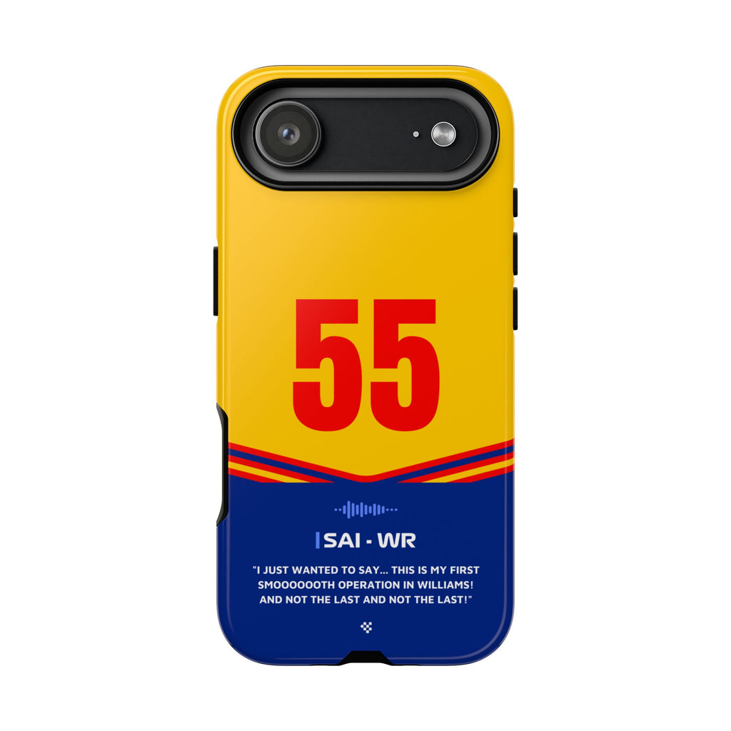 Support your favorite F1 driver with the exclusive Carlos Sainz F1 2025 Helmet Phone Case. It's the perfect accessory for every passionate Formula 1 and Sainz fan. Featuring Carlos's iconic #55 race number and his bold 2025 helmet colors, this stylish phone case brings racing energy straight to your hand.