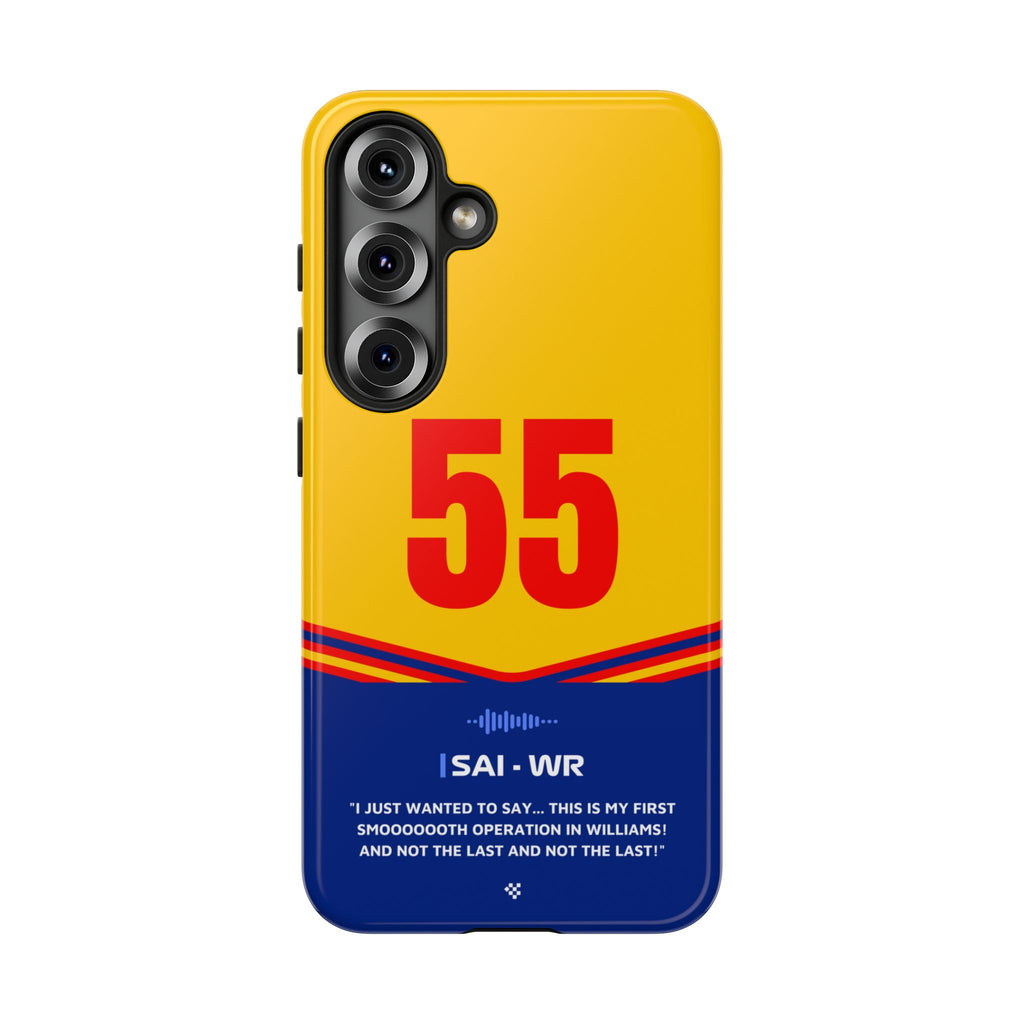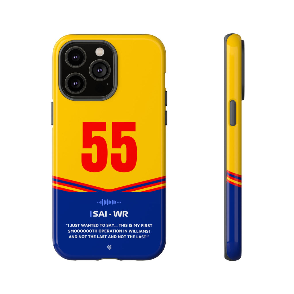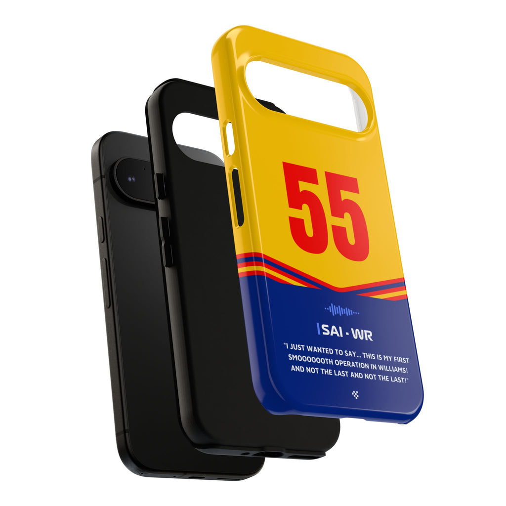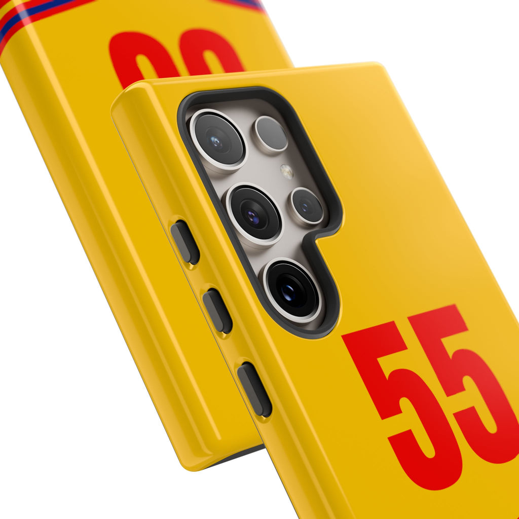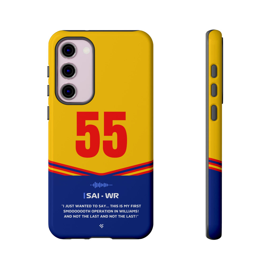 Support your favorite F1 driver with the exclusive Carlos Sainz F1 2025 Helmet Phone Case. It's the perfect accessory for every passionate Formula 1 and Sainz fan. Featuring Carlos's iconic #55 race number and his bold 2025 helmet colors, this stylish phone case brings racing energy straight to your hand.
