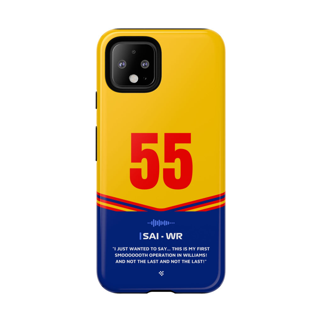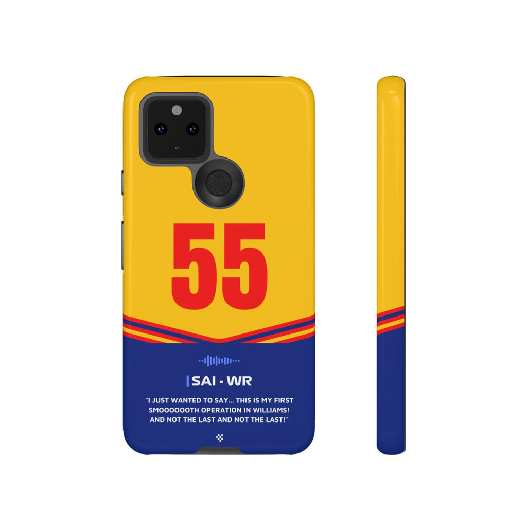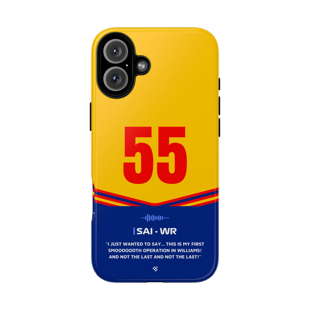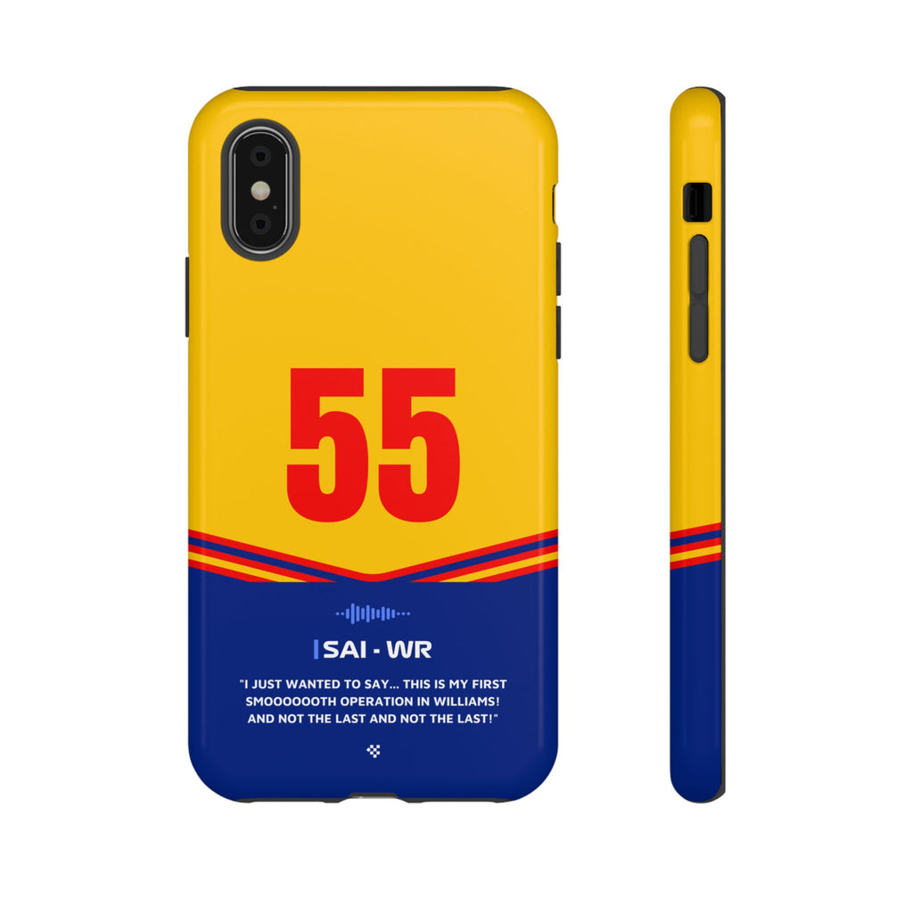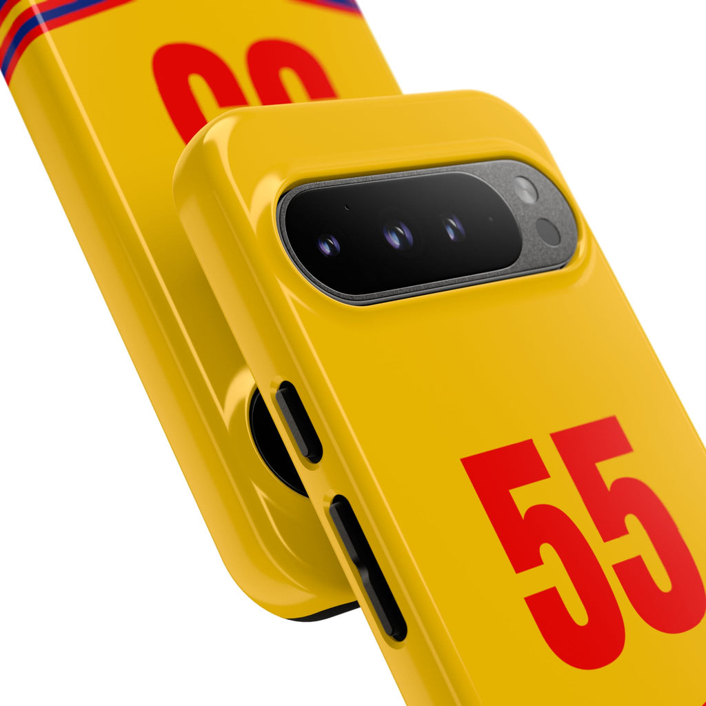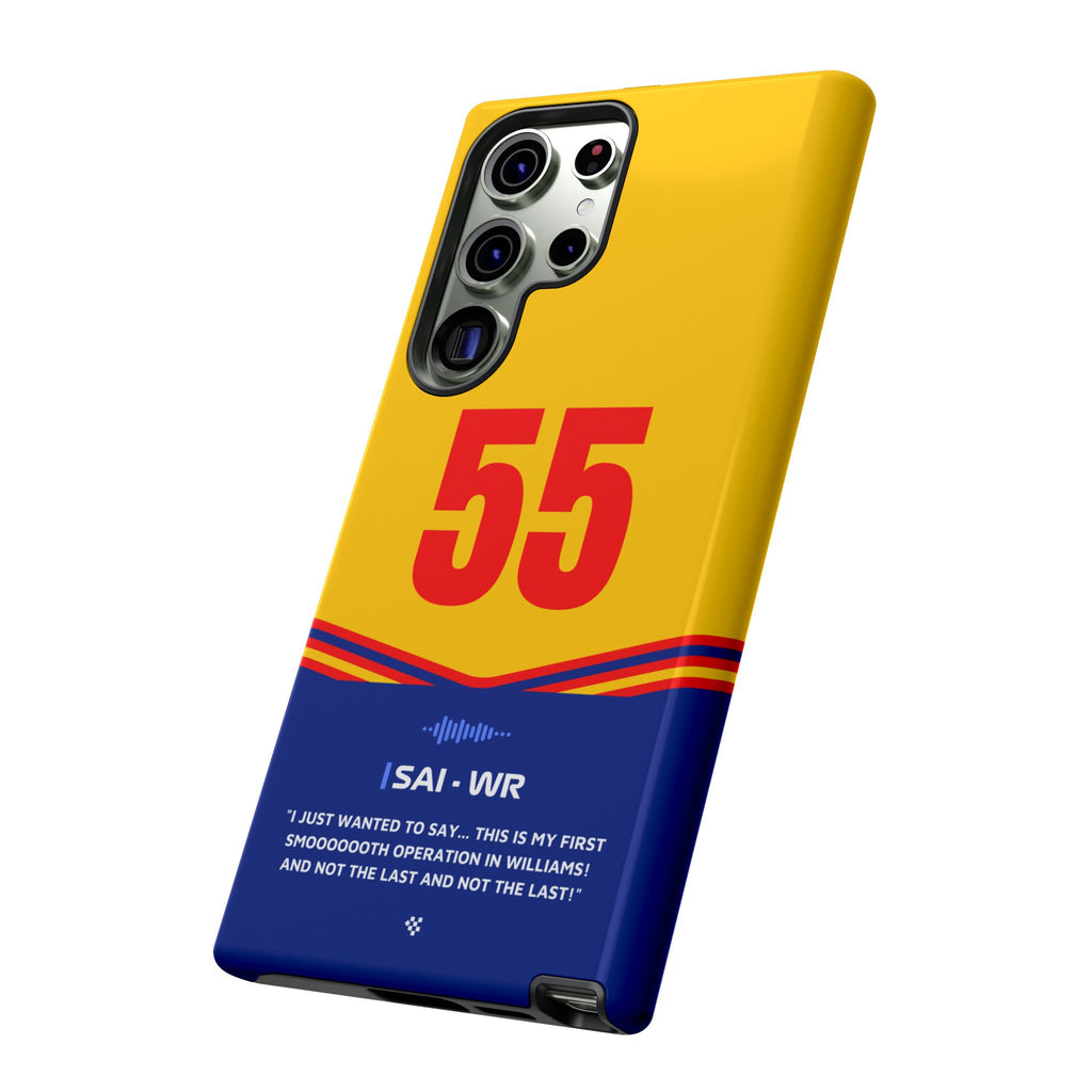 Support your favorite F1 driver with the exclusive Carlos Sainz F1 2025 Helmet Phone Case. It's the perfect accessory for every passionate Formula 1 and Sainz fan. Featuring Carlos's iconic #55 race number and his bold 2025 helmet colors, this stylish phone case brings racing energy straight to your hand.
