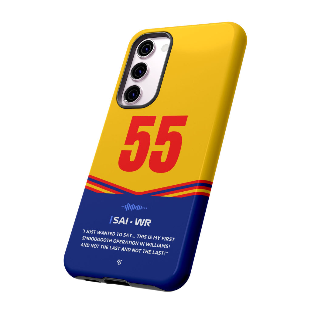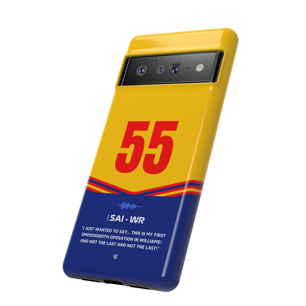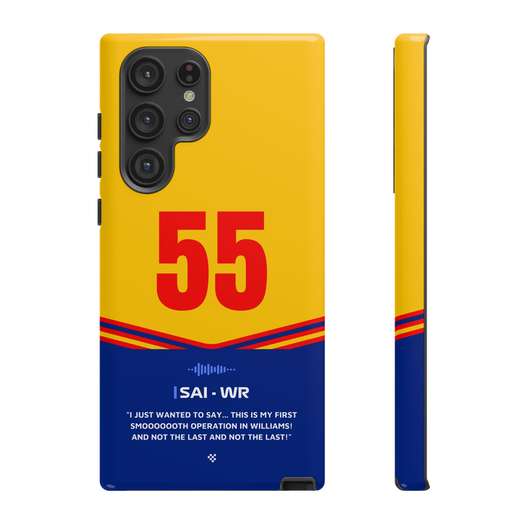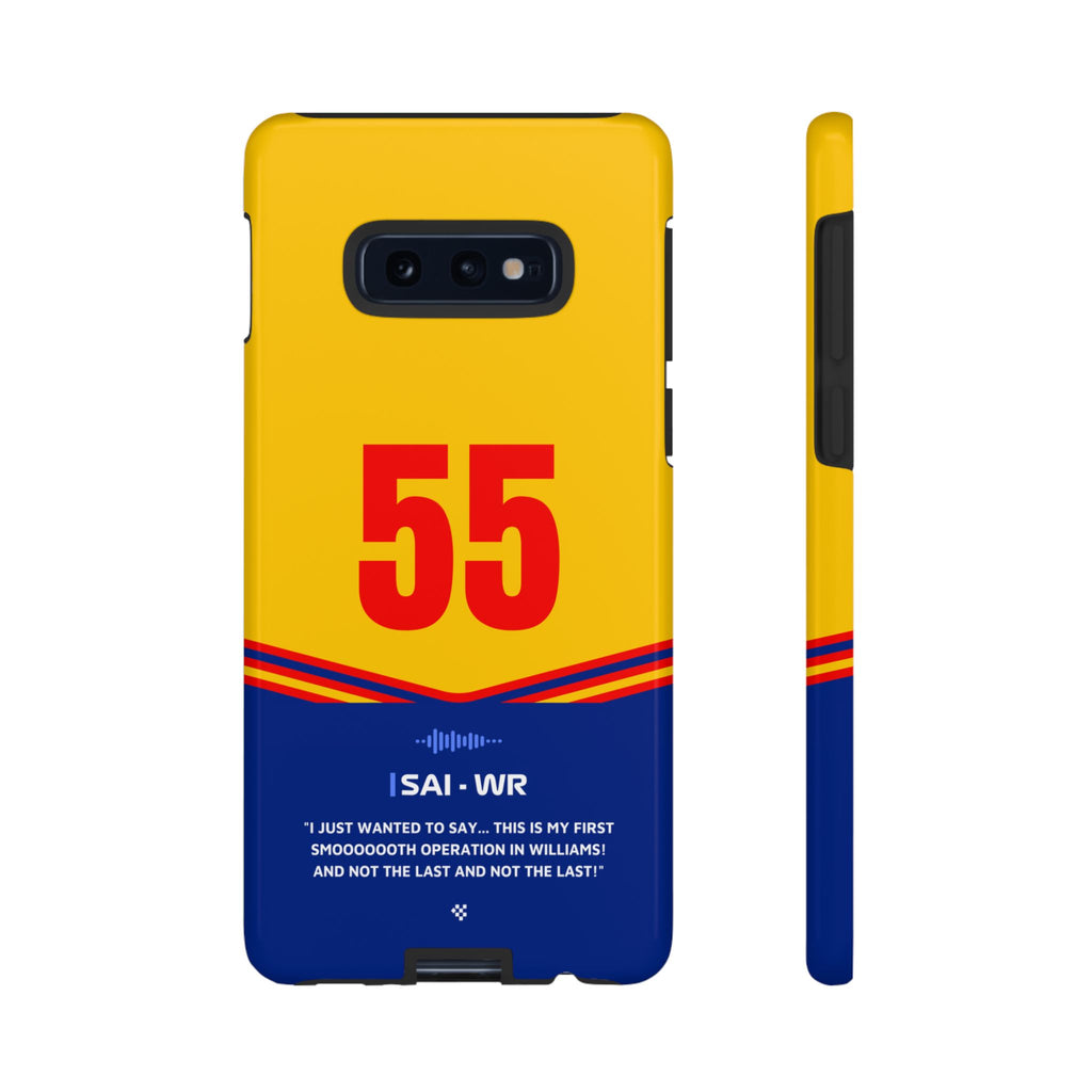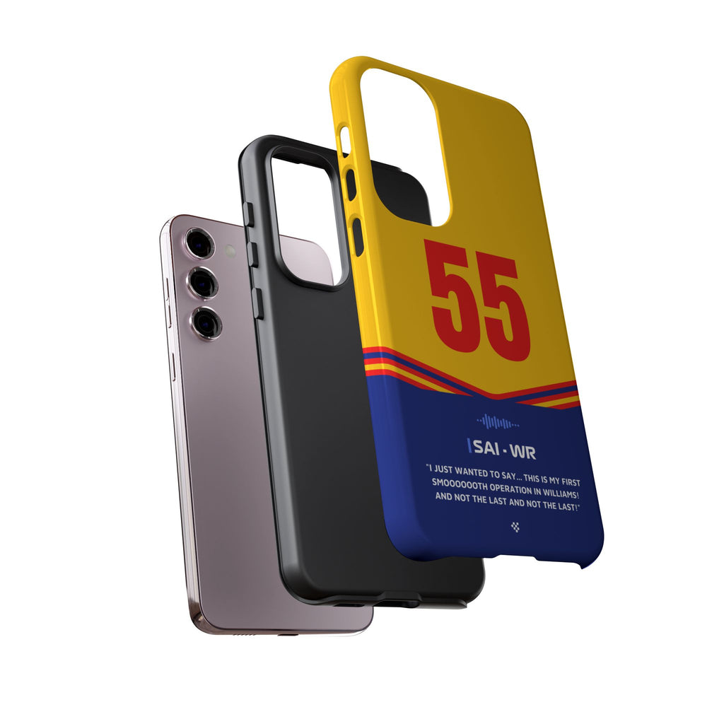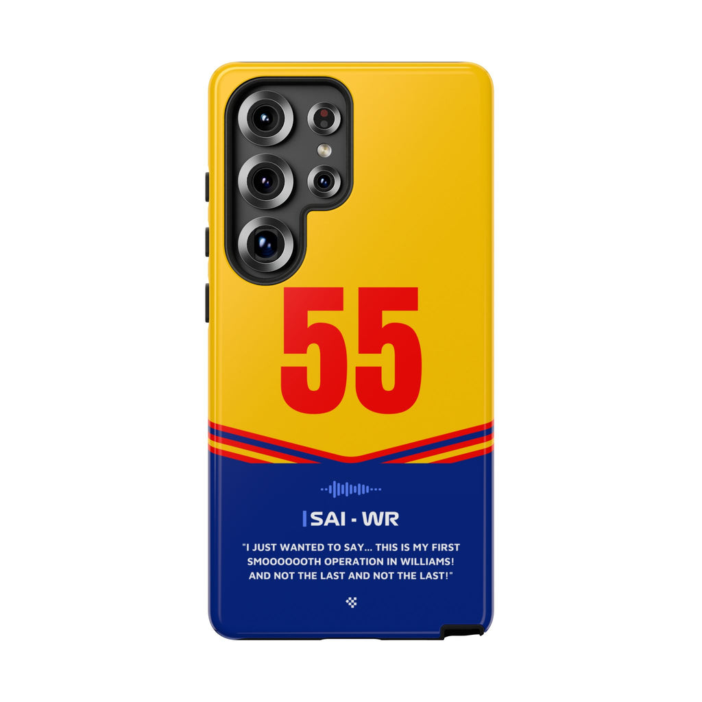 Support your favorite F1 driver with the exclusive Carlos Sainz F1 2025 Helmet Phone Case. It's the perfect accessory for every passionate Formula 1 and Sainz fan. Featuring Carlos's iconic #55 race number and his bold 2025 helmet colors, this stylish phone case brings racing energy straight to your hand.