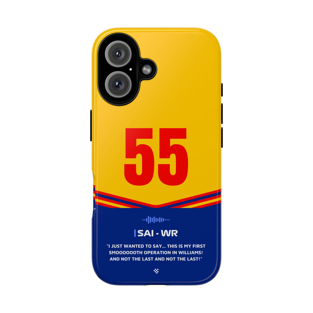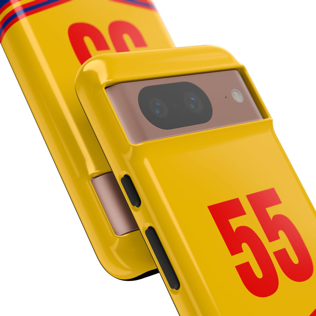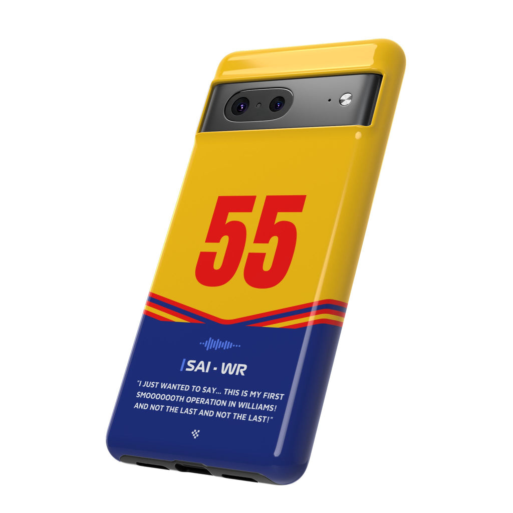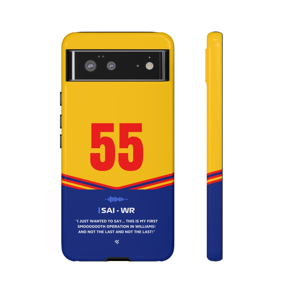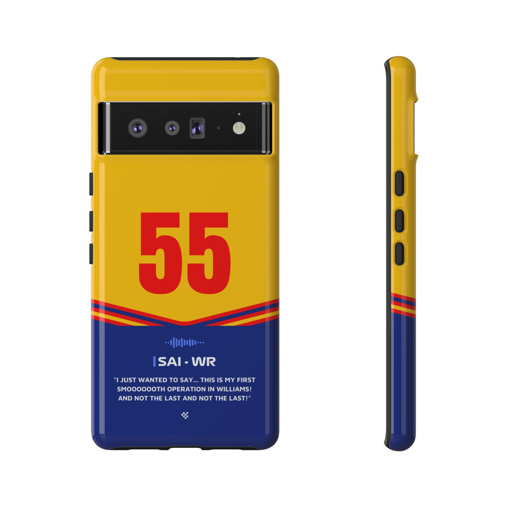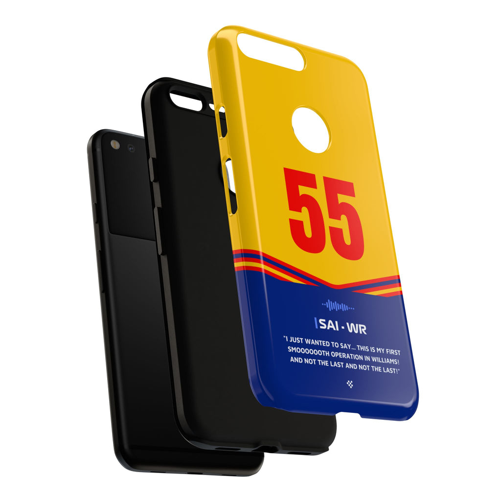 Support your favorite F1 driver with the exclusive Carlos Sainz F1 2025 Helmet Phone Case. It's the perfect accessory for every passionate Formula 1 and Sainz fan. Featuring Carlos's iconic #55 race number and his bold 2025 helmet colors, this stylish phone case brings racing energy straight to your hand.