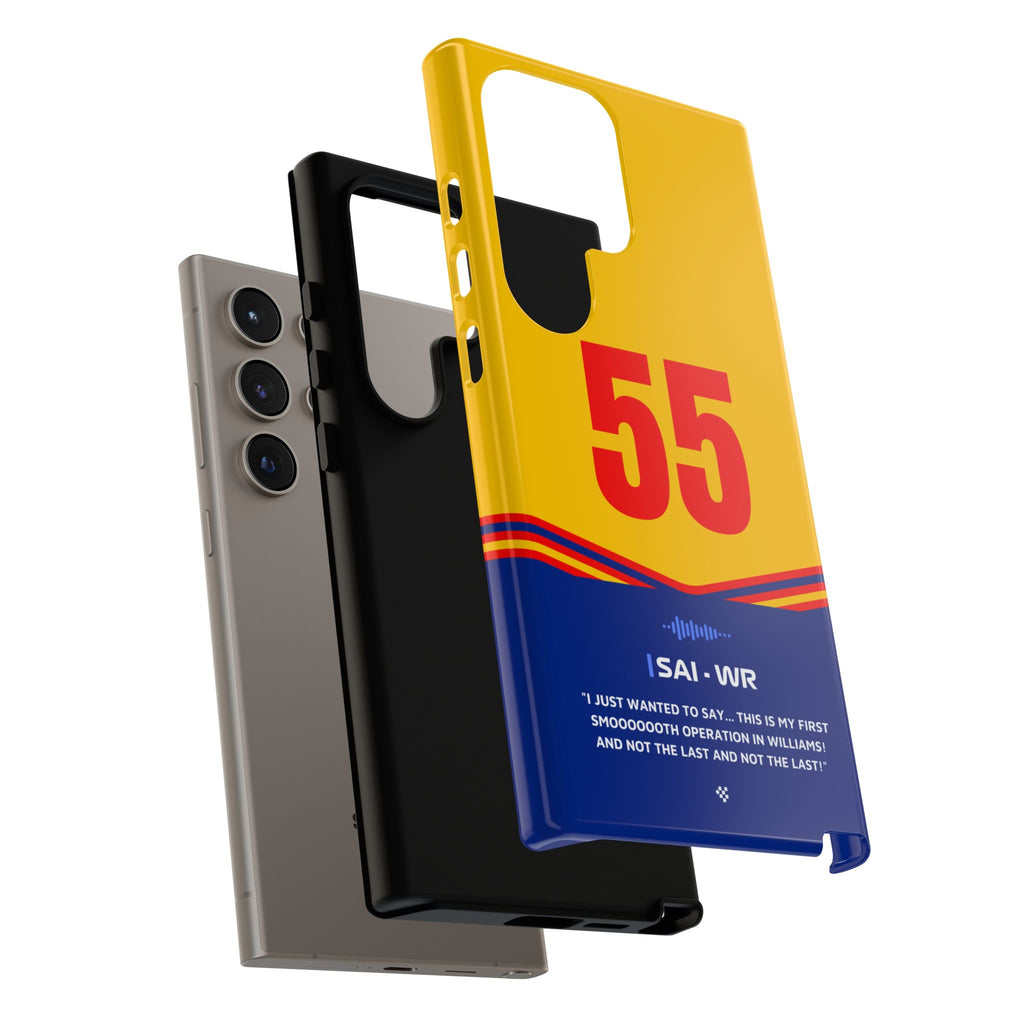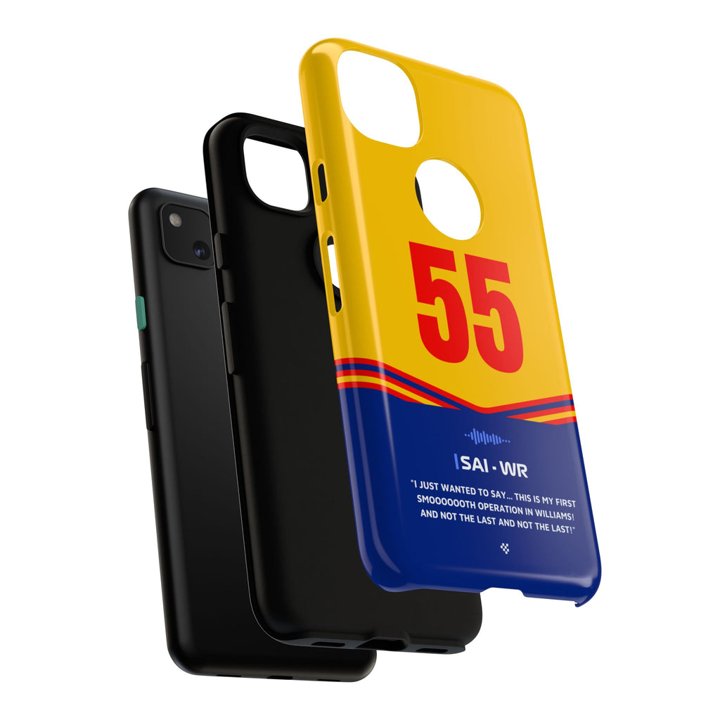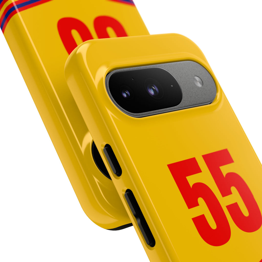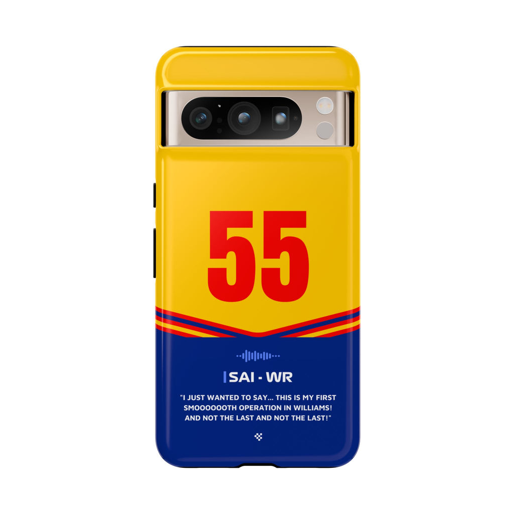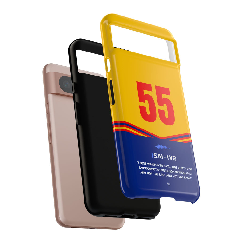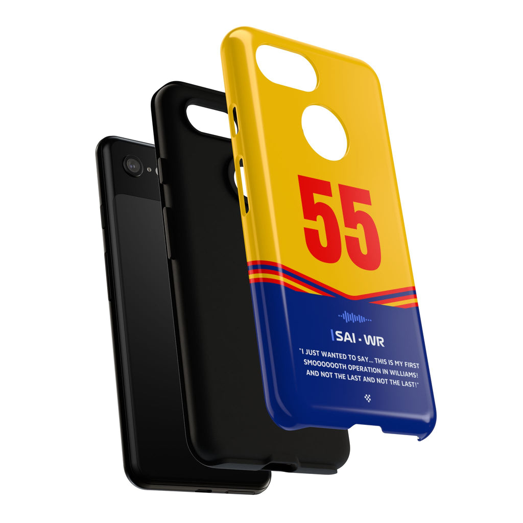 Support your favorite F1 driver with the exclusive Carlos Sainz F1 2025 Helmet Phone Case. It's the perfect accessory for every passionate Formula 1 and Sainz fan. Featuring Carlos's iconic #55 race number and his bold 2025 helmet colors, this stylish phone case brings racing energy straight to your hand.