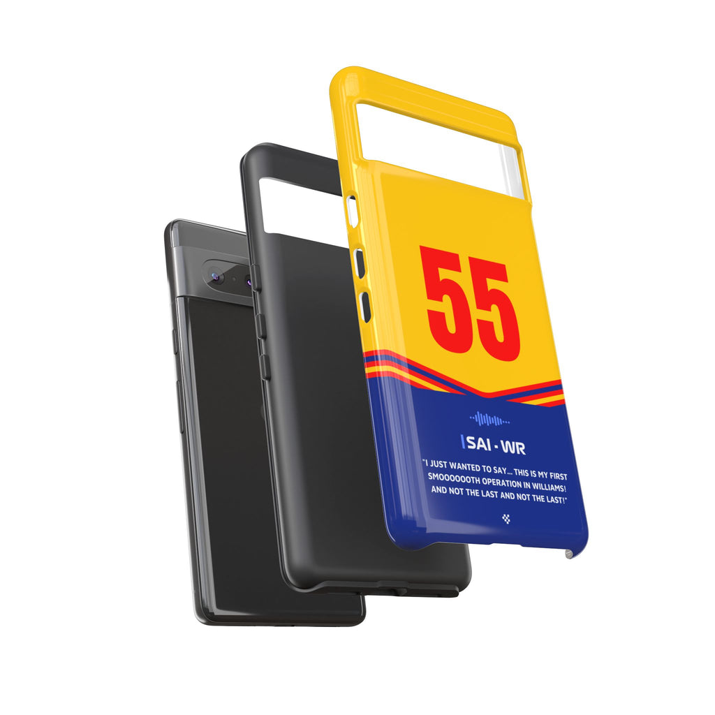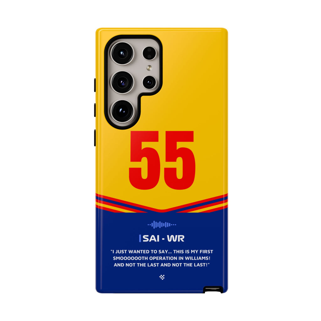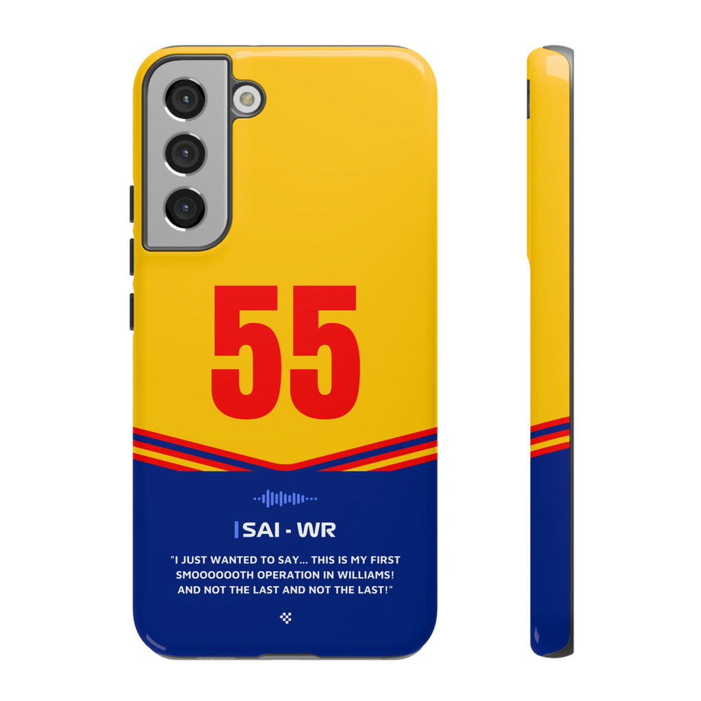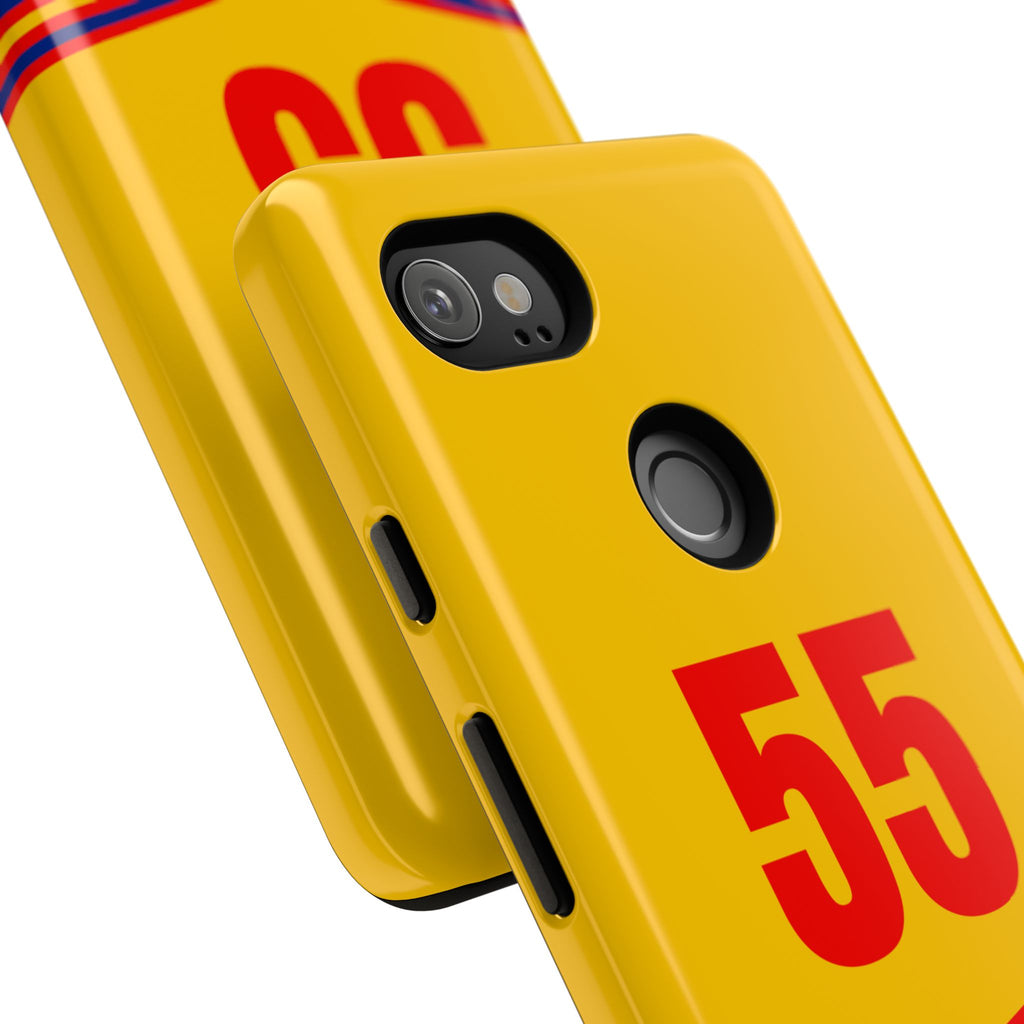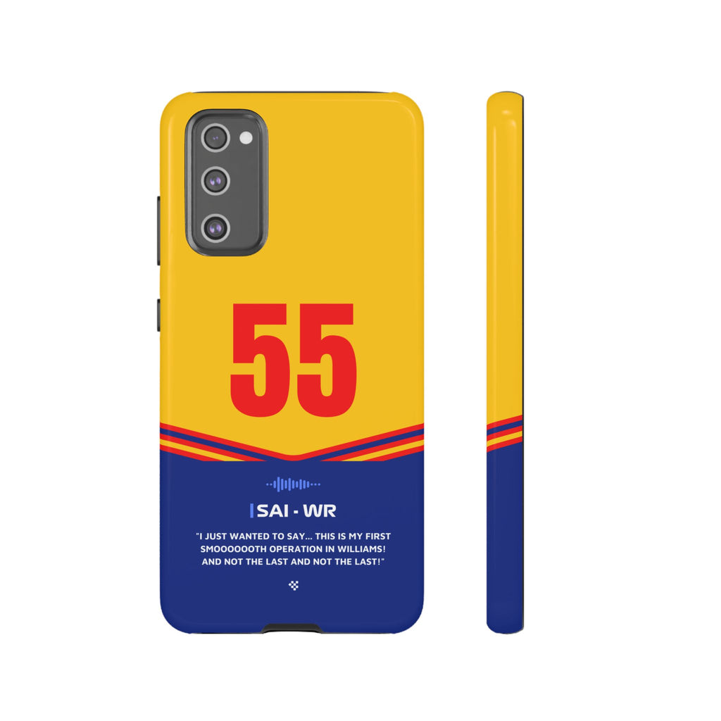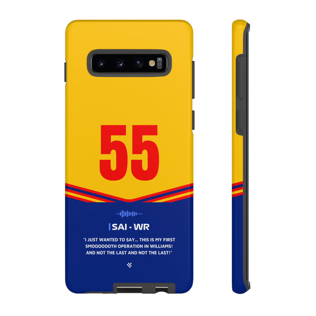 Support your favorite F1 driver with the exclusive Carlos Sainz F1 2025 Helmet Phone Case. It's the perfect accessory for every passionate Formula 1 and Sainz fan. Featuring Carlos's iconic #55 race number and his bold 2025 helmet colors, this stylish phone case brings racing energy straight to your hand.