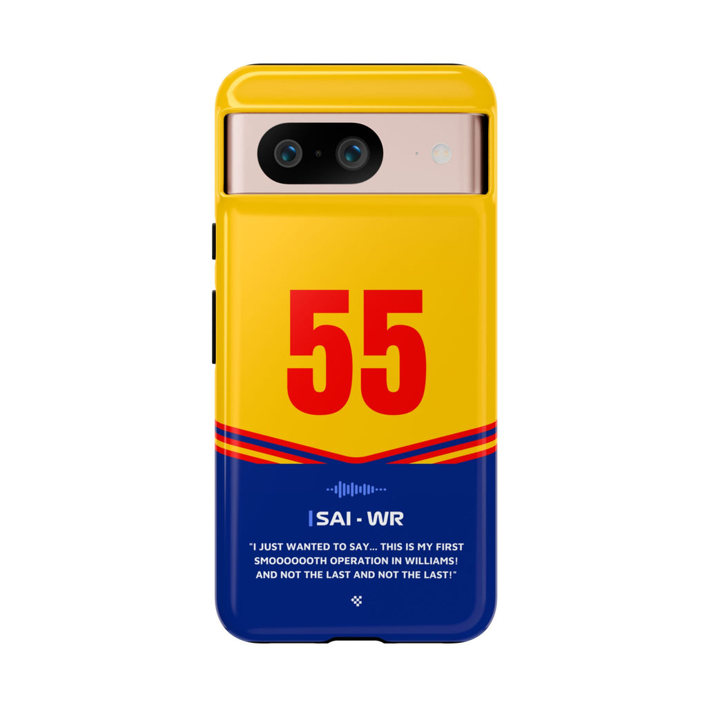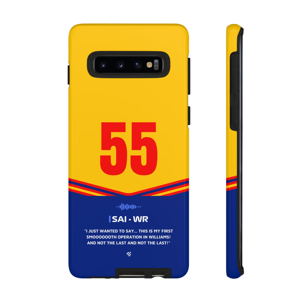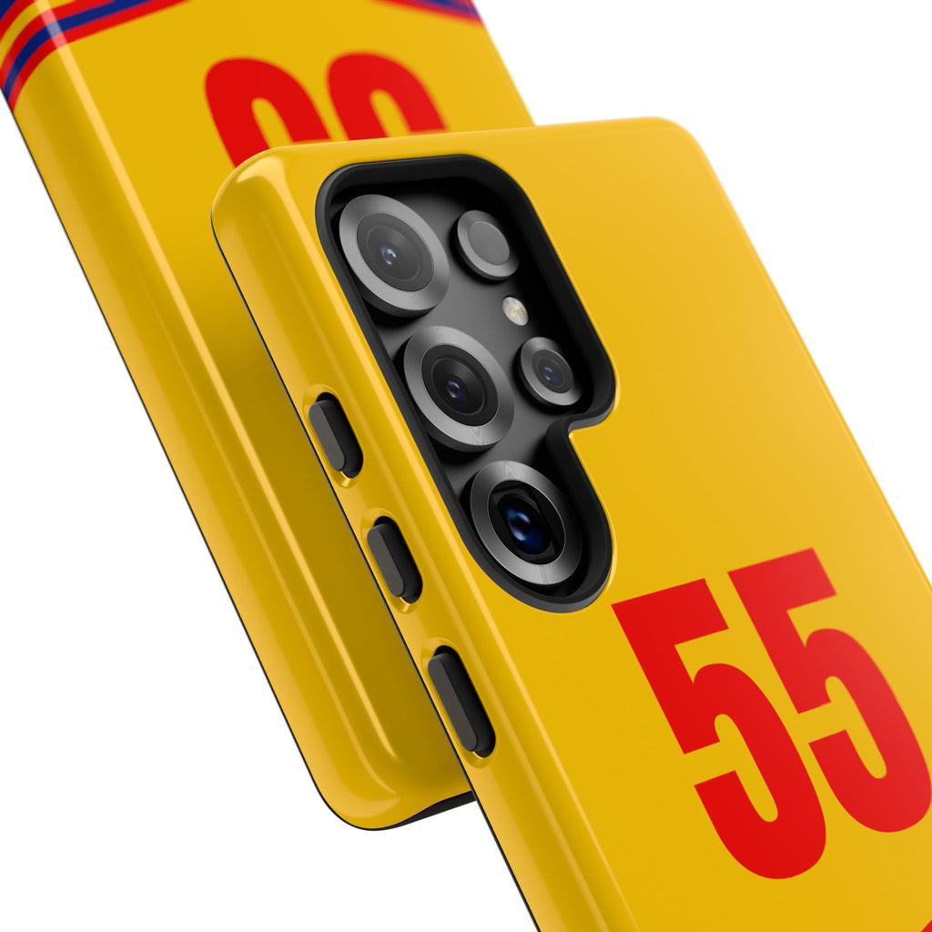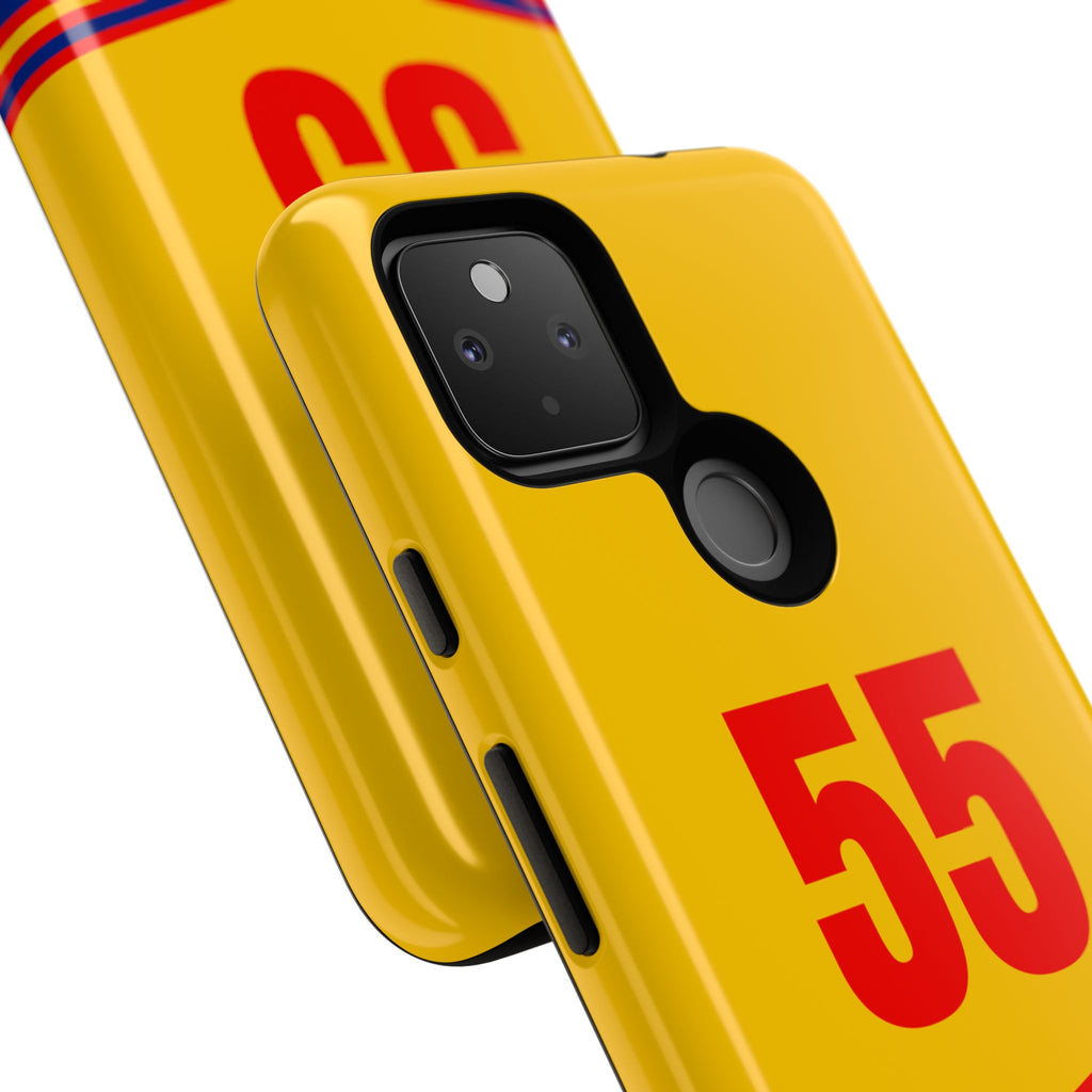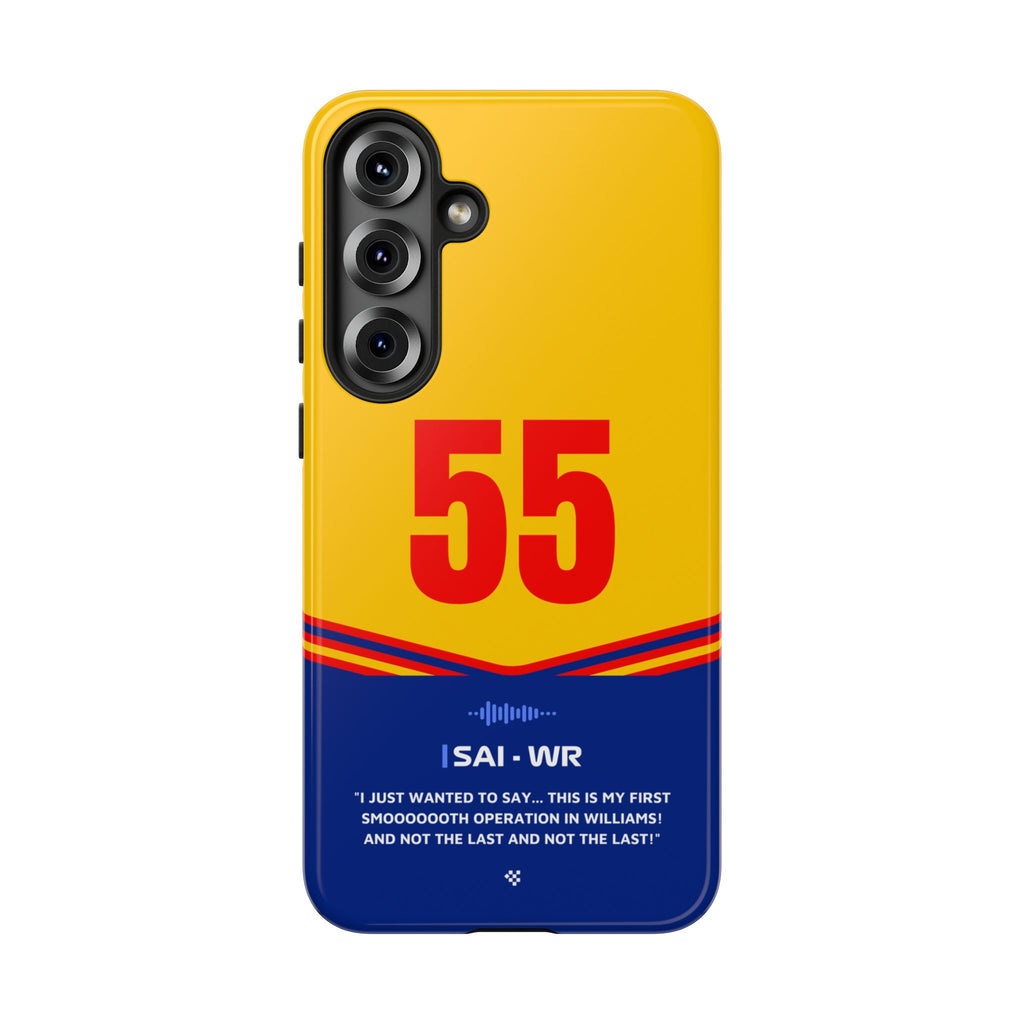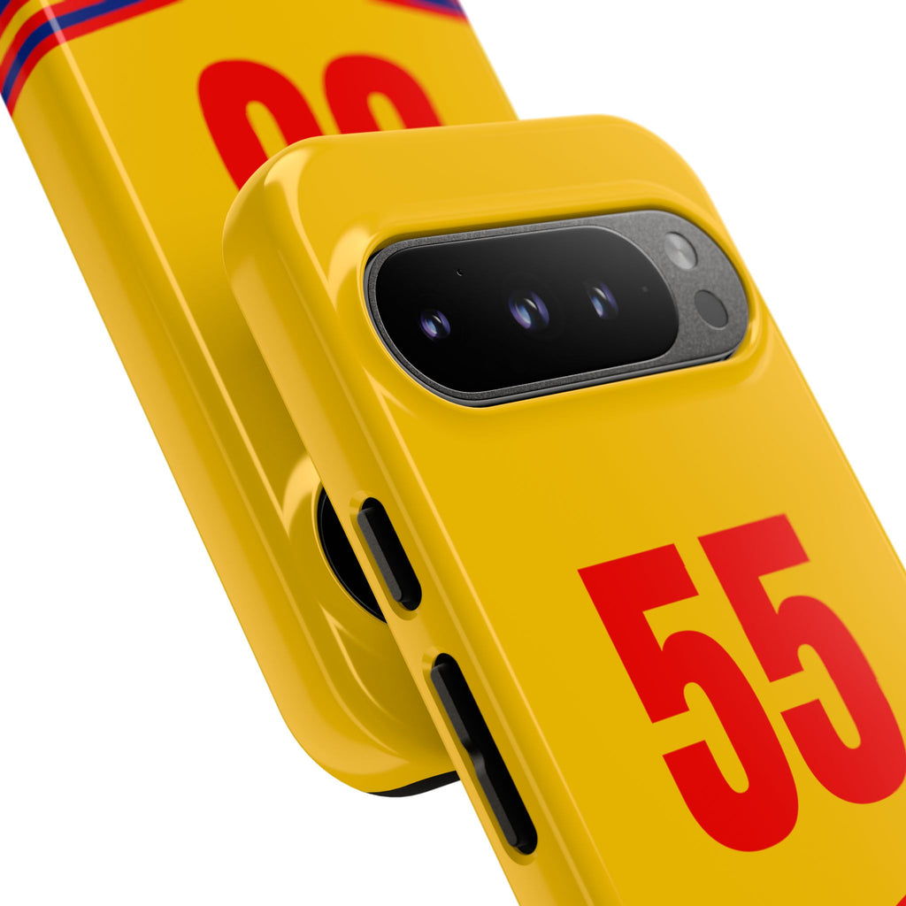 Support your favorite F1 driver with the exclusive Carlos Sainz F1 2025 Helmet Phone Case. It's the perfect accessory for every passionate Formula 1 and Sainz fan. Featuring Carlos's iconic #55 race number and his bold 2025 helmet colors, this stylish phone case brings racing energy straight to your hand.