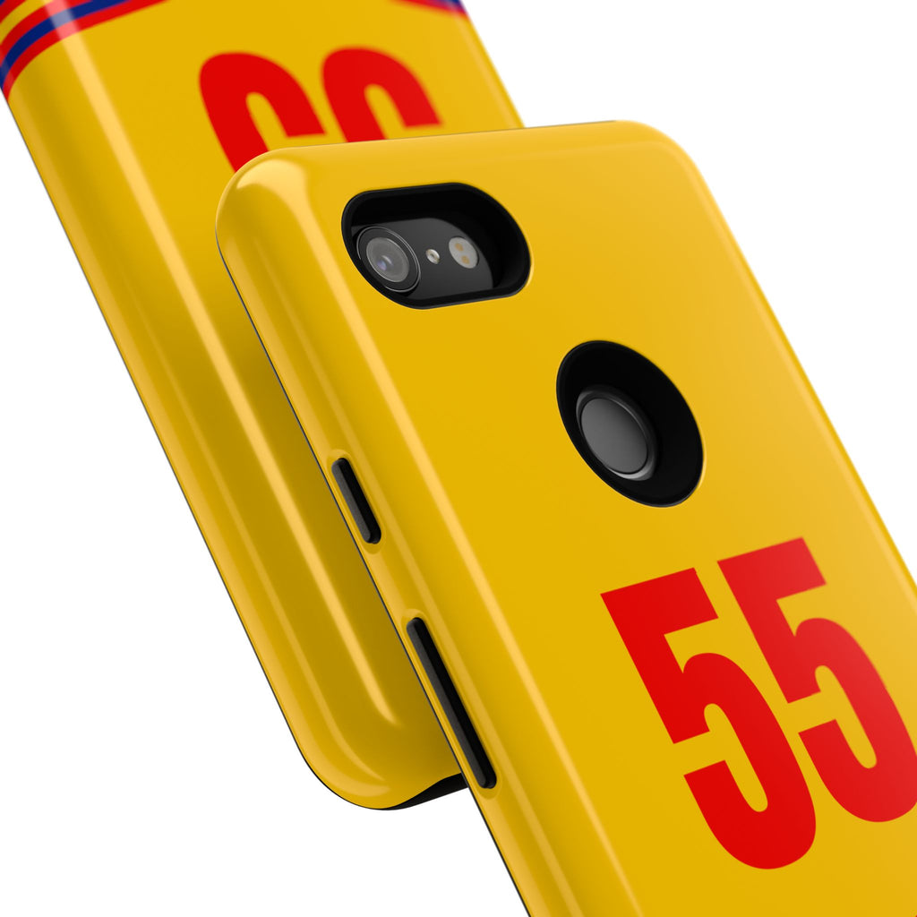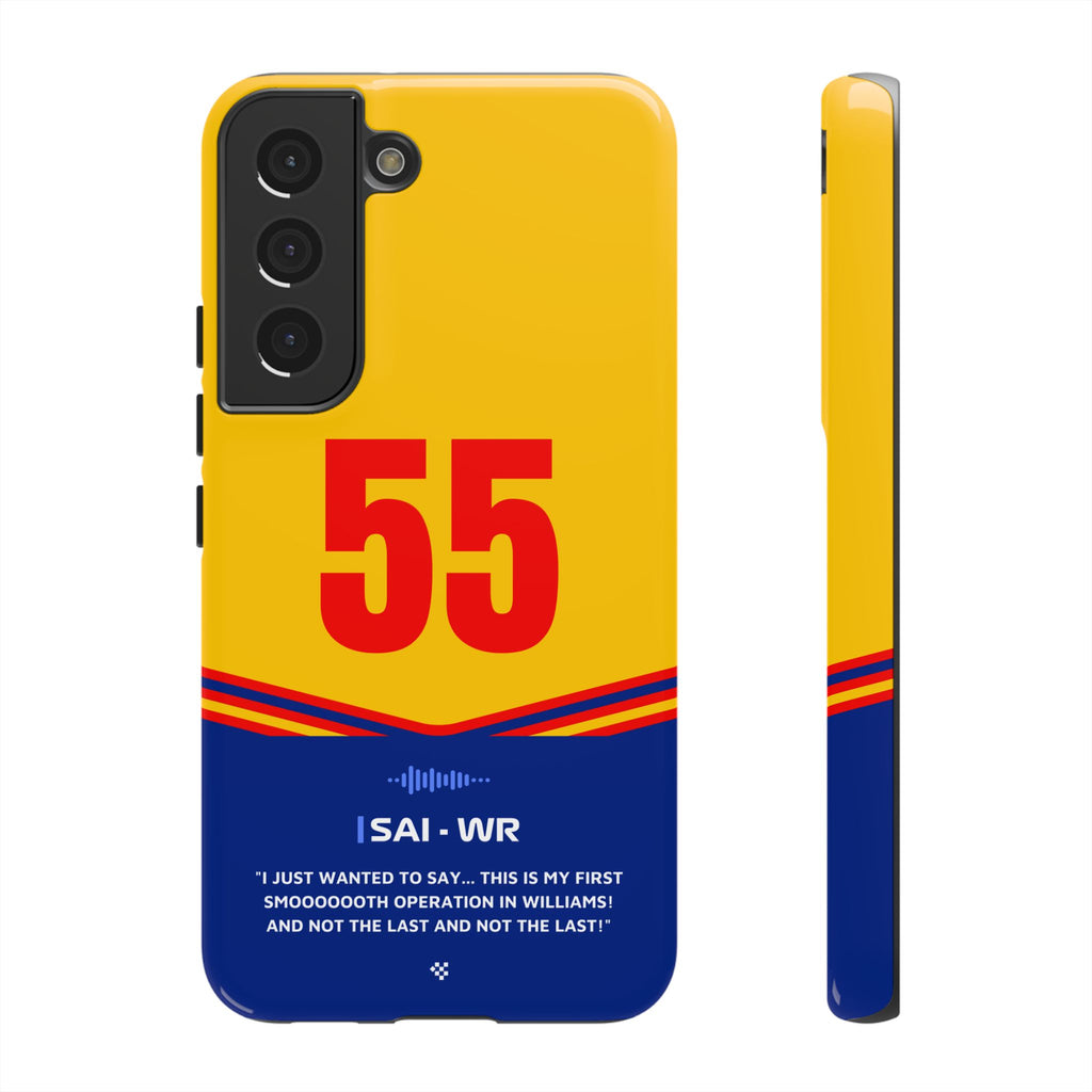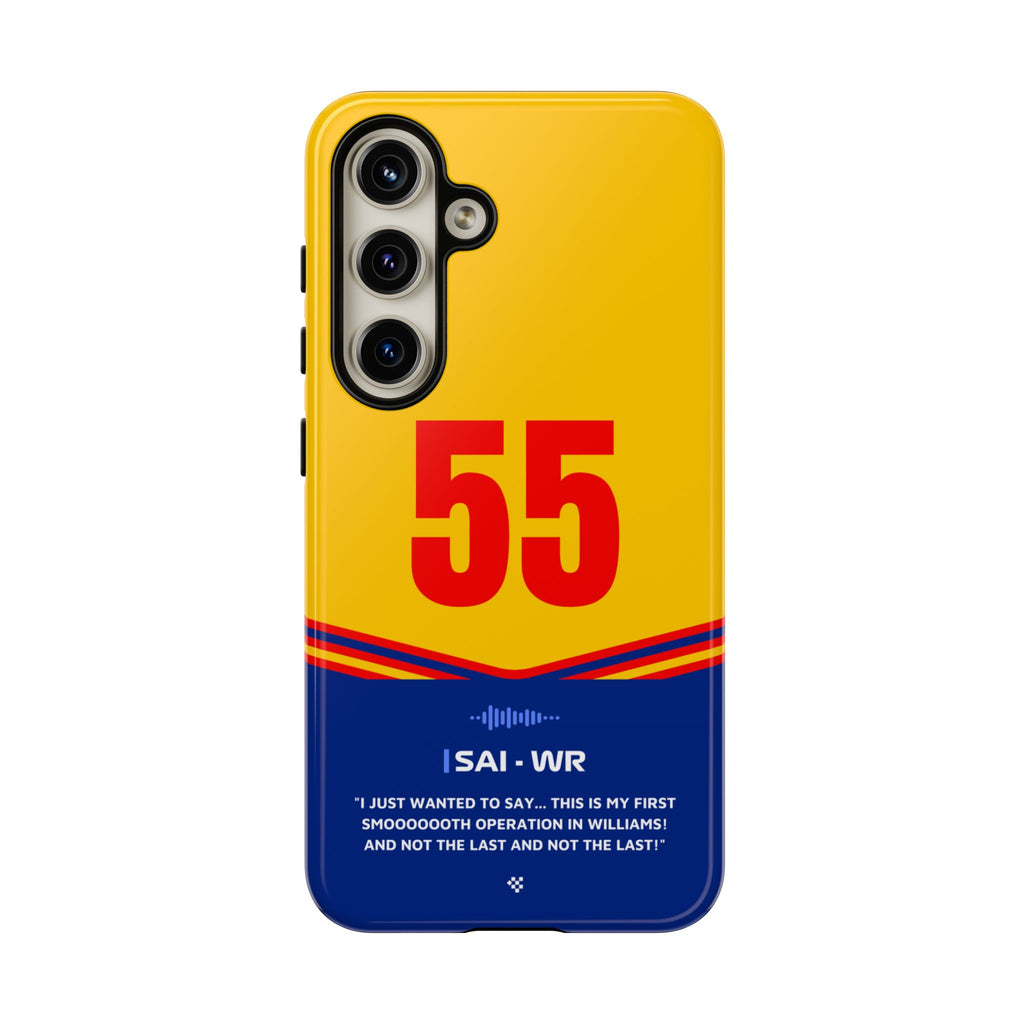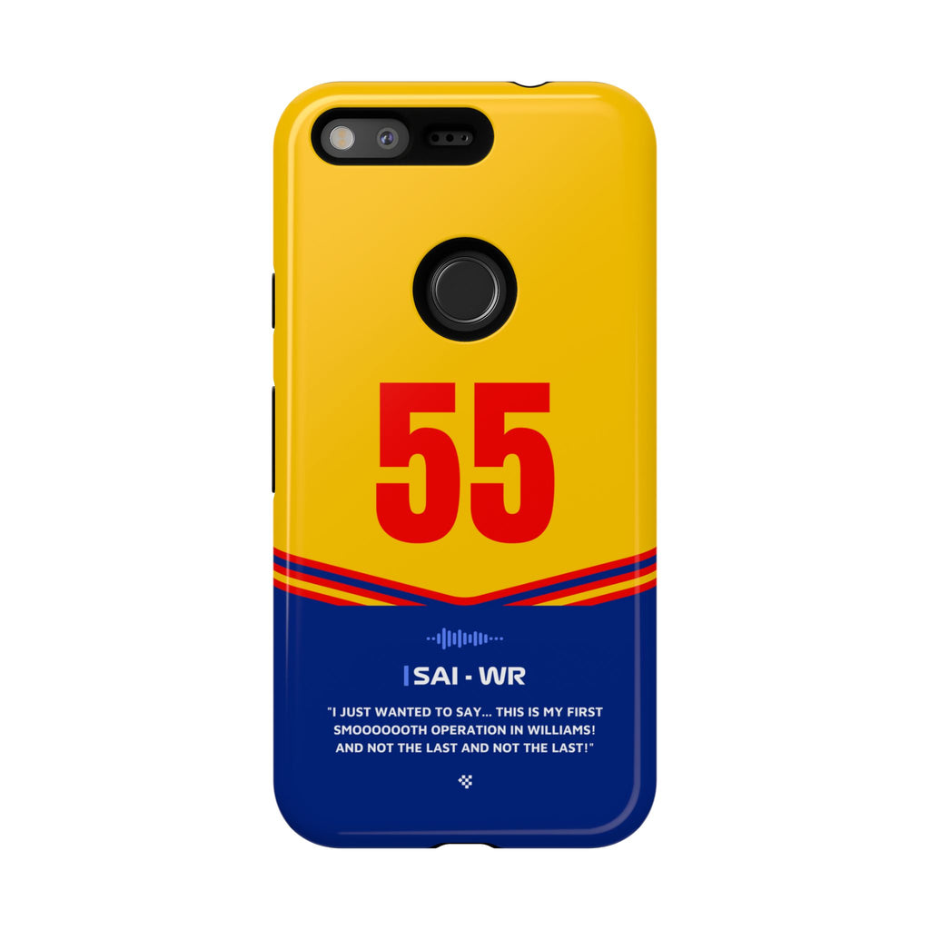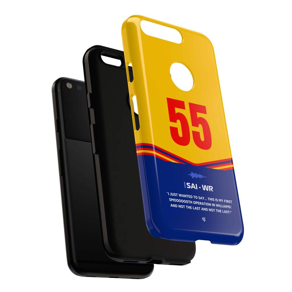 Support your favorite F1 driver with the exclusive Carlos Sainz F1 2025 Helmet Phone Case. It's the perfect accessory for every passionate Formula 1 and Sainz fan. Featuring Carlos's iconic #55 race number and his bold 2025 helmet colors, this stylish phone case brings racing energy straight to your hand.