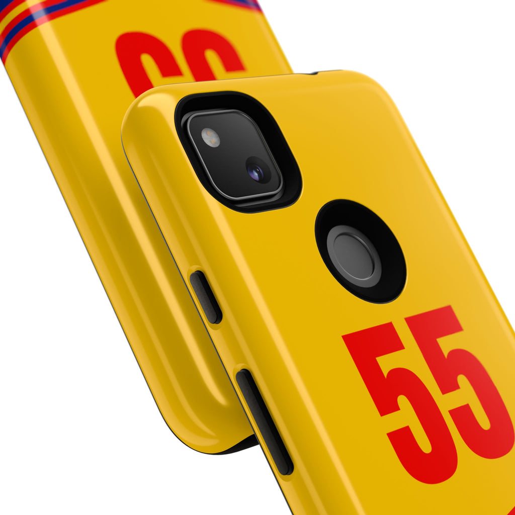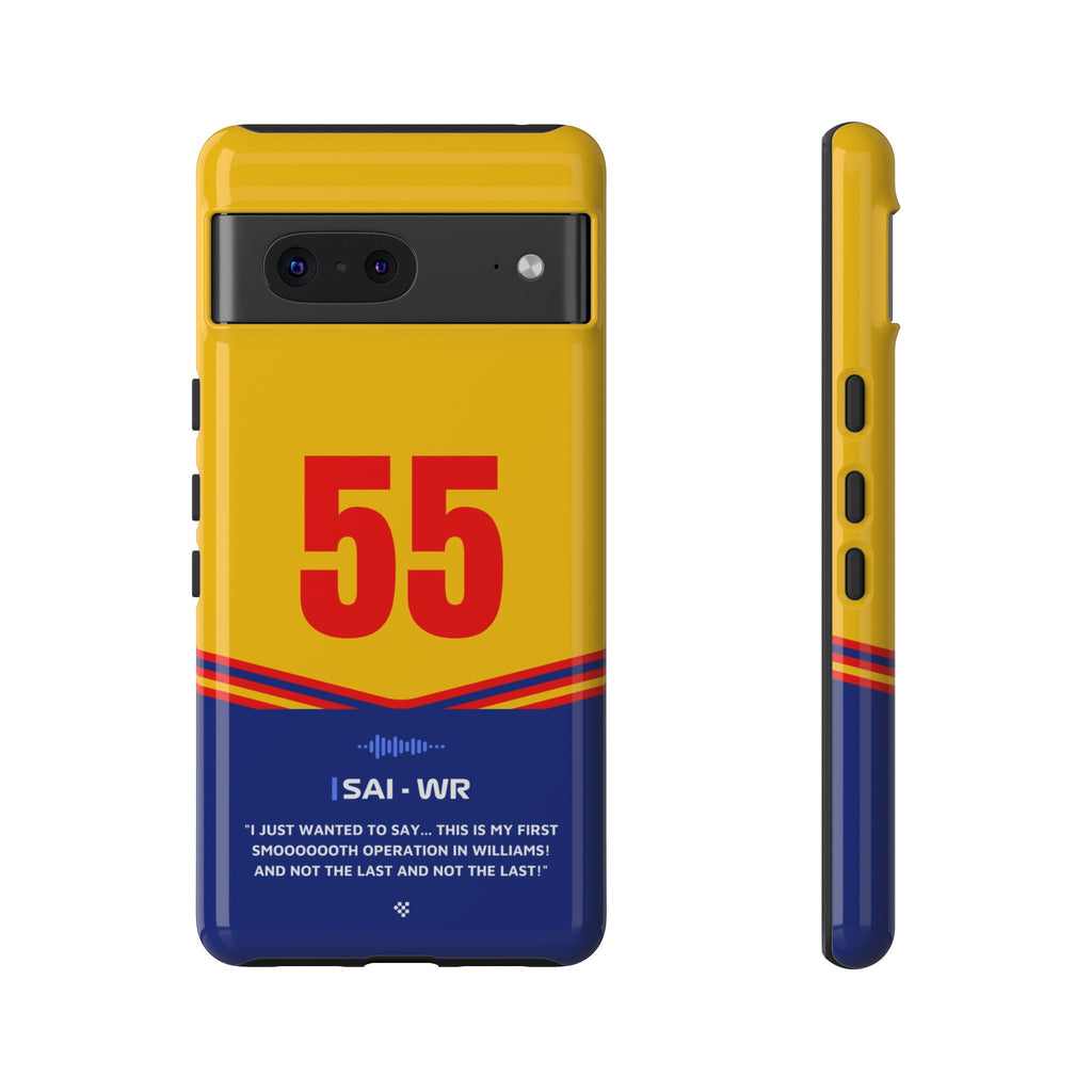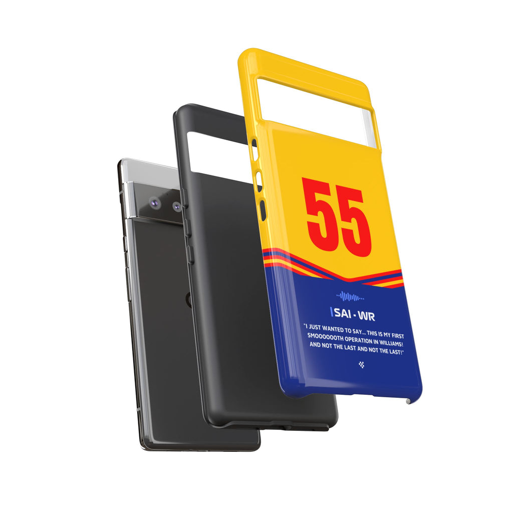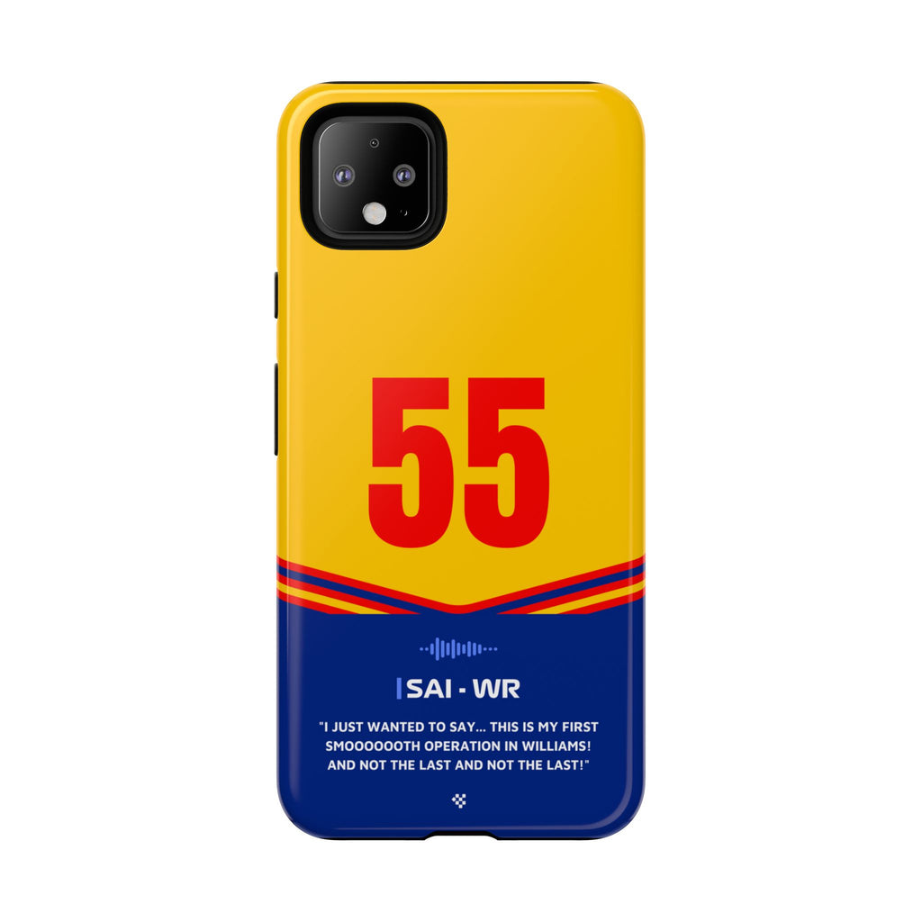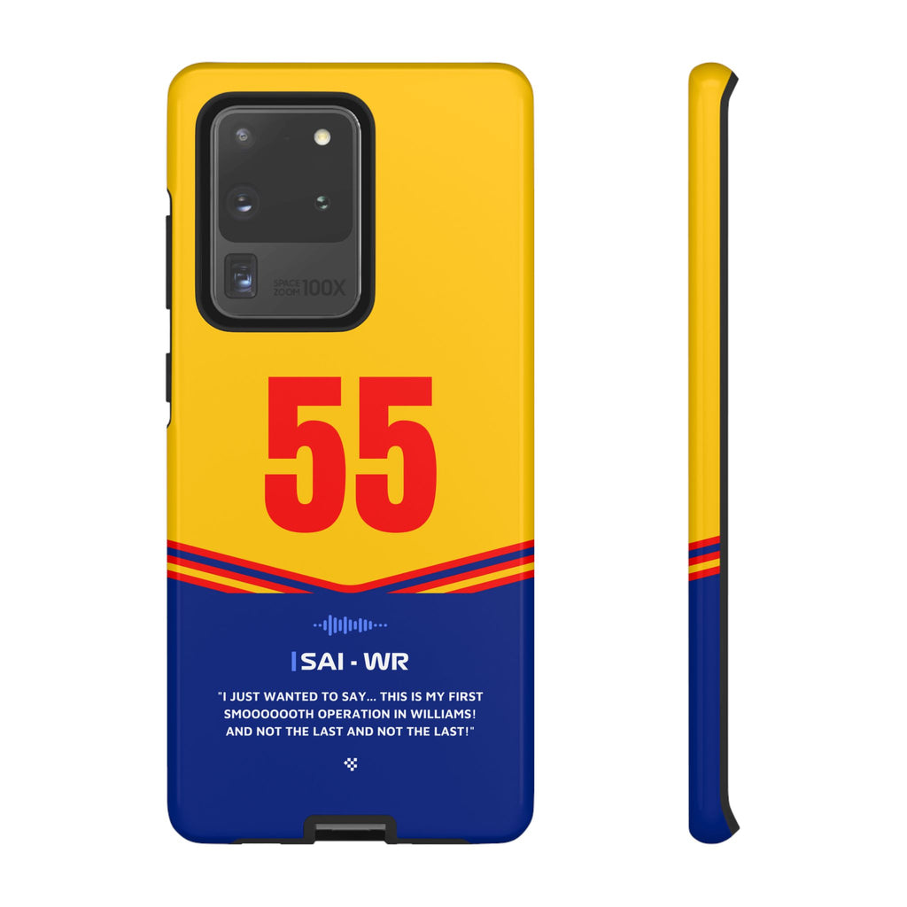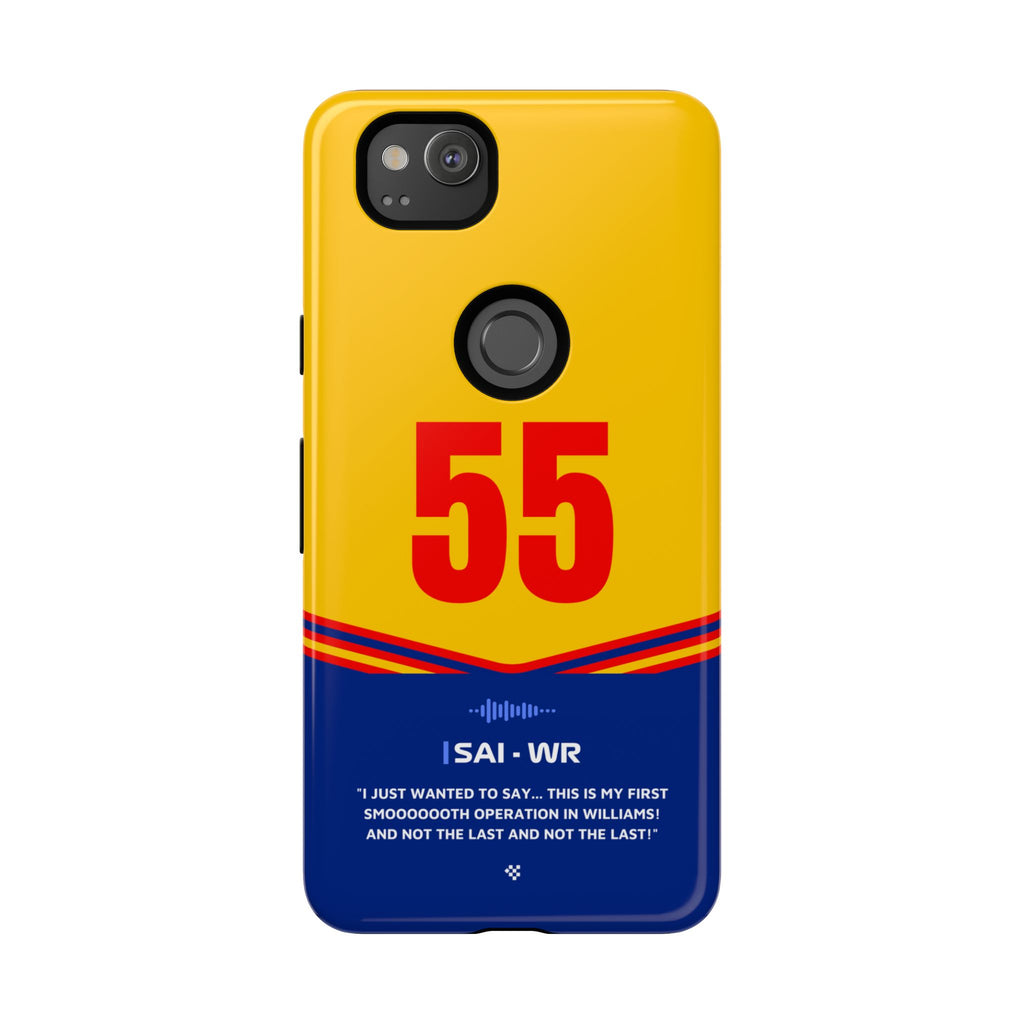 Support your favorite F1 driver with the exclusive Carlos Sainz F1 2025 Helmet Phone Case. It's the perfect accessory for every passionate Formula 1 and Sainz fan. Featuring Carlos's iconic #55 race number and his bold 2025 helmet colors, this stylish phone case brings racing energy straight to your hand.
