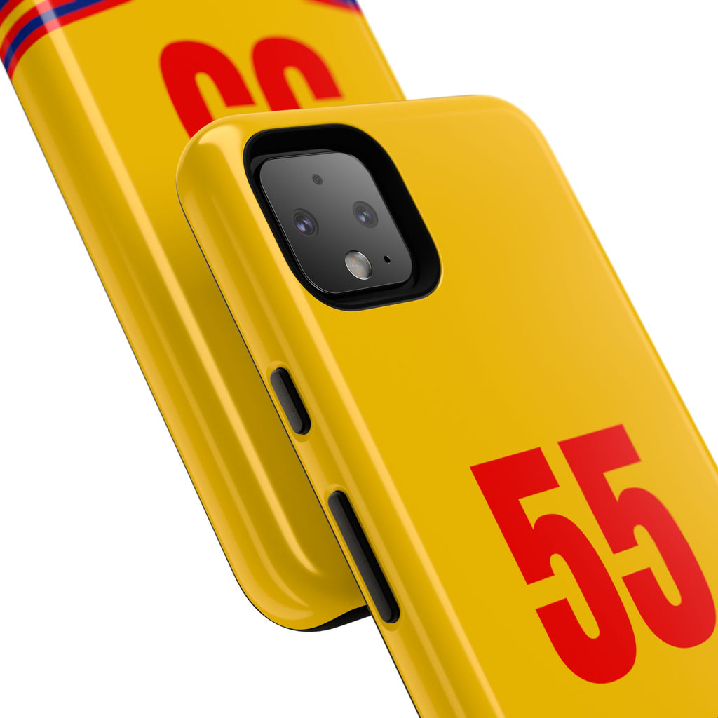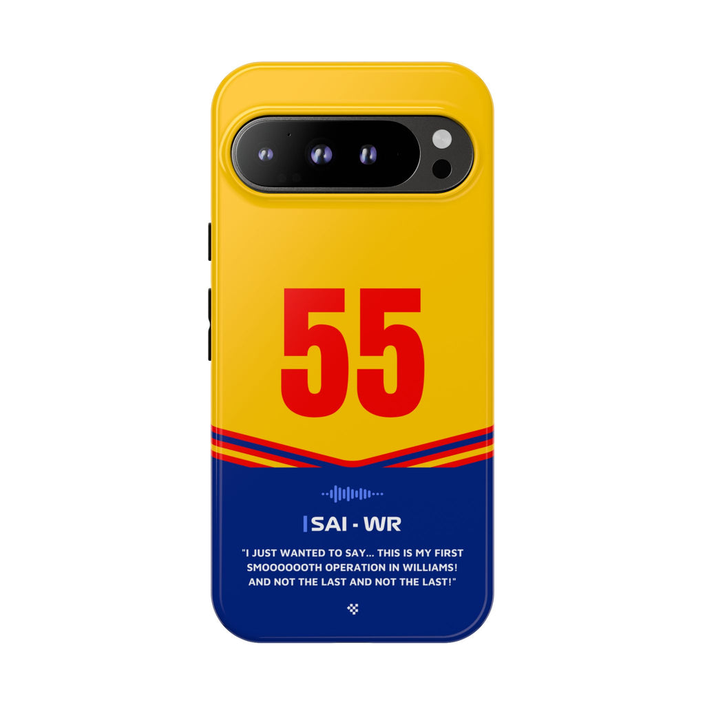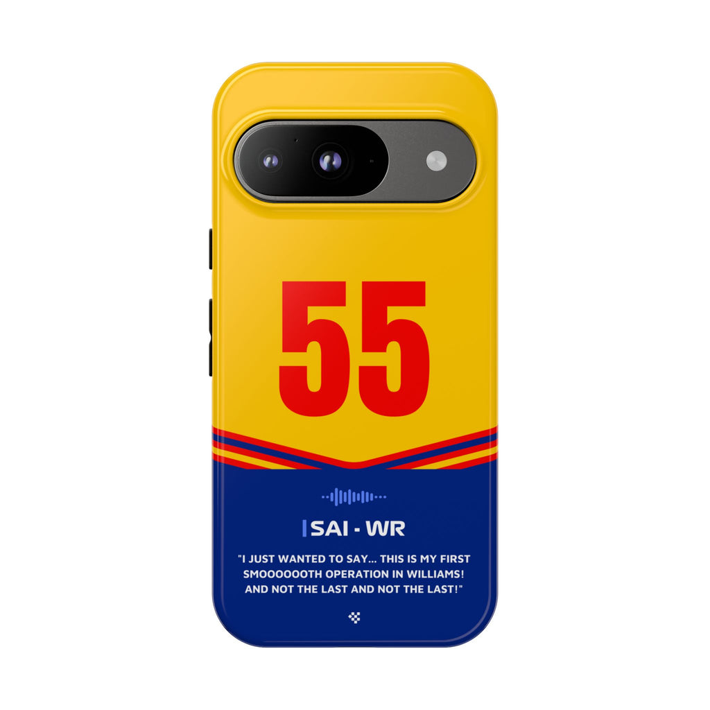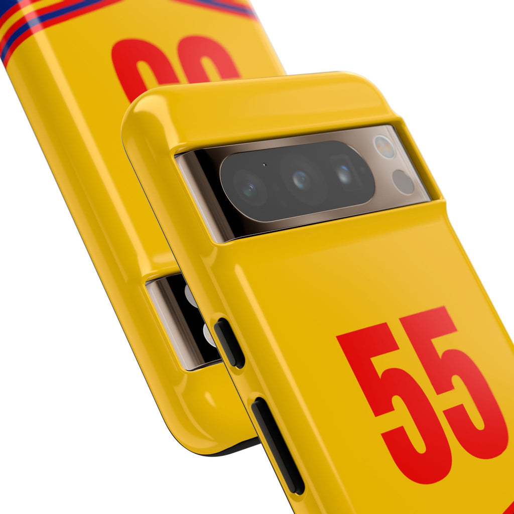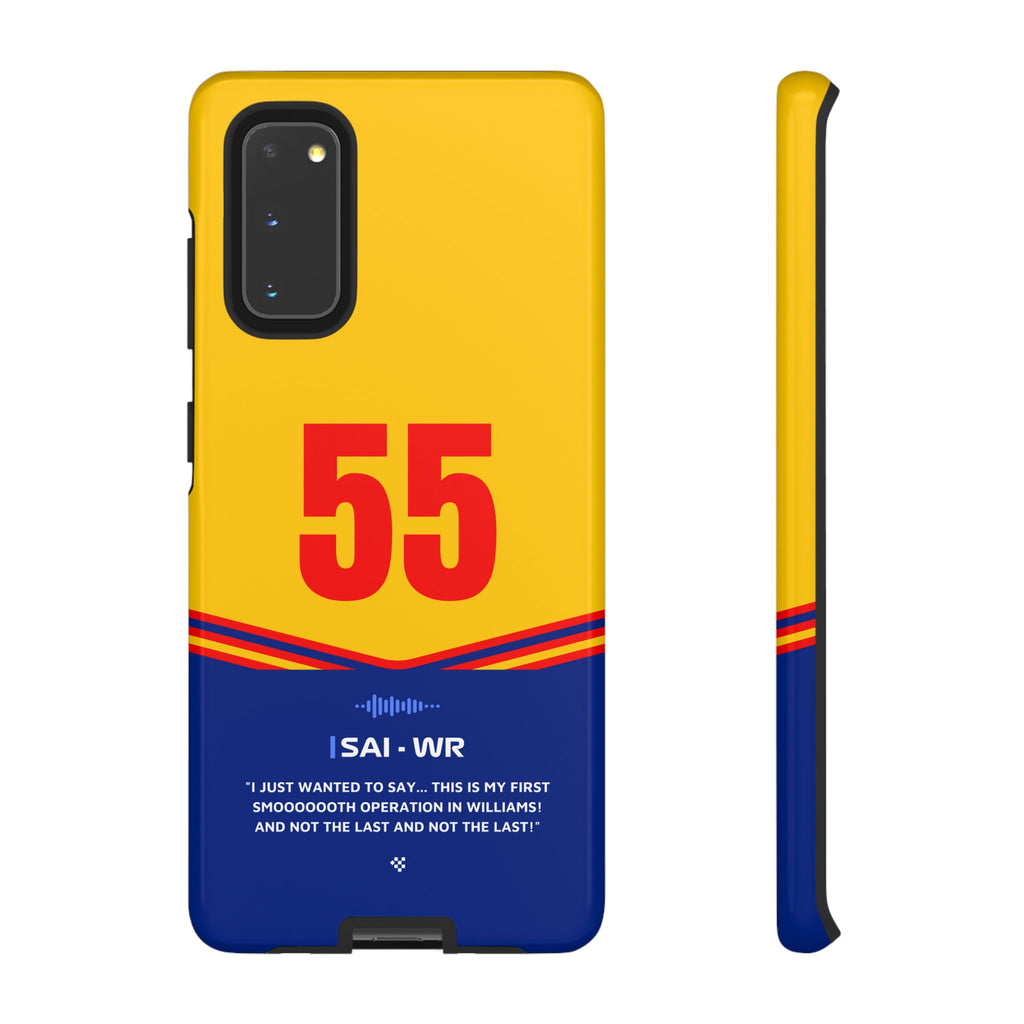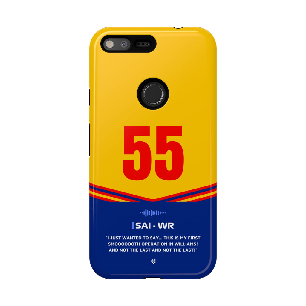 Support your favorite F1 driver with the exclusive Carlos Sainz F1 2025 Helmet Phone Case. It's the perfect accessory for every passionate Formula 1 and Sainz fan. Featuring Carlos's iconic #55 race number and his bold 2025 helmet colors, this stylish phone case brings racing energy straight to your hand.