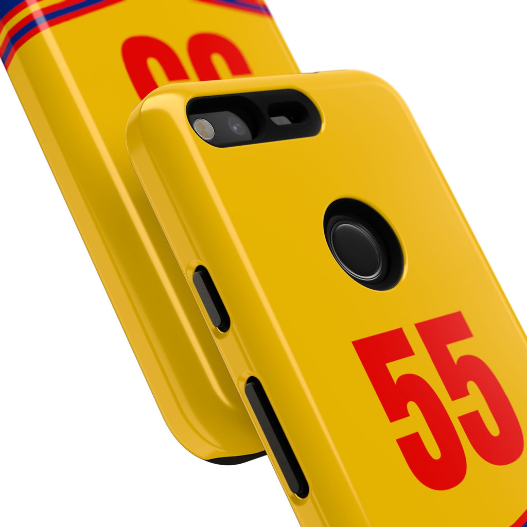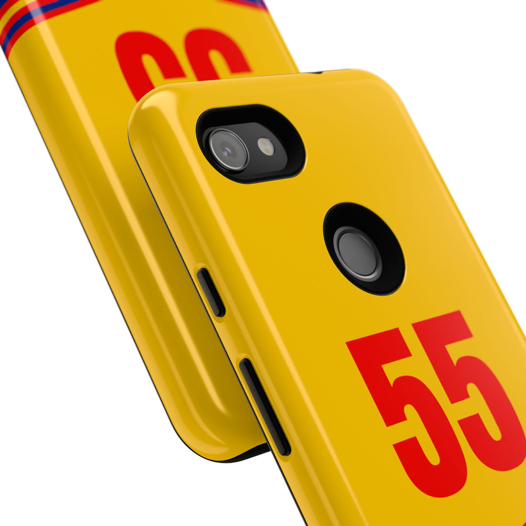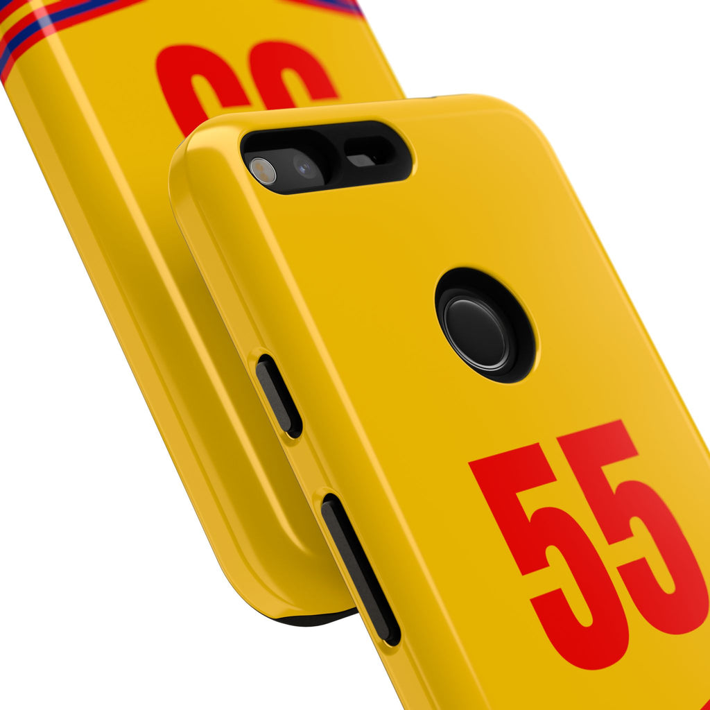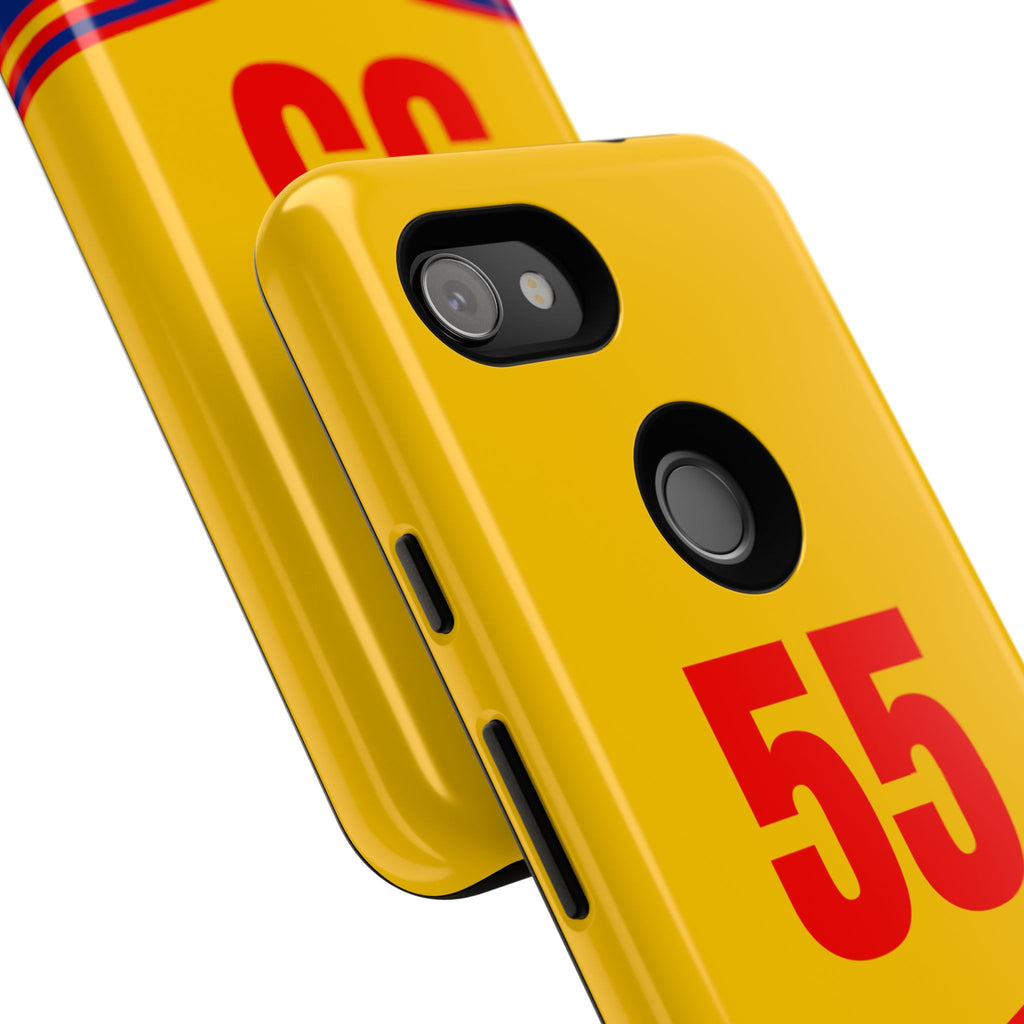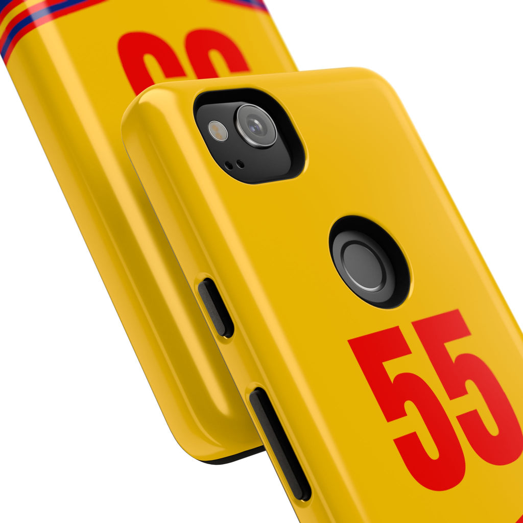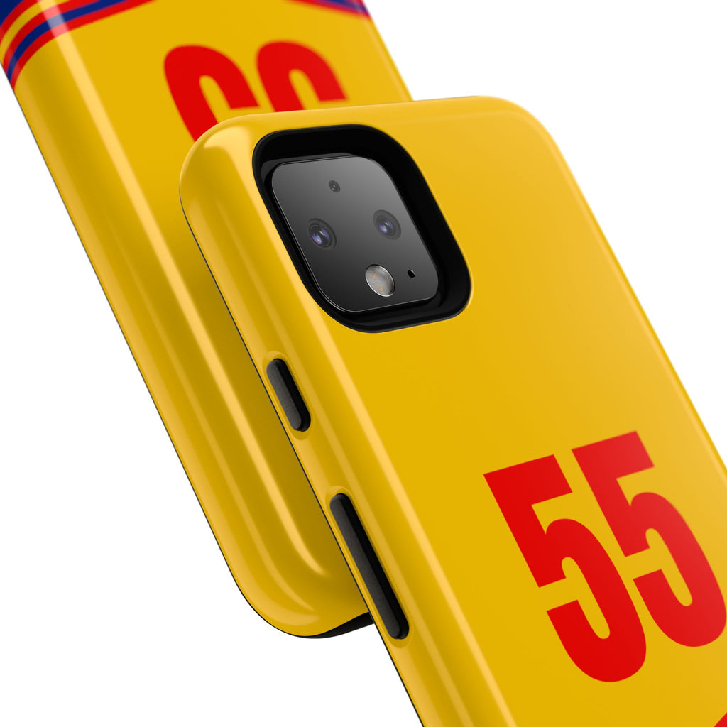 Support your favorite F1 driver with the exclusive Carlos Sainz F1 2025 Helmet Phone Case. It's the perfect accessory for every passionate Formula 1 and Sainz fan. Featuring Carlos's iconic #55 race number and his bold 2025 helmet colors, this stylish phone case brings racing energy straight to your hand.