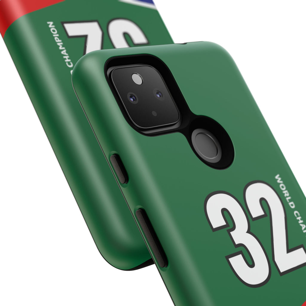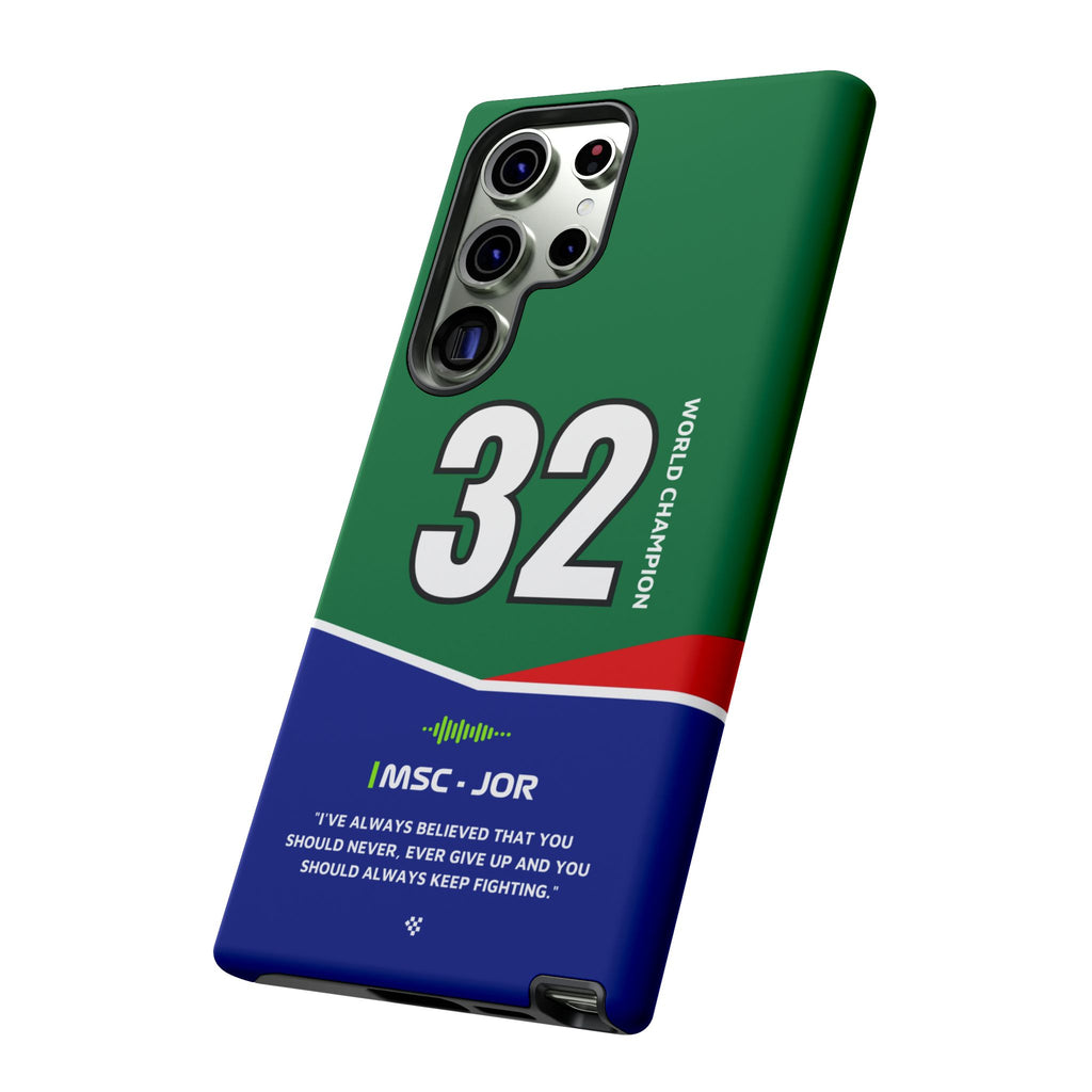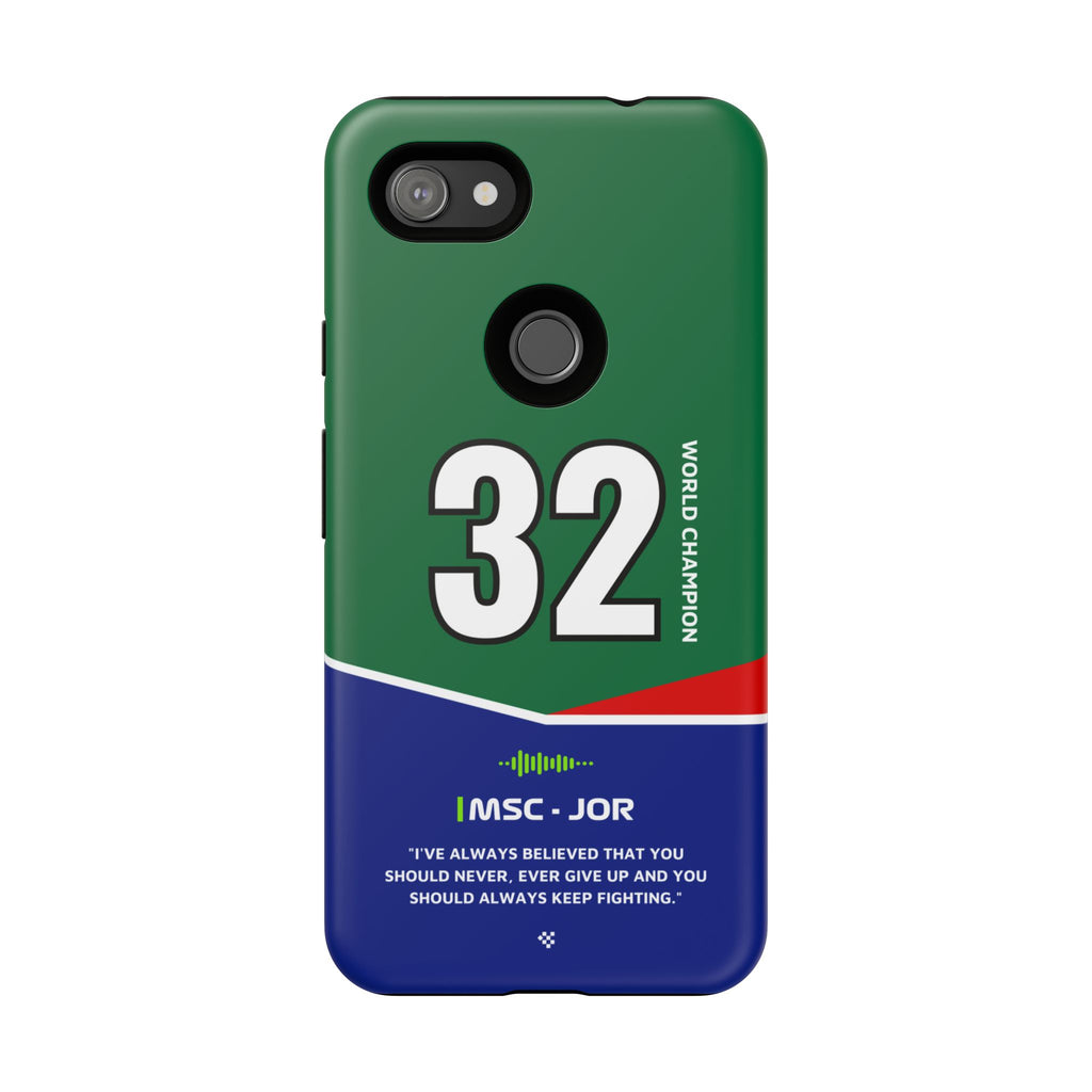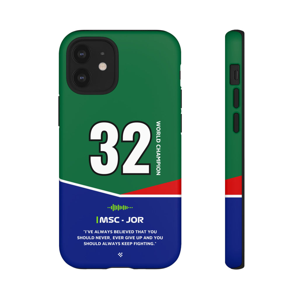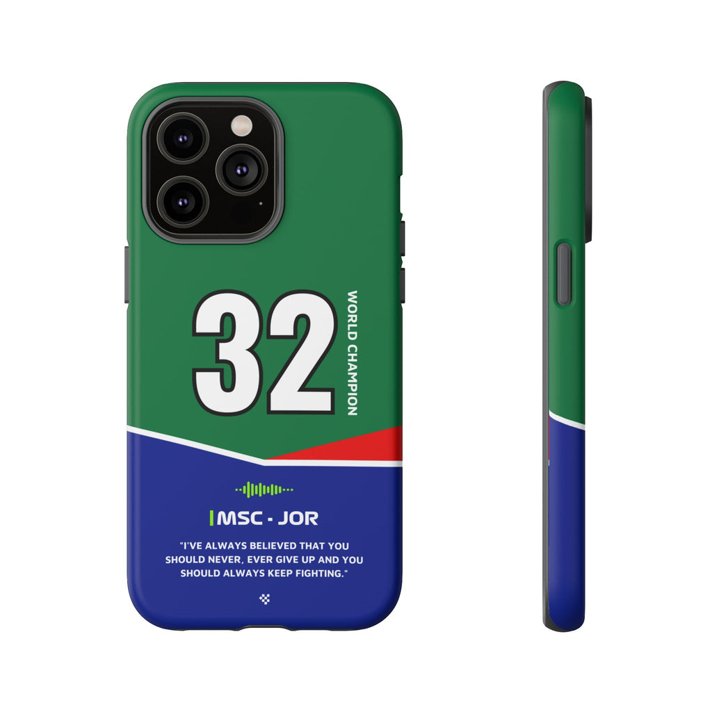 Make sure his legacy persists with the exclusive Michael Schumacher F1 Legend Phone Case. It's the perfect accessory for every passionate Formula 1 and Schumacher fan. Featuring Michael's iconic #32 race number and the bold 1991 Jordan team colors, this green phone case brings racing energy straight to your hand.