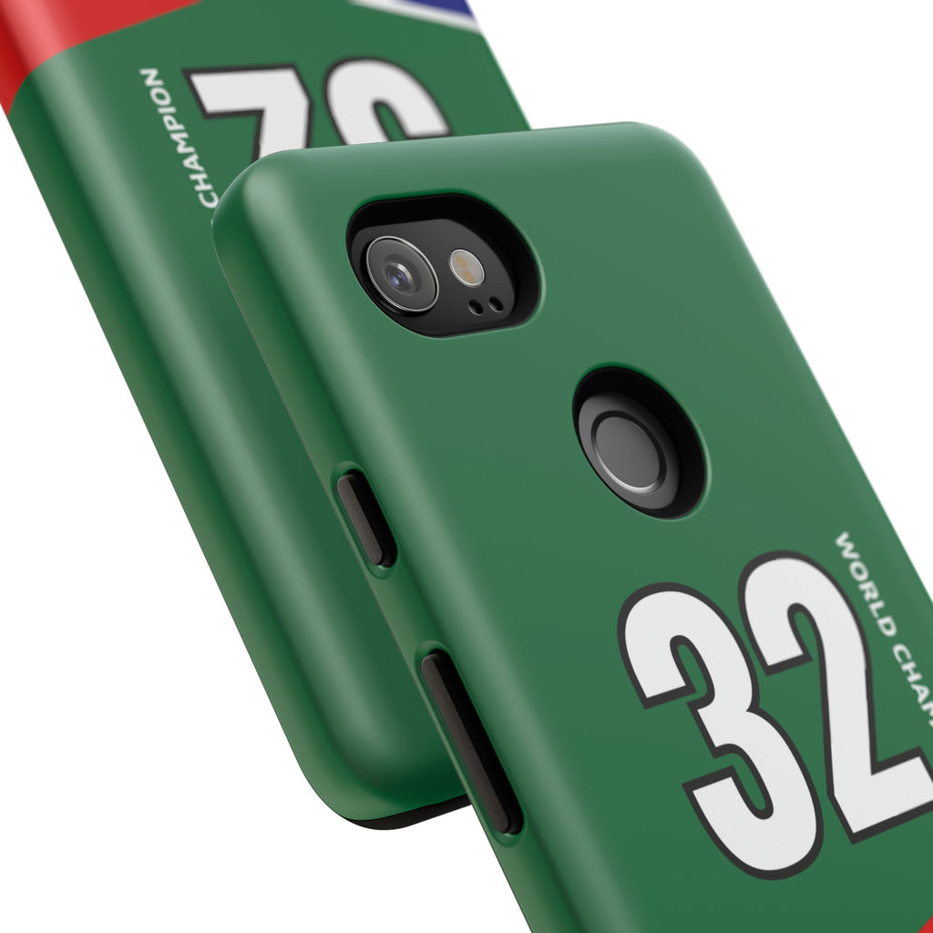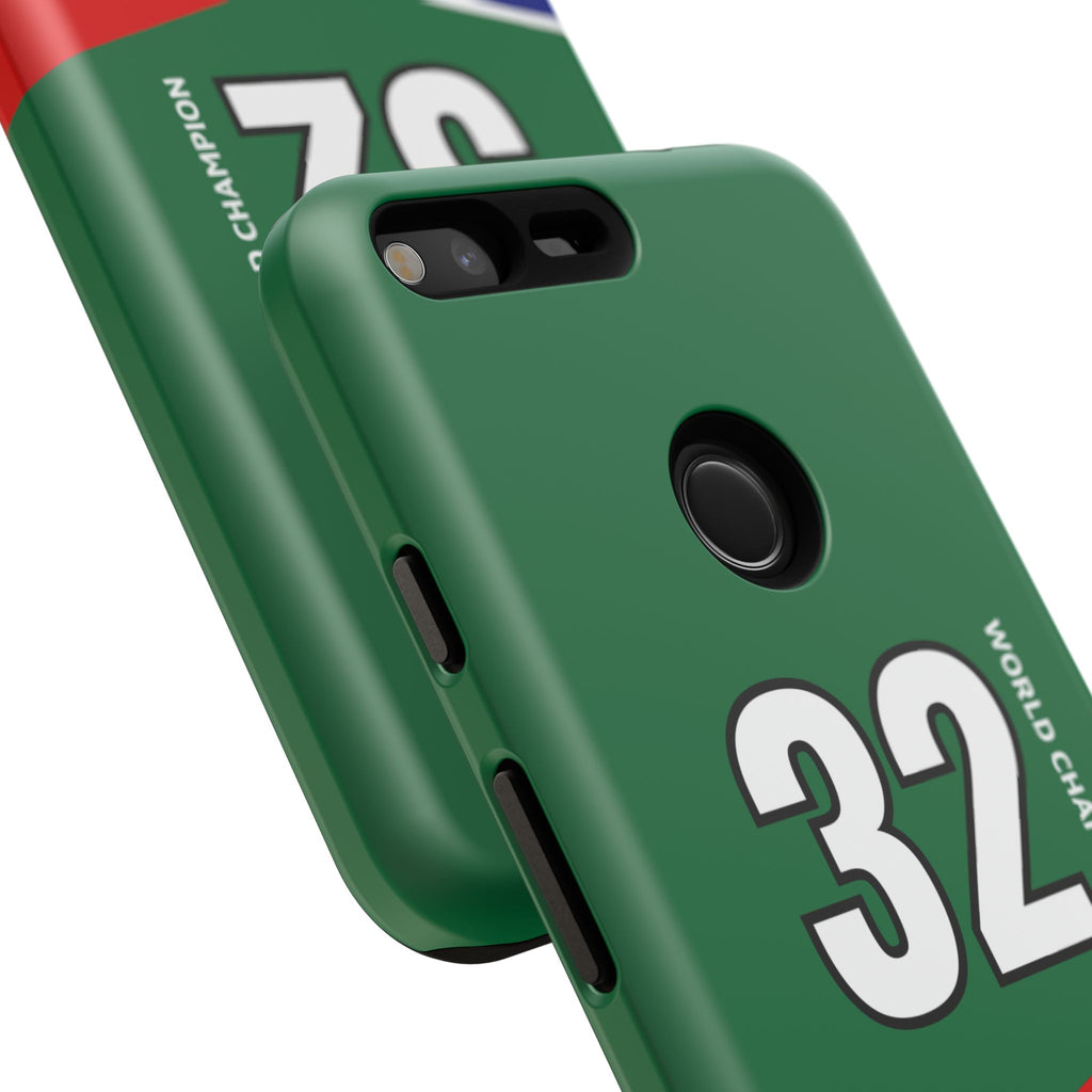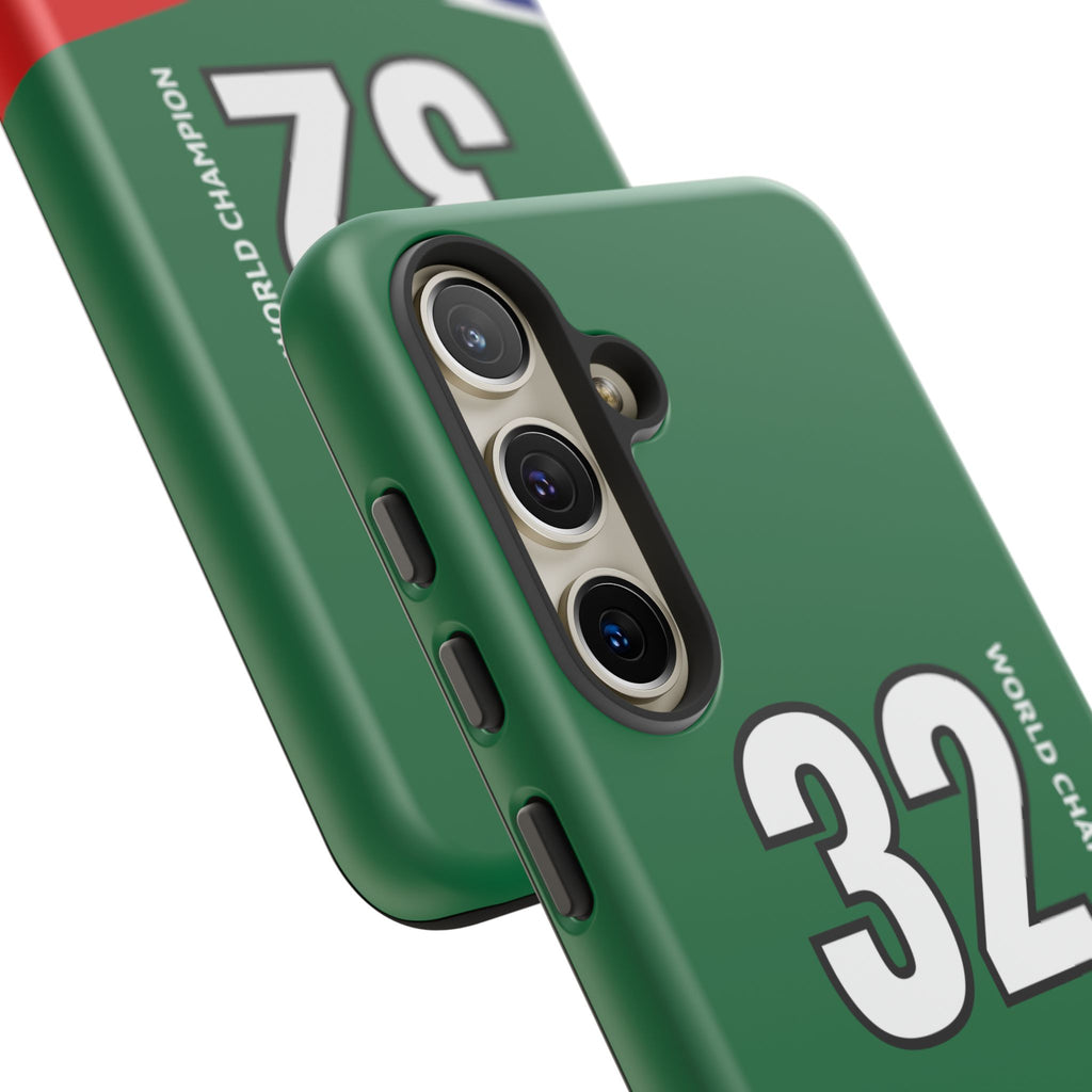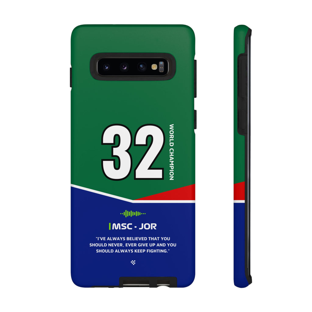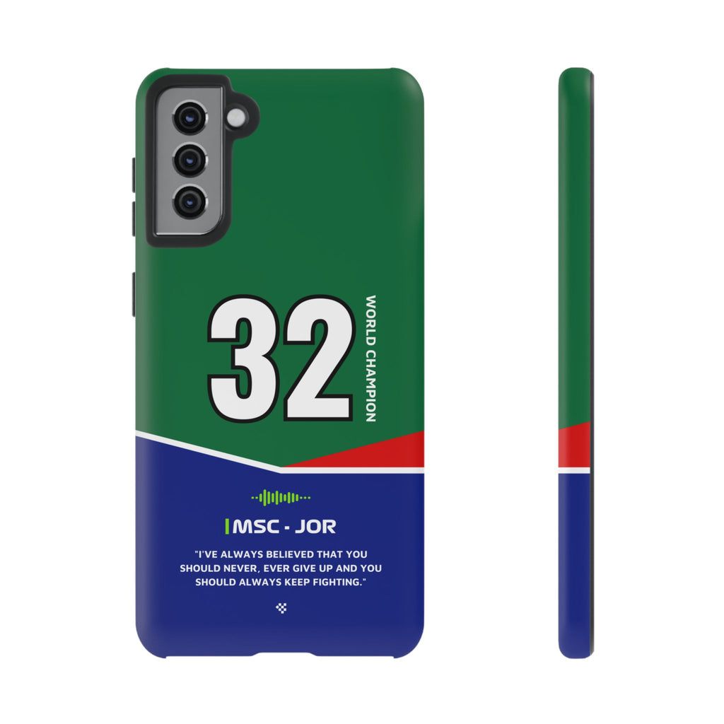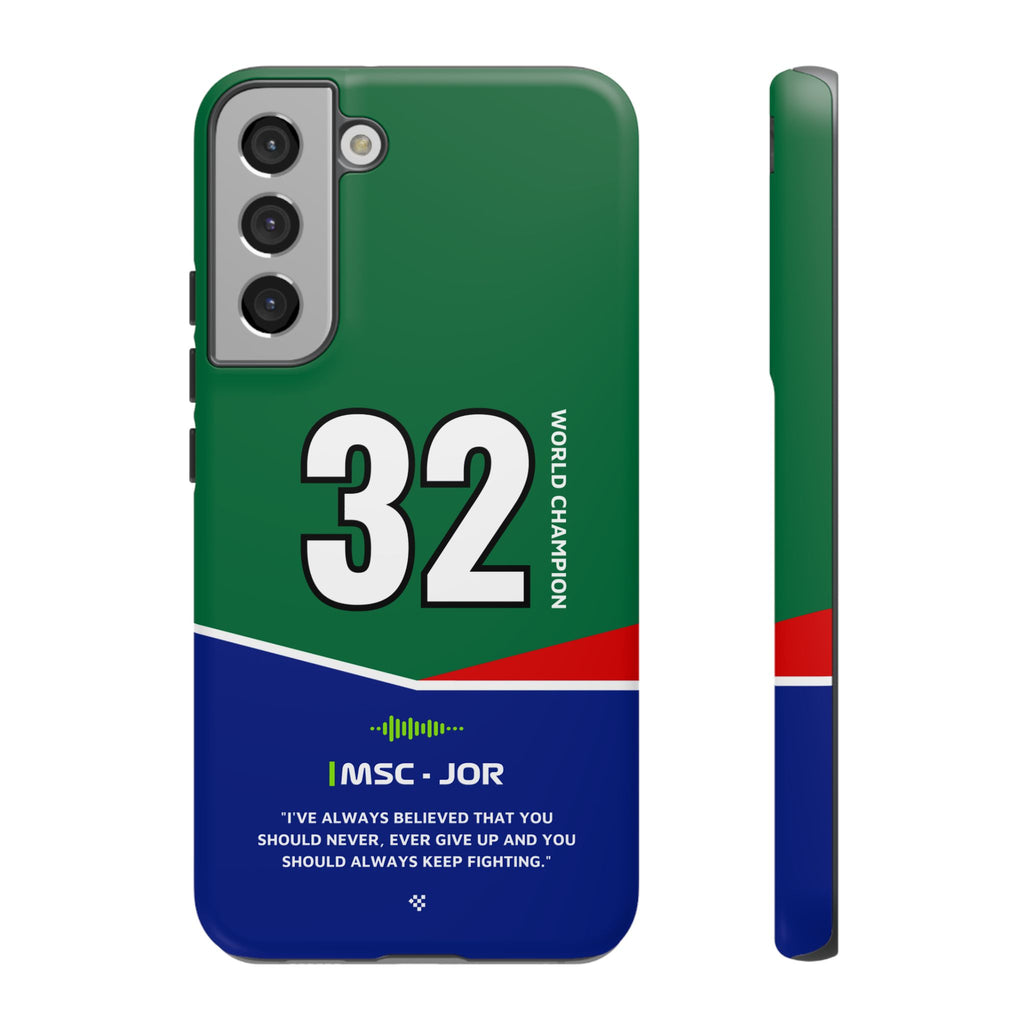 Make sure his legacy persists with the exclusive Michael Schumacher F1 Legend Phone Case. It's the perfect accessory for every passionate Formula 1 and Schumacher fan. Featuring Michael's iconic #32 race number and the bold 1991 Jordan team colors, this green phone case brings racing energy straight to your hand.