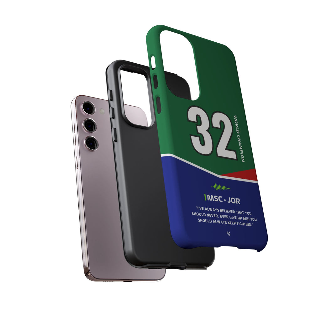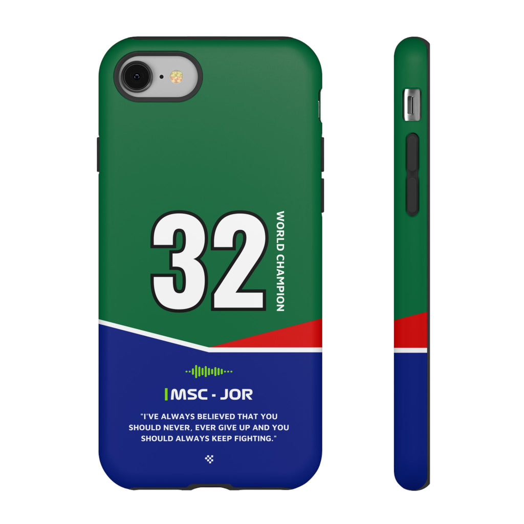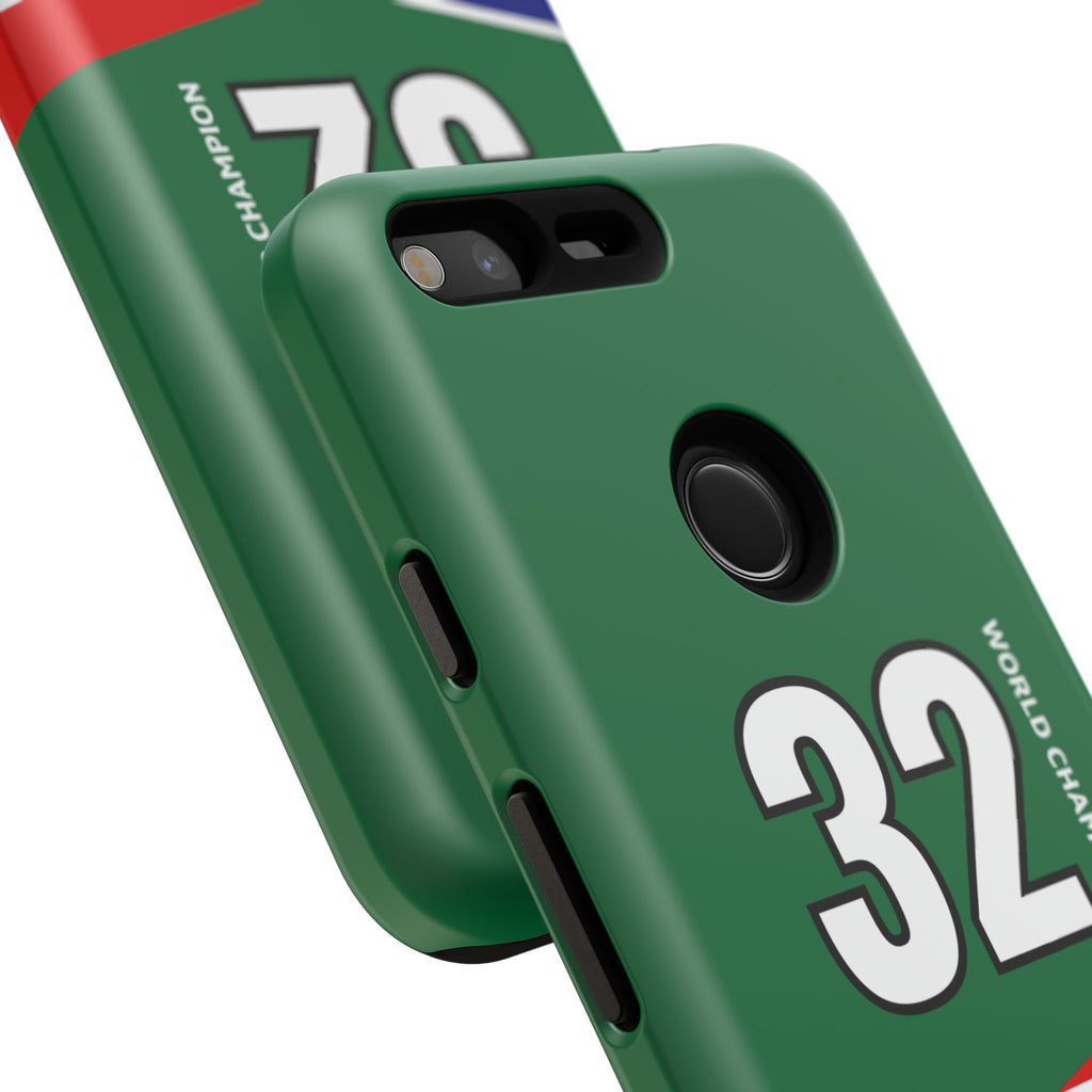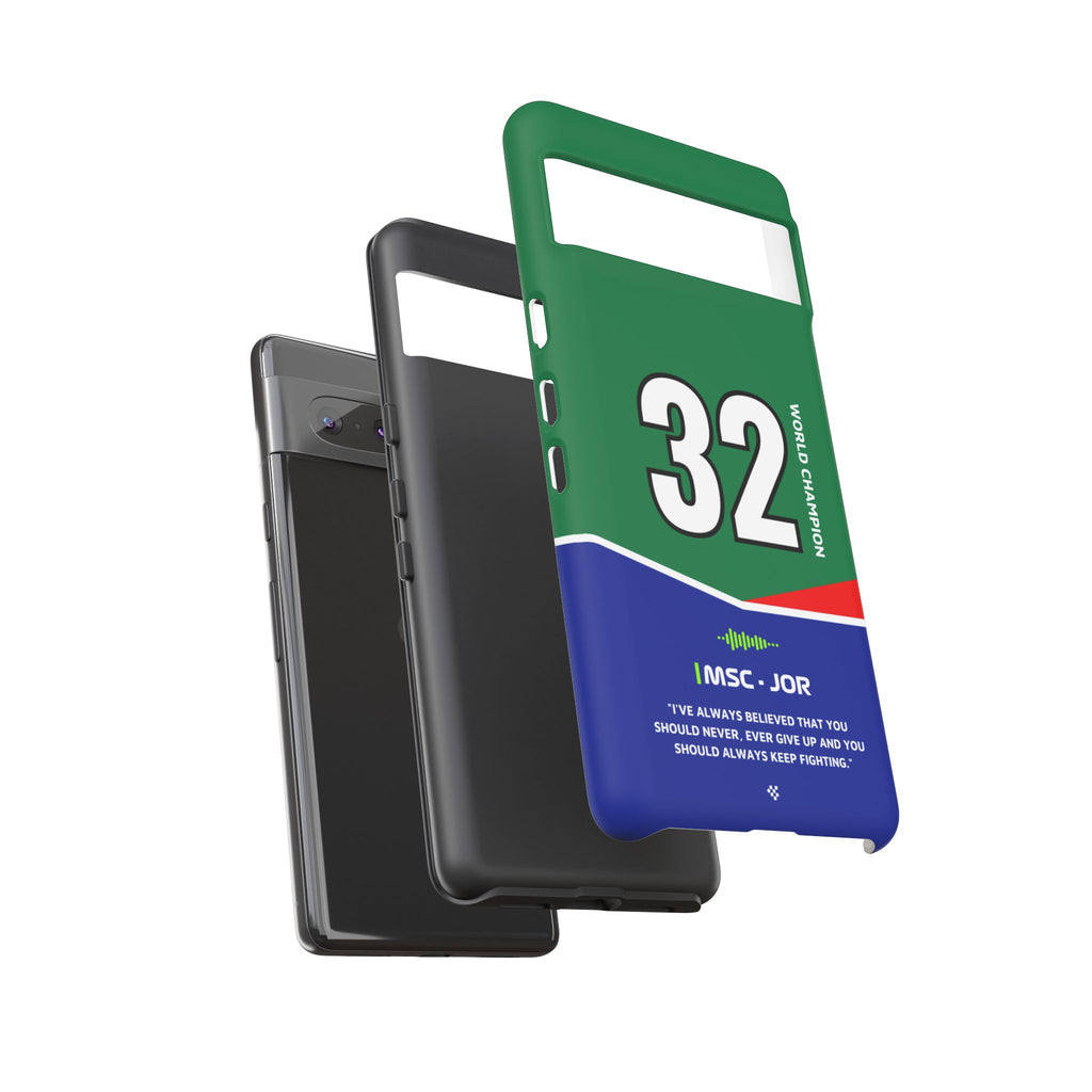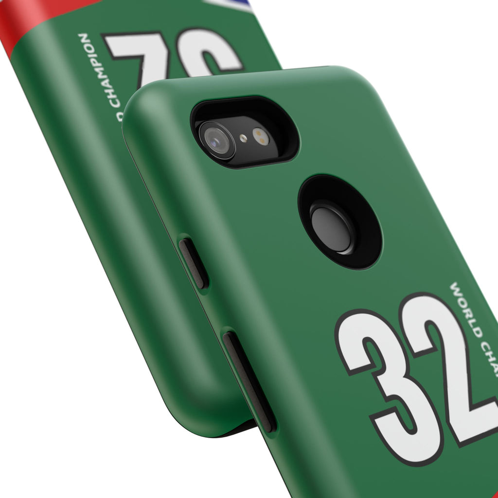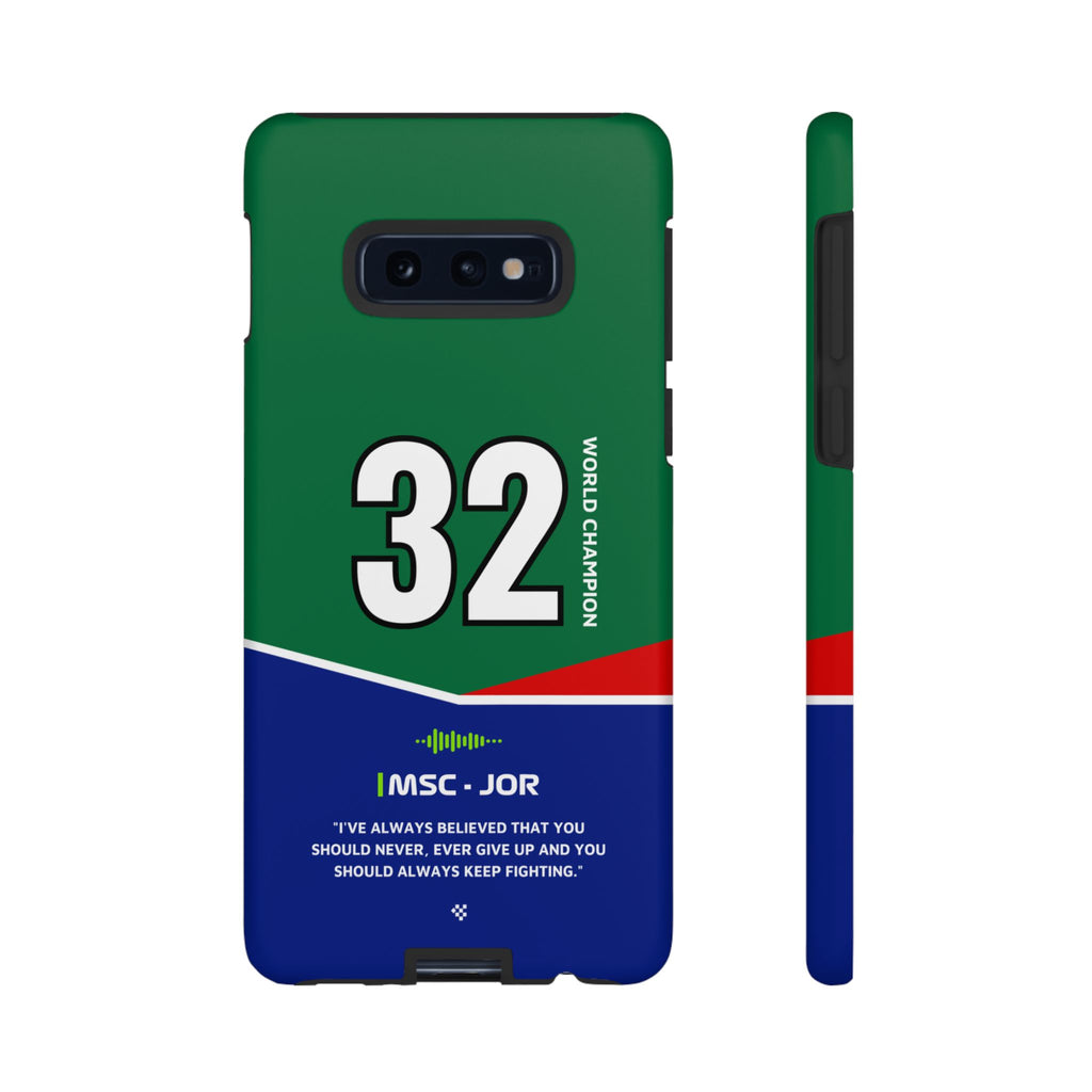 Make sure his legacy persists with the exclusive Michael Schumacher F1 Legend Phone Case. It's the perfect accessory for every passionate Formula 1 and Schumacher fan. Featuring Michael's iconic #32 race number and the bold 1991 Jordan team colors, this green phone case brings racing energy straight to your hand.