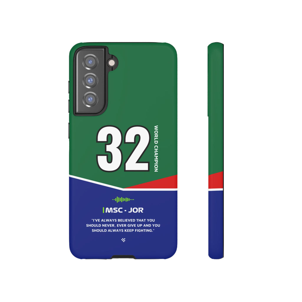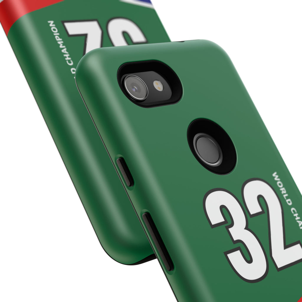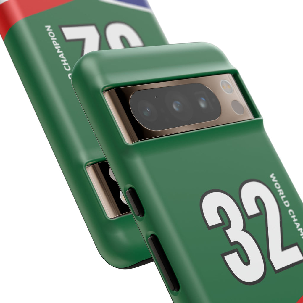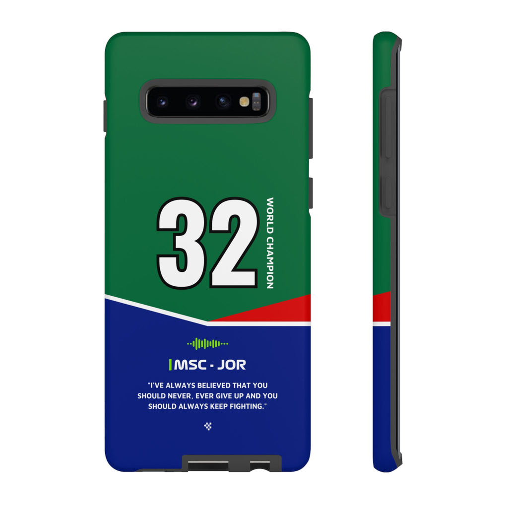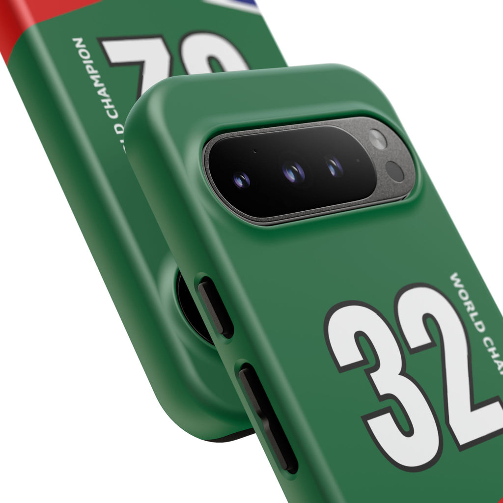 Make sure his legacy persists with the exclusive Michael Schumacher F1 Legend Phone Case. It's the perfect accessory for every passionate Formula 1 and Schumacher fan. Featuring Michael's iconic #32 race number and the bold 1991 Jordan team colors, this green phone case brings racing energy straight to your hand.