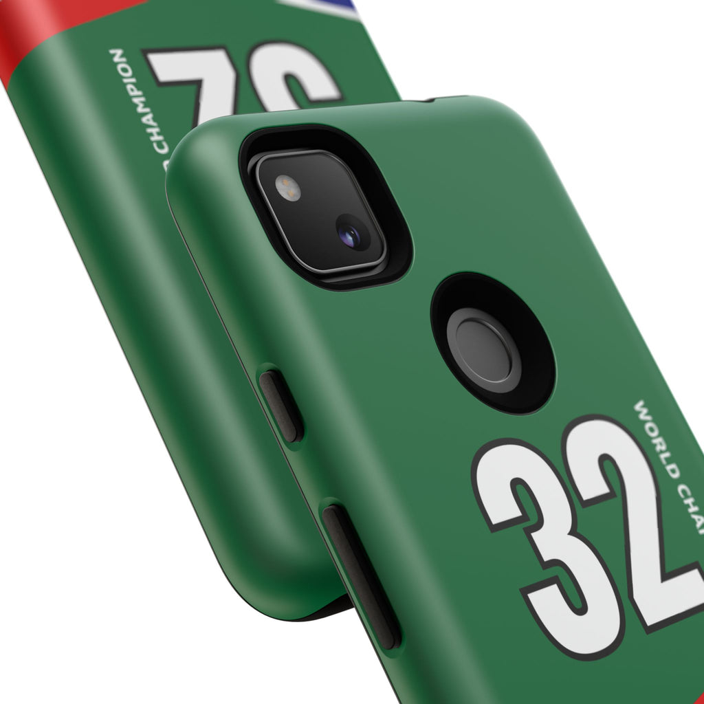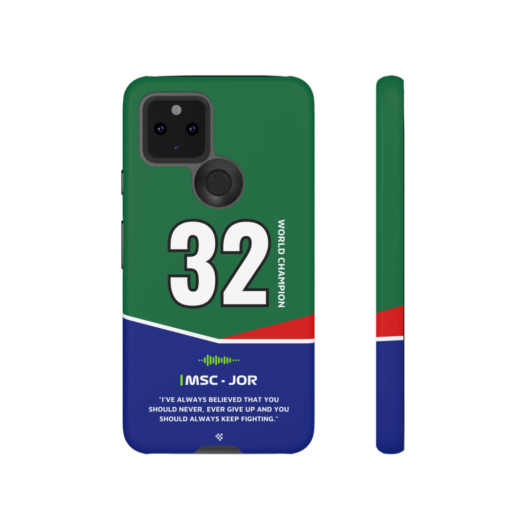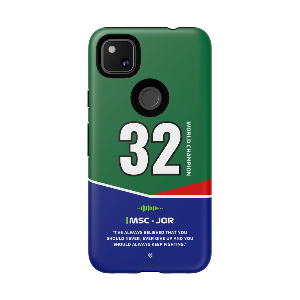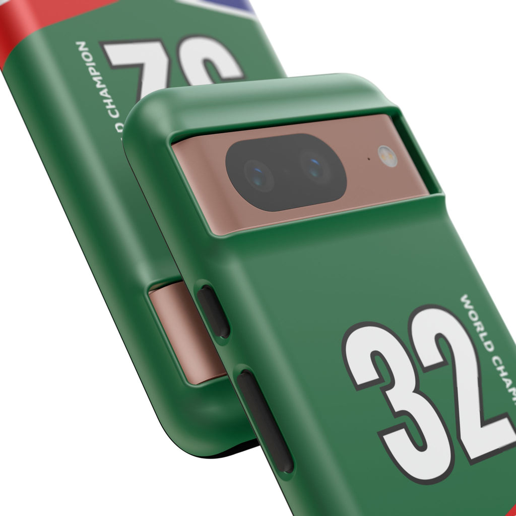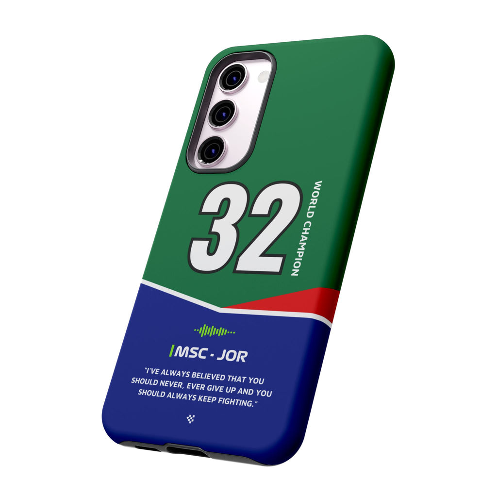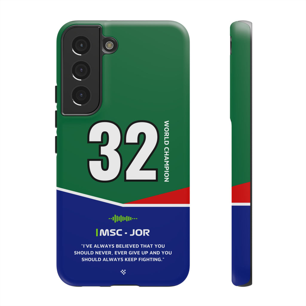 Make sure his legacy persists with the exclusive Michael Schumacher F1 Legend Phone Case. It's the perfect accessory for every passionate Formula 1 and Schumacher fan. Featuring Michael's iconic #32 race number and the bold 1991 Jordan team colors, this green phone case brings racing energy straight to your hand.