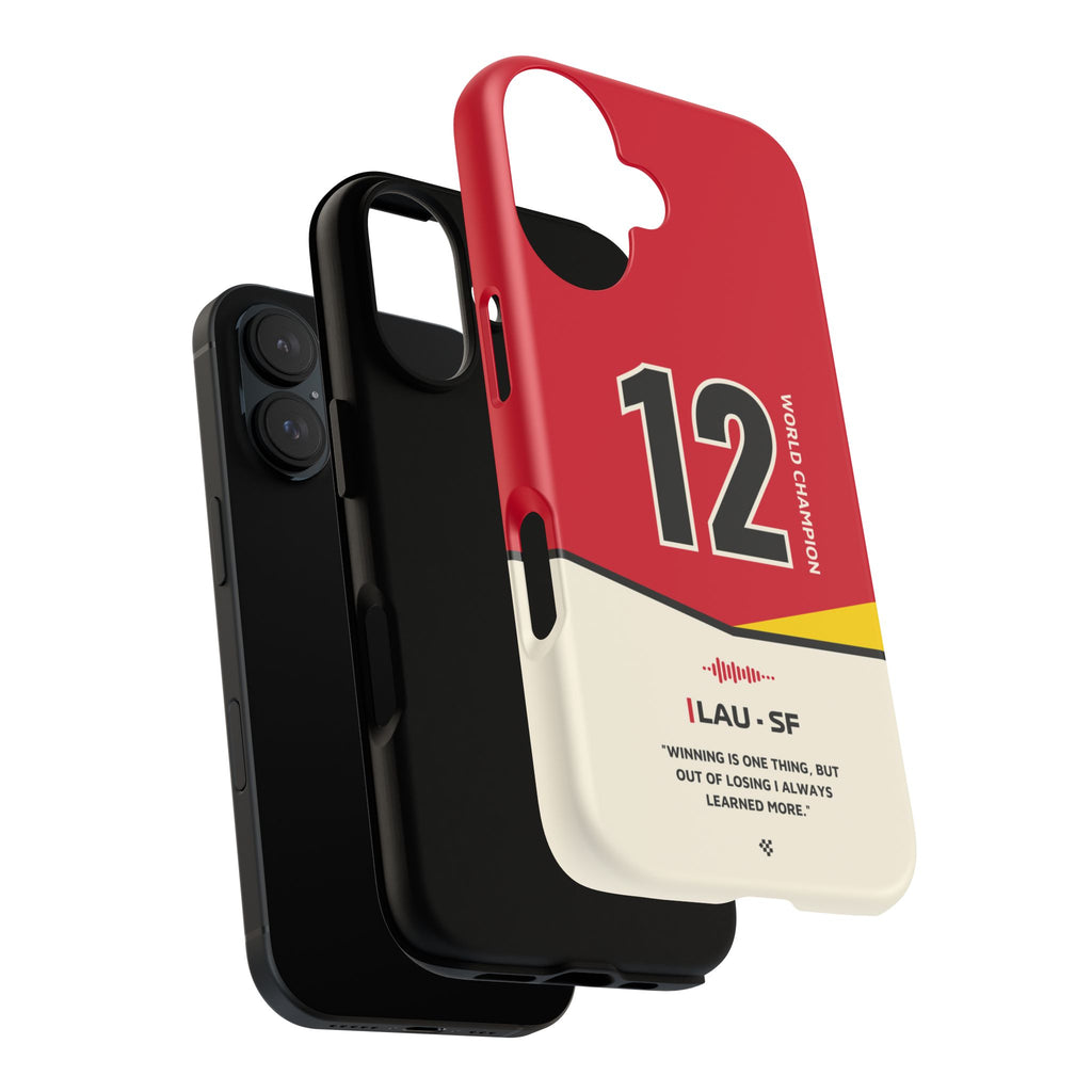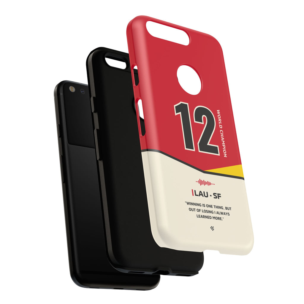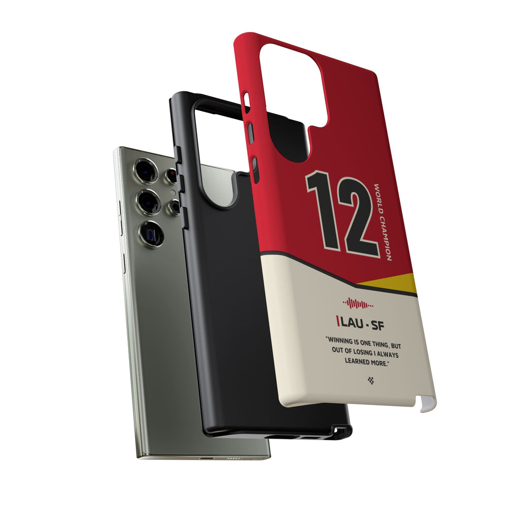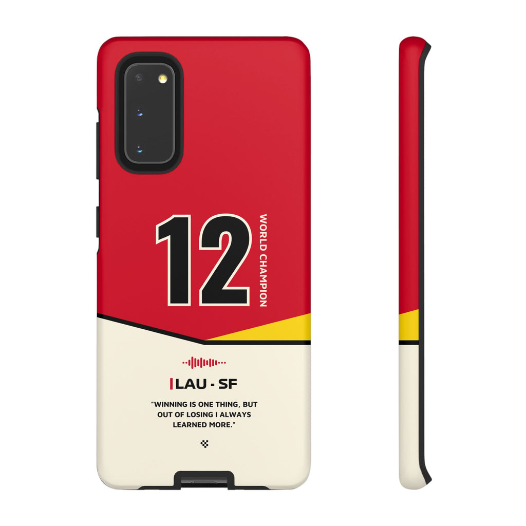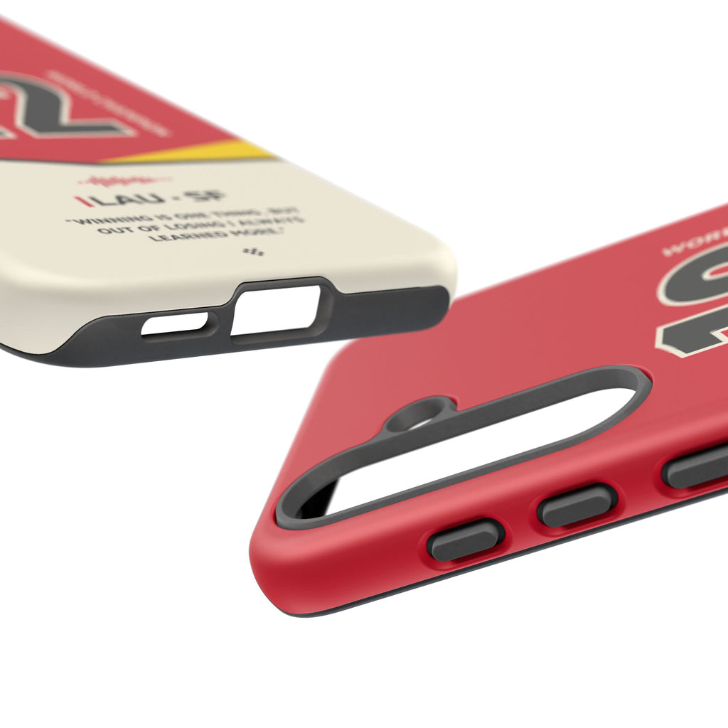 Make sure his legacy persists with the exclusive Niki Lauda F1 Legend Phone Case. It's the perfect accessory for every passionate Formula 1 and Lauda fan. Featuring Niki's iconic #12 race number and the bold 1975 Scuderia Ferrari team colors, this red phone case brings racing energy straight to your hand.