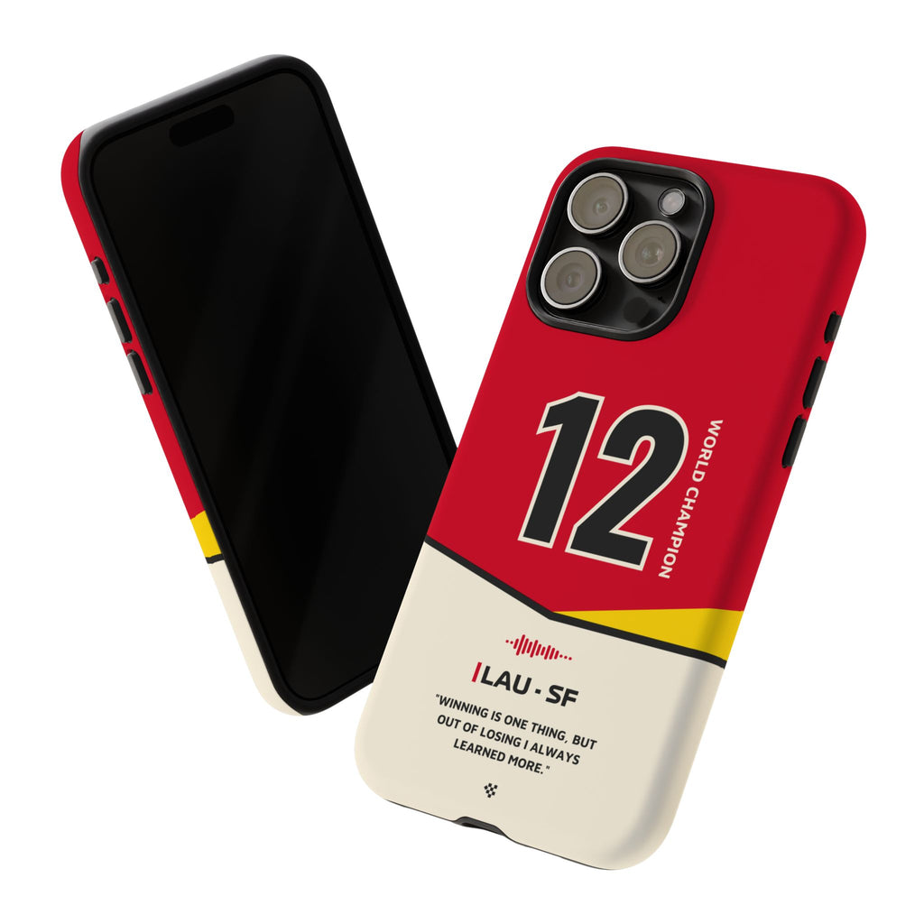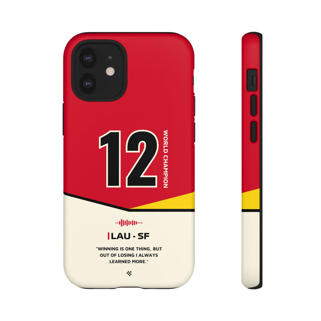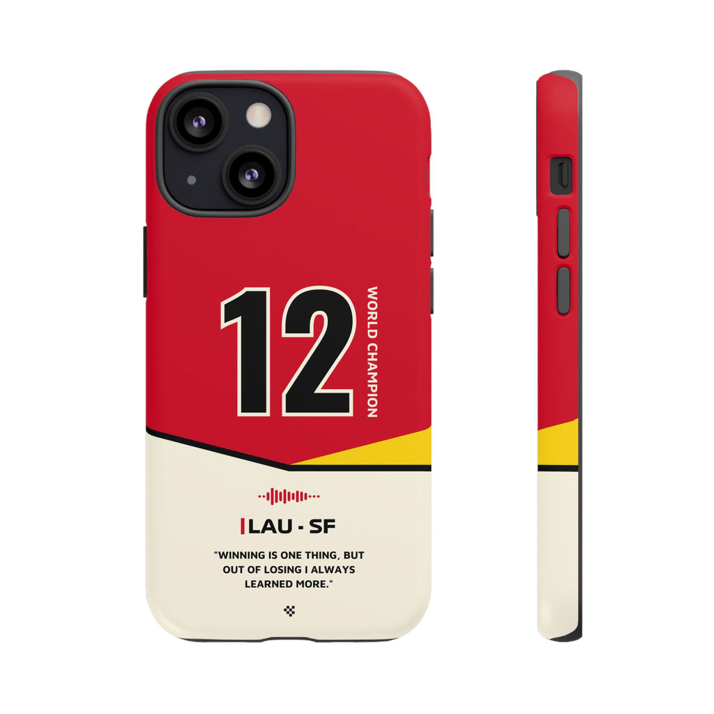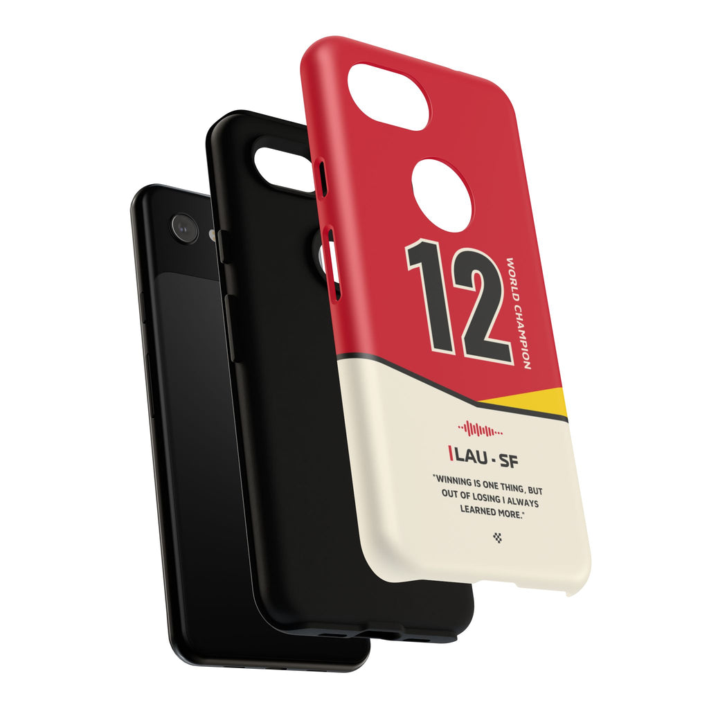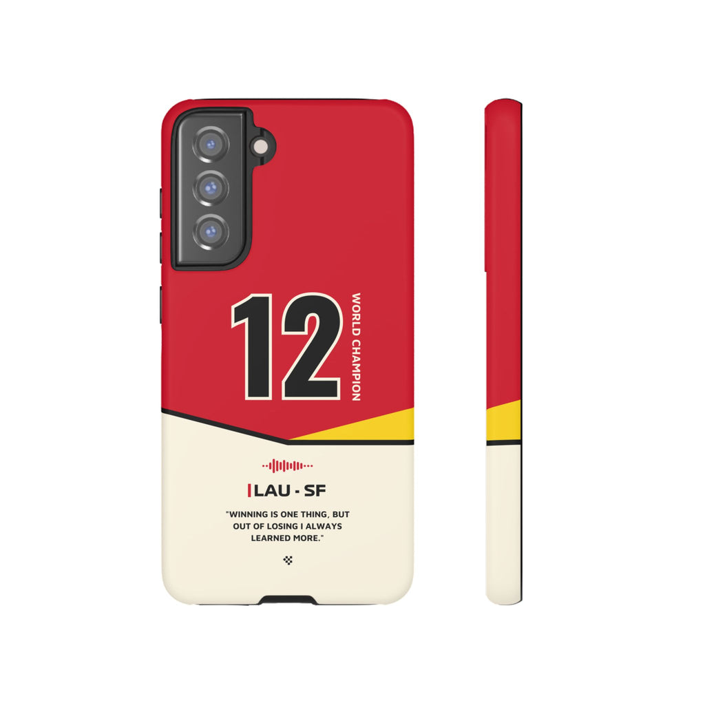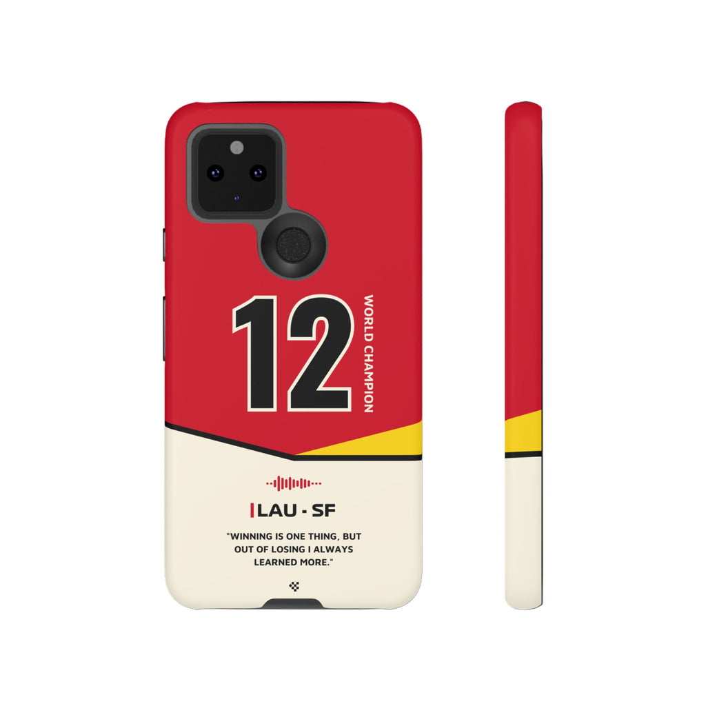 Make sure his legacy persists with the exclusive Niki Lauda F1 Legend Phone Case. It's the perfect accessory for every passionate Formula 1 and Lauda fan. Featuring Niki's iconic #12 race number and the bold 1975 Scuderia Ferrari team colors, this red phone case brings racing energy straight to your hand.