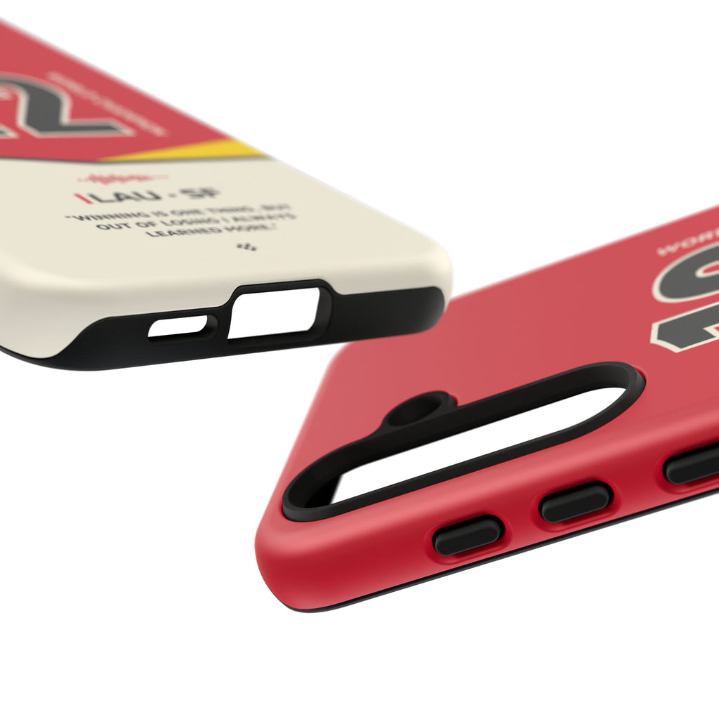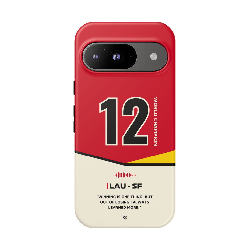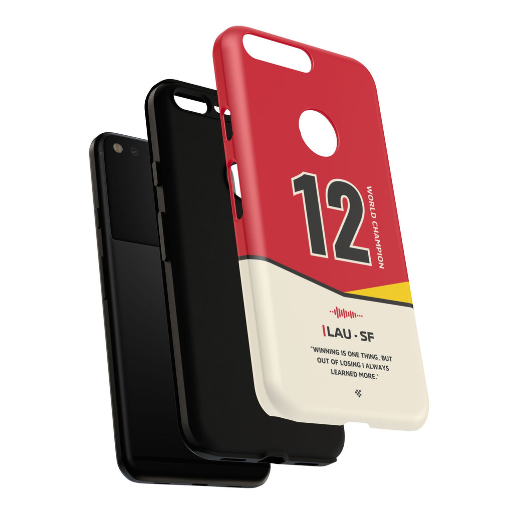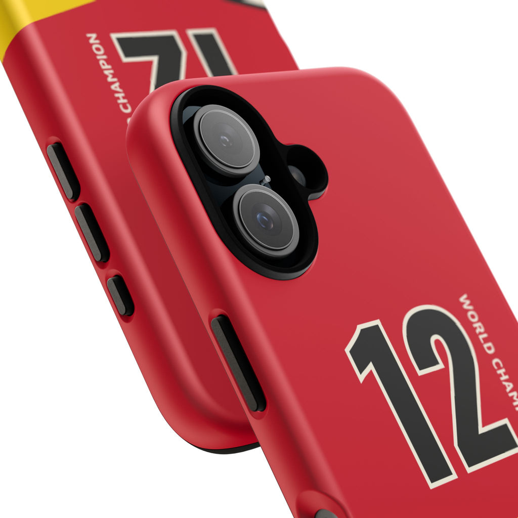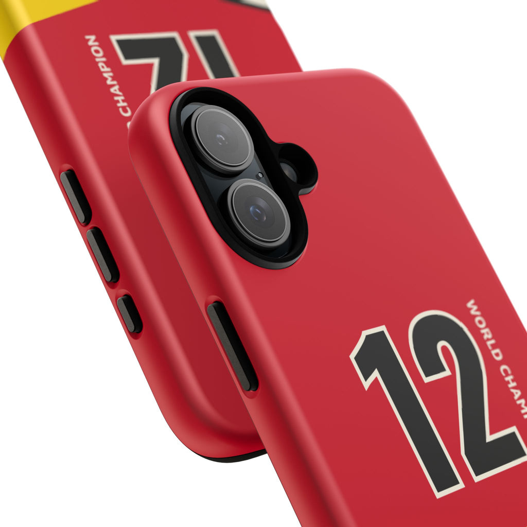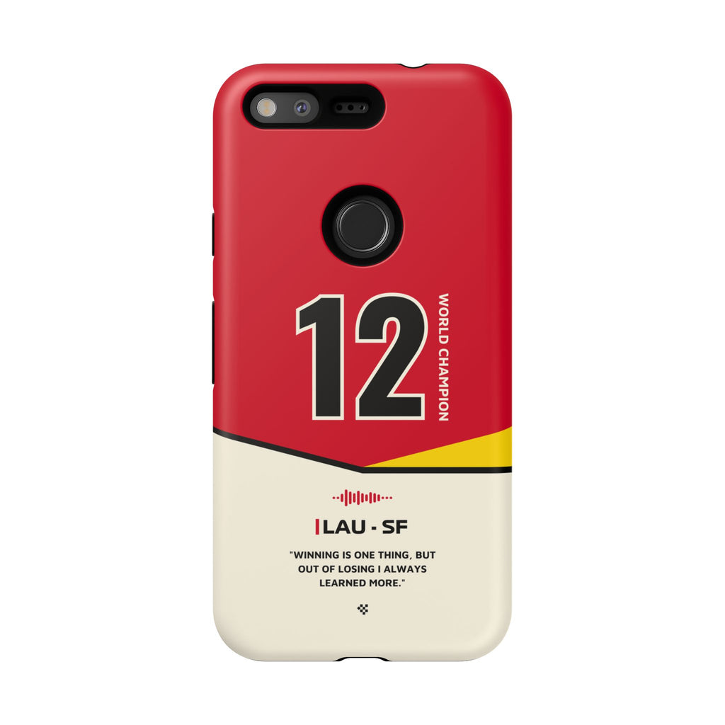 Make sure his legacy persists with the exclusive Niki Lauda F1 Legend Phone Case. It's the perfect accessory for every passionate Formula 1 and Lauda fan. Featuring Niki's iconic #12 race number and the bold 1975 Scuderia Ferrari team colors, this red phone case brings racing energy straight to your hand.