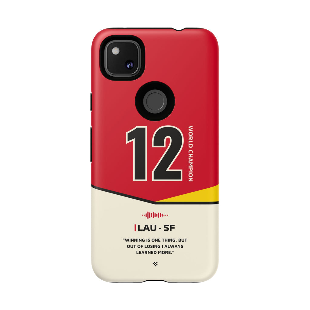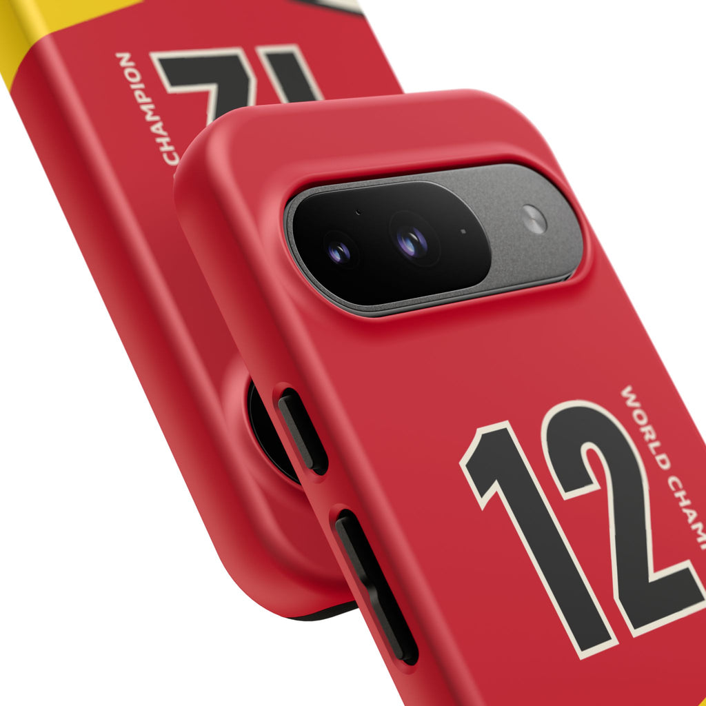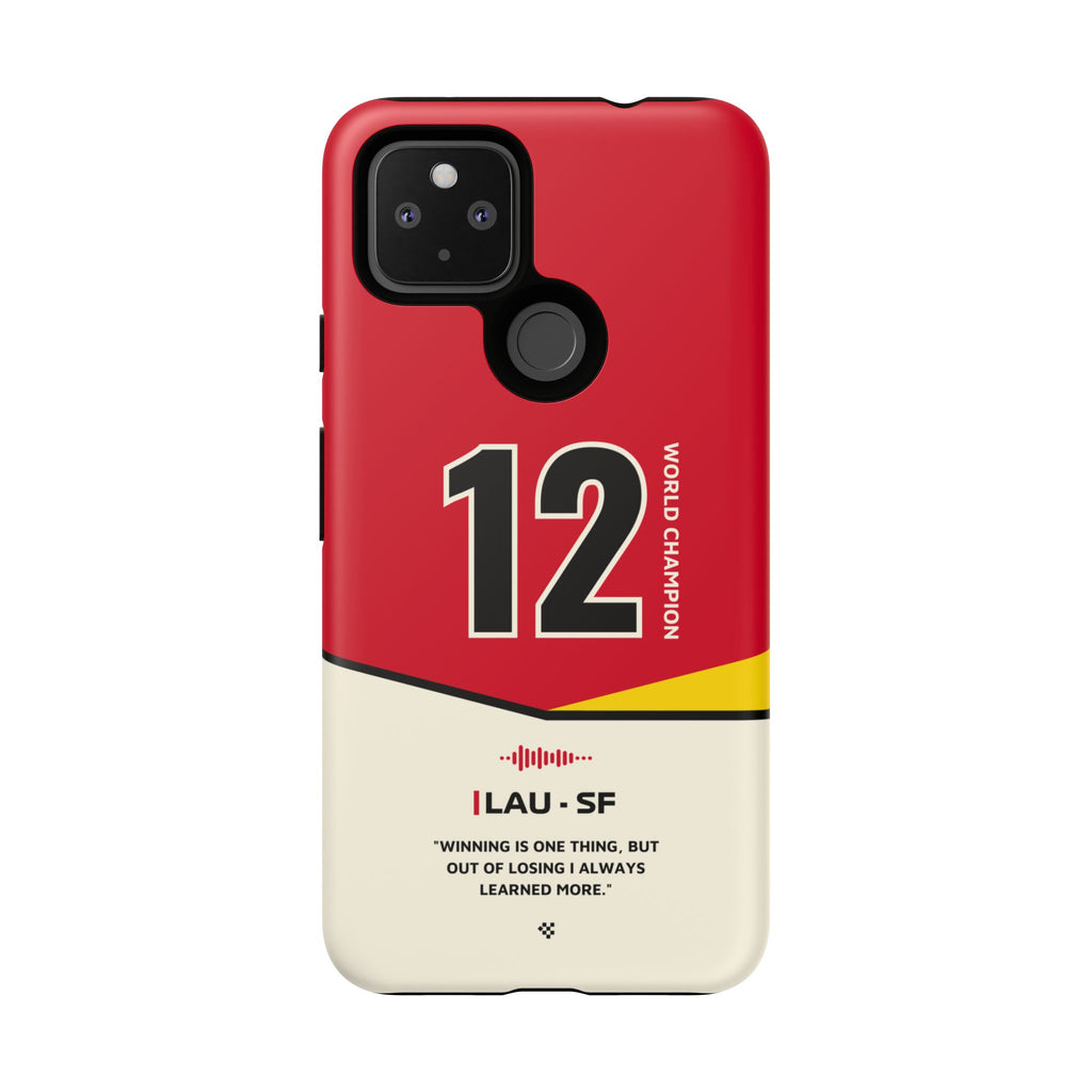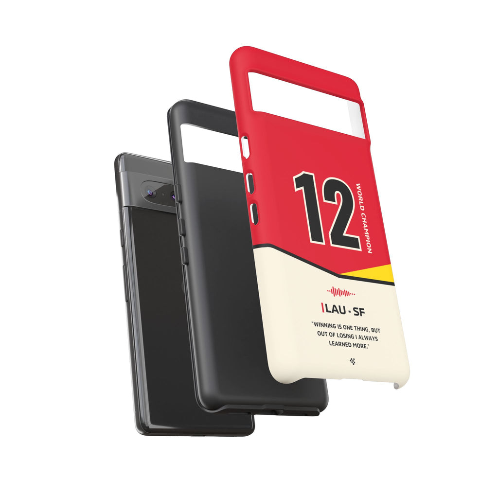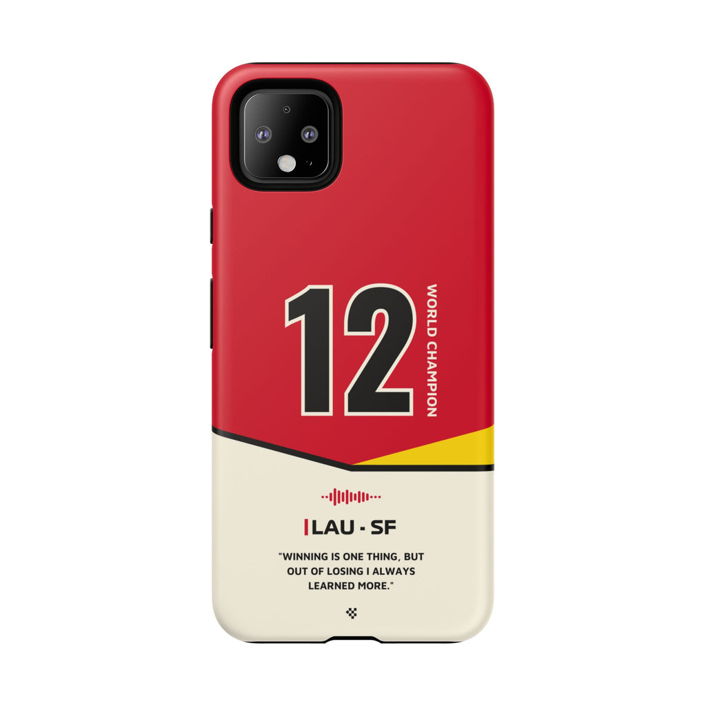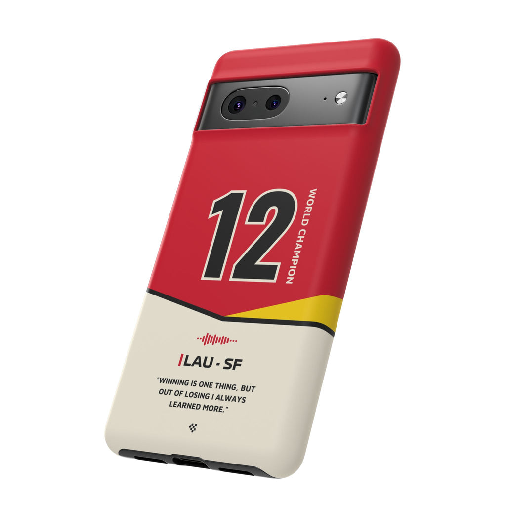 Make sure his legacy persists with the exclusive Niki Lauda F1 Legend Phone Case. It's the perfect accessory for every passionate Formula 1 and Lauda fan. Featuring Niki's iconic #12 race number and the bold 1975 Scuderia Ferrari team colors, this red phone case brings racing energy straight to your hand.
