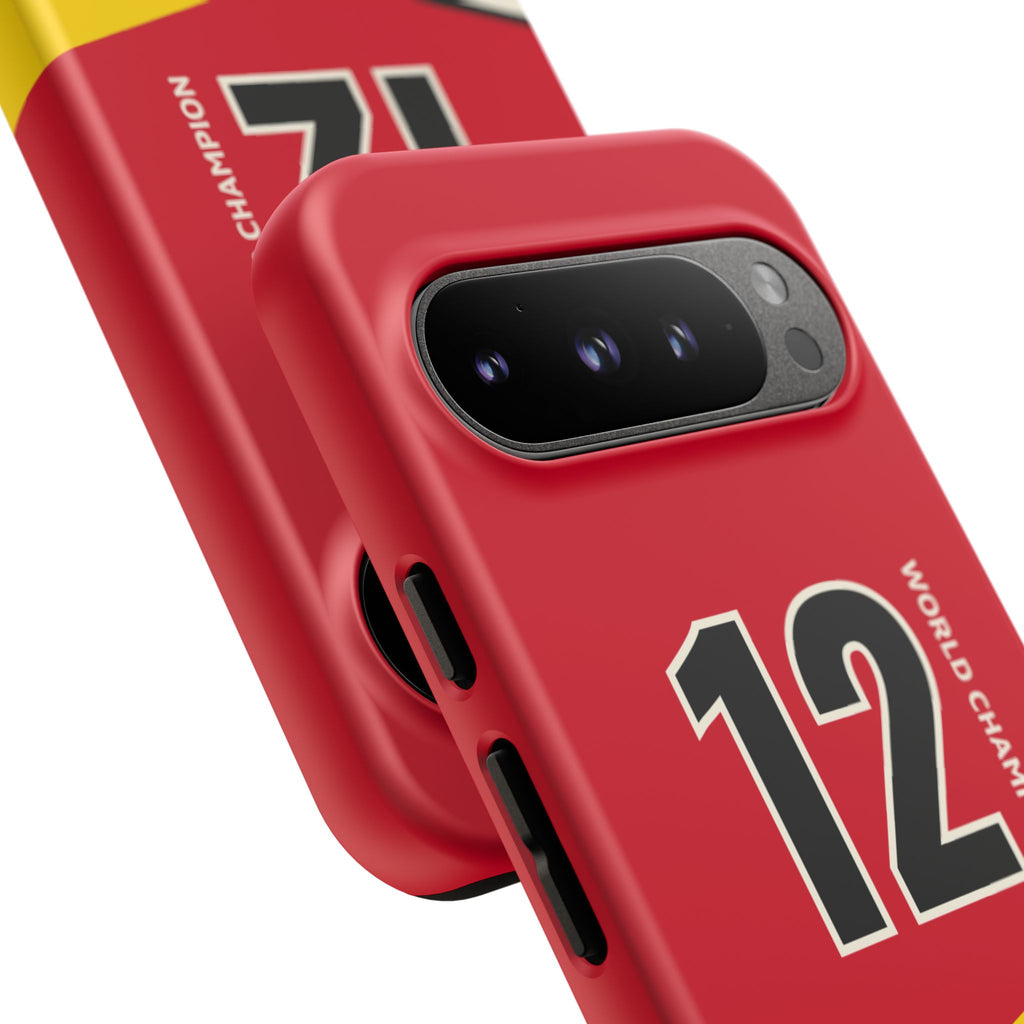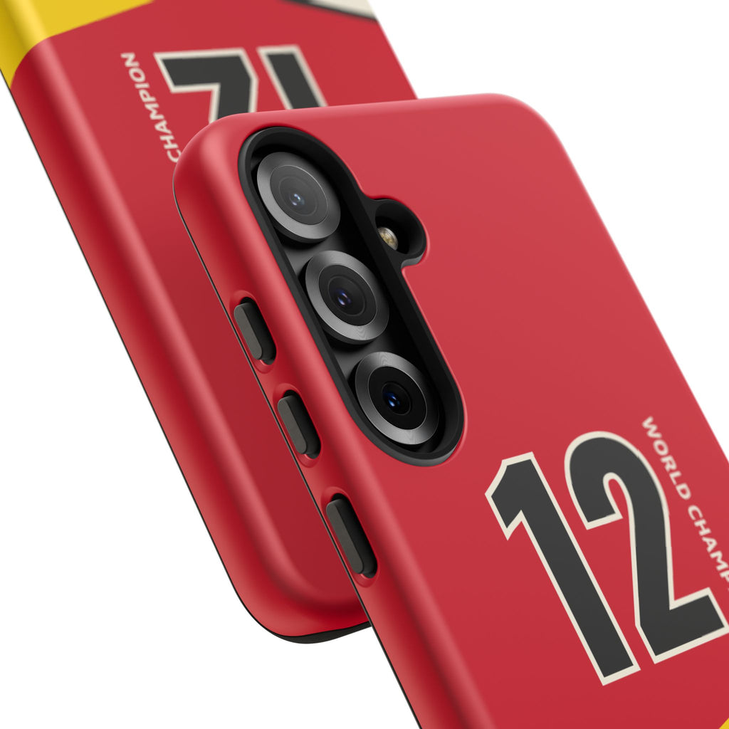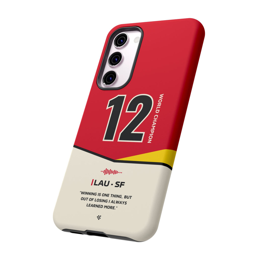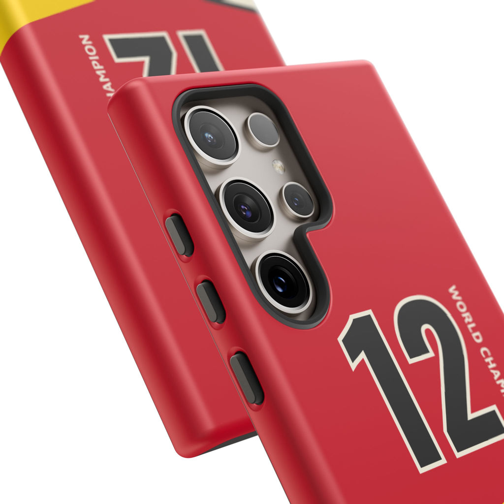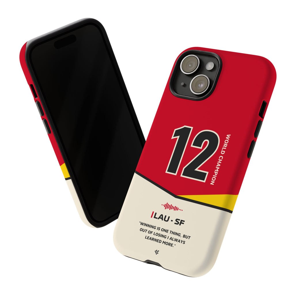 Make sure his legacy persists with the exclusive Niki Lauda F1 Legend Phone Case. It's the perfect accessory for every passionate Formula 1 and Lauda fan. Featuring Niki's iconic #12 race number and the bold 1975 Scuderia Ferrari team colors, this red phone case brings racing energy straight to your hand.