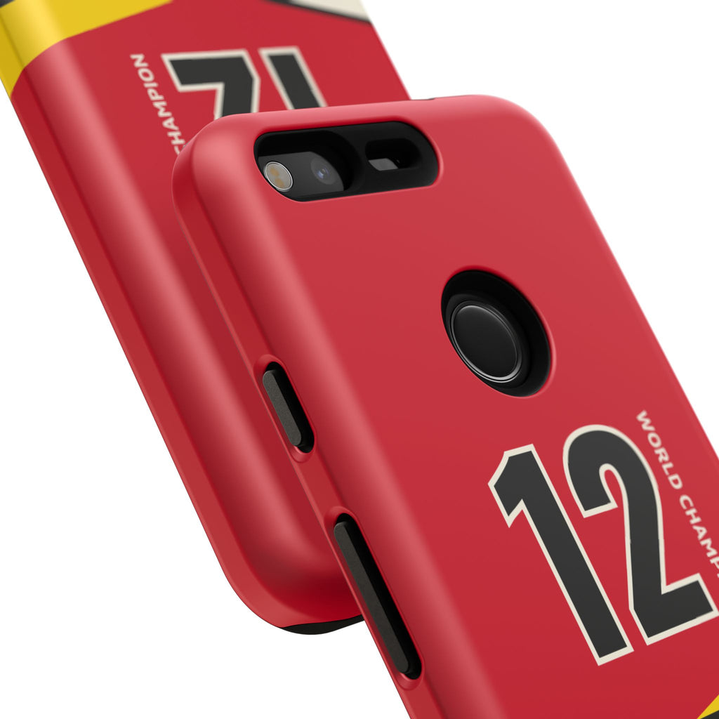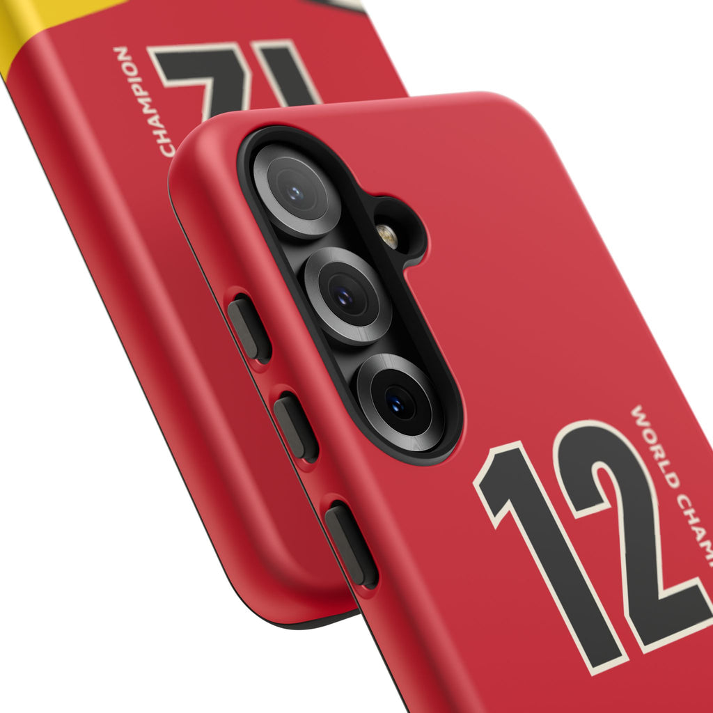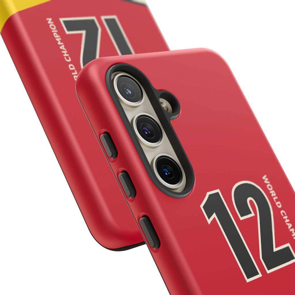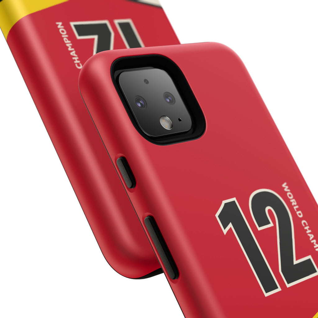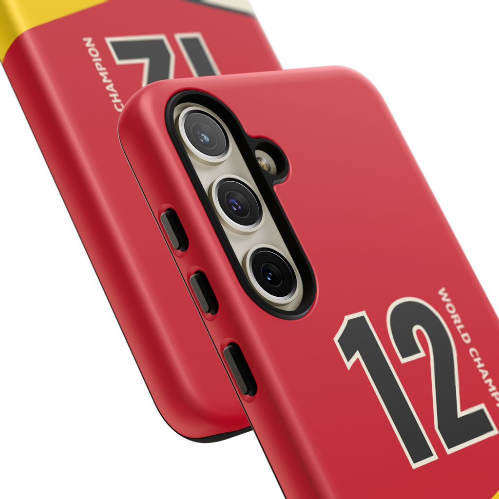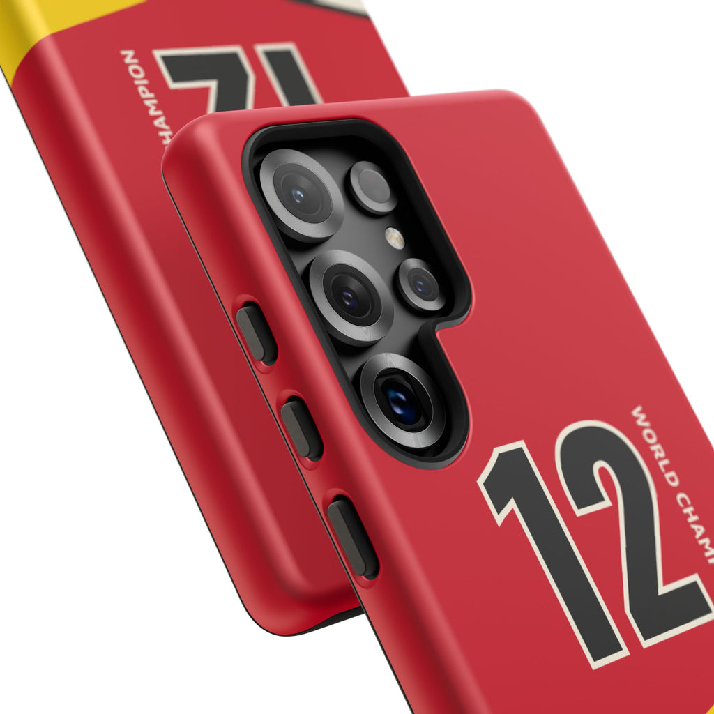 Make sure his legacy persists with the exclusive Niki Lauda F1 Legend Phone Case. It's the perfect accessory for every passionate Formula 1 and Lauda fan. Featuring Niki's iconic #12 race number and the bold 1975 Scuderia Ferrari team colors, this red phone case brings racing energy straight to your hand.