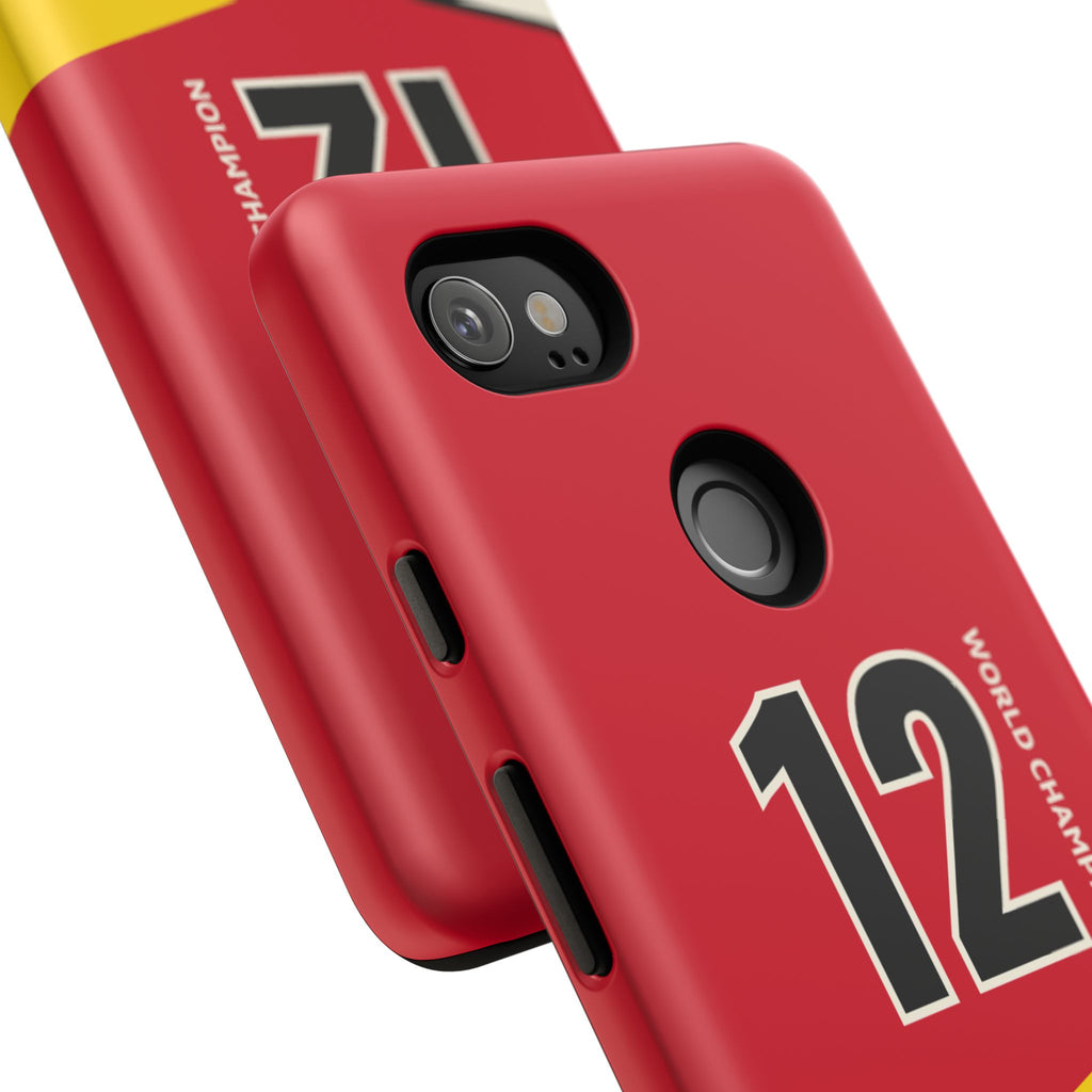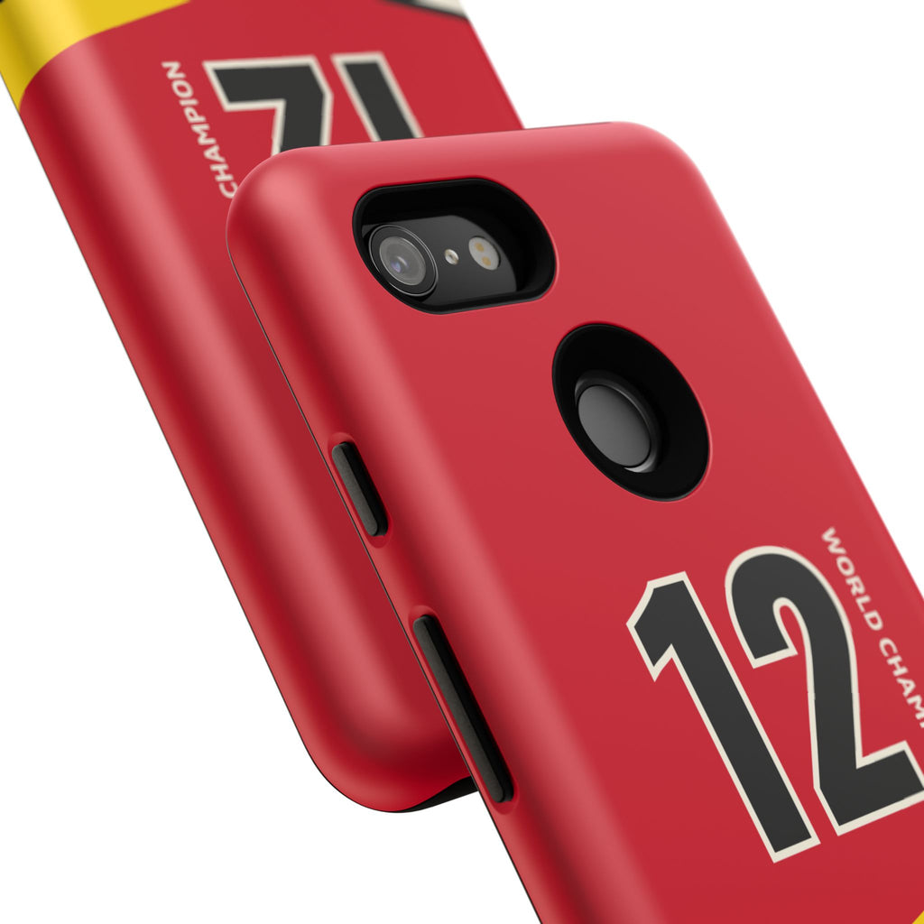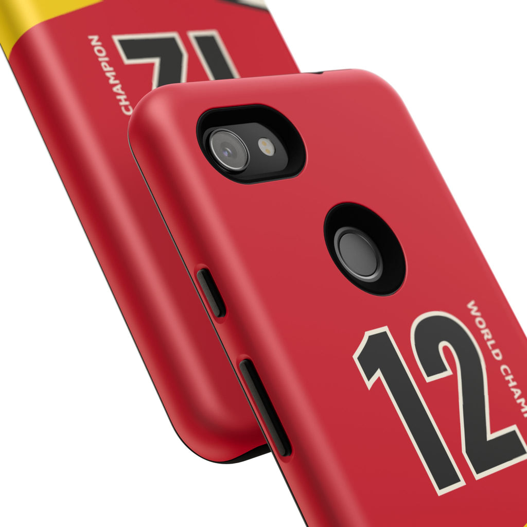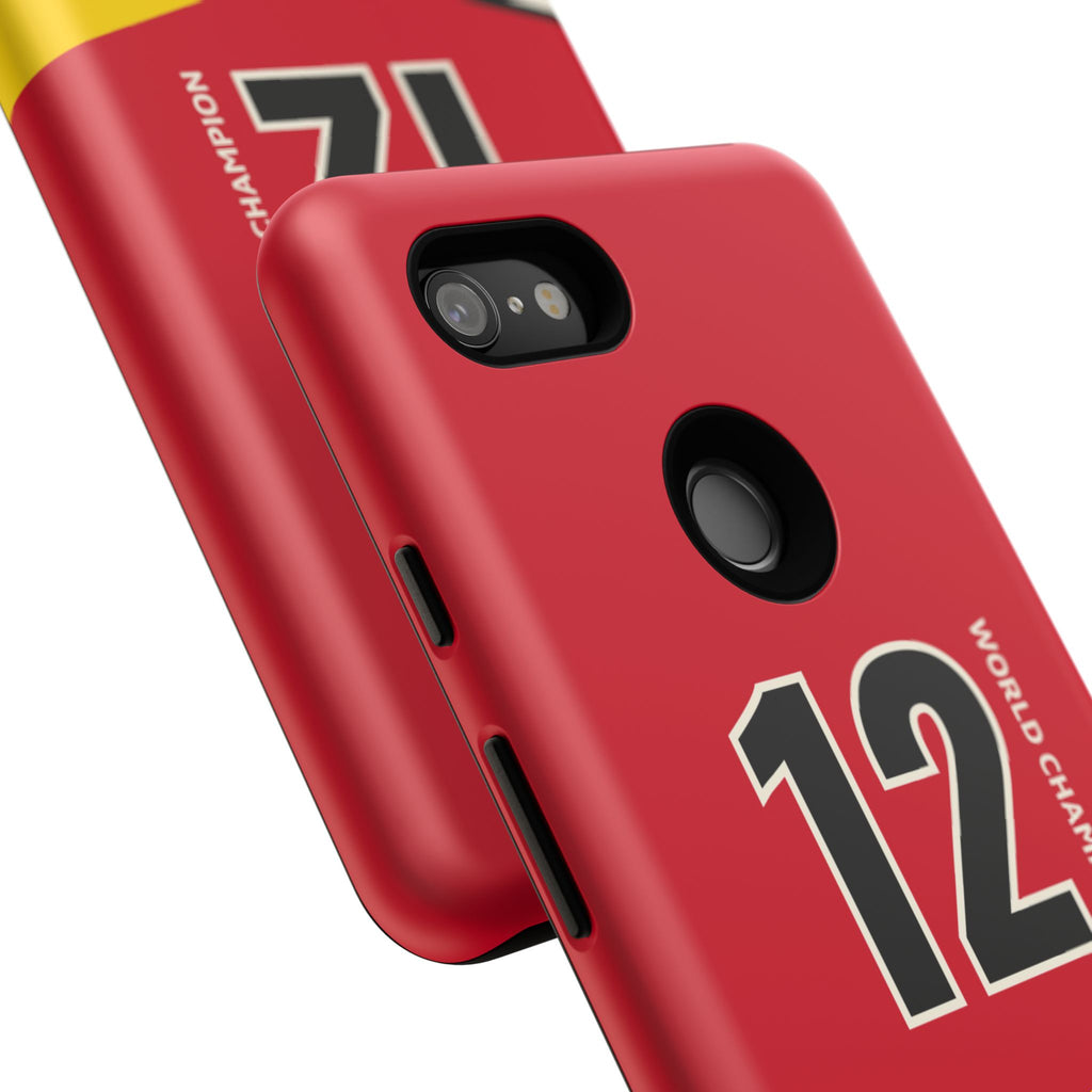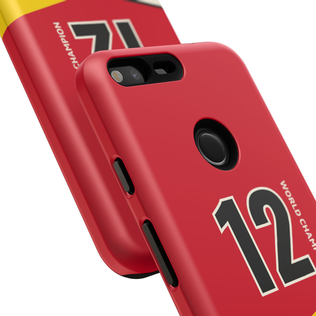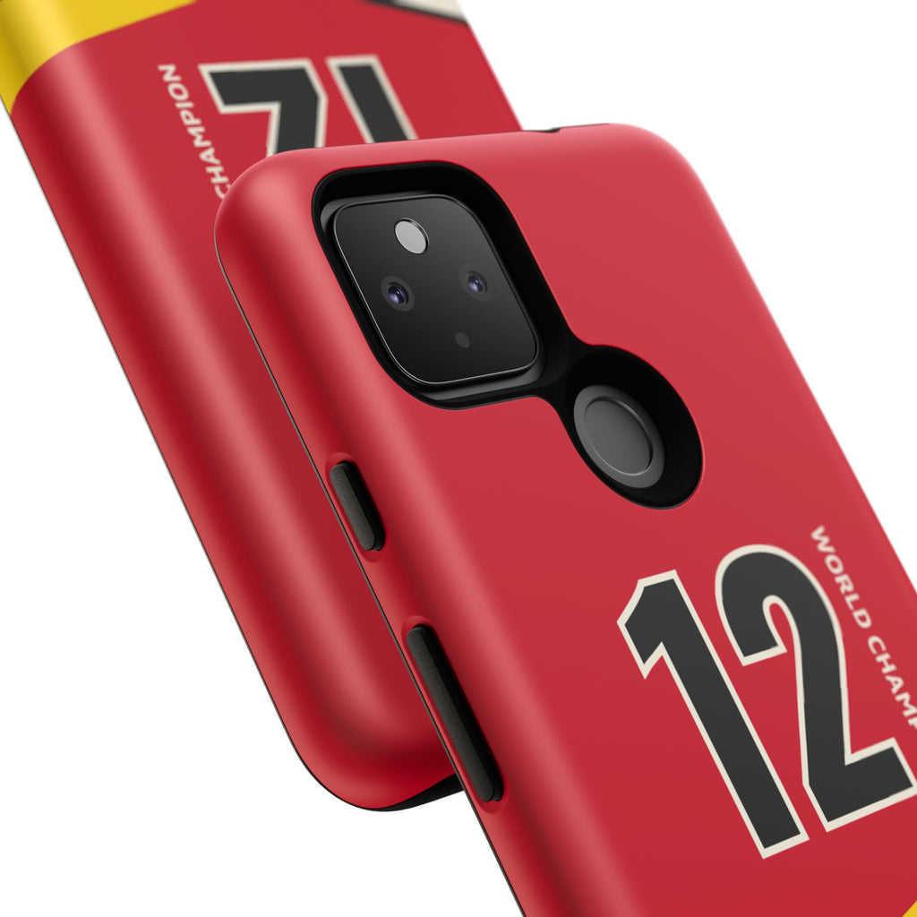 Make sure his legacy persists with the exclusive Niki Lauda F1 Legend Phone Case. It's the perfect accessory for every passionate Formula 1 and Lauda fan. Featuring Niki's iconic #12 race number and the bold 1975 Scuderia Ferrari team colors, this red phone case brings racing energy straight to your hand.