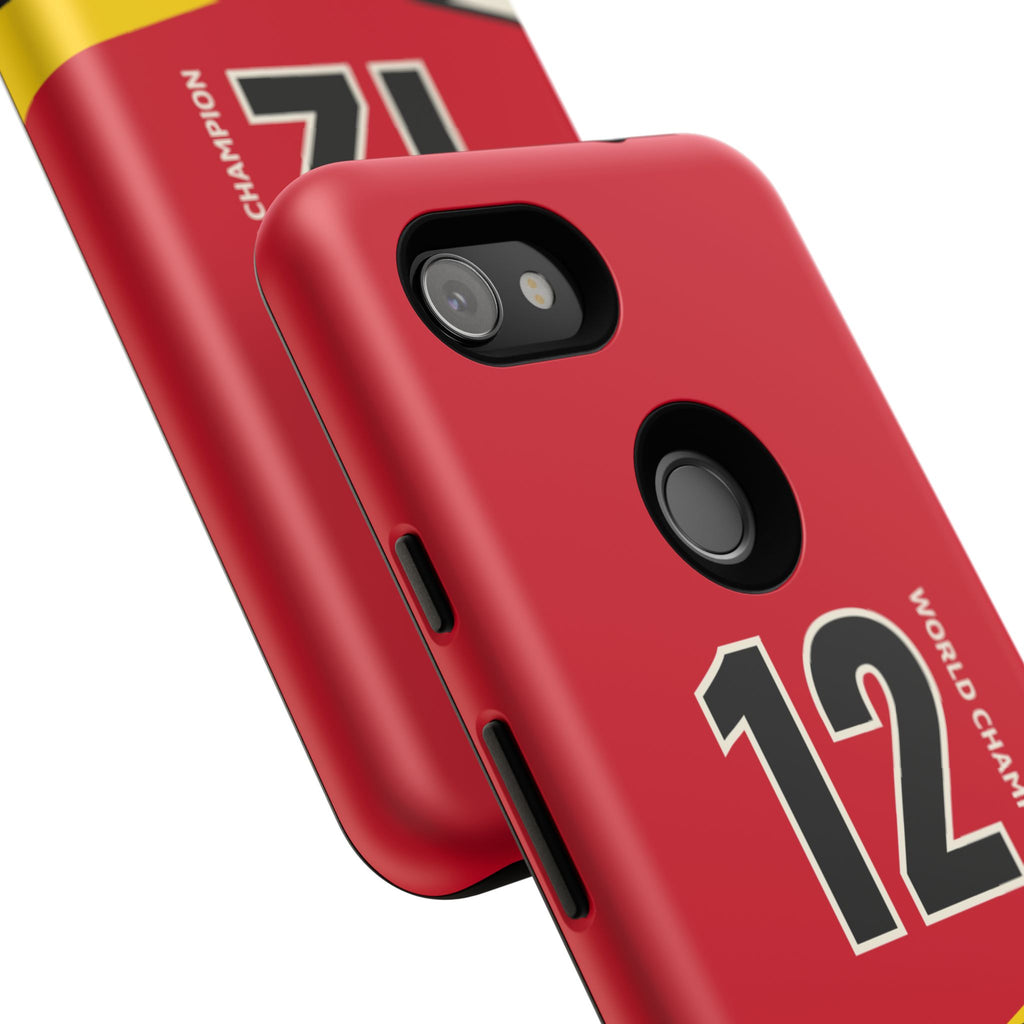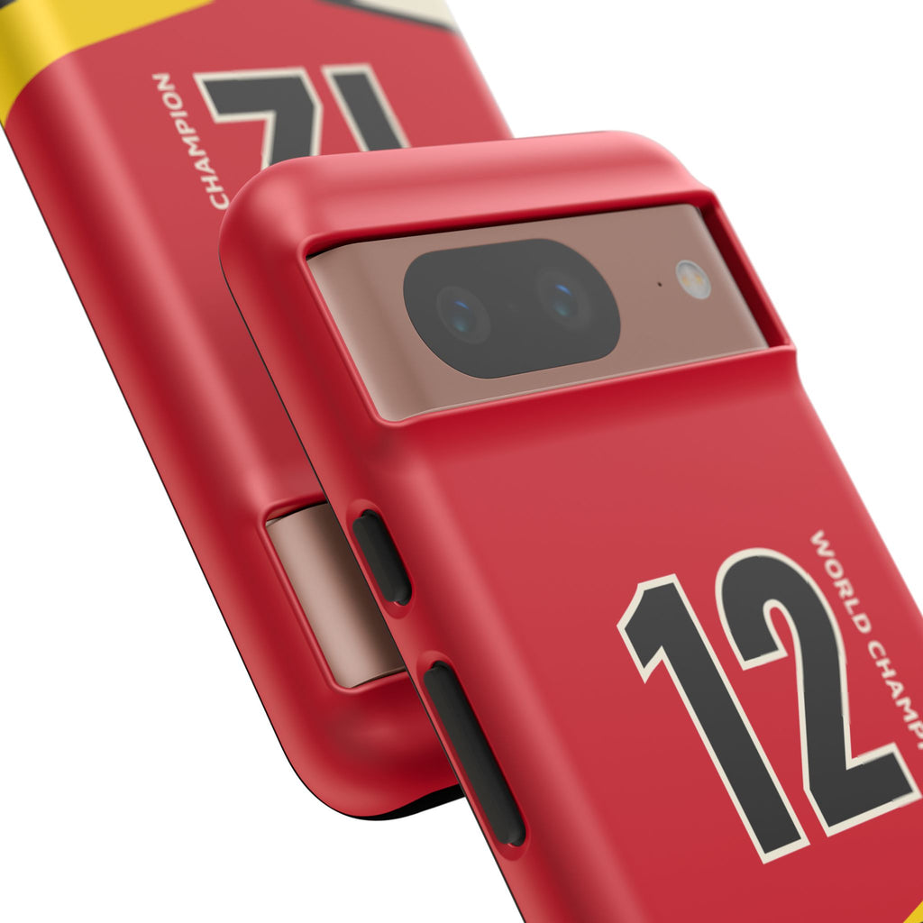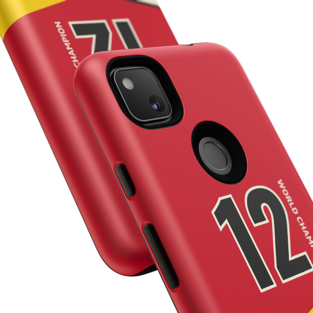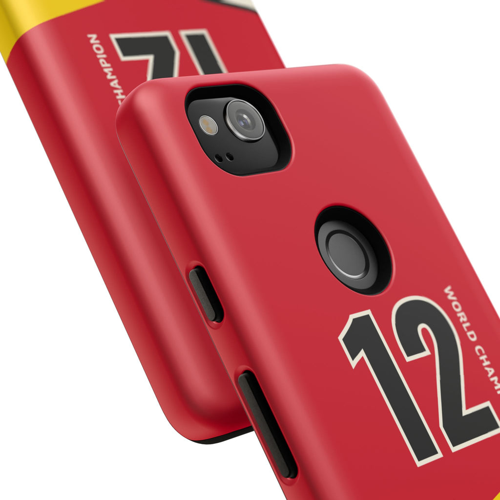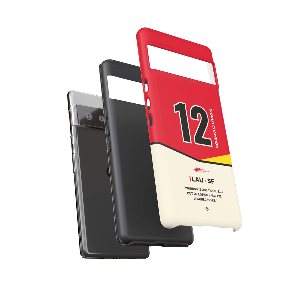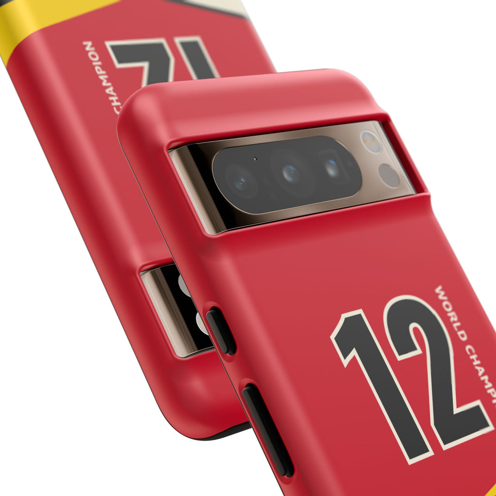 Make sure his legacy persists with the exclusive Niki Lauda F1 Legend Phone Case. It's the perfect accessory for every passionate Formula 1 and Lauda fan. Featuring Niki's iconic #12 race number and the bold 1975 Scuderia Ferrari team colors, this red phone case brings racing energy straight to your hand.