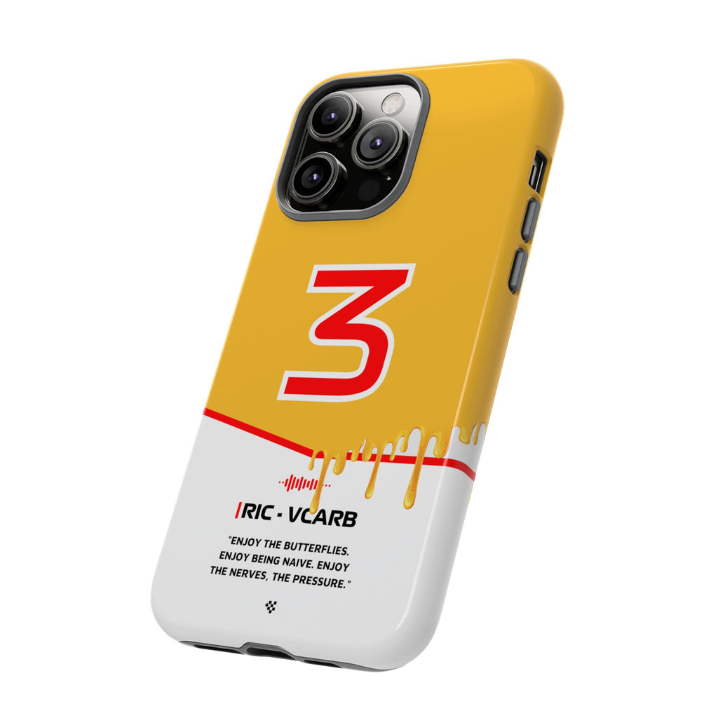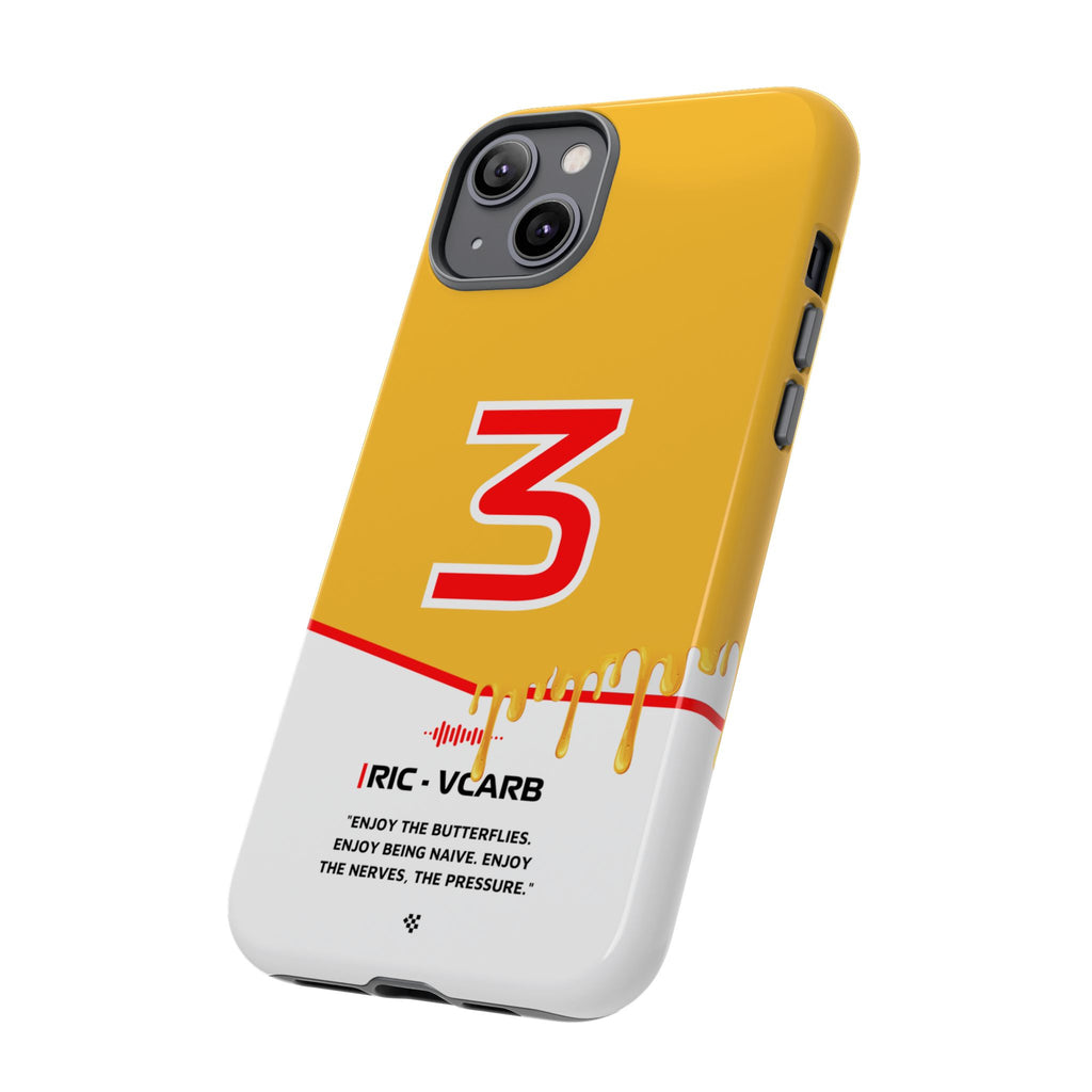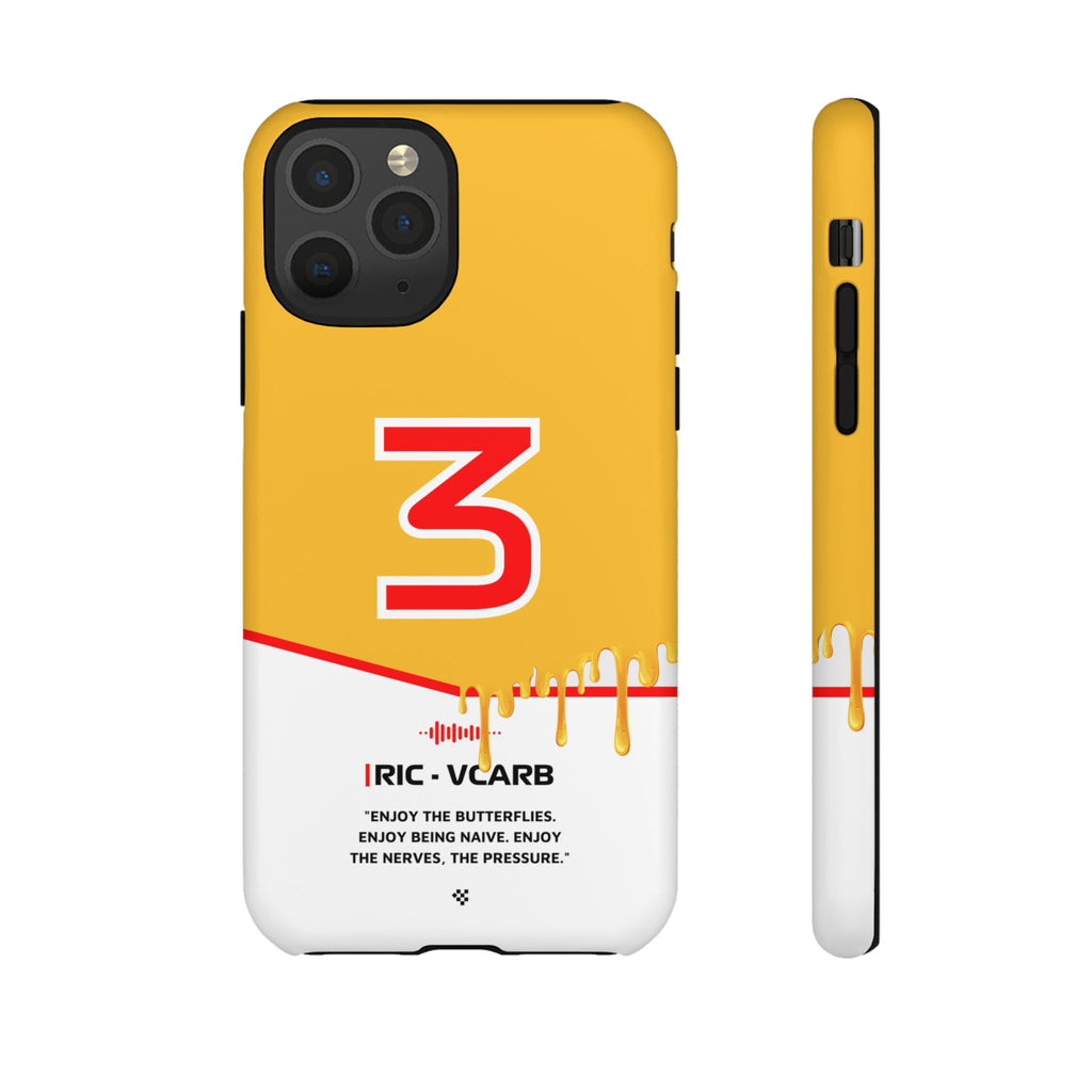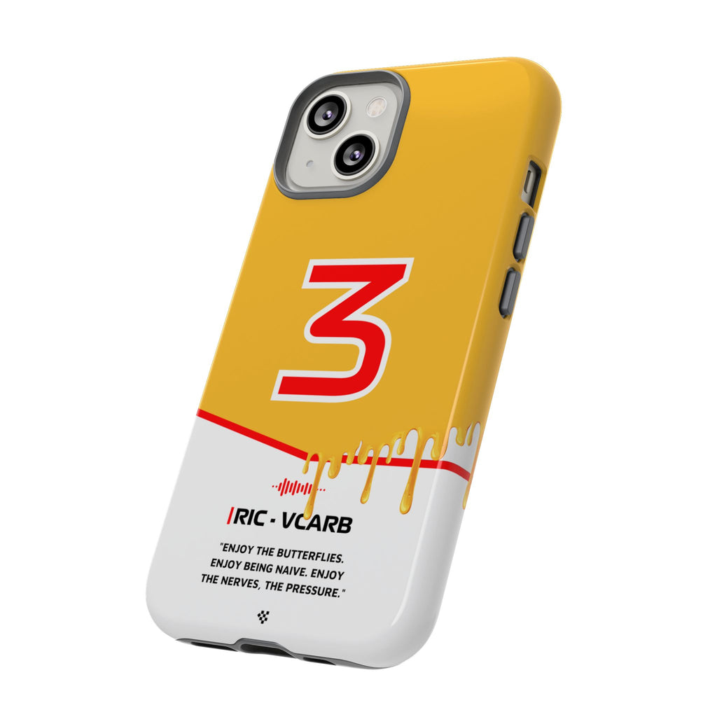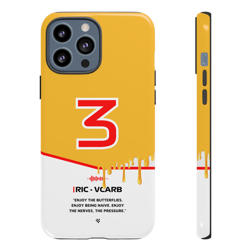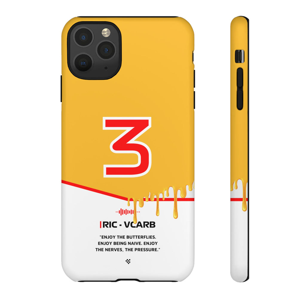 Get ready to support Daniel in the 2024 Formula 1 season with the Daniel Ricciardo F1 2024 Canada Helmet Phone Case. Designed for true Formula 1 fans, this case features his iconic #3 race car number alongside his striking 2024 Canada helmet colors. But that's not all - it also proudly showcases an iconic quote that you can personalize. Whether you're cheering from the grandstands or watching from home, this case is a must-have for every Ricciardo fan.