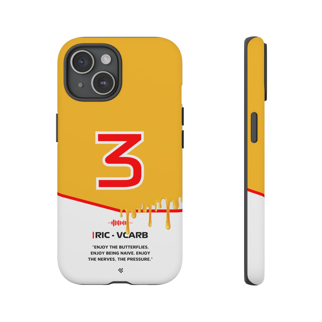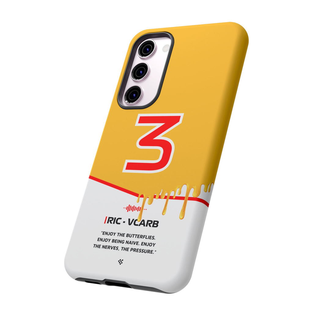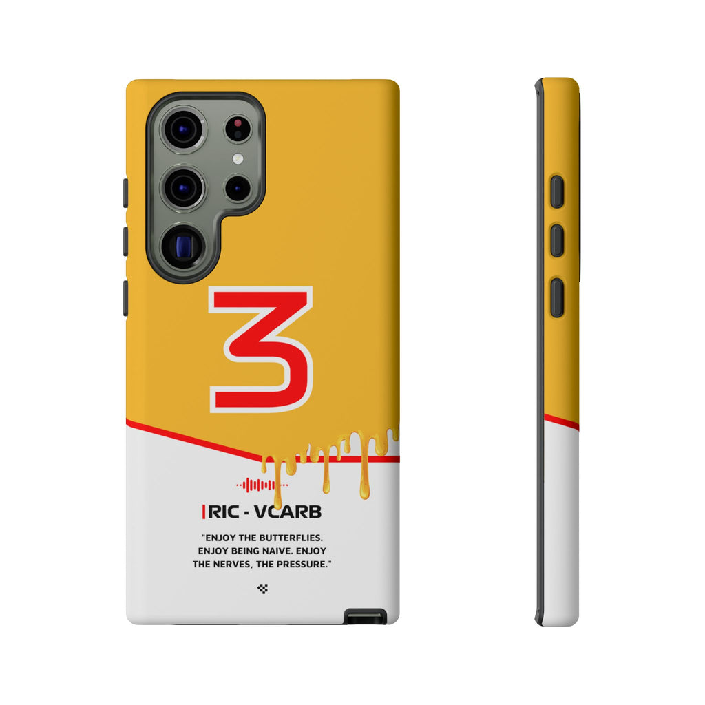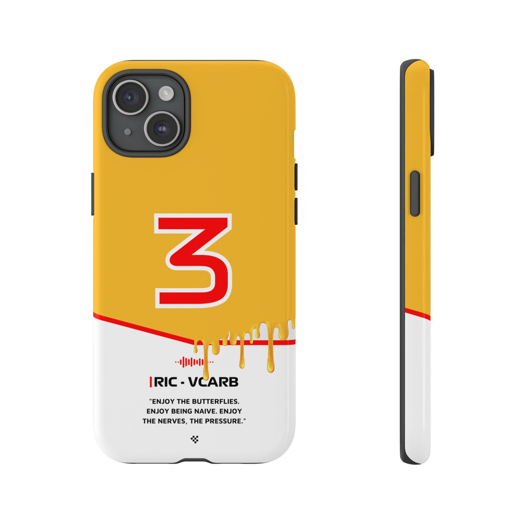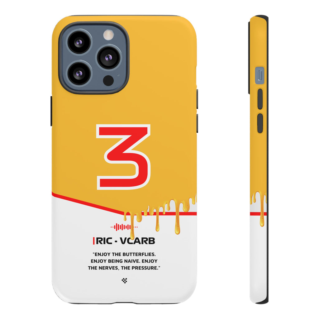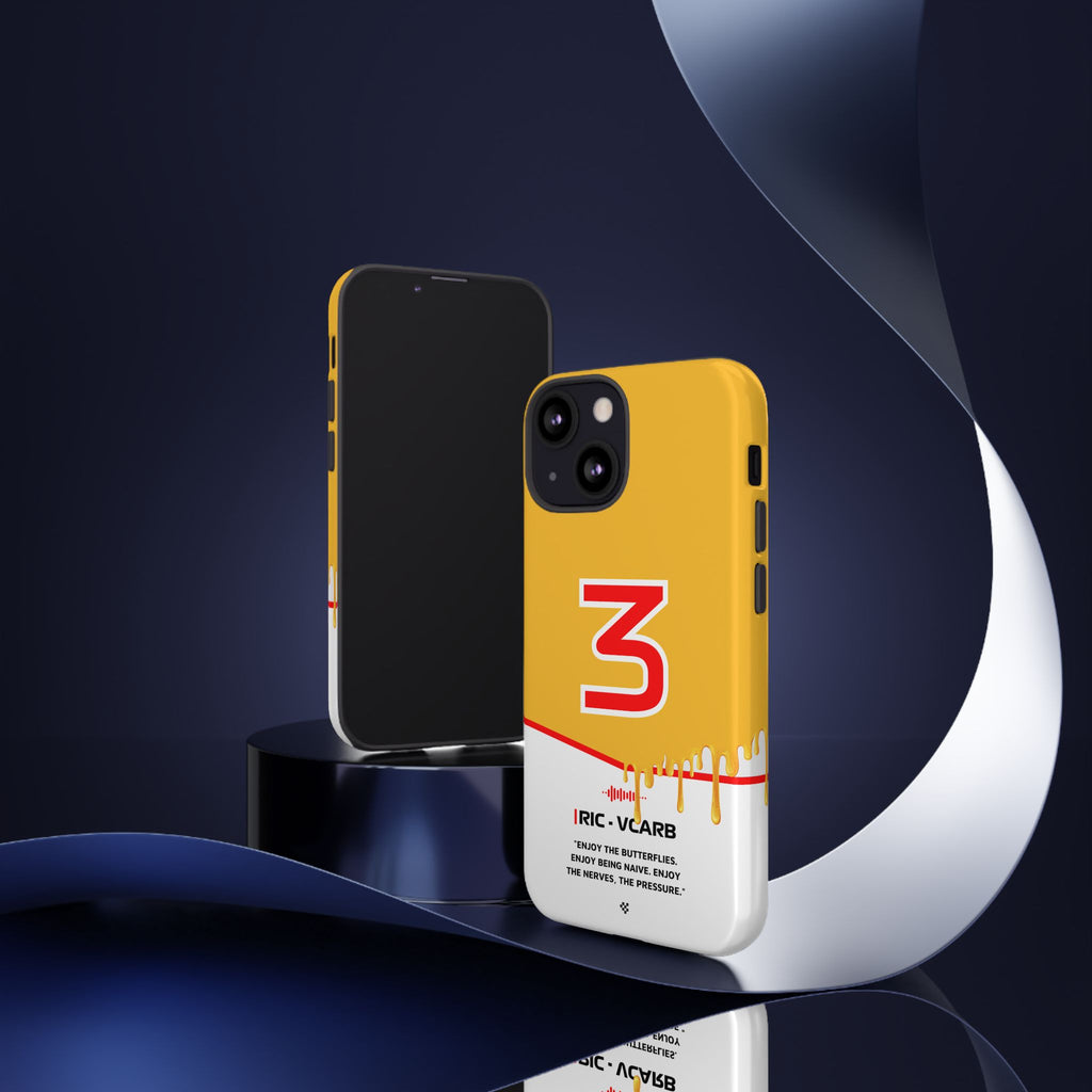 Get ready to support Daniel in the 2024 Formula 1 season with the Daniel Ricciardo F1 2024 Canada Helmet Phone Case. Designed for true Formula 1 fans, this case features his iconic #3 race car number alongside his striking 2024 Canada helmet colors. But that's not all - it also proudly showcases an iconic quote that you can personalize. Whether you're cheering from the grandstands or watching from home, this case is a must-have for every Ricciardo fan.