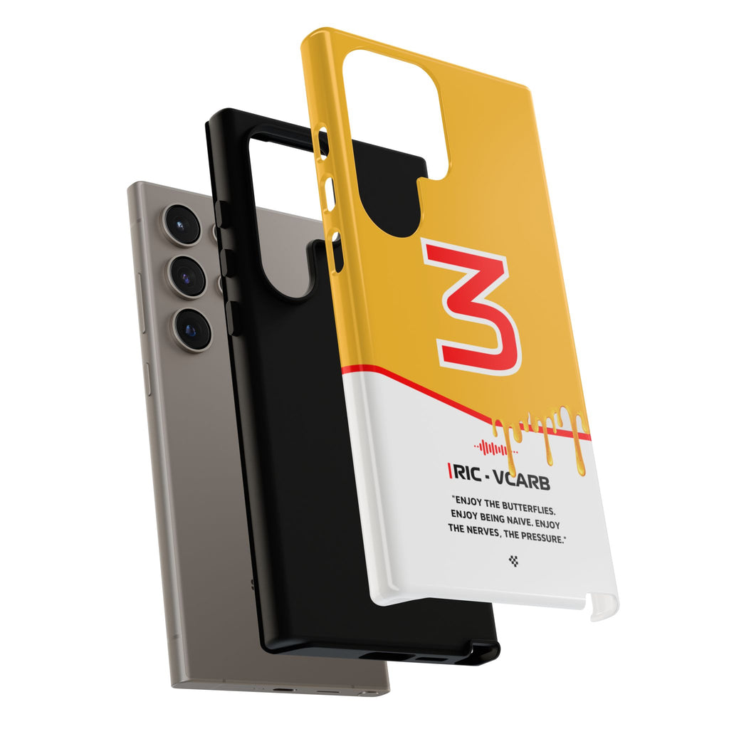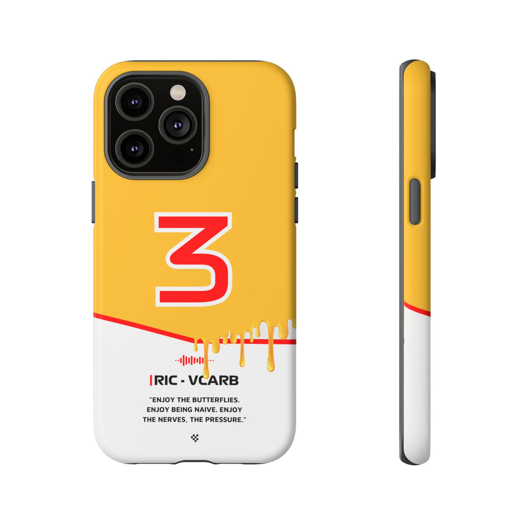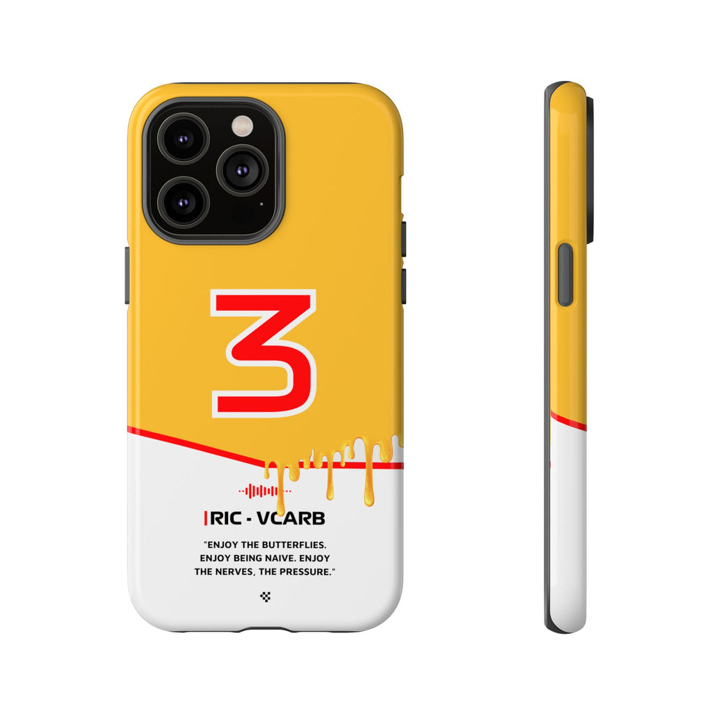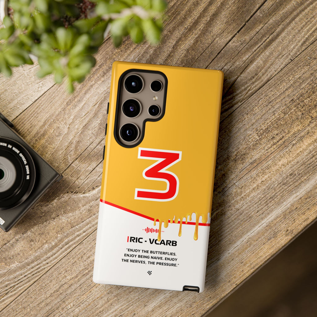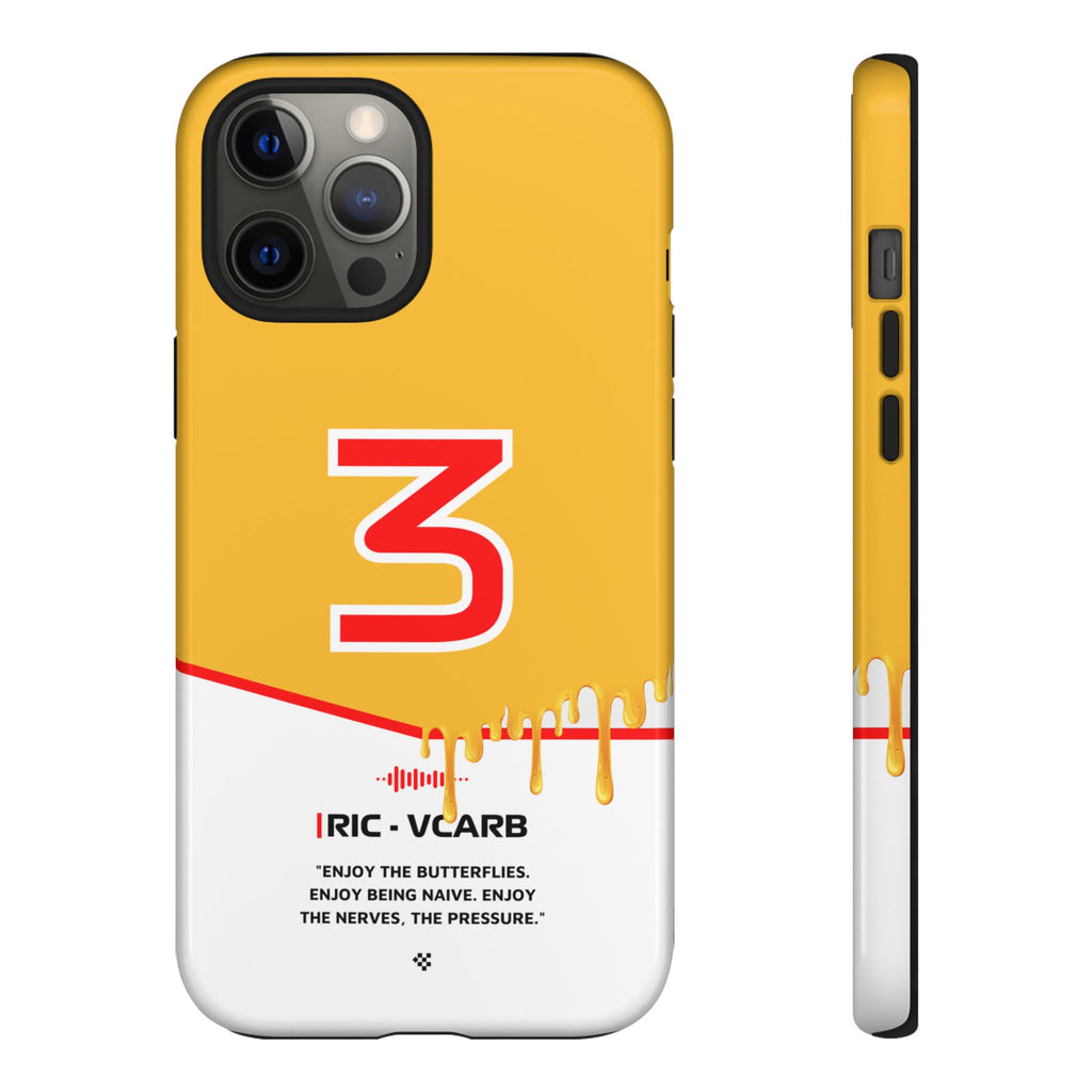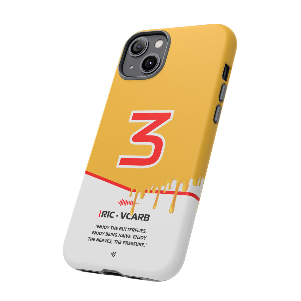Get ready to support Daniel in the 2024 Formula 1 season with the Daniel Ricciardo F1 2024 Canada Helmet Phone Case. Designed for true Formula 1 fans, this case features his iconic #3 race car number alongside his striking 2024 Canada helmet colors. But that's not all - it also proudly showcases an iconic quote that you can personalize. Whether you're cheering from the grandstands or watching from home, this case is a must-have for every Ricciardo fan.