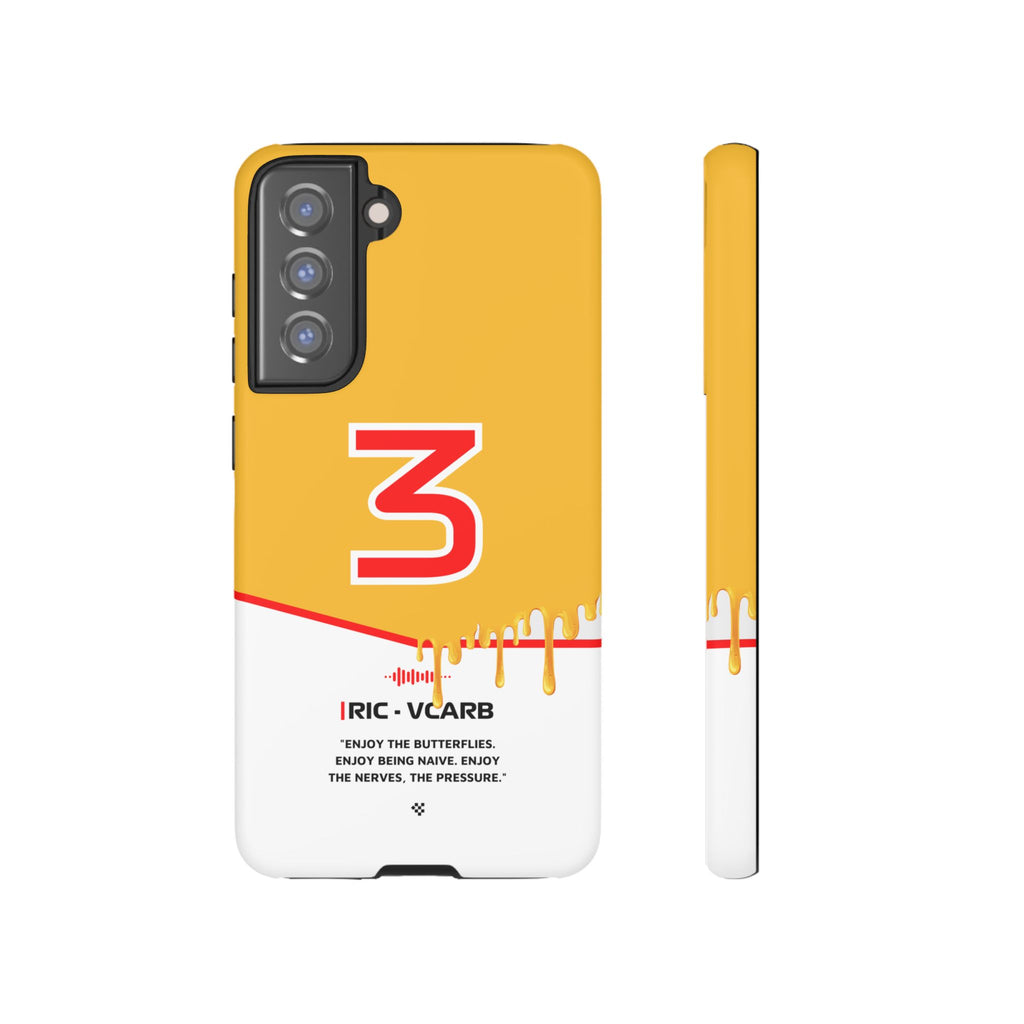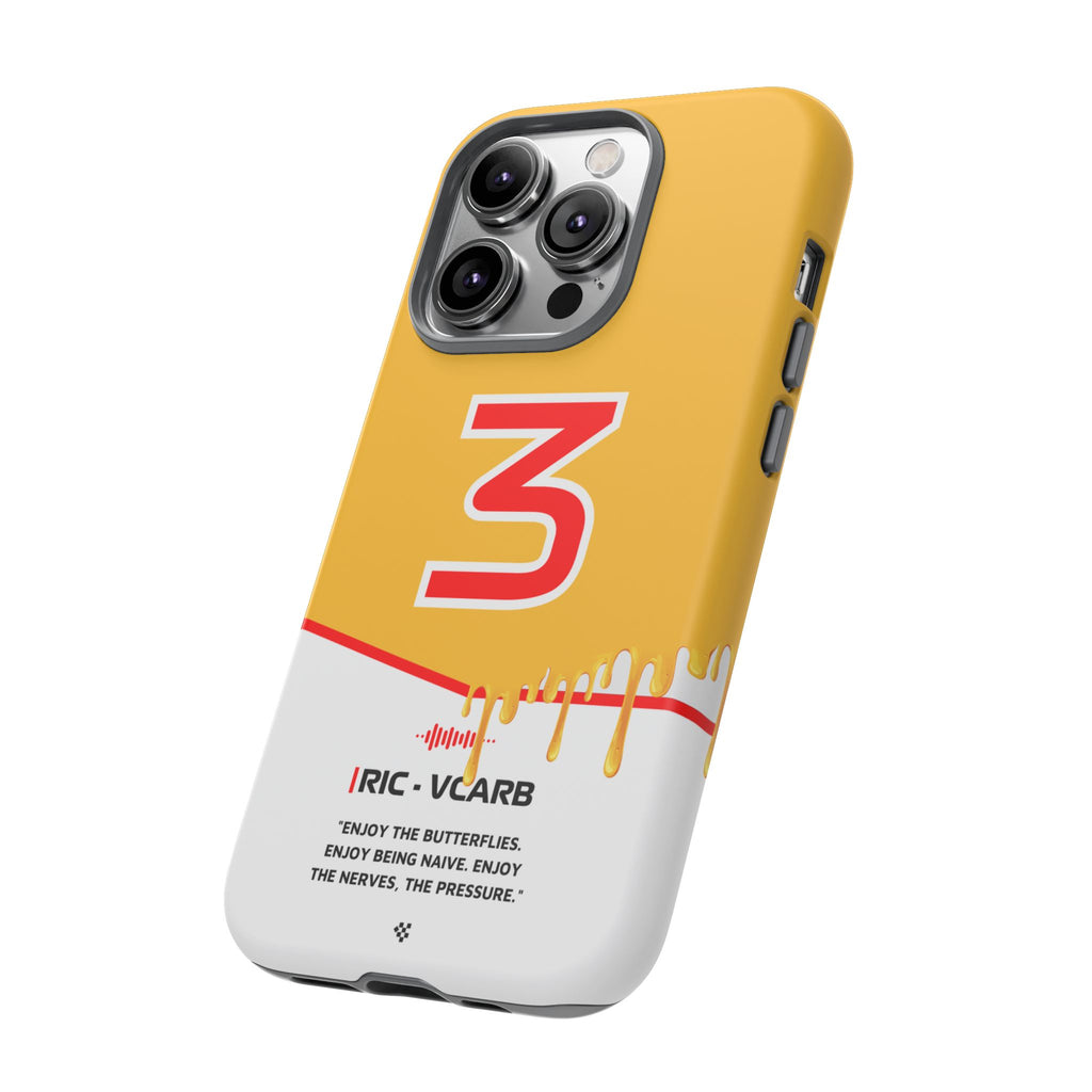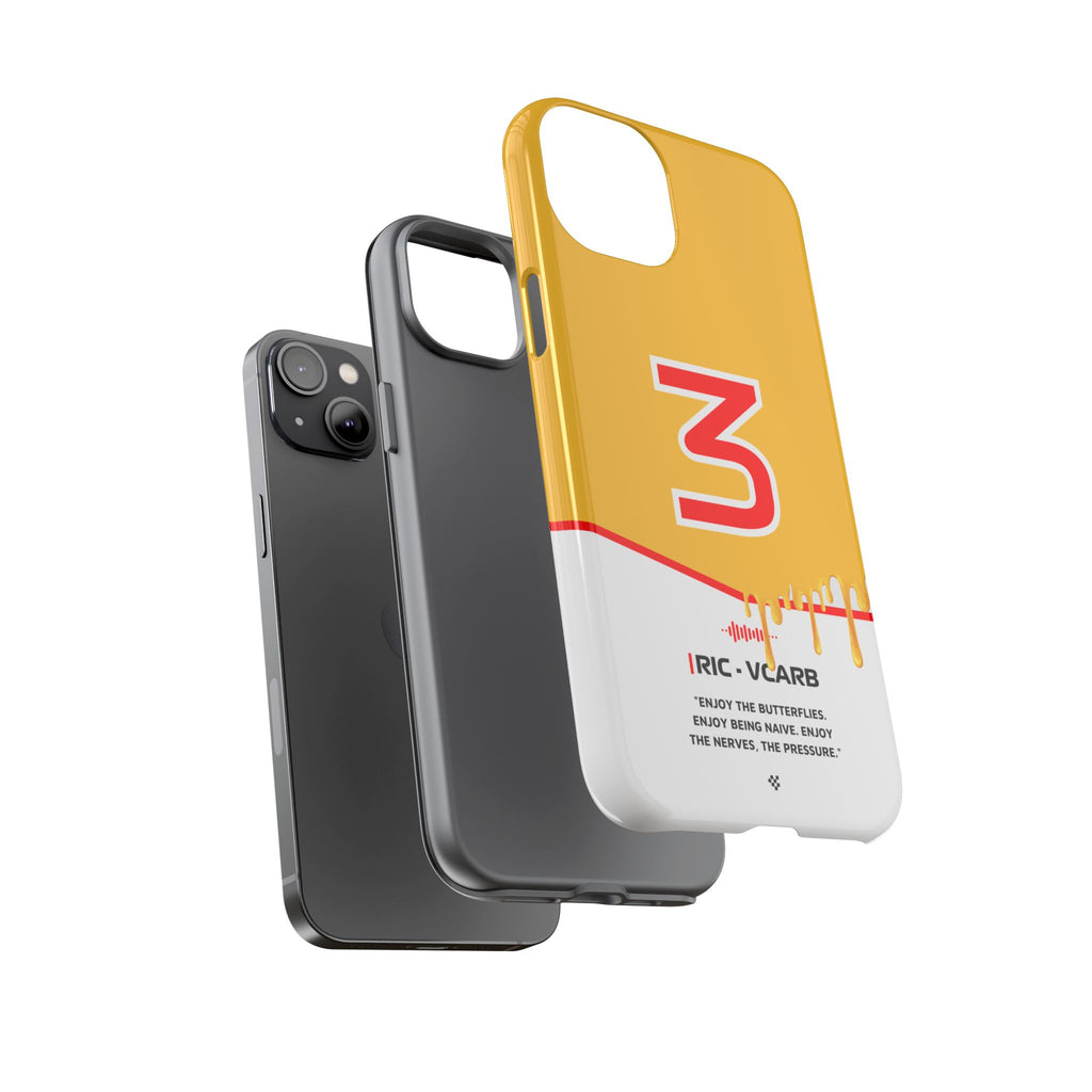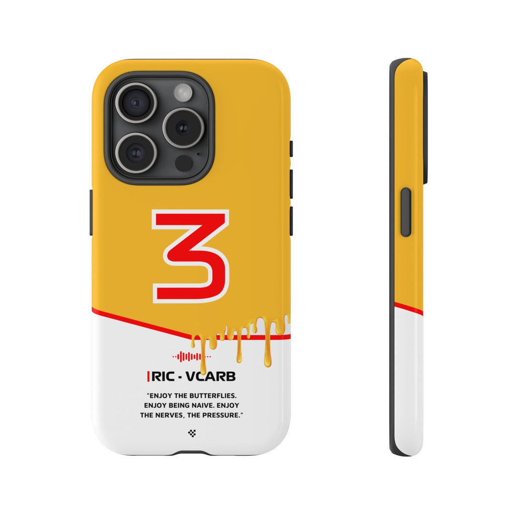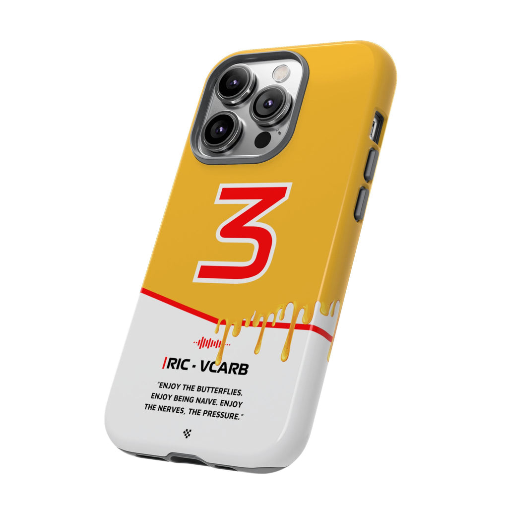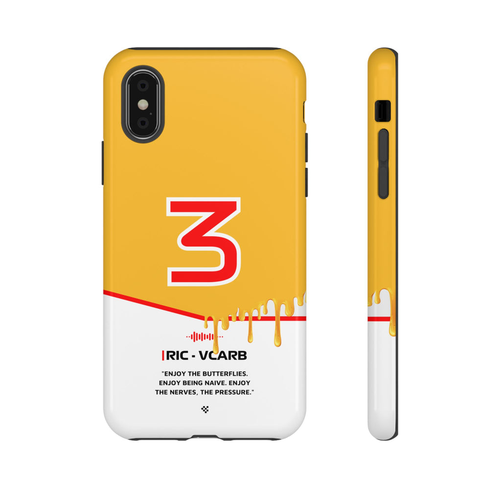 Get ready to support Daniel in the 2024 Formula 1 season with the Daniel Ricciardo F1 2024 Canada Helmet Phone Case. Designed for true Formula 1 fans, this case features his iconic #3 race car number alongside his striking 2024 Canada helmet colors. But that's not all - it also proudly showcases an iconic quote that you can personalize. Whether you're cheering from the grandstands or watching from home, this case is a must-have for every Ricciardo fan.