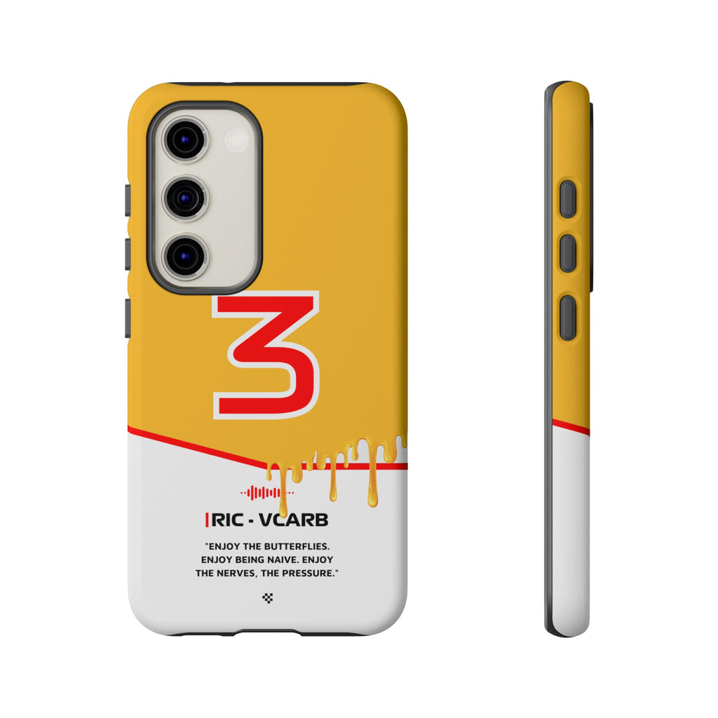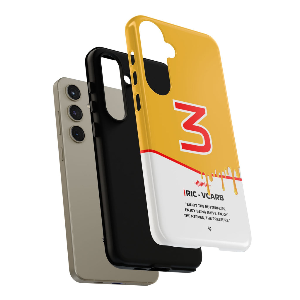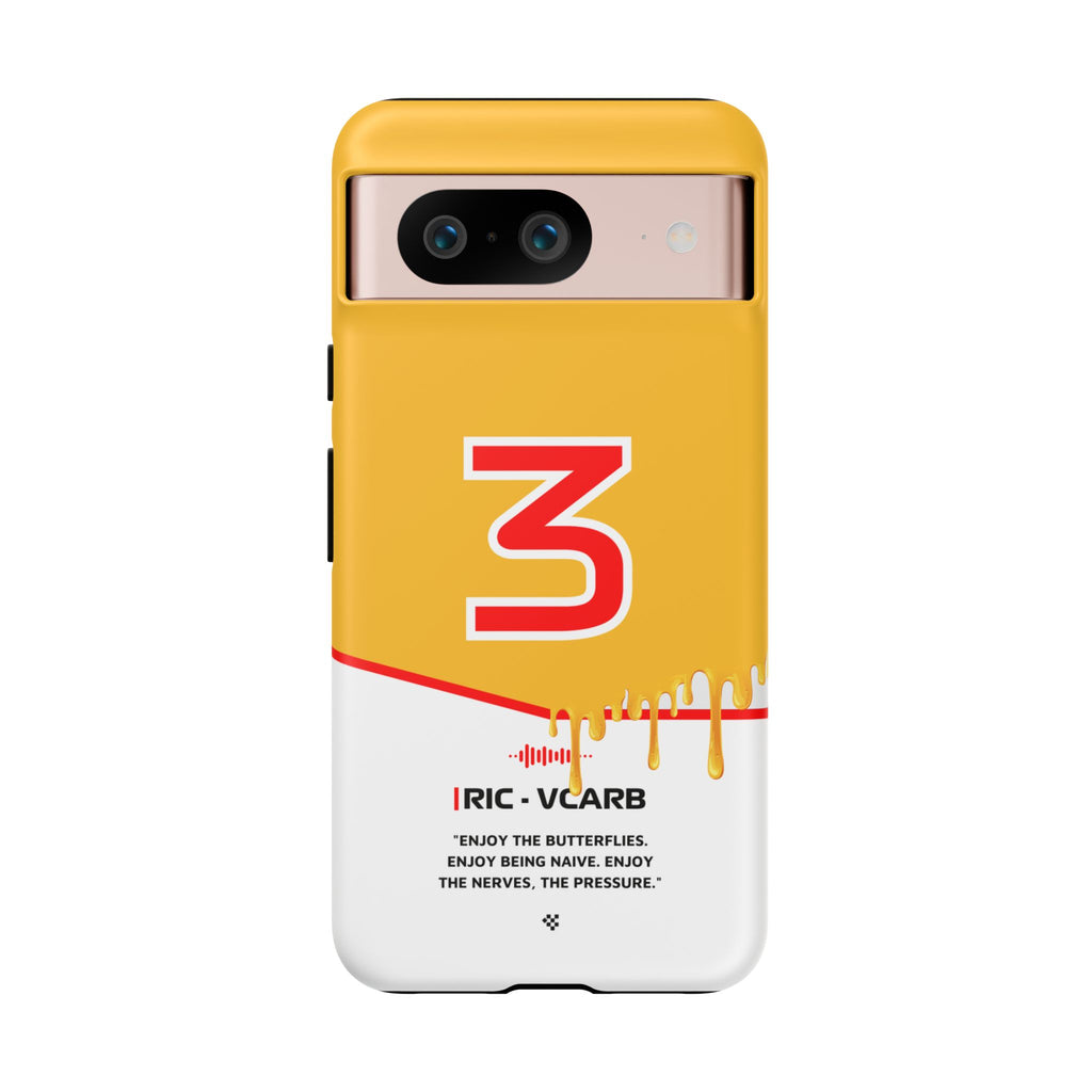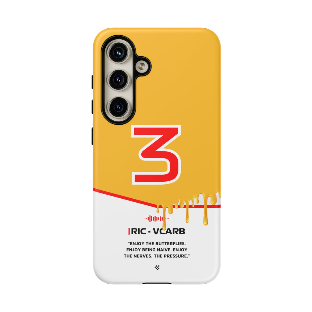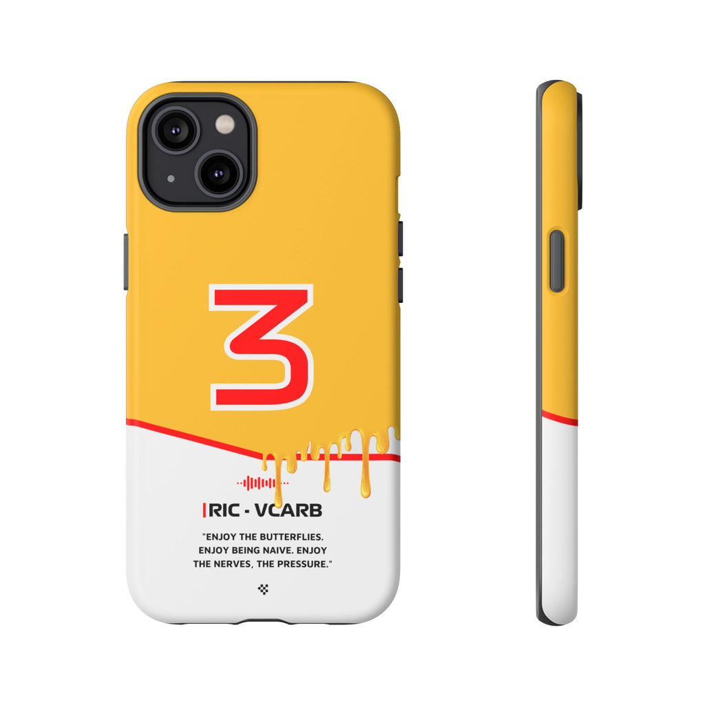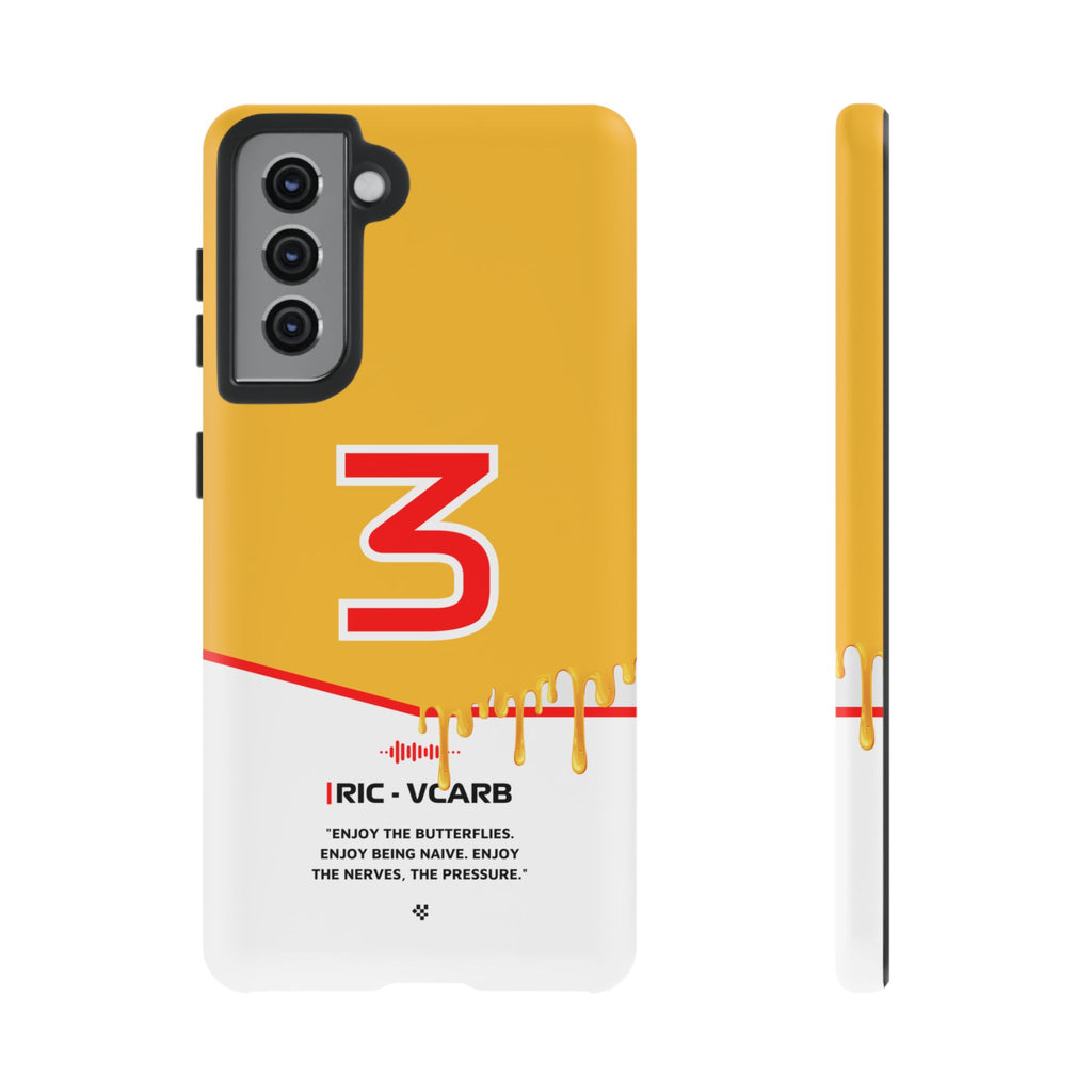 Get ready to support Daniel in the 2024 Formula 1 season with the Daniel Ricciardo F1 2024 Canada Helmet Phone Case. Designed for true Formula 1 fans, this case features his iconic #3 race car number alongside his striking 2024 Canada helmet colors. But that's not all - it also proudly showcases an iconic quote that you can personalize. Whether you're cheering from the grandstands or watching from home, this case is a must-have for every Ricciardo fan.