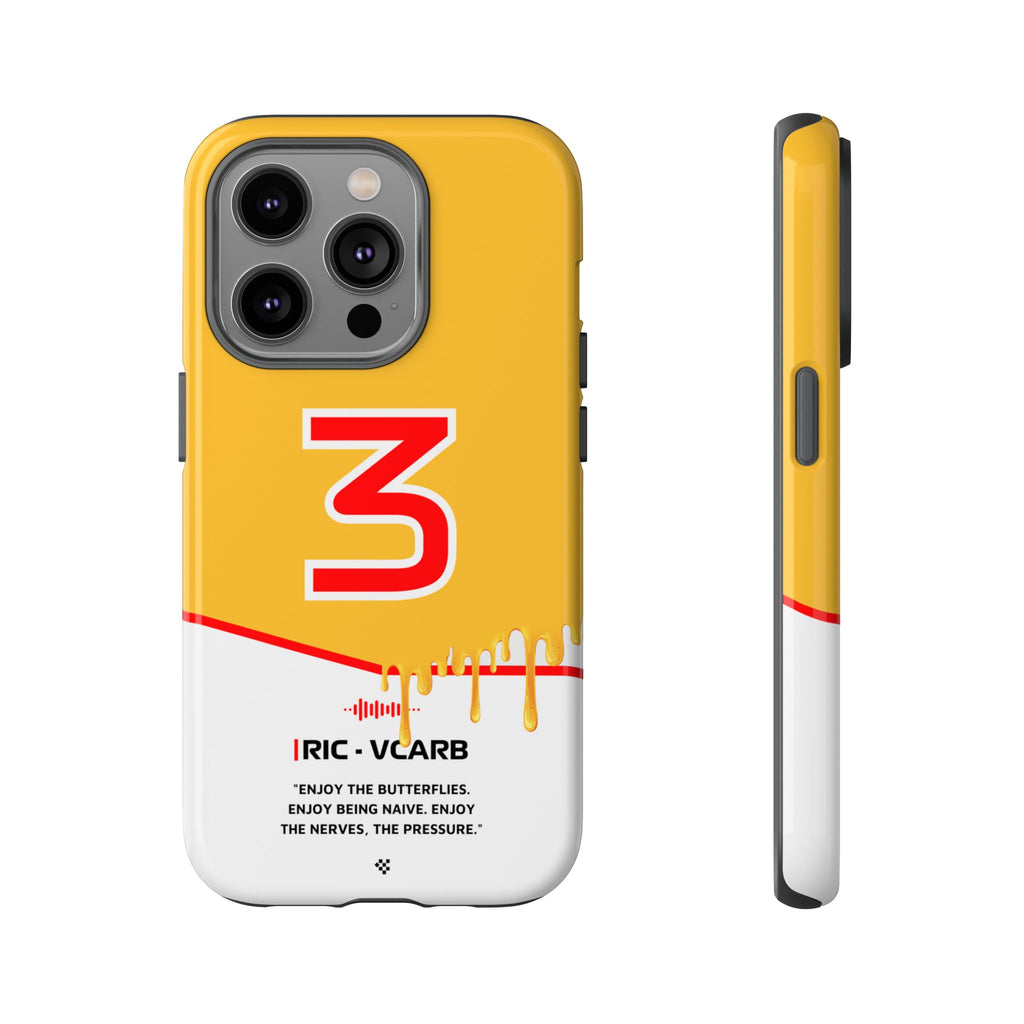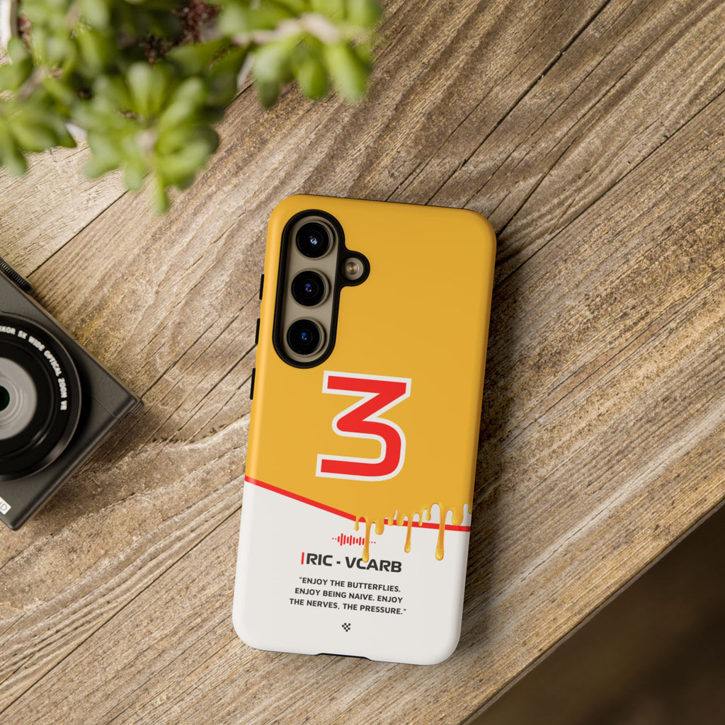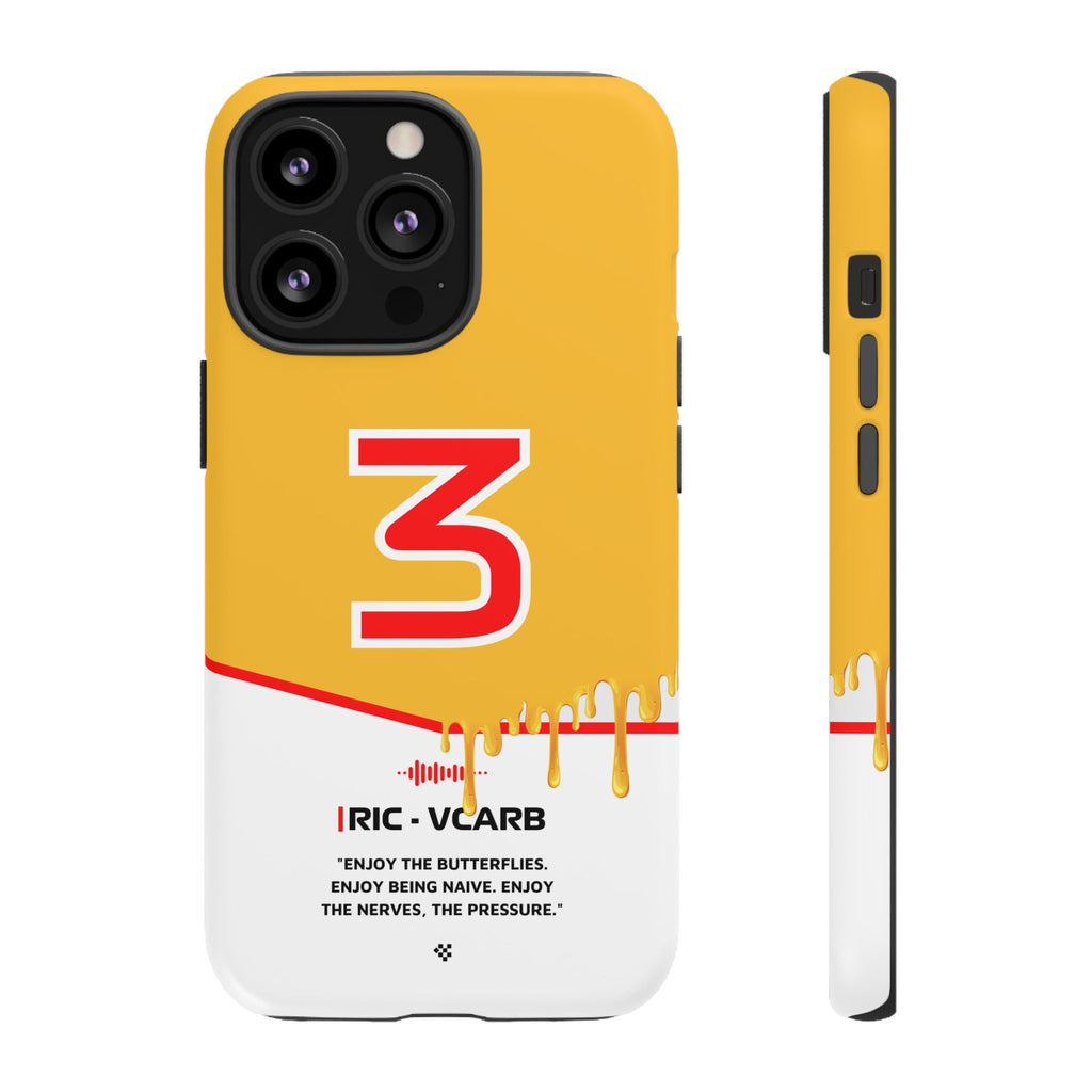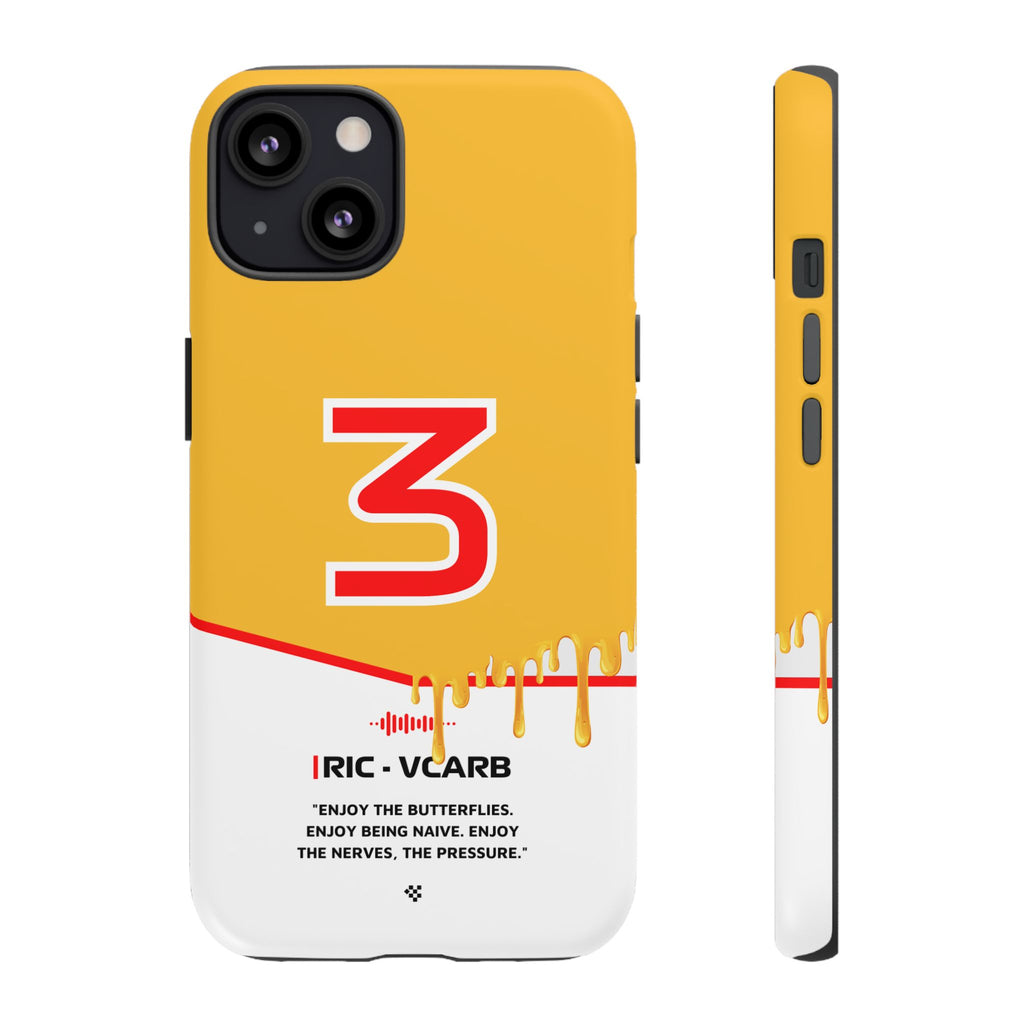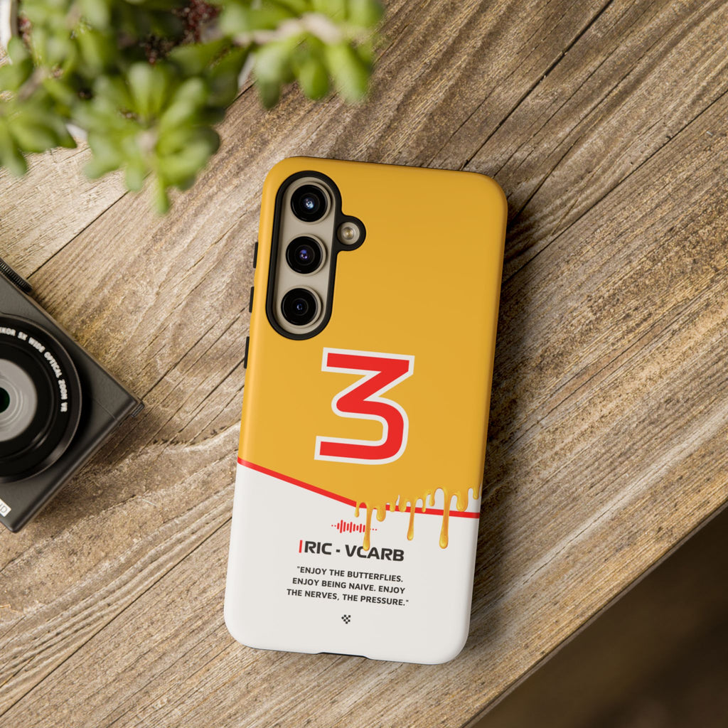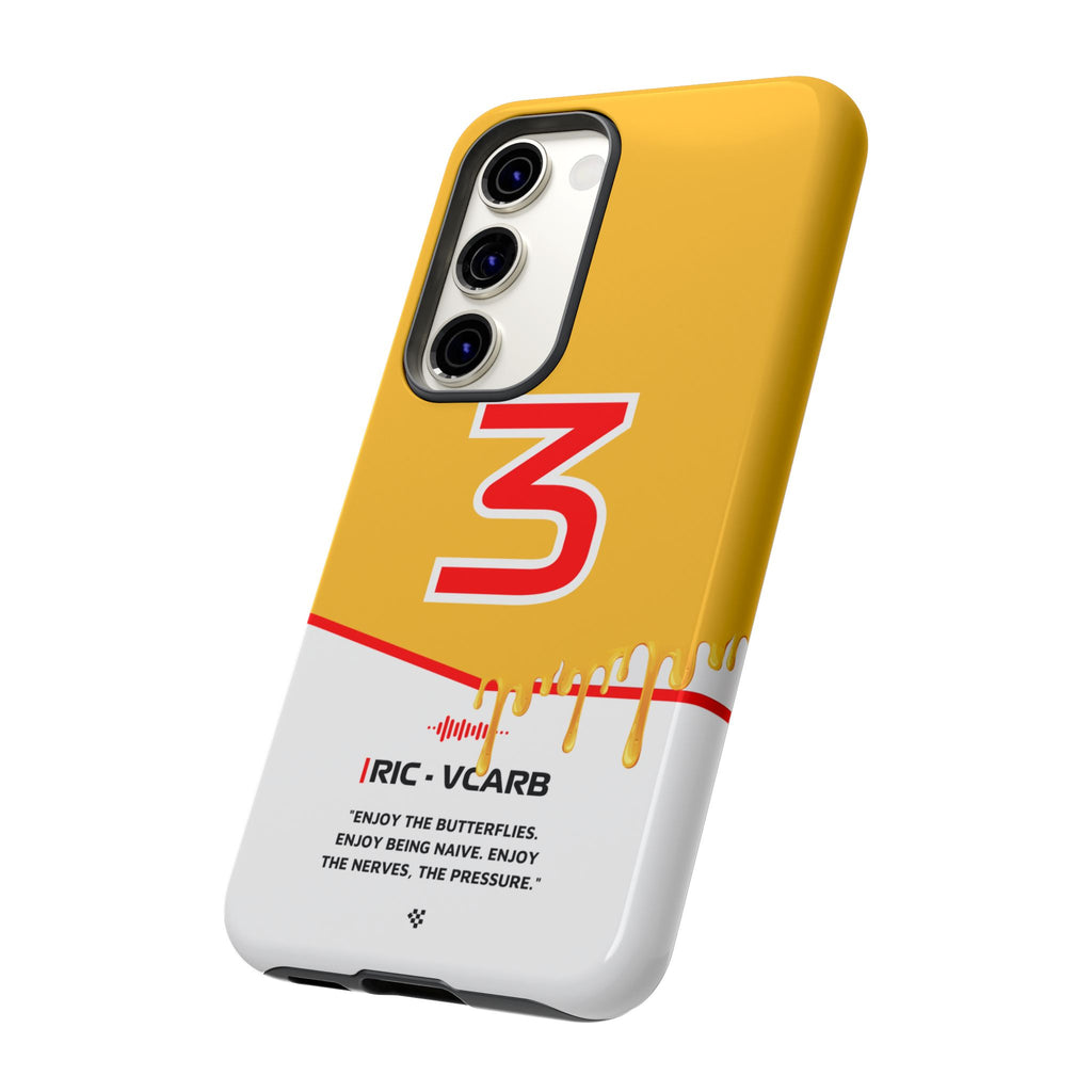 Get ready to support Daniel in the 2024 Formula 1 season with the Daniel Ricciardo F1 2024 Canada Helmet Phone Case. Designed for true Formula 1 fans, this case features his iconic #3 race car number alongside his striking 2024 Canada helmet colors. But that's not all - it also proudly showcases an iconic quote that you can personalize. Whether you're cheering from the grandstands or watching from home, this case is a must-have for every Ricciardo fan.