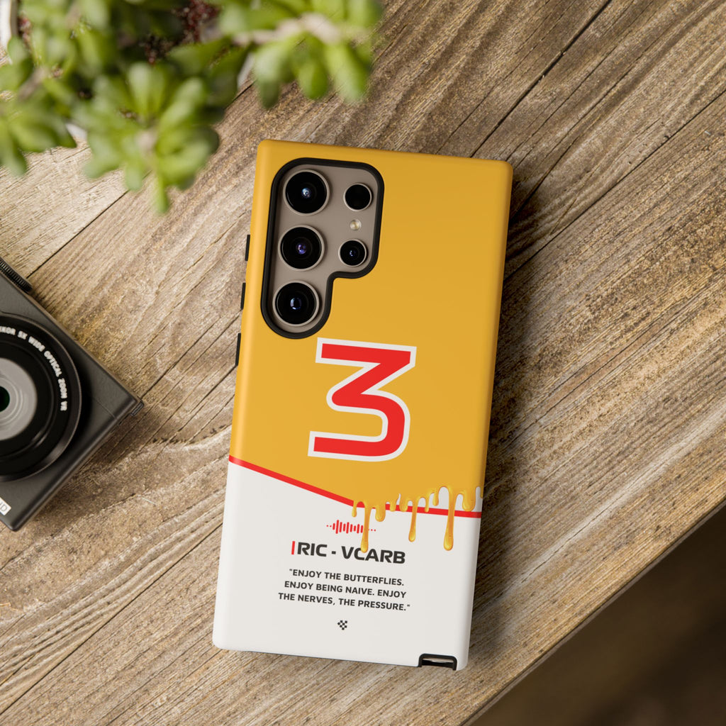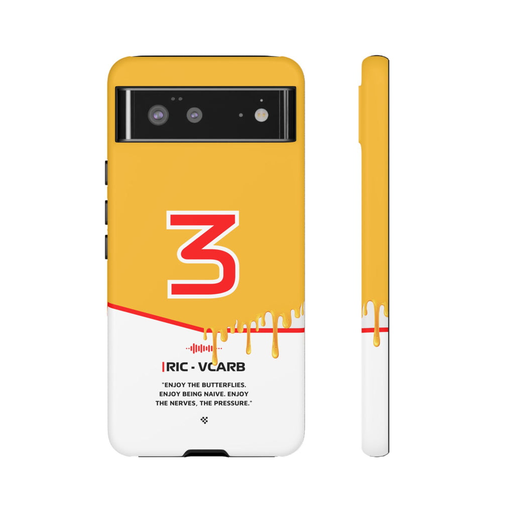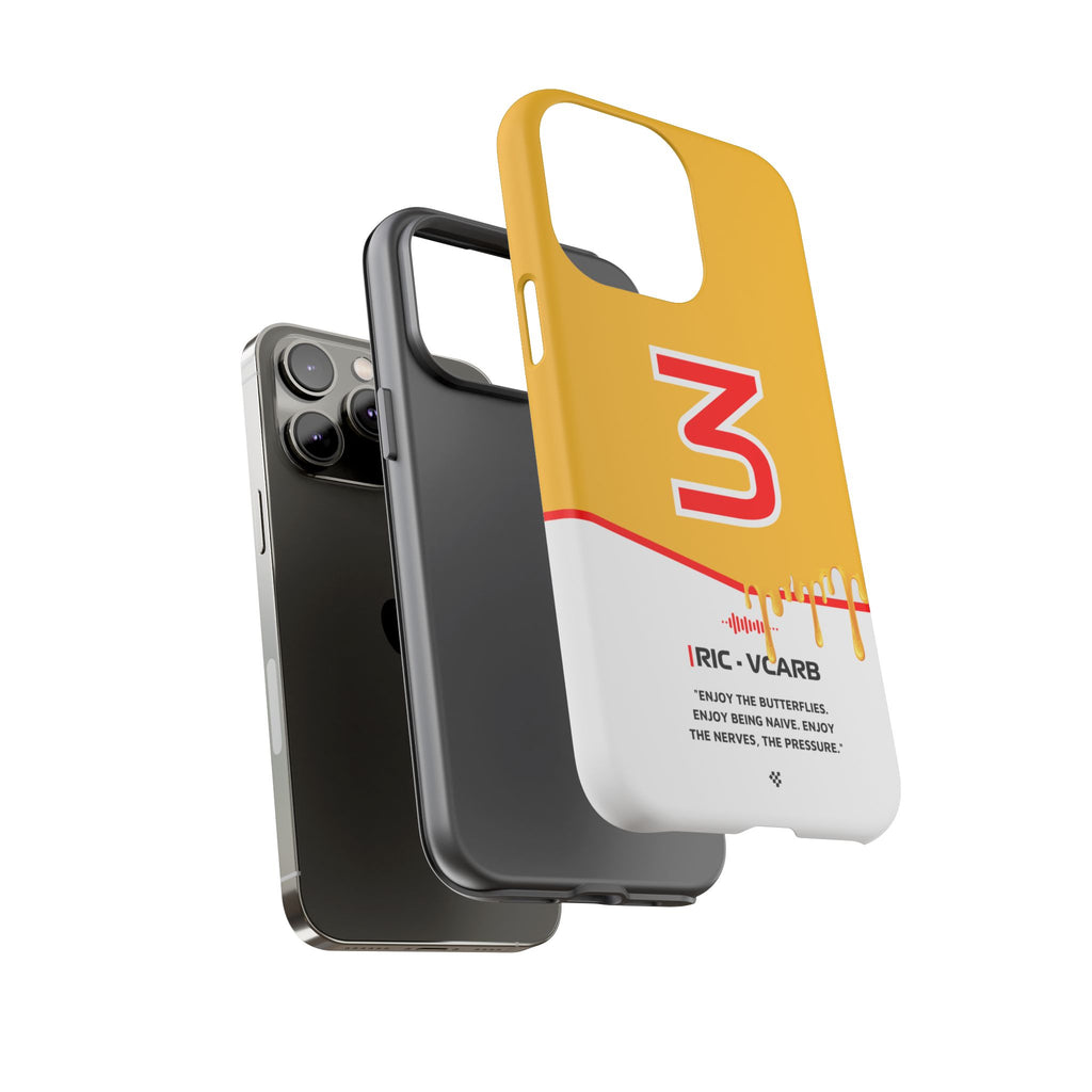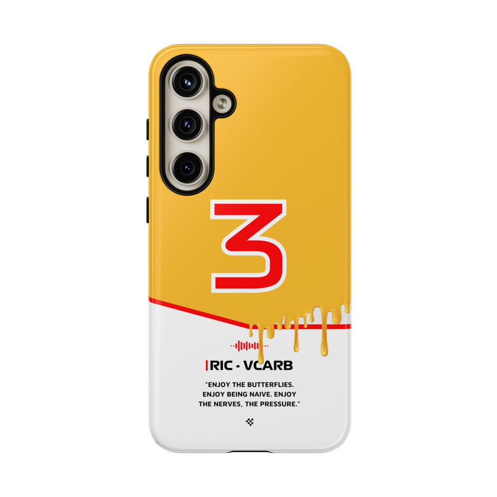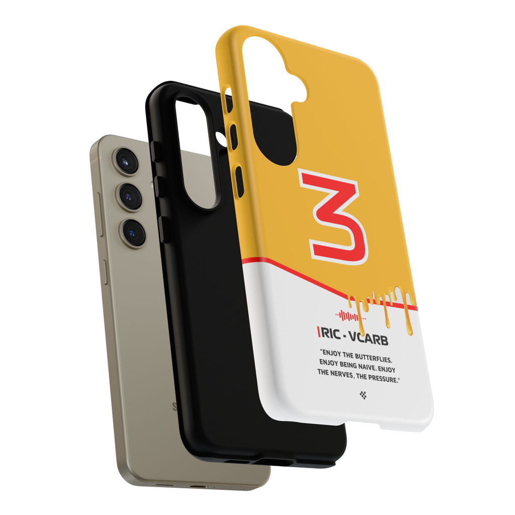 Get ready to support Daniel in the 2024 Formula 1 season with the Daniel Ricciardo F1 2024 Canada Helmet Phone Case. Designed for true Formula 1 fans, this case features his iconic #3 race car number alongside his striking 2024 Canada helmet colors. But that's not all - it also proudly showcases an iconic quote that you can personalize. Whether you're cheering from the grandstands or watching from home, this case is a must-have for every Ricciardo fan.
