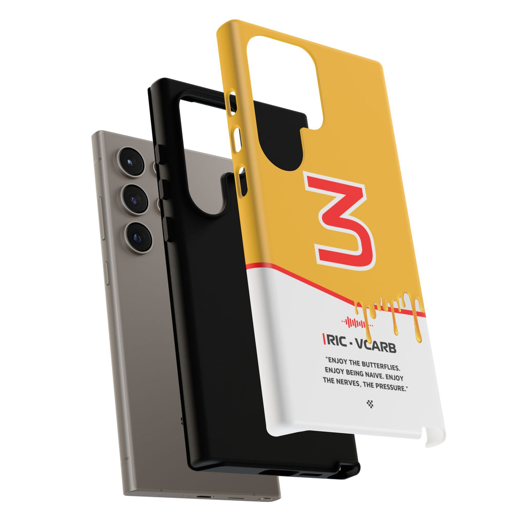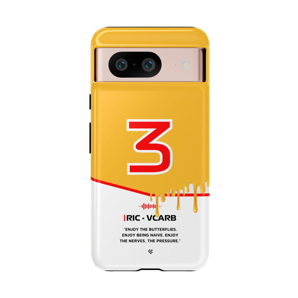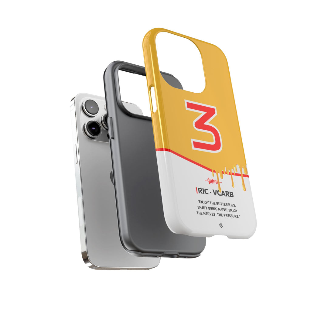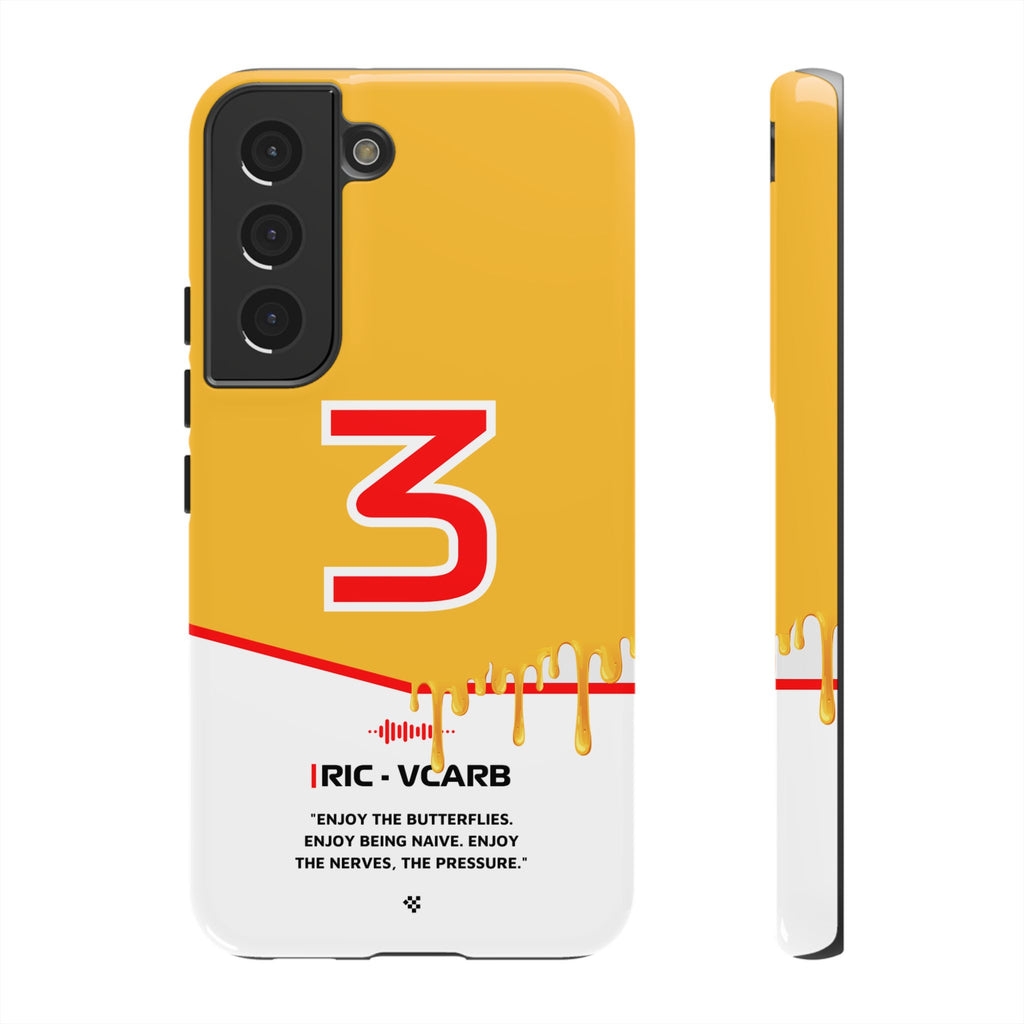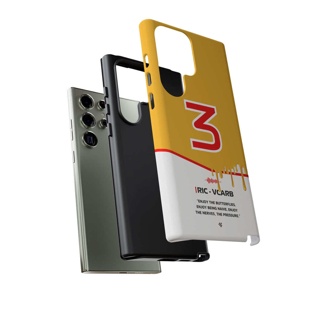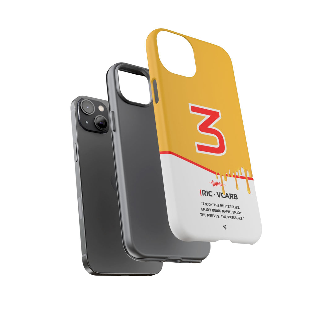 Get ready to support Daniel in the 2024 Formula 1 season with the Daniel Ricciardo F1 2024 Canada Helmet Phone Case. Designed for true Formula 1 fans, this case features his iconic #3 race car number alongside his striking 2024 Canada helmet colors. But that's not all - it also proudly showcases an iconic quote that you can personalize. Whether you're cheering from the grandstands or watching from home, this case is a must-have for every Ricciardo fan.