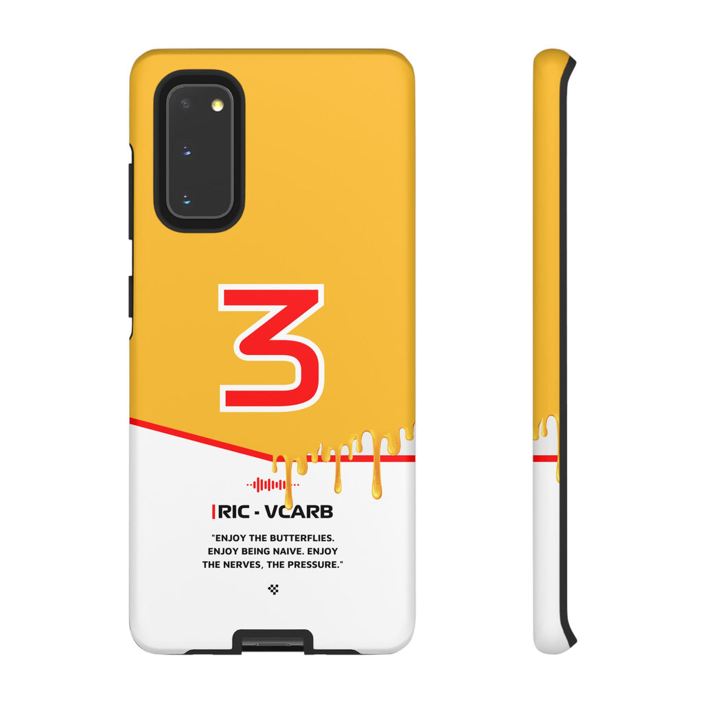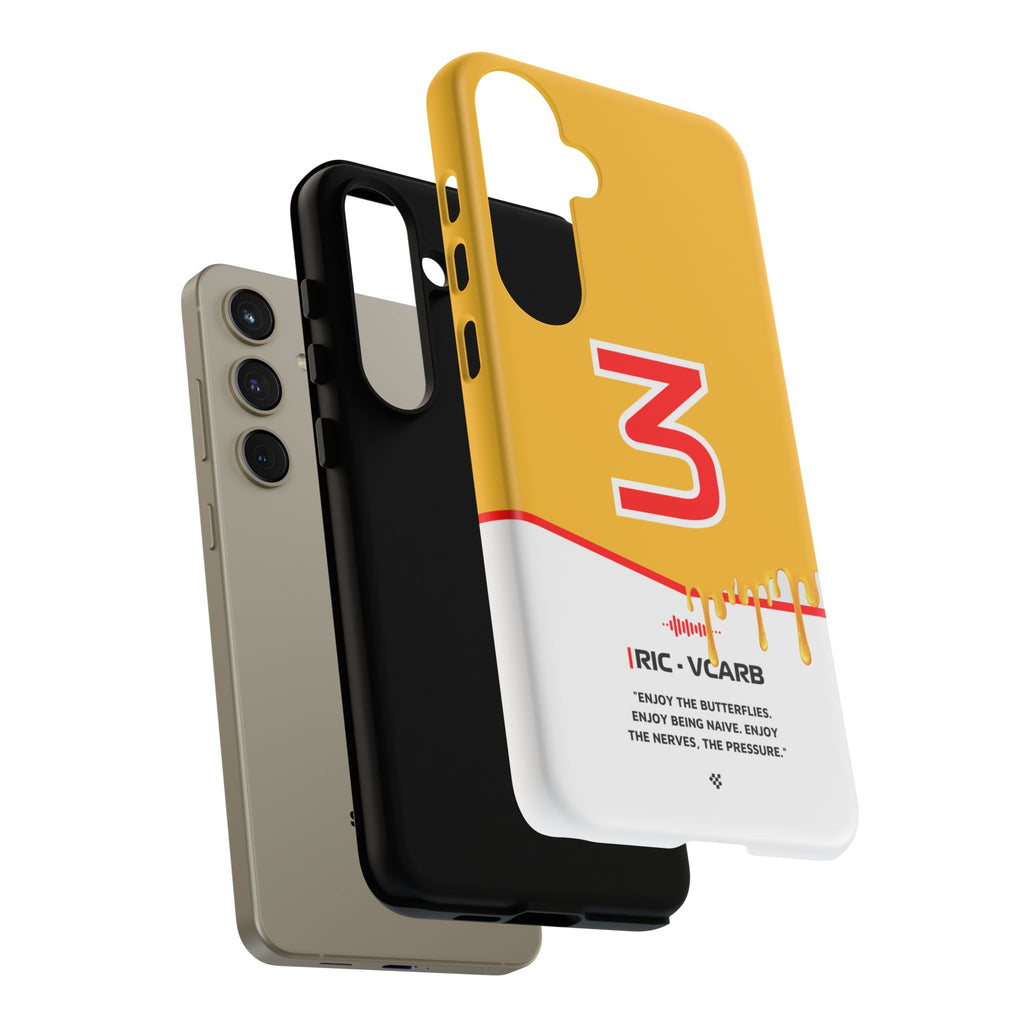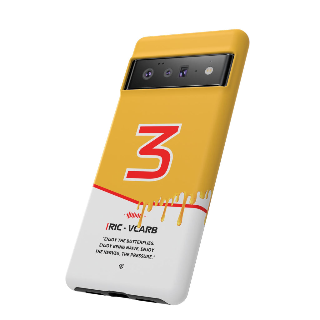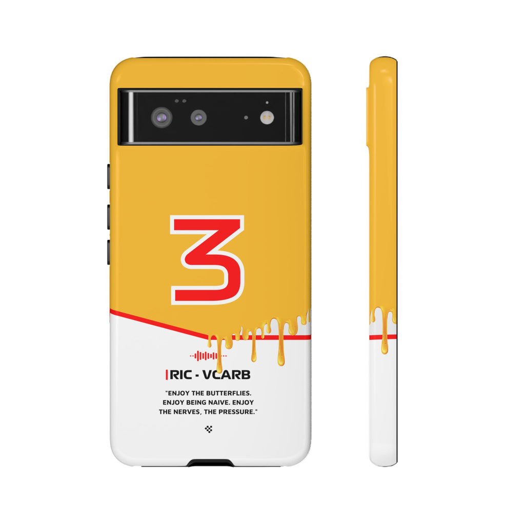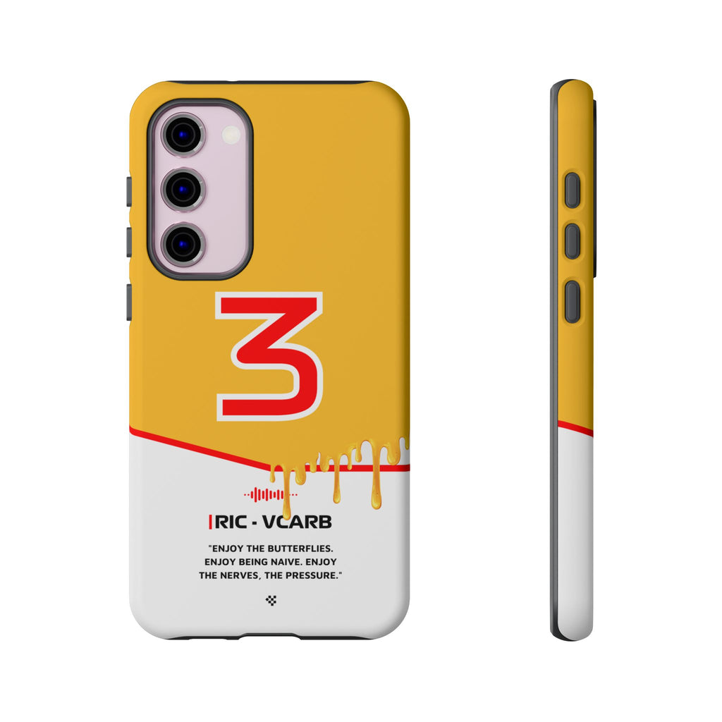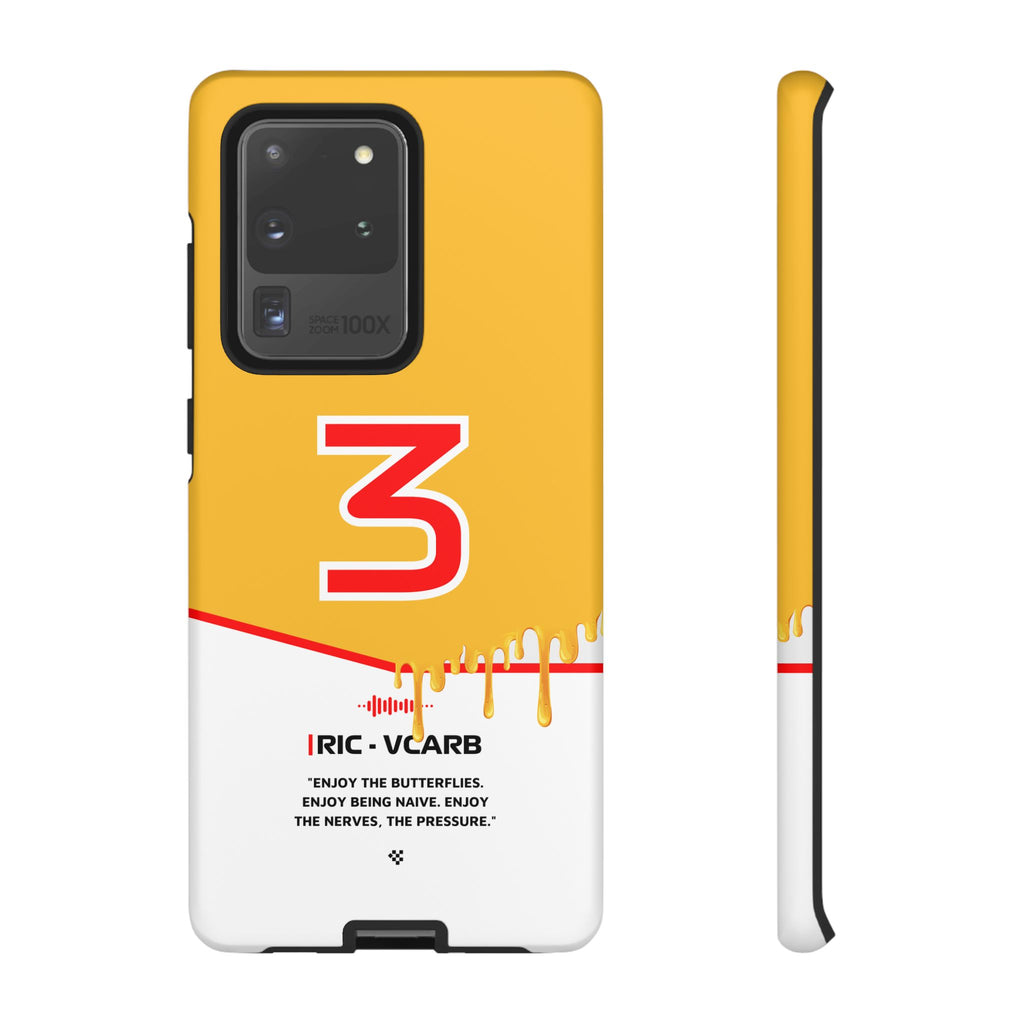 Get ready to support Daniel in the 2024 Formula 1 season with the Daniel Ricciardo F1 2024 Canada Helmet Phone Case. Designed for true Formula 1 fans, this case features his iconic #3 race car number alongside his striking 2024 Canada helmet colors. But that's not all - it also proudly showcases an iconic quote that you can personalize. Whether you're cheering from the grandstands or watching from home, this case is a must-have for every Ricciardo fan.