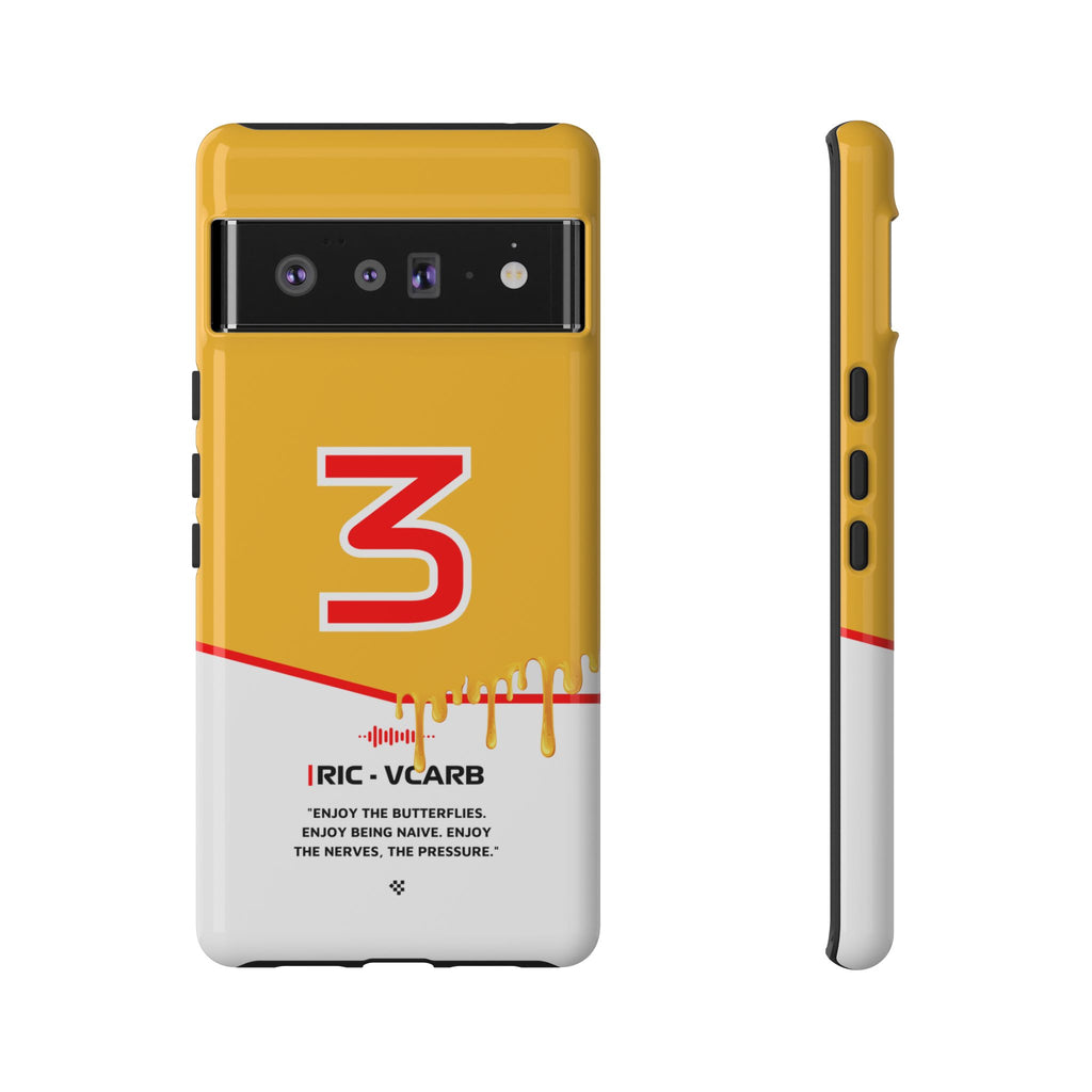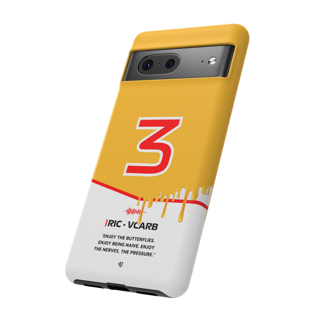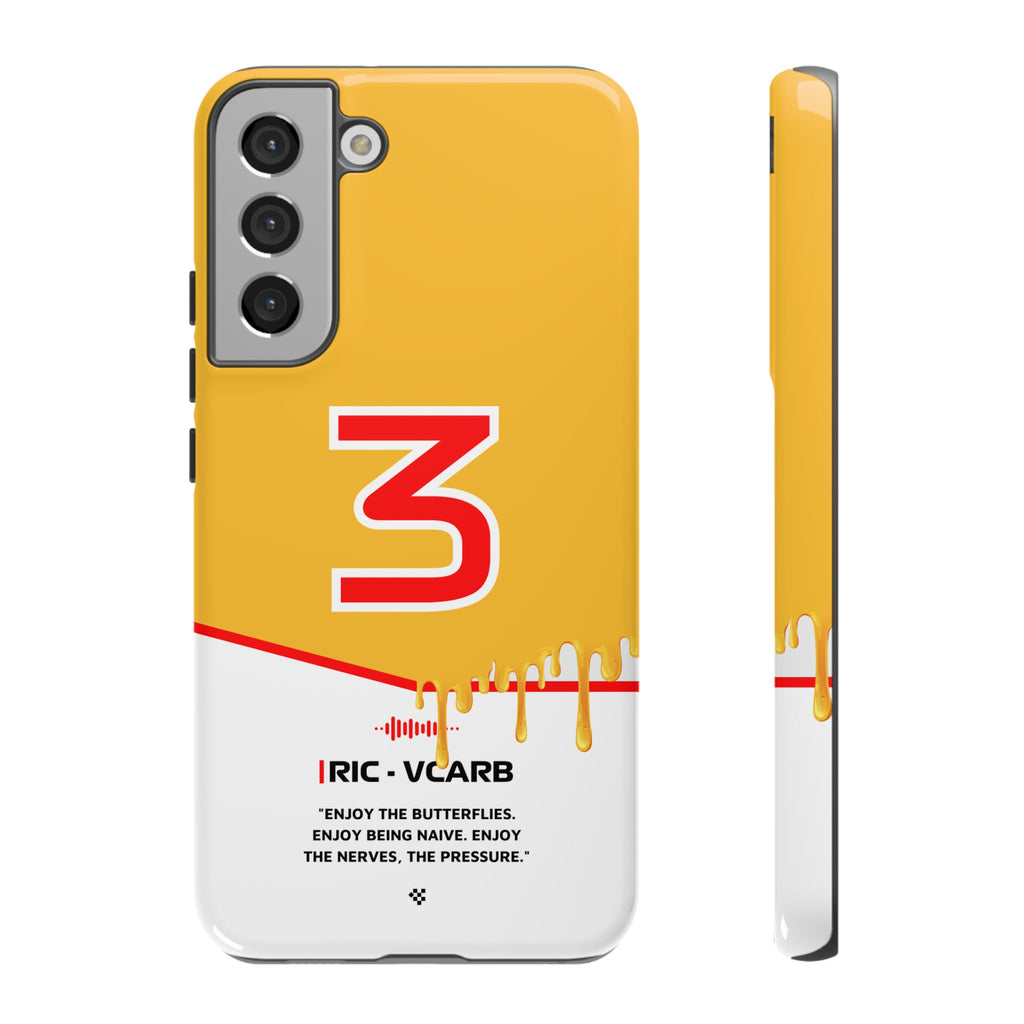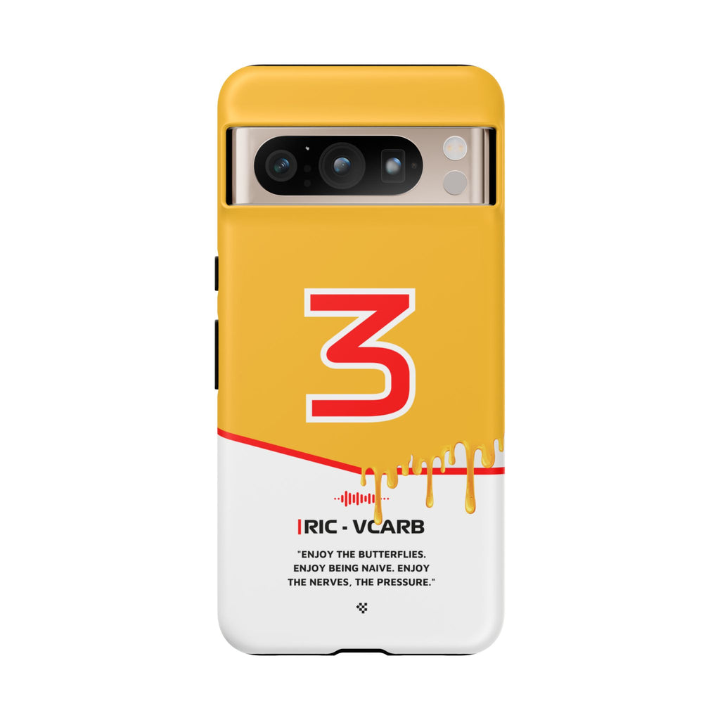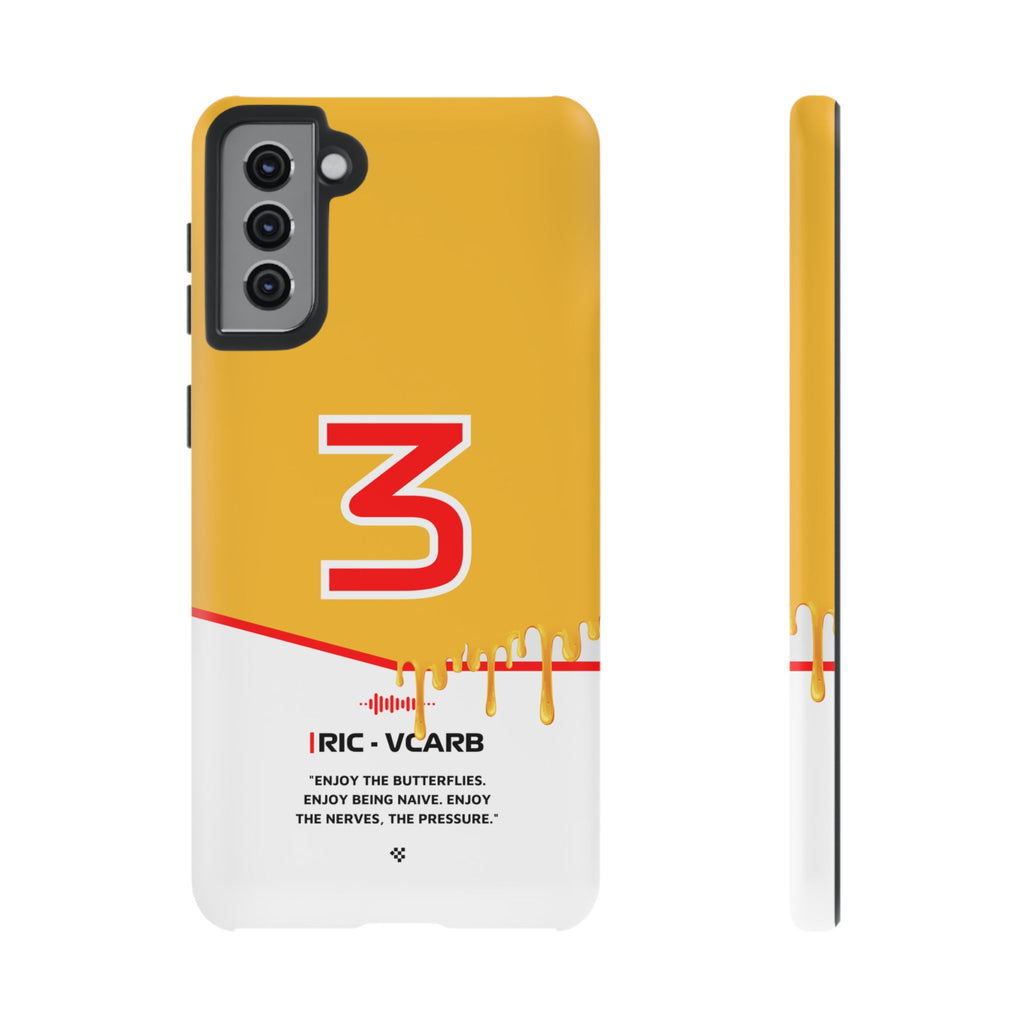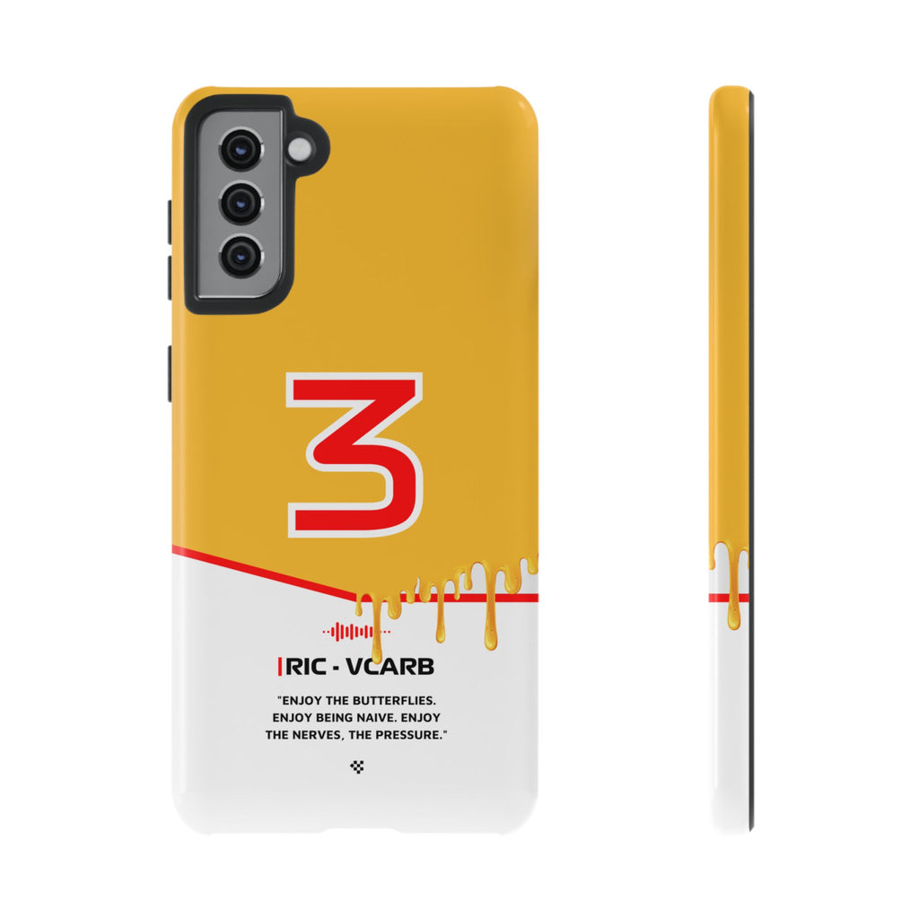Get ready to support Daniel in the 2024 Formula 1 season with the Daniel Ricciardo F1 2024 Canada Helmet Phone Case. Designed for true Formula 1 fans, this case features his iconic #3 race car number alongside his striking 2024 Canada helmet colors. But that's not all - it also proudly showcases an iconic quote that you can personalize. Whether you're cheering from the grandstands or watching from home, this case is a must-have for every Ricciardo fan.