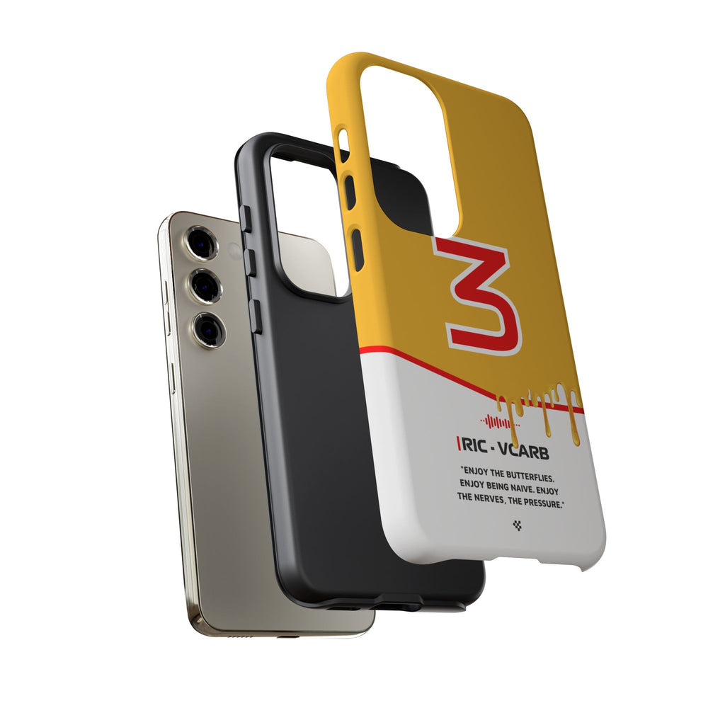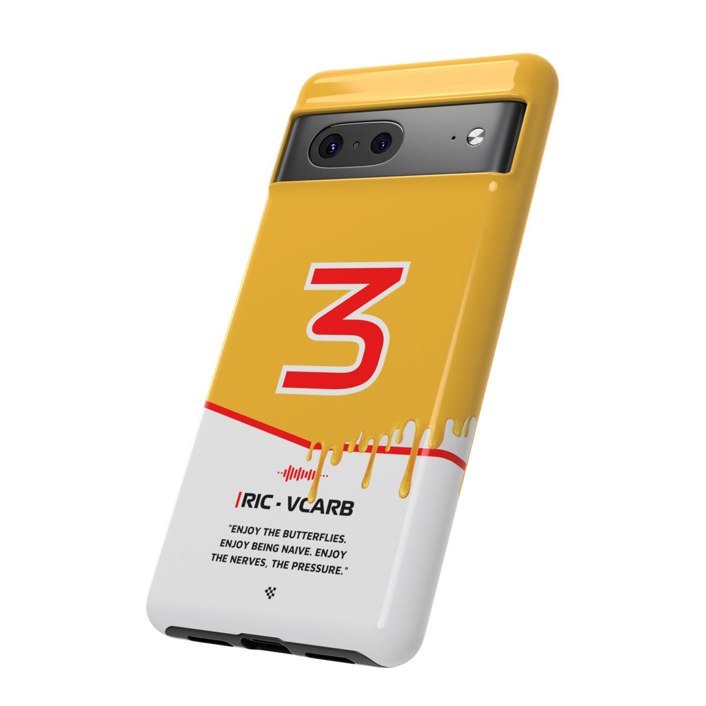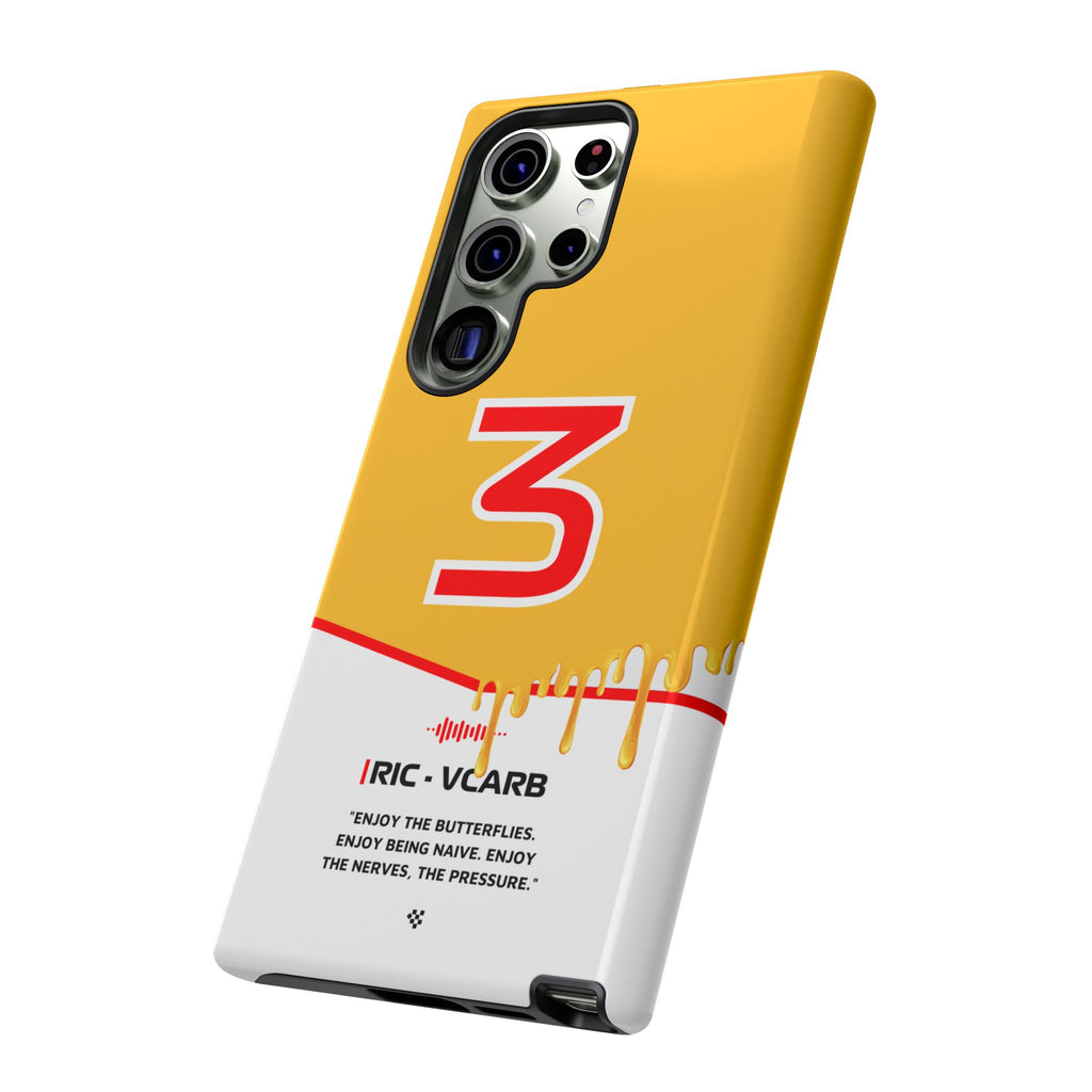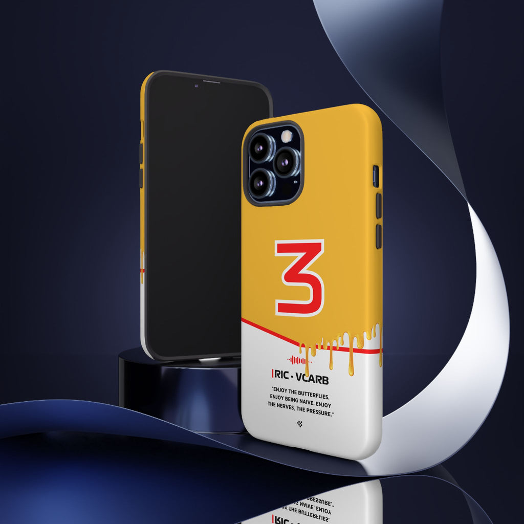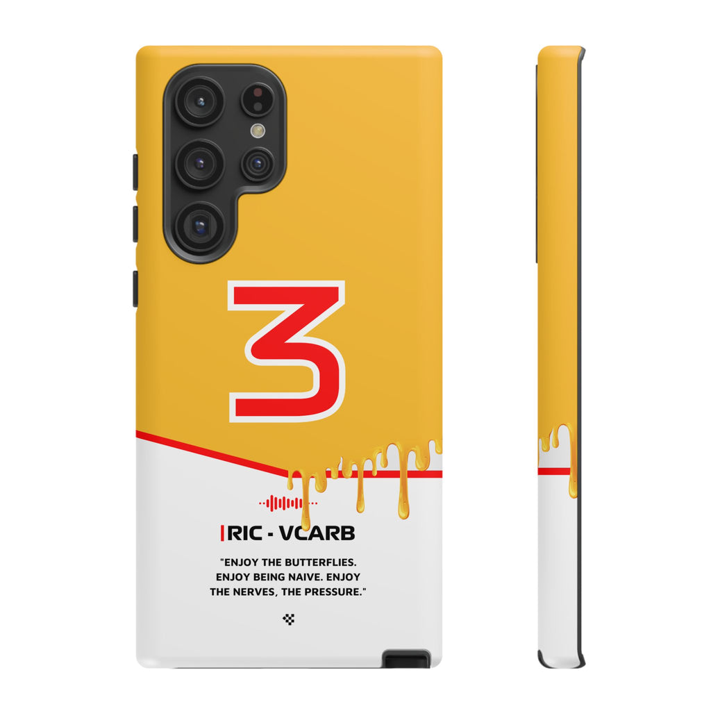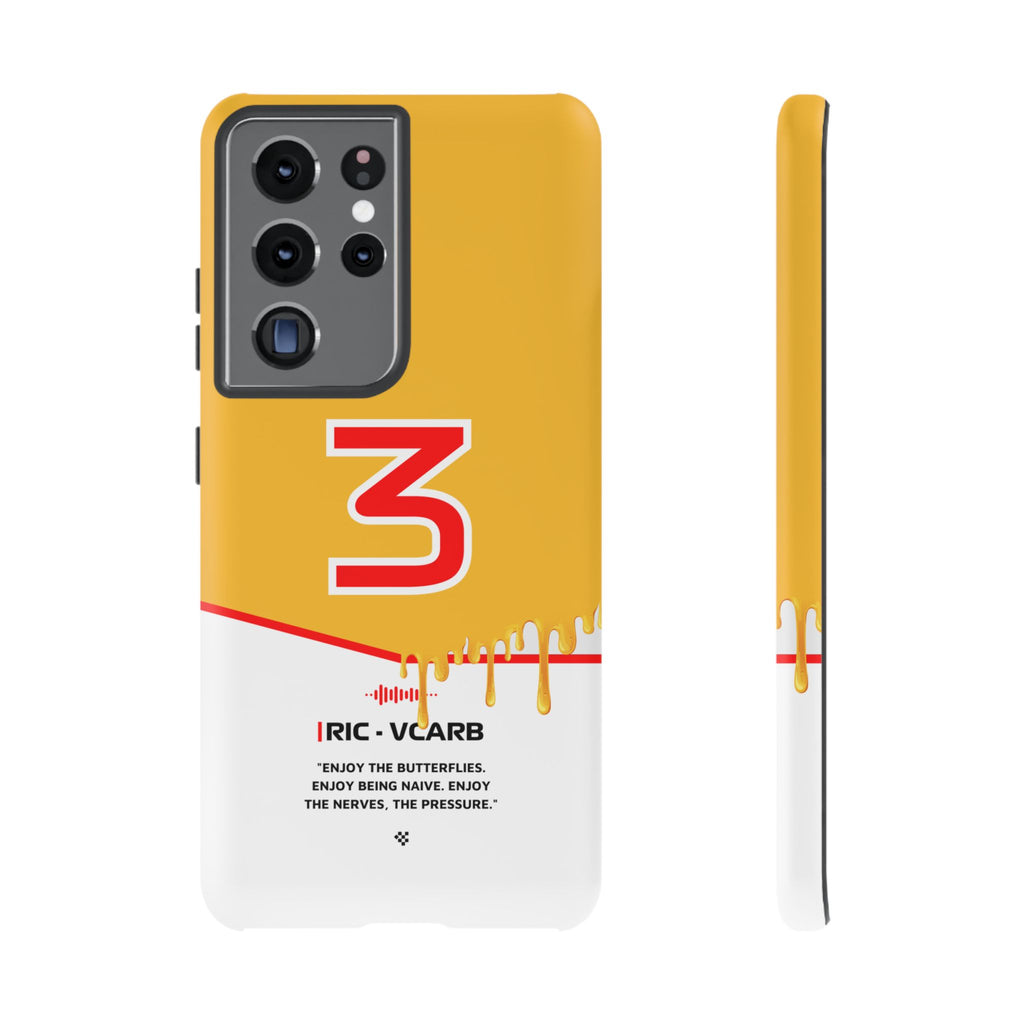 Get ready to support Daniel in the 2024 Formula 1 season with the Daniel Ricciardo F1 2024 Canada Helmet Phone Case. Designed for true Formula 1 fans, this case features his iconic #3 race car number alongside his striking 2024 Canada helmet colors. But that's not all - it also proudly showcases an iconic quote that you can personalize. Whether you're cheering from the grandstands or watching from home, this case is a must-have for every Ricciardo fan.