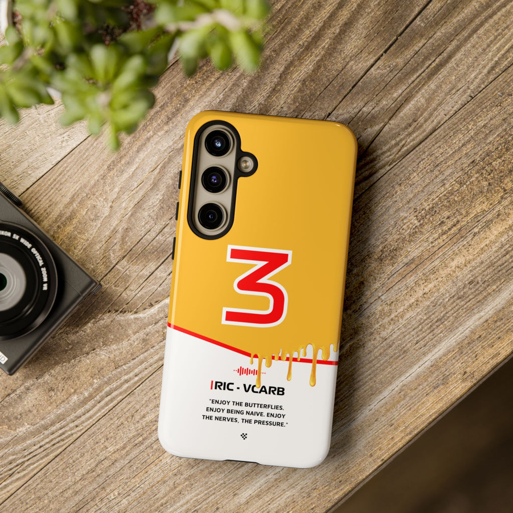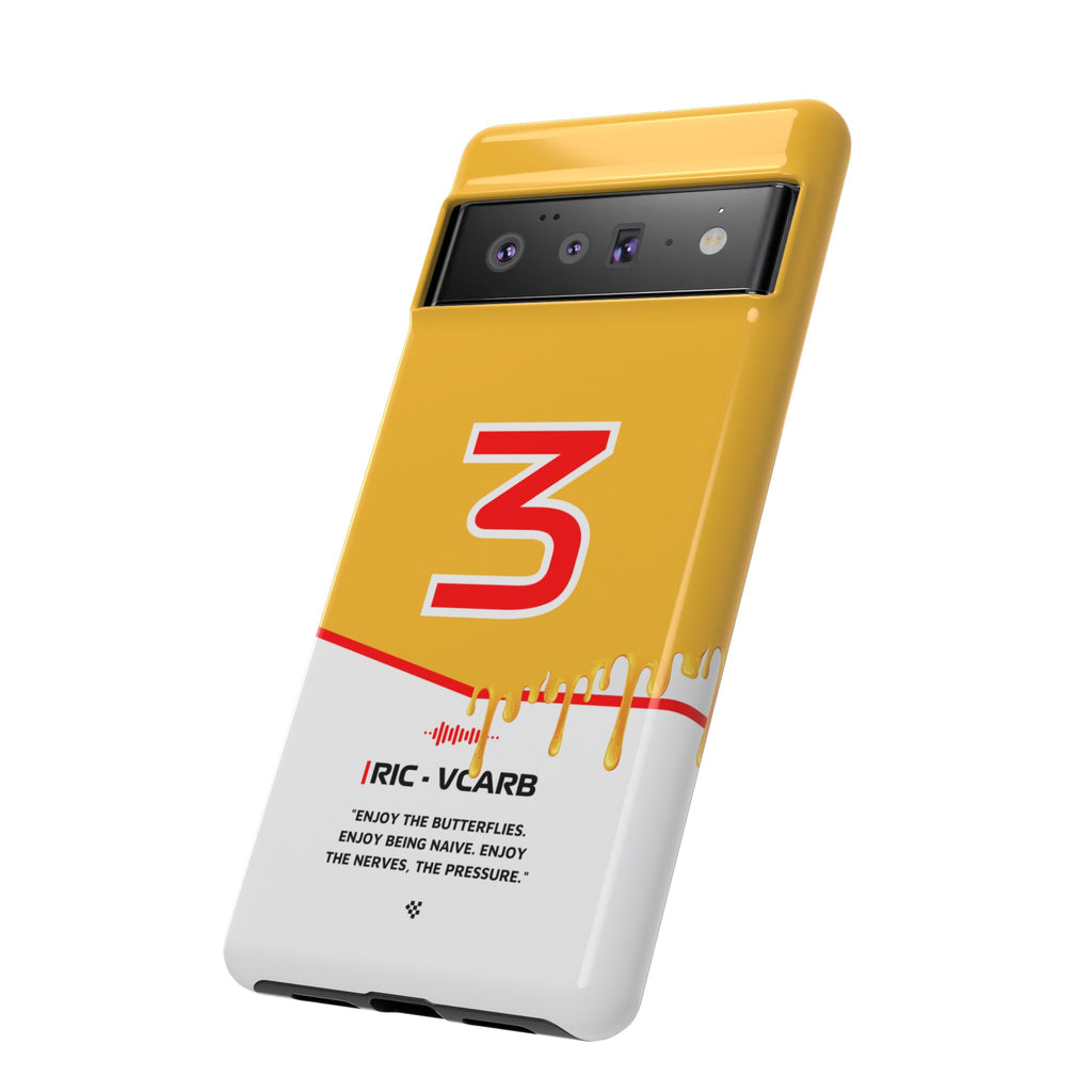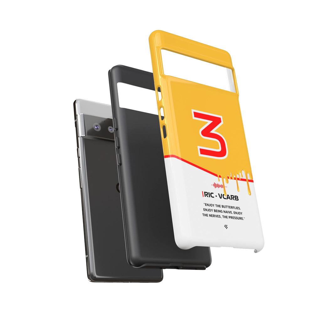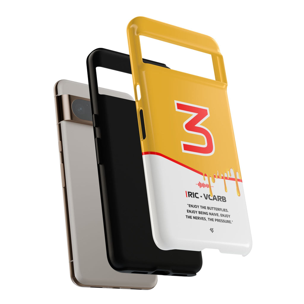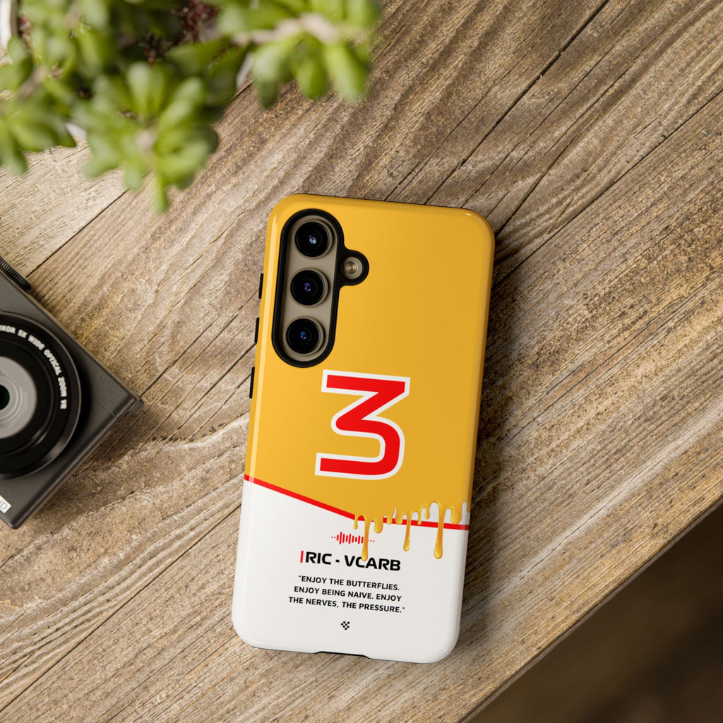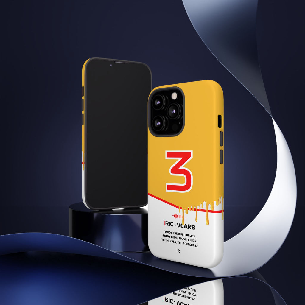 Get ready to support Daniel in the 2024 Formula 1 season with the Daniel Ricciardo F1 2024 Canada Helmet Phone Case. Designed for true Formula 1 fans, this case features his iconic #3 race car number alongside his striking 2024 Canada helmet colors. But that's not all - it also proudly showcases an iconic quote that you can personalize. Whether you're cheering from the grandstands or watching from home, this case is a must-have for every Ricciardo fan.