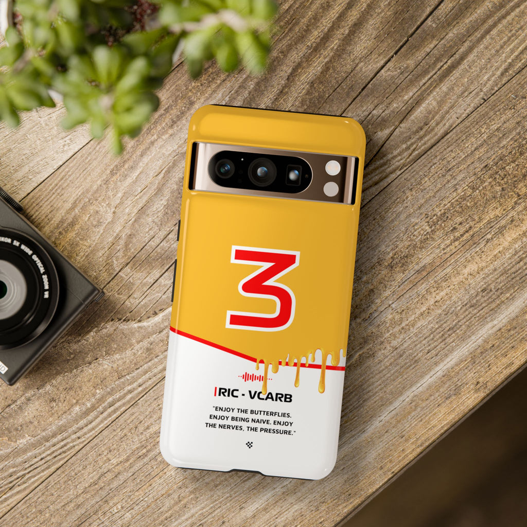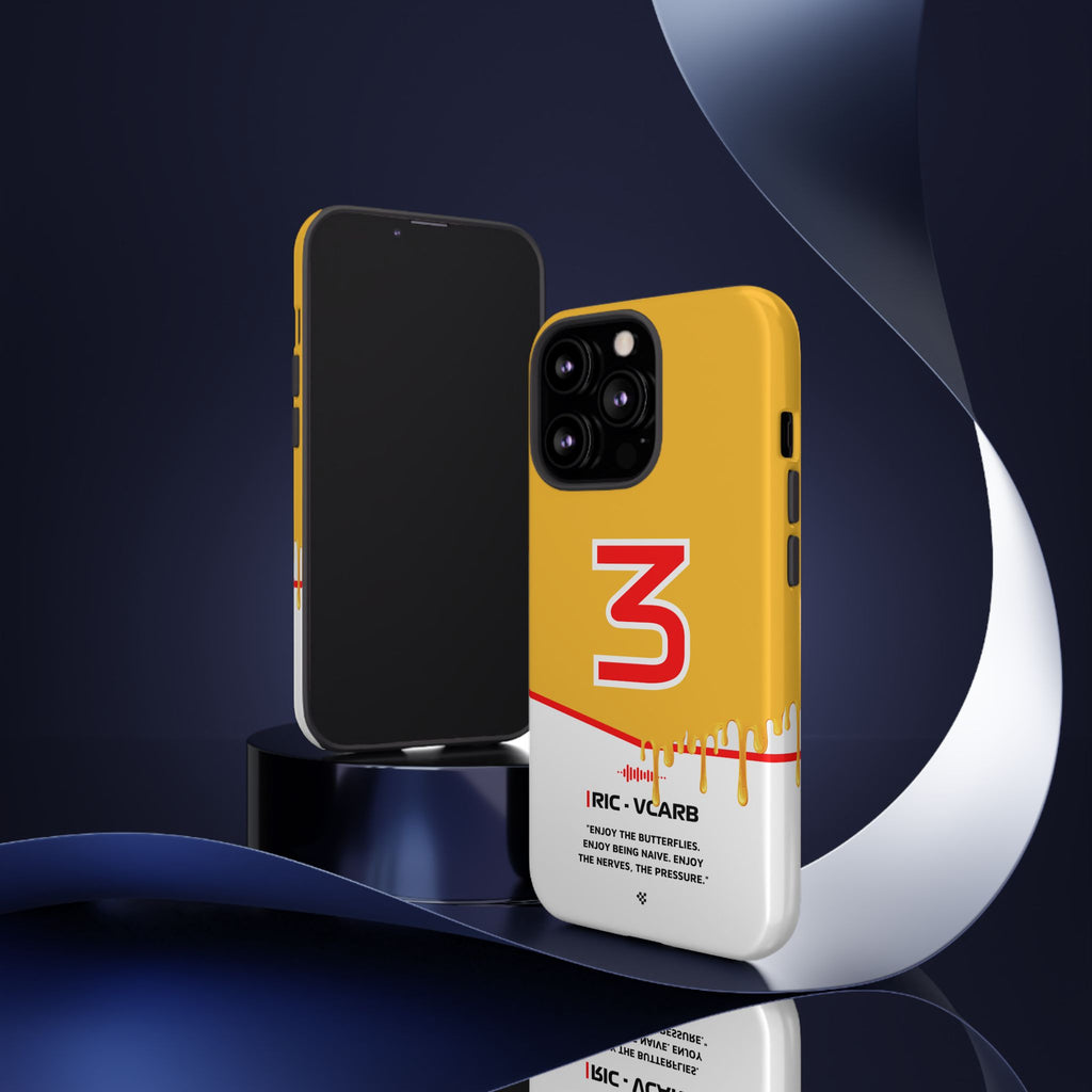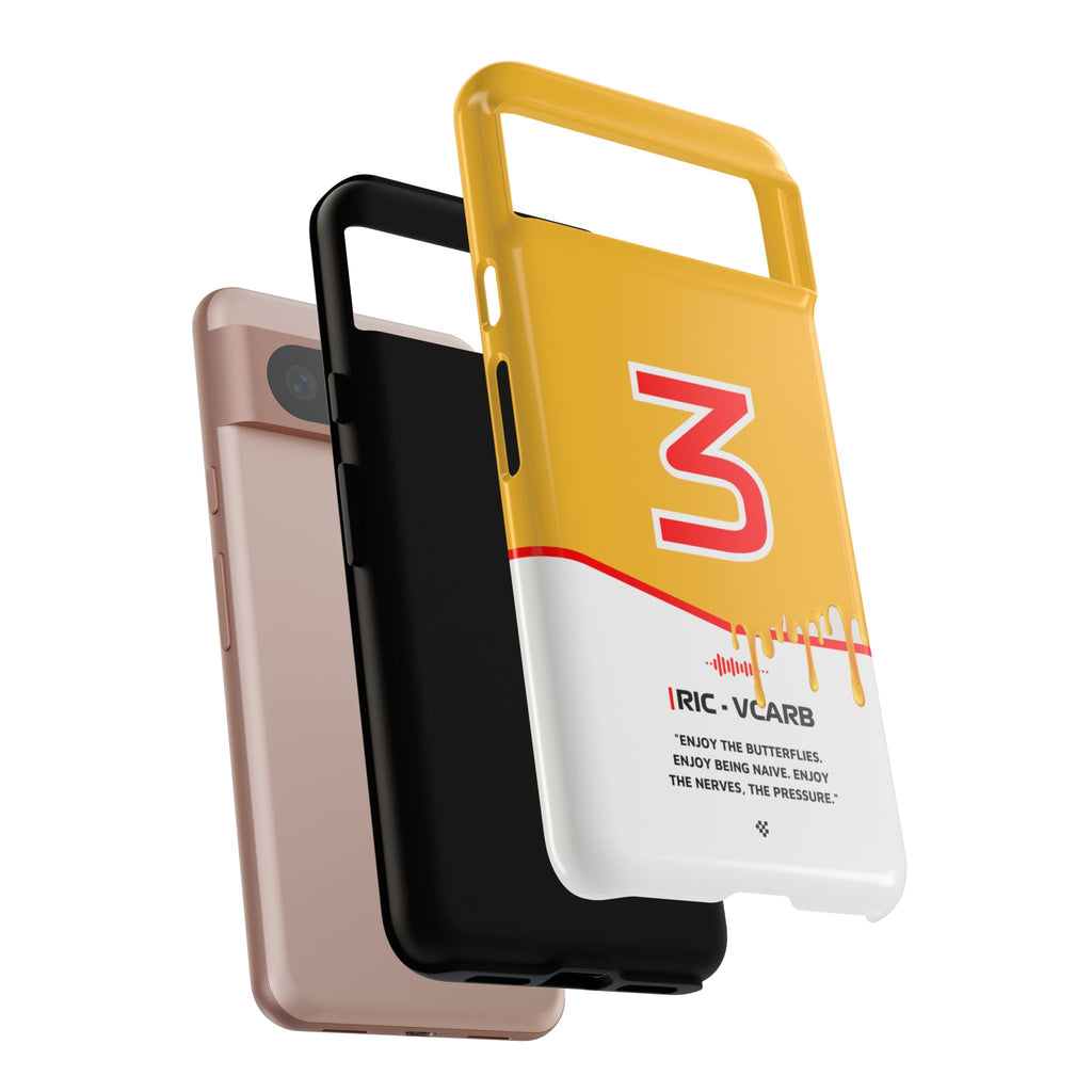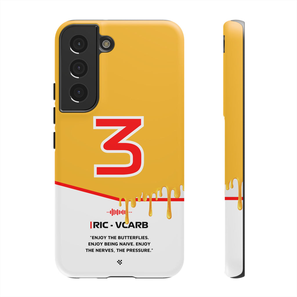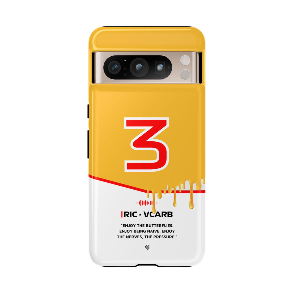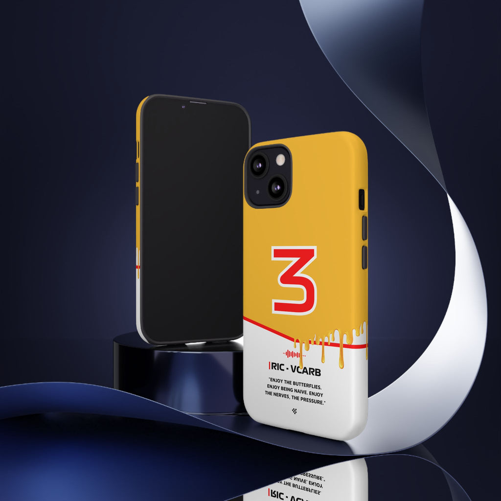 Get ready to support Daniel in the 2024 Formula 1 season with the Daniel Ricciardo F1 2024 Canada Helmet Phone Case. Designed for true Formula 1 fans, this case features his iconic #3 race car number alongside his striking 2024 Canada helmet colors. But that's not all - it also proudly showcases an iconic quote that you can personalize. Whether you're cheering from the grandstands or watching from home, this case is a must-have for every Ricciardo fan.