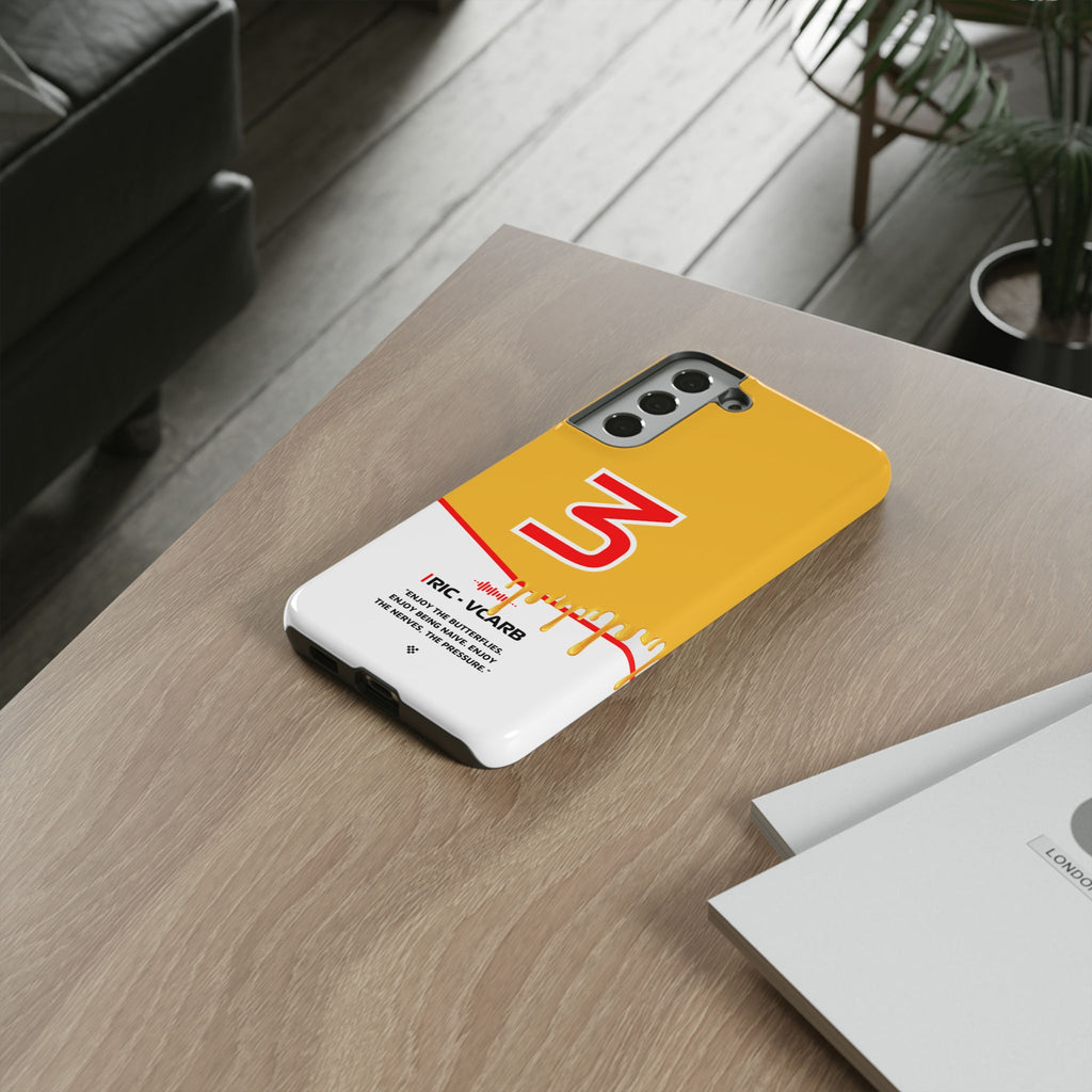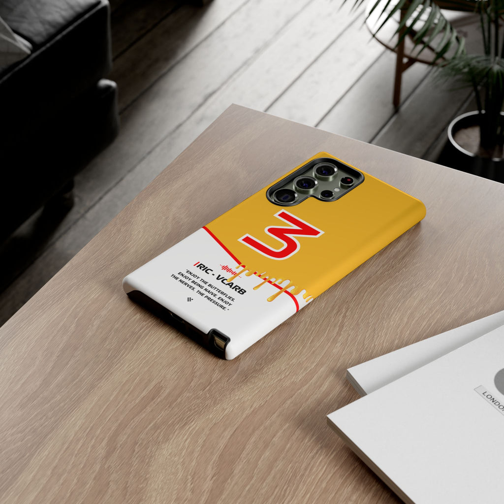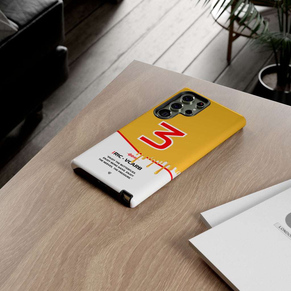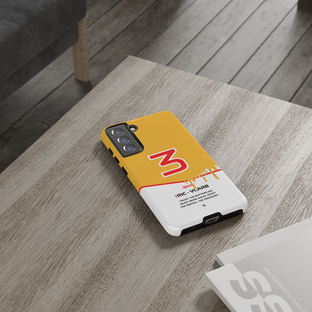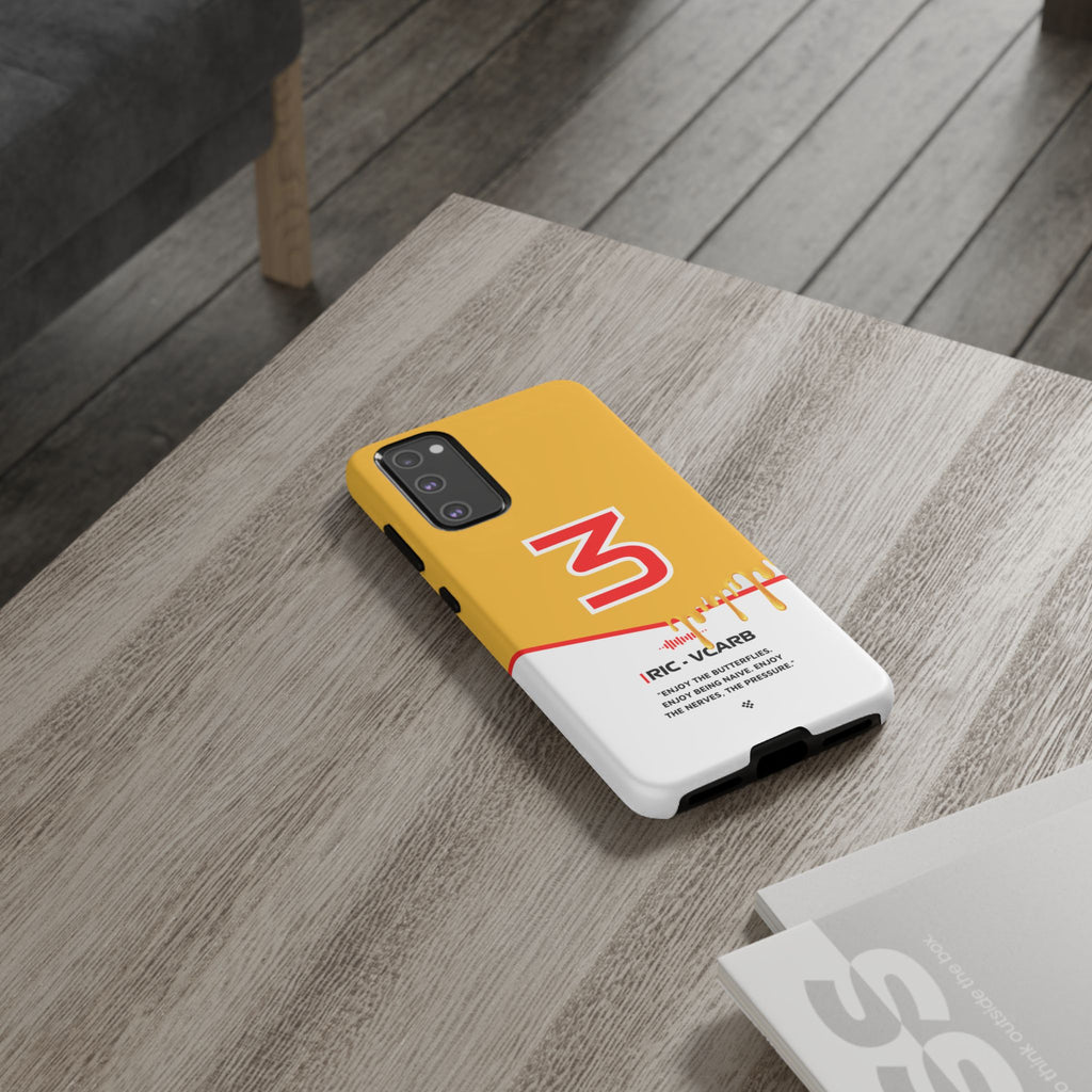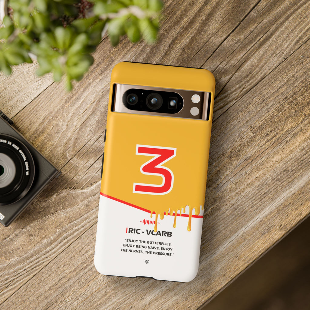 Get ready to support Daniel in the 2024 Formula 1 season with the Daniel Ricciardo F1 2024 Canada Helmet Phone Case. Designed for true Formula 1 fans, this case features his iconic #3 race car number alongside his striking 2024 Canada helmet colors. But that's not all - it also proudly showcases an iconic quote that you can personalize. Whether you're cheering from the grandstands or watching from home, this case is a must-have for every Ricciardo fan.