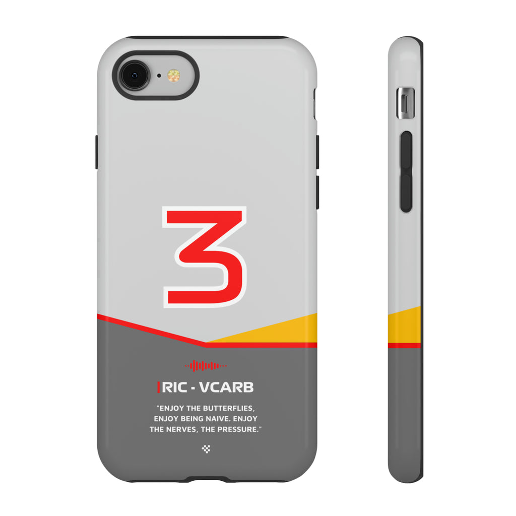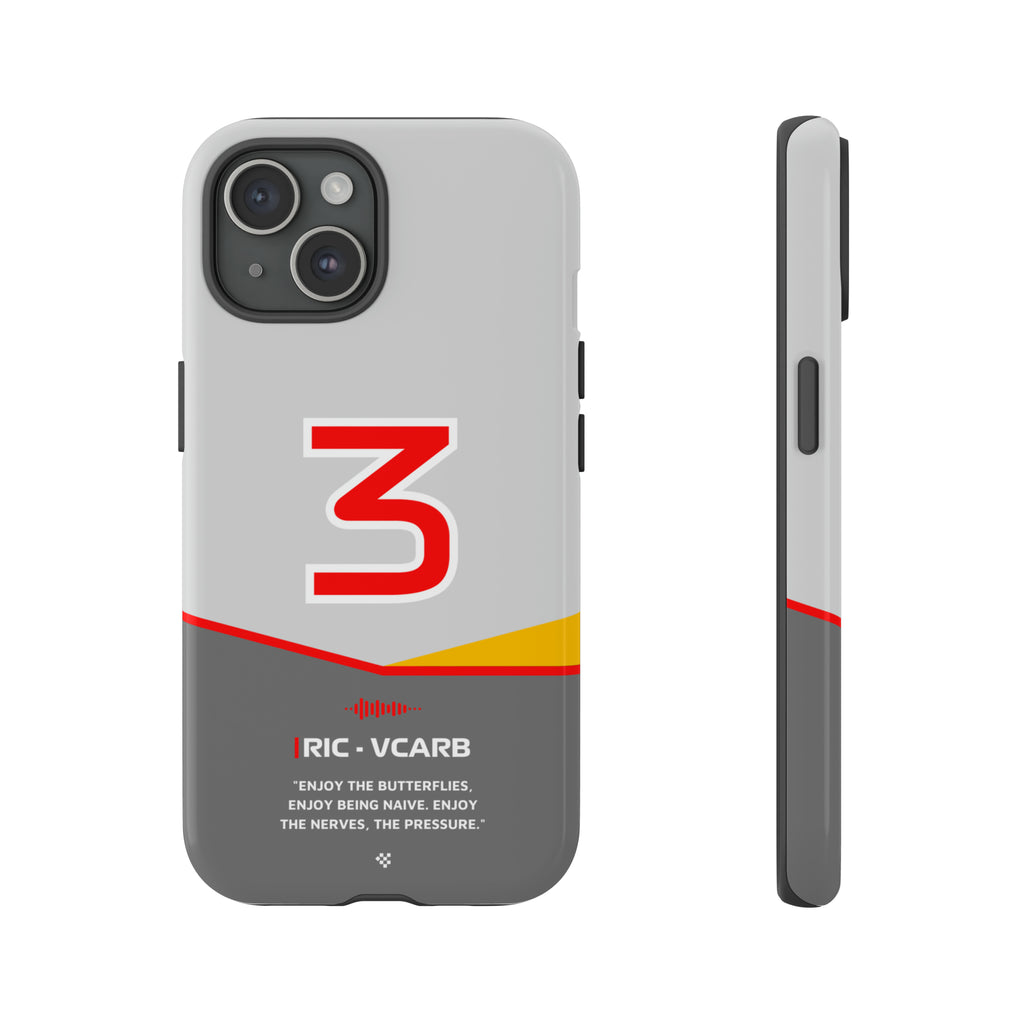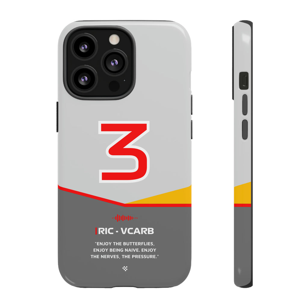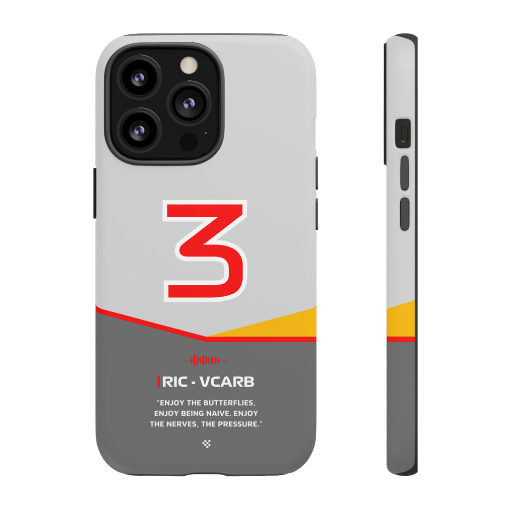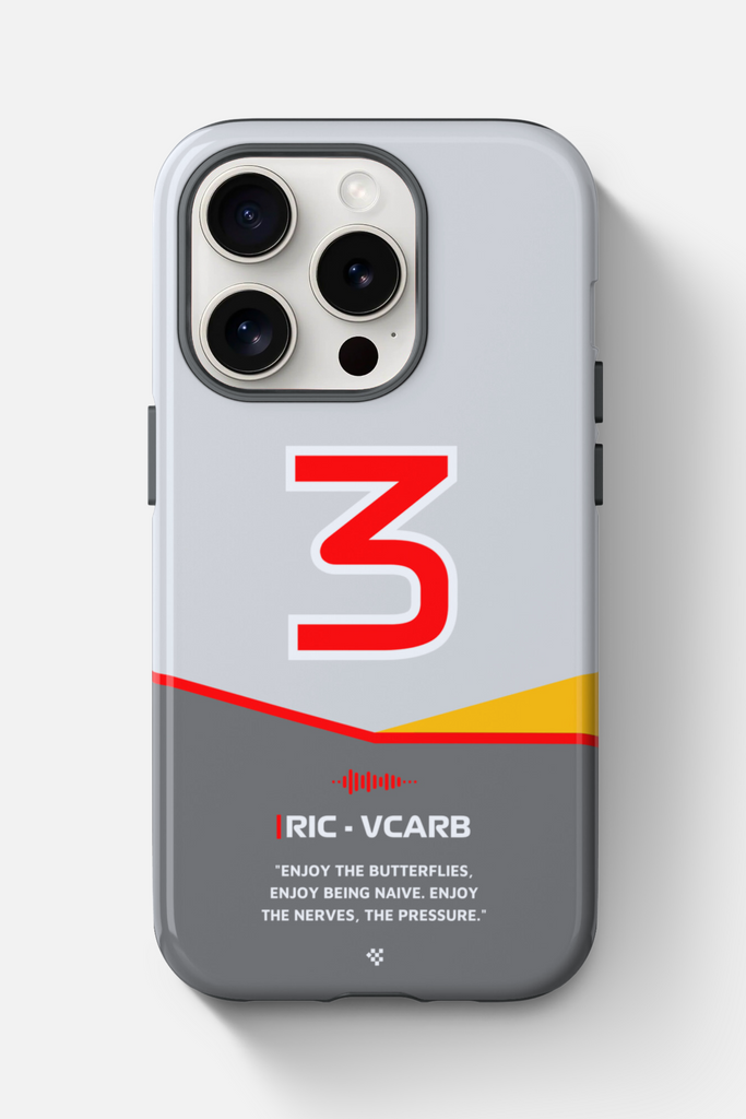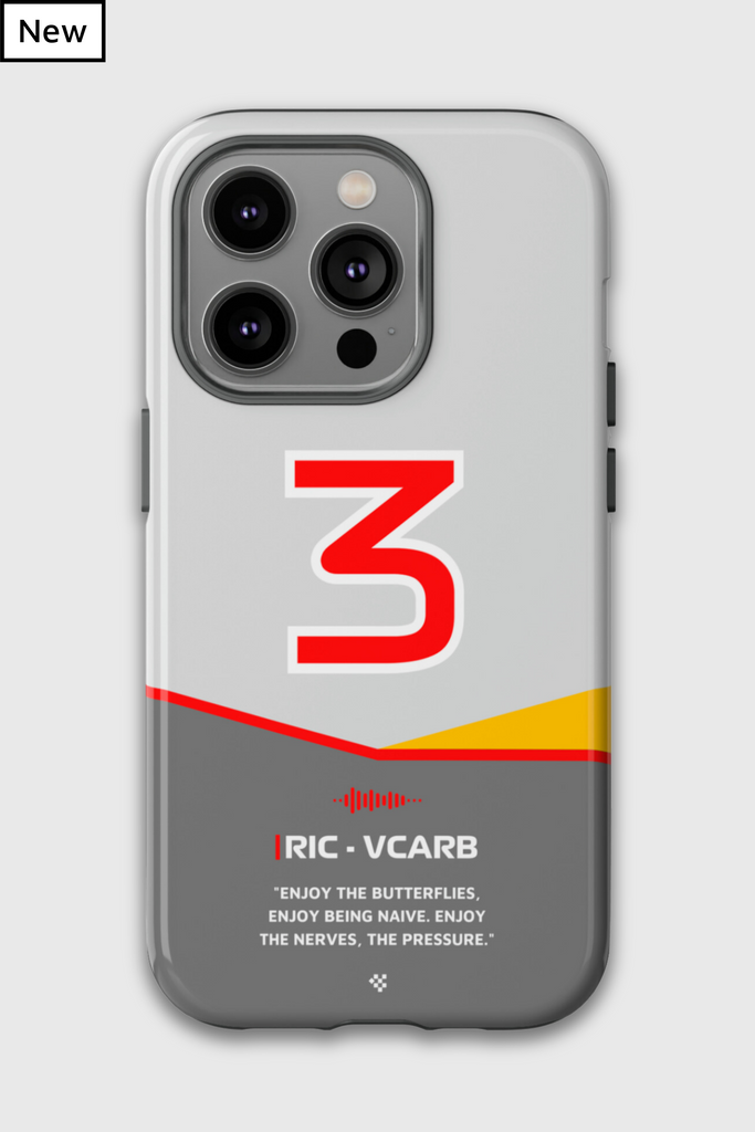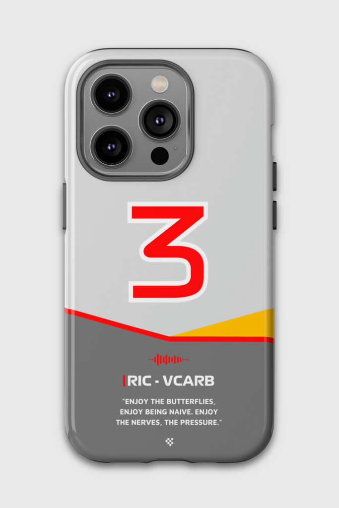 Get ready to support Daniel in the 2024 Formula 1 season with the Daniel Ricciardo F1 2024 Helmet Phone Case. Designed for true Formula 1 fans, this case features his iconic #3 race car number alongside his striking 2024 helmet colors. But that's not all - it also proudly showcases an iconic quote that you can personalize. Whether you're cheering from the grandstands or watching from home, this case is a must-have for every Ricciardo fan.