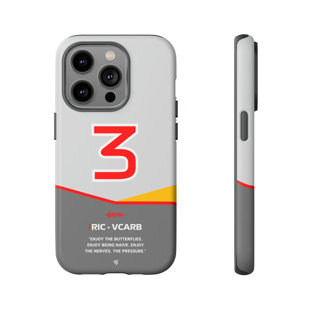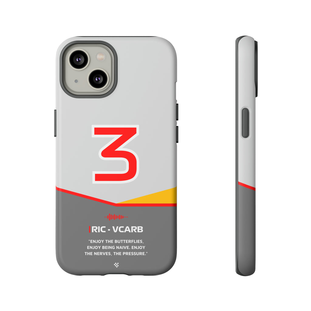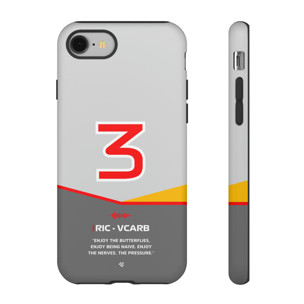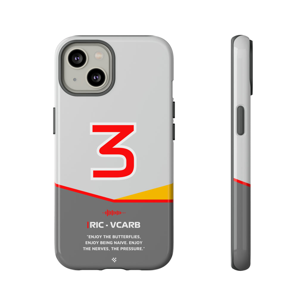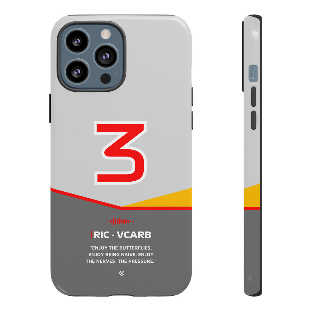Get ready to support Daniel in the 2024 Formula 1 season with the Daniel Ricciardo F1 2024 Helmet Phone Case. Designed for true Formula 1 fans, this case features his iconic #3 race car number alongside his striking 2024 helmet colors. But that's not all - it also proudly showcases an iconic quote that you can personalize. Whether you're cheering from the grandstands or watching from home, this case is a must-have for every Ricciardo fan.